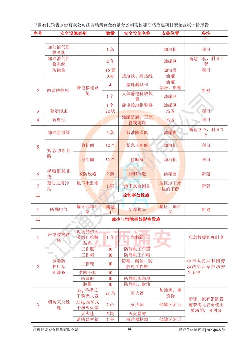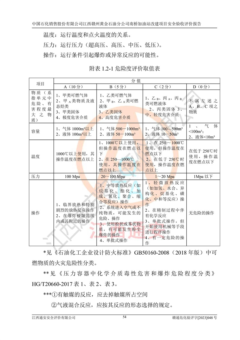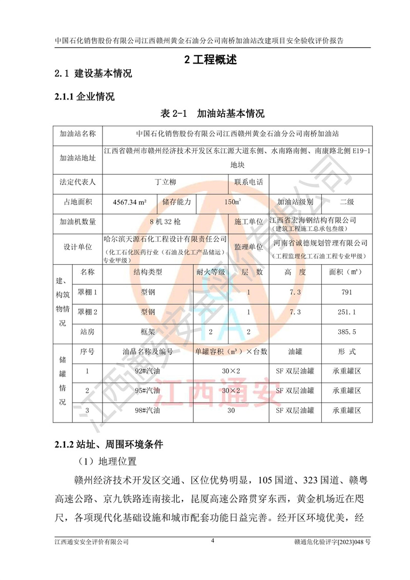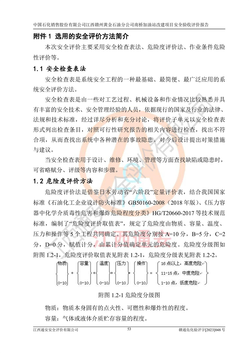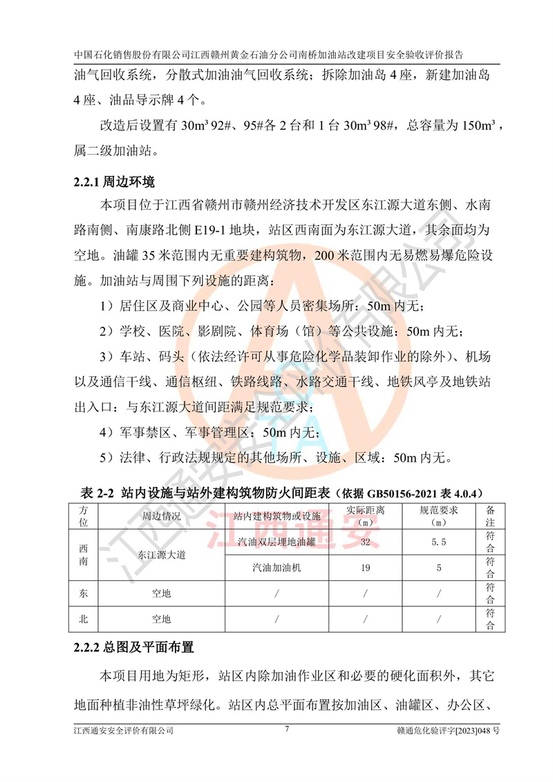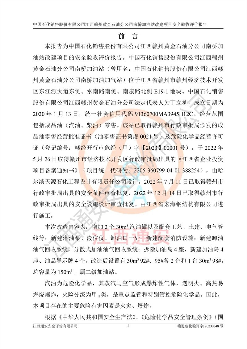 項目名稱 | 中國石化銷售股份有限公司江西贛州黃金石油分公司南橋加油站改建項目安全驗收評價報告 | ||||
