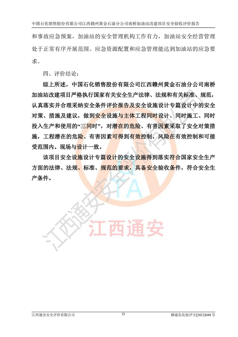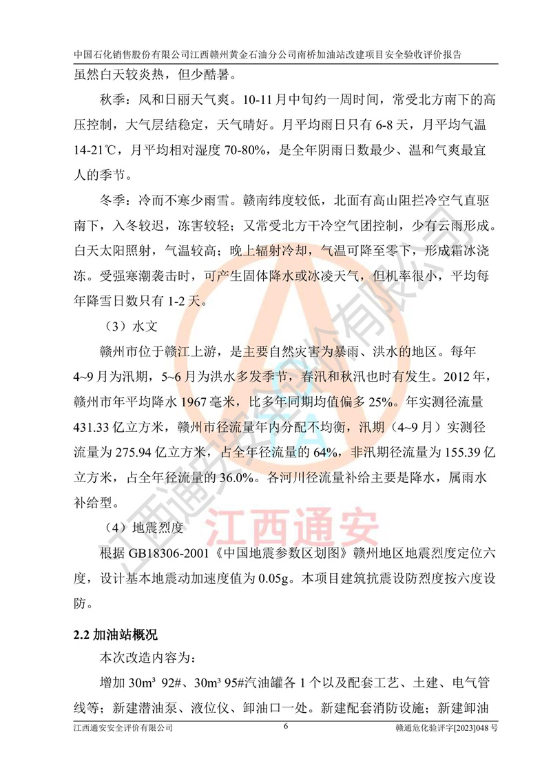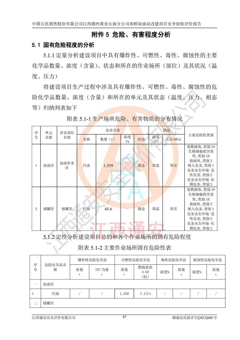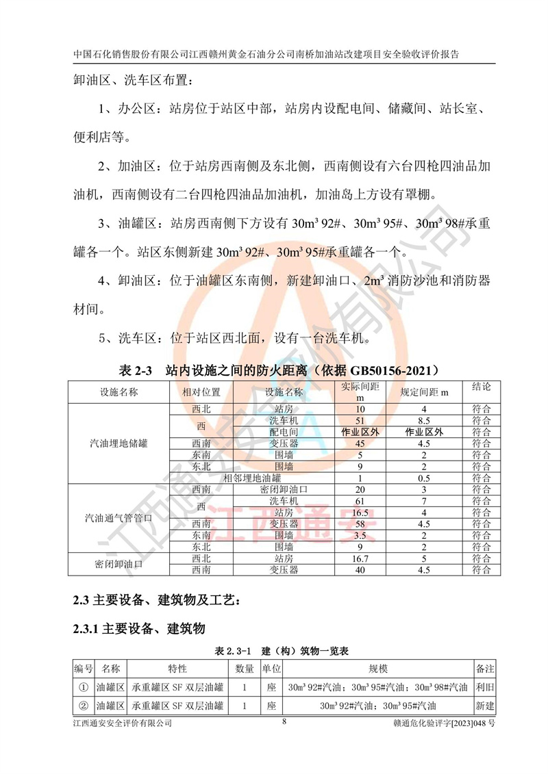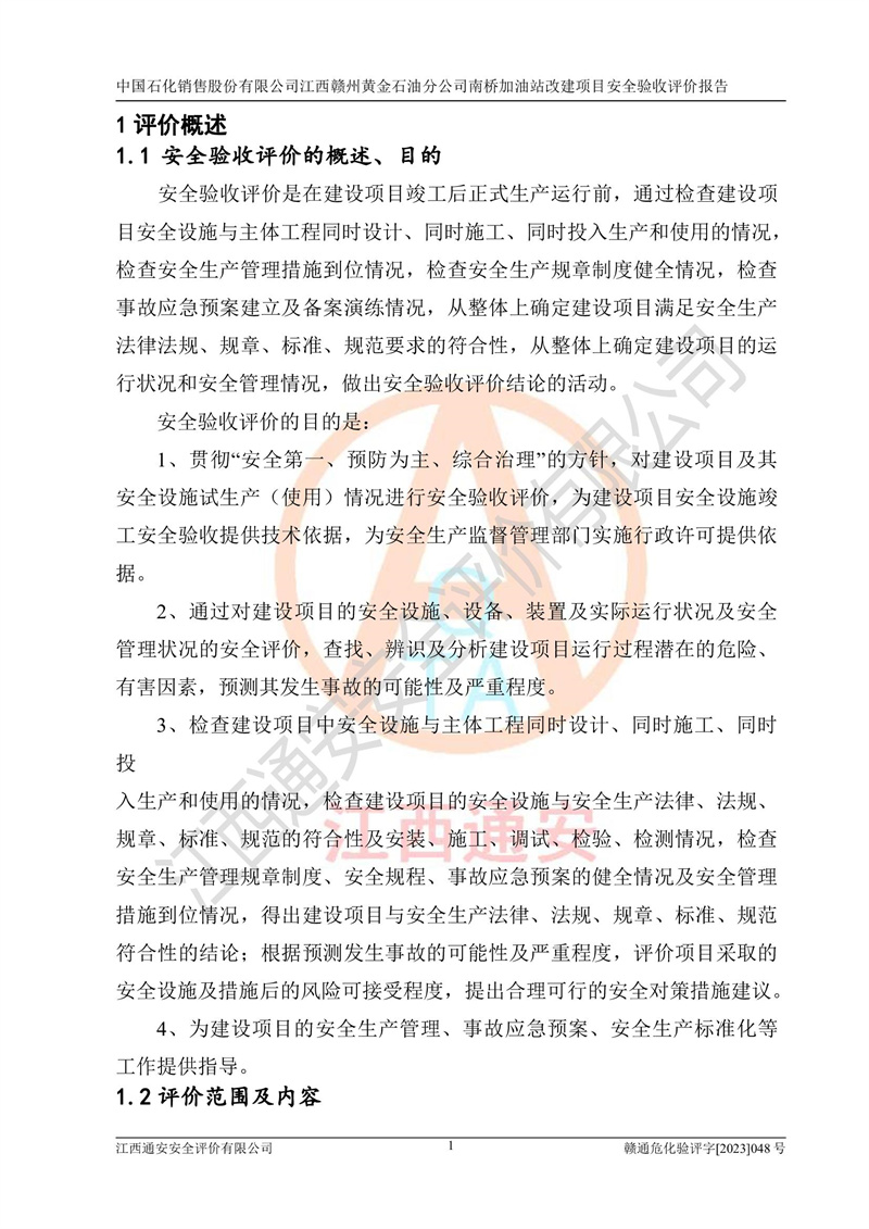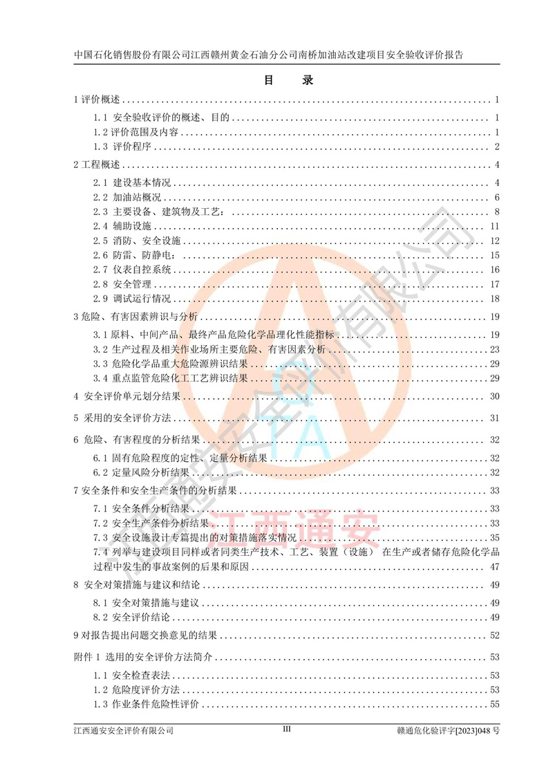 項目名稱 | 中國石化銷售股份有限公司江西贛州黃金石油分公司南橋加油站改建項目安全驗收評價報告 | ||||