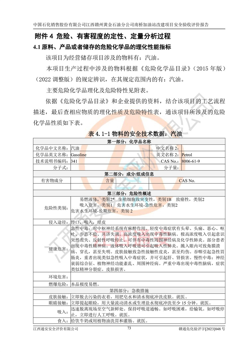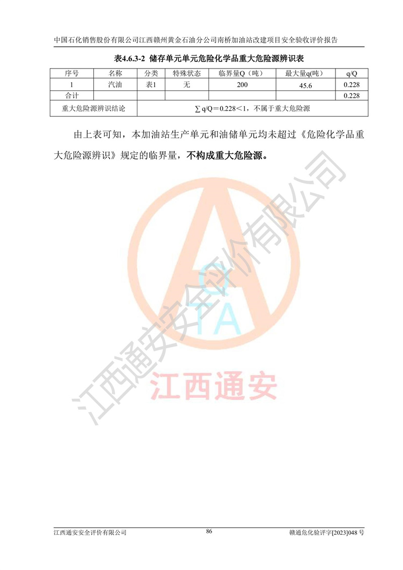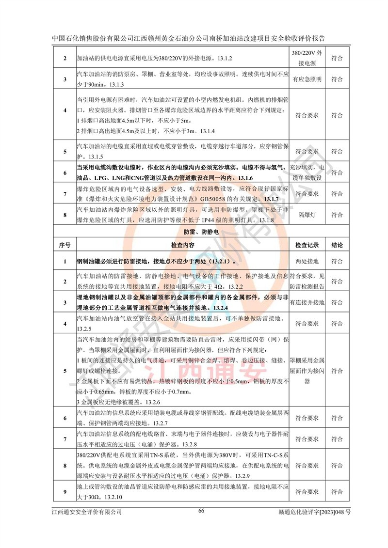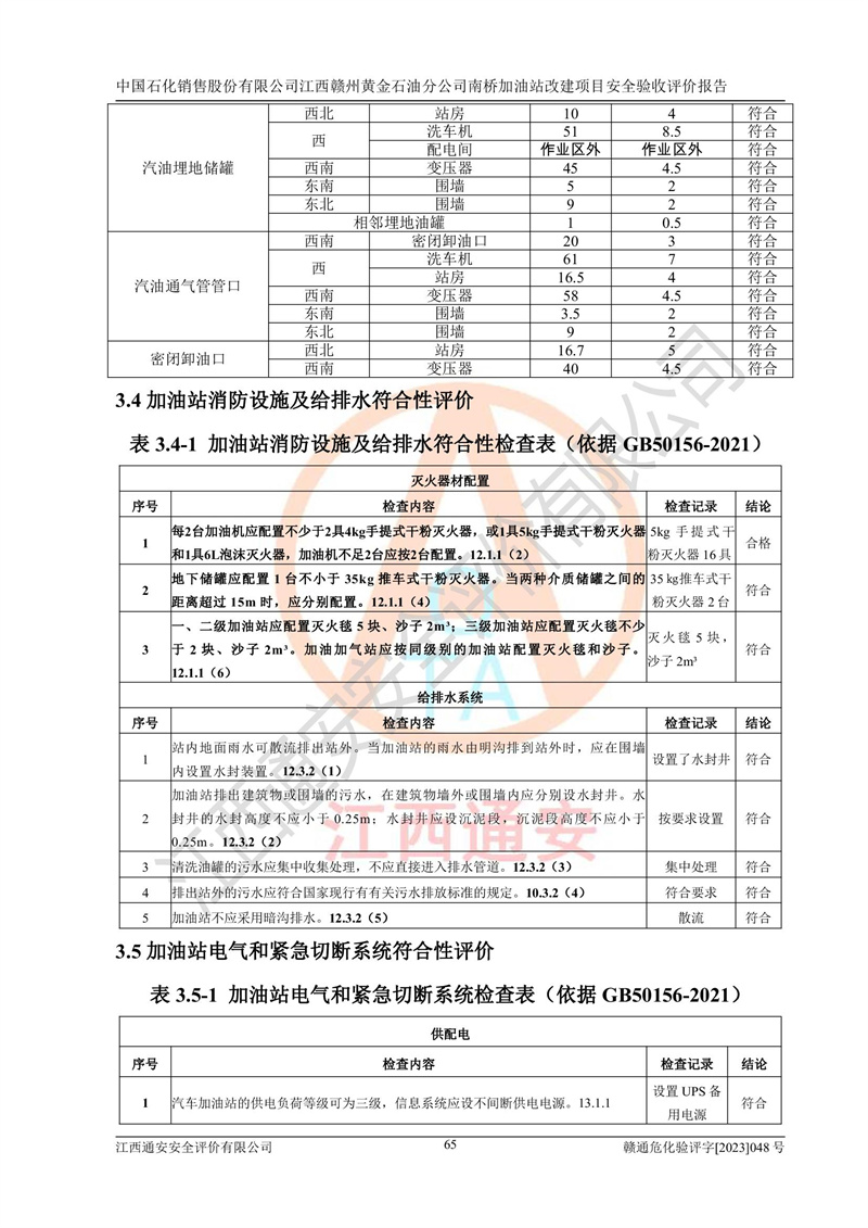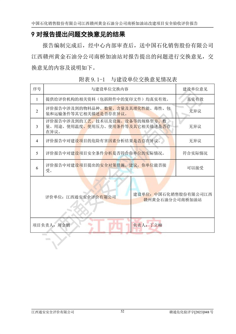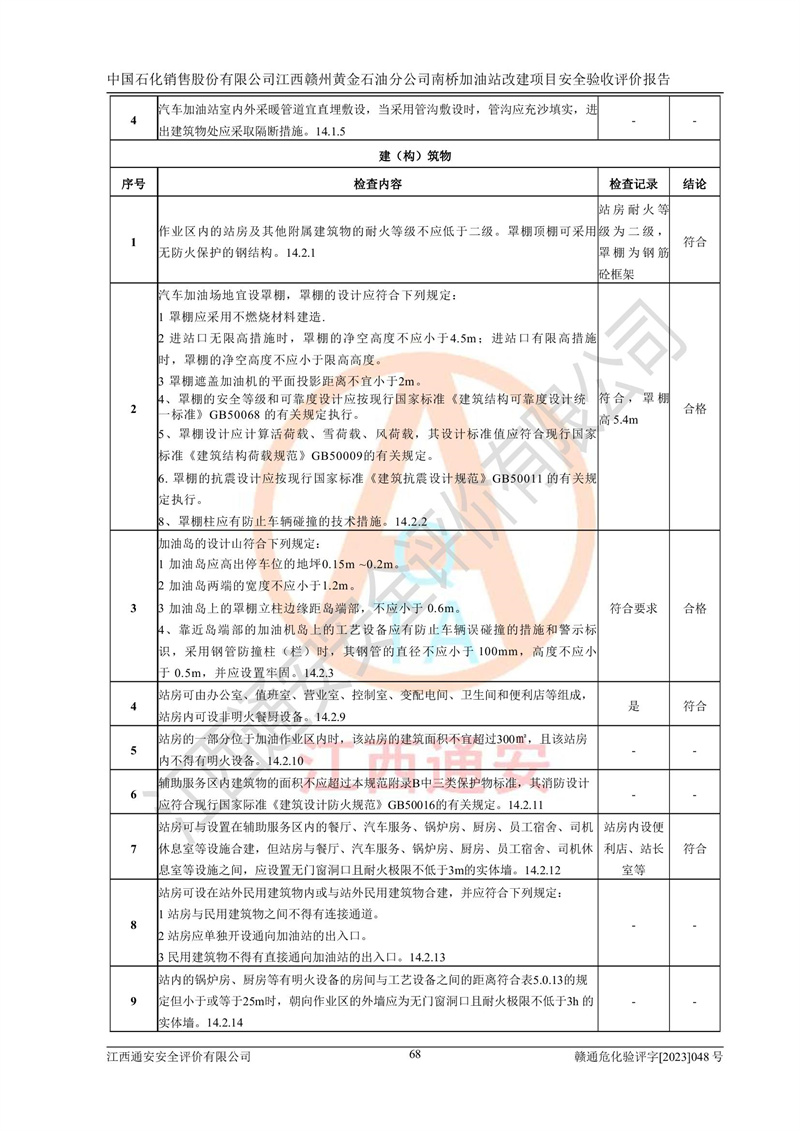 項目名稱 | 中國石化銷售股份有限公司江西贛州黃金石油分公司南橋加油站改建項目安全驗收評價報告 | ||||