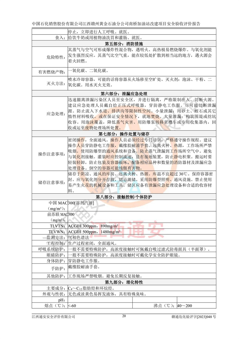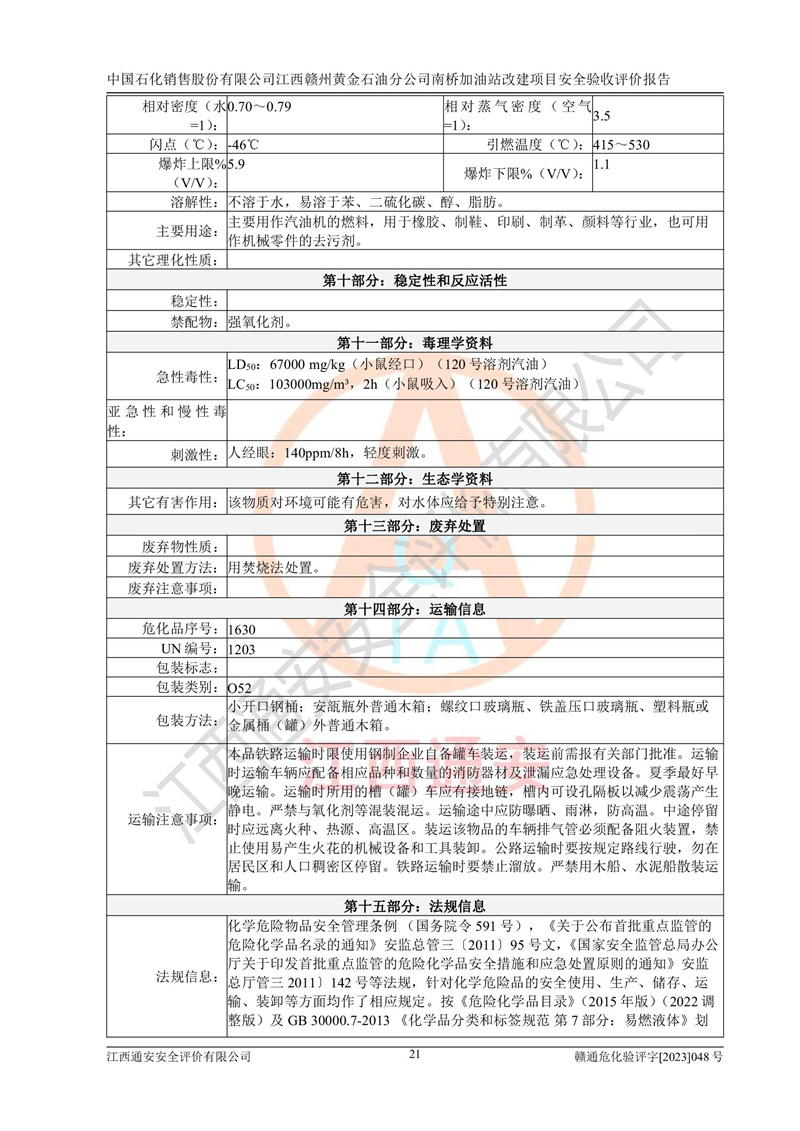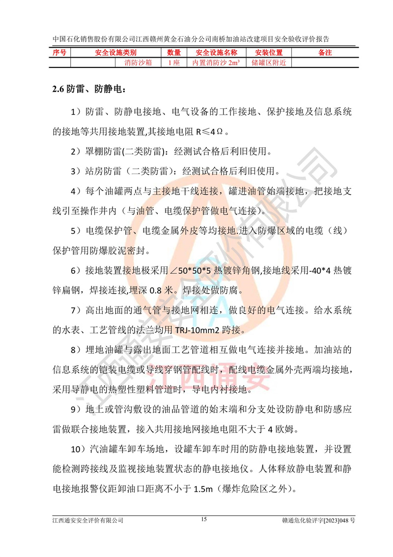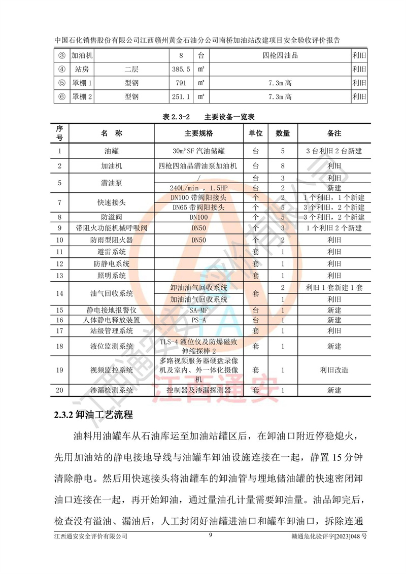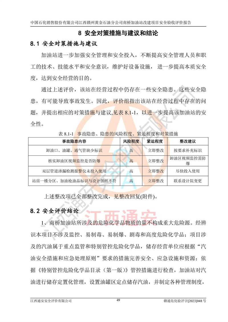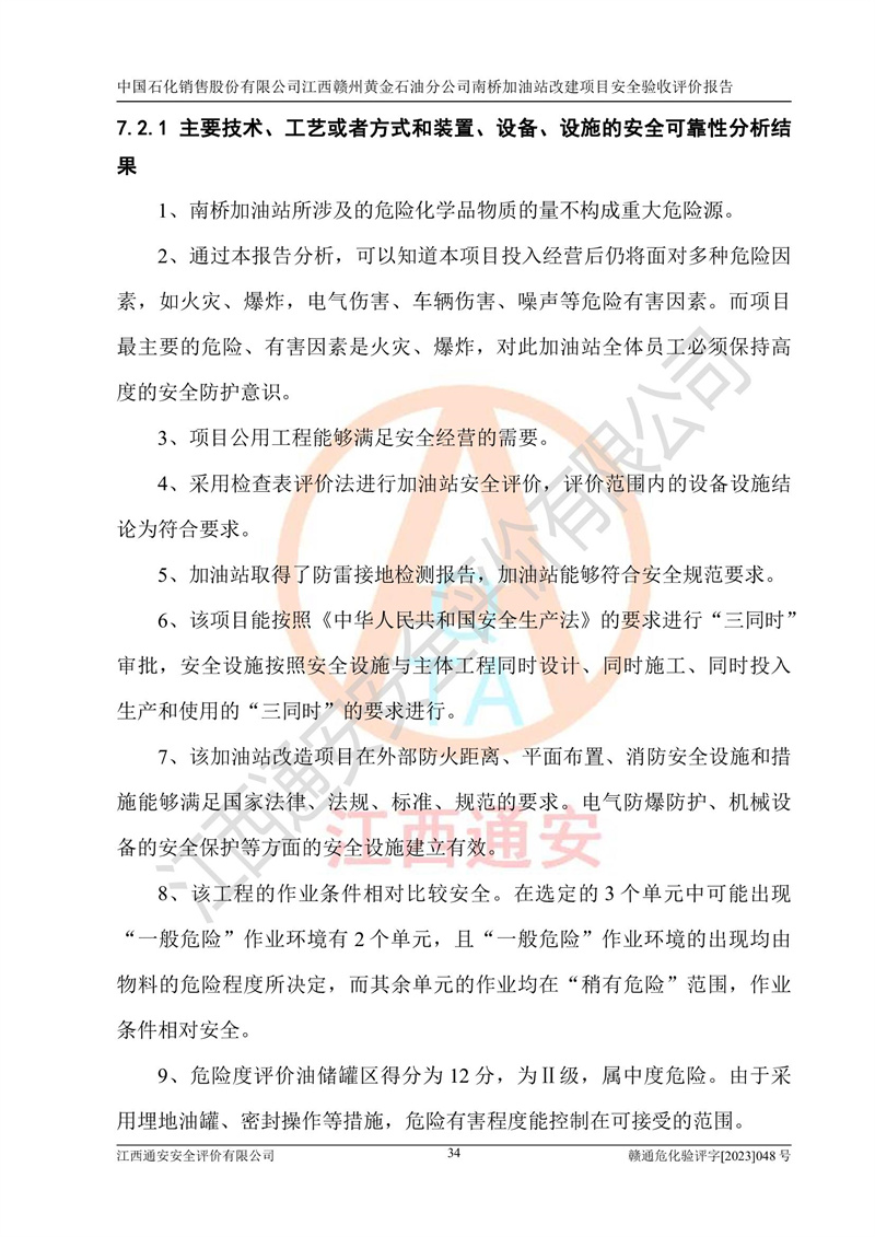 項目名稱 | 中國石化銷售股份有限公司江西贛州黃金石油分公司南橋加油站改建項目安全驗收評價報告 | ||||
