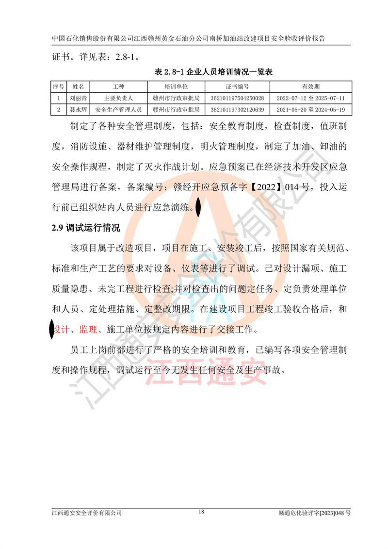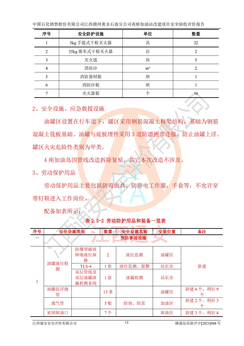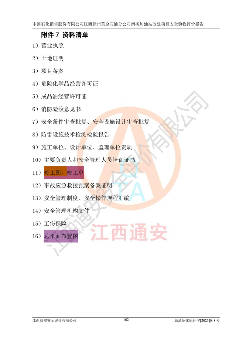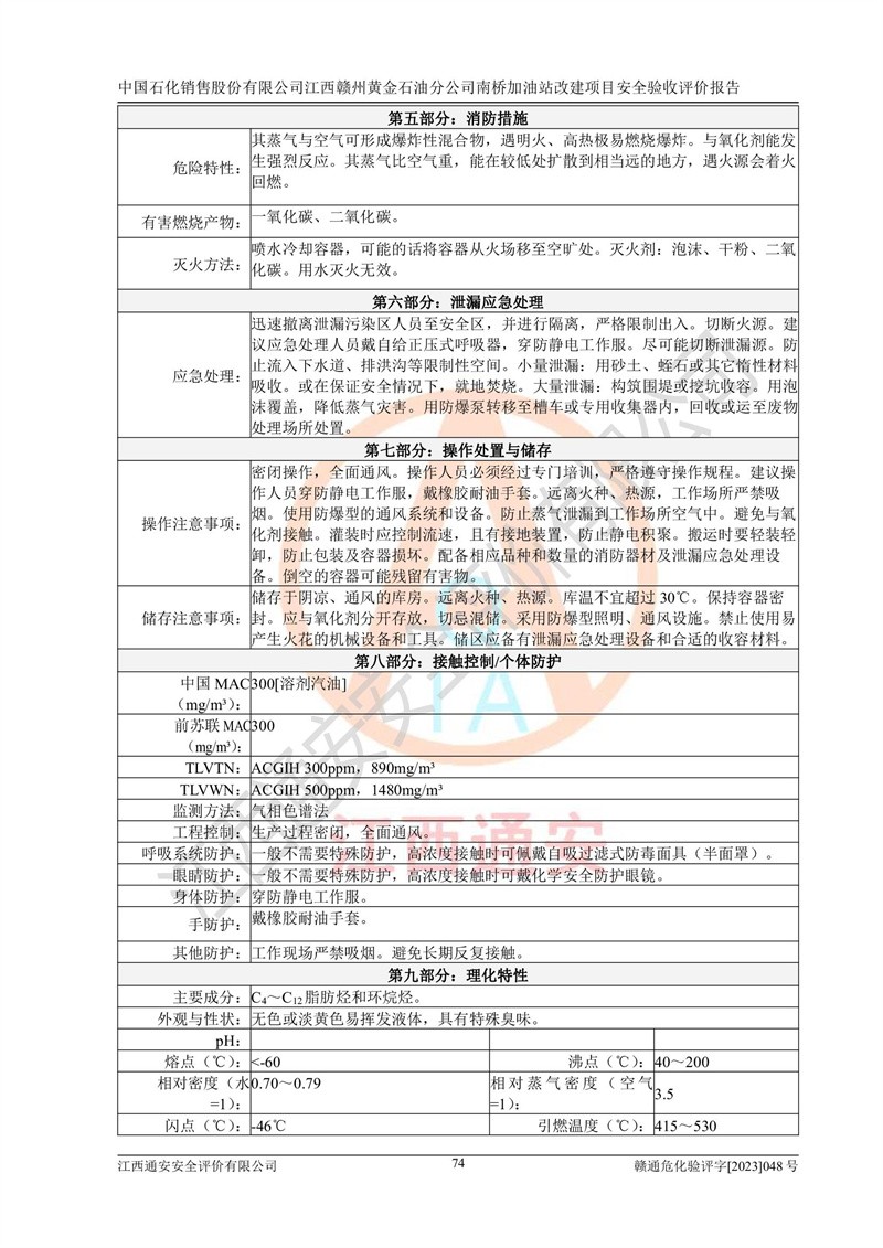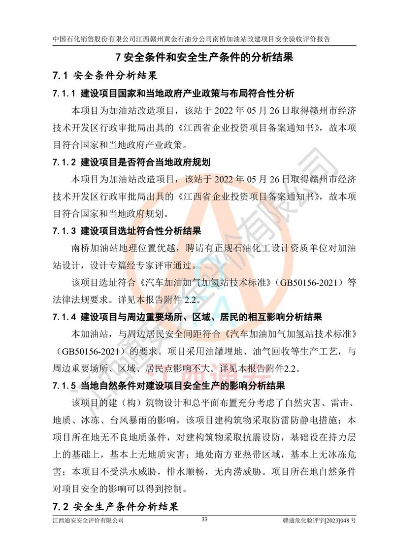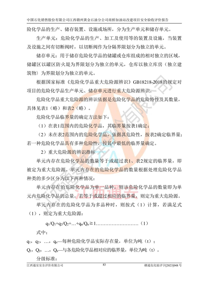 項目名稱 | 中國石化銷售股份有限公司江西贛州黃金石油分公司南橋加油站改建項目安全驗收評價報告 | ||||