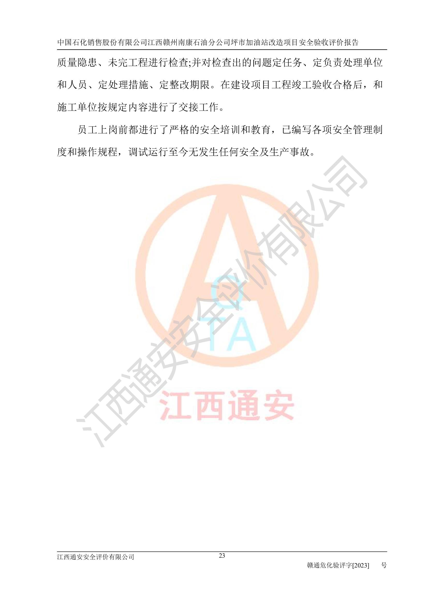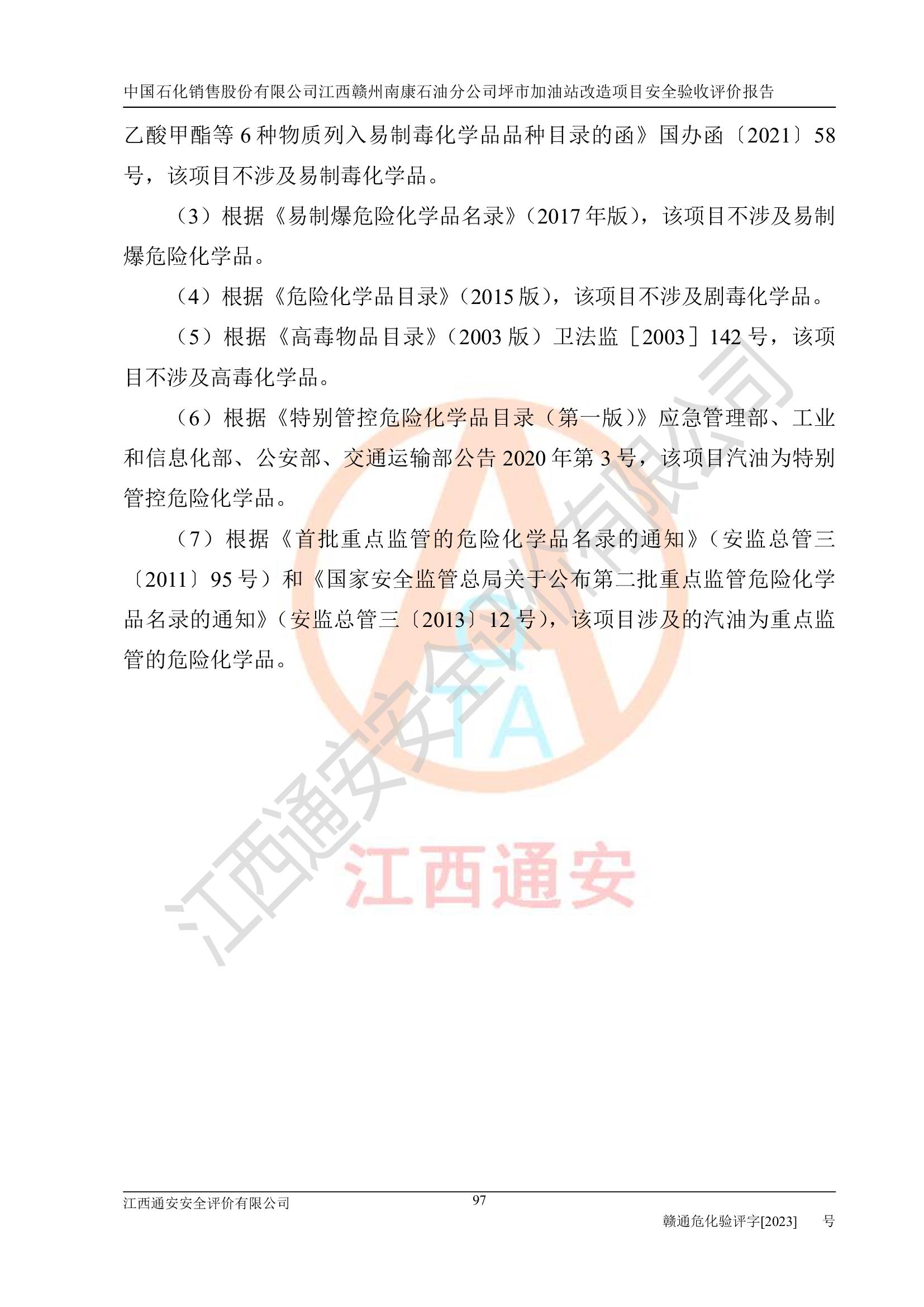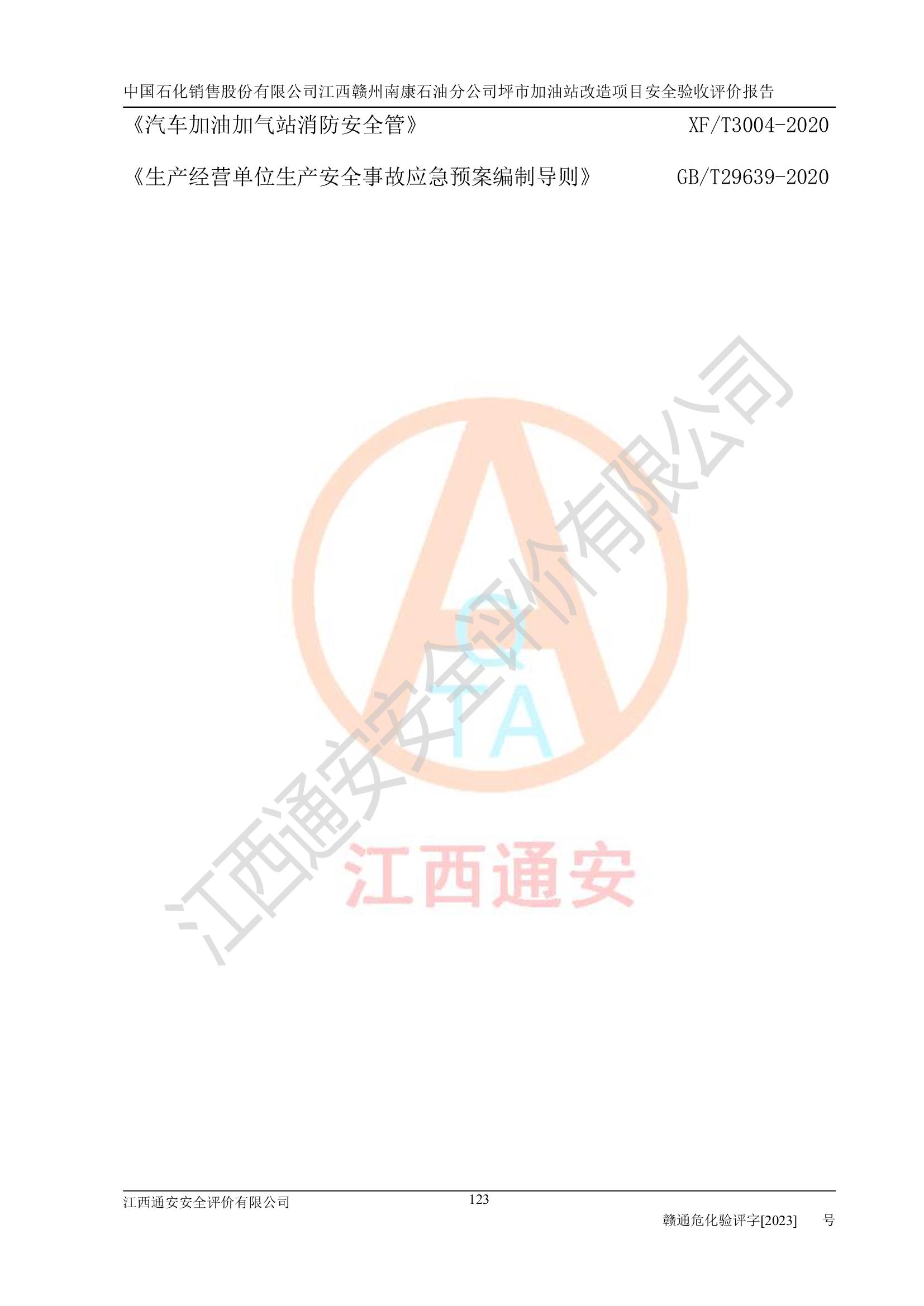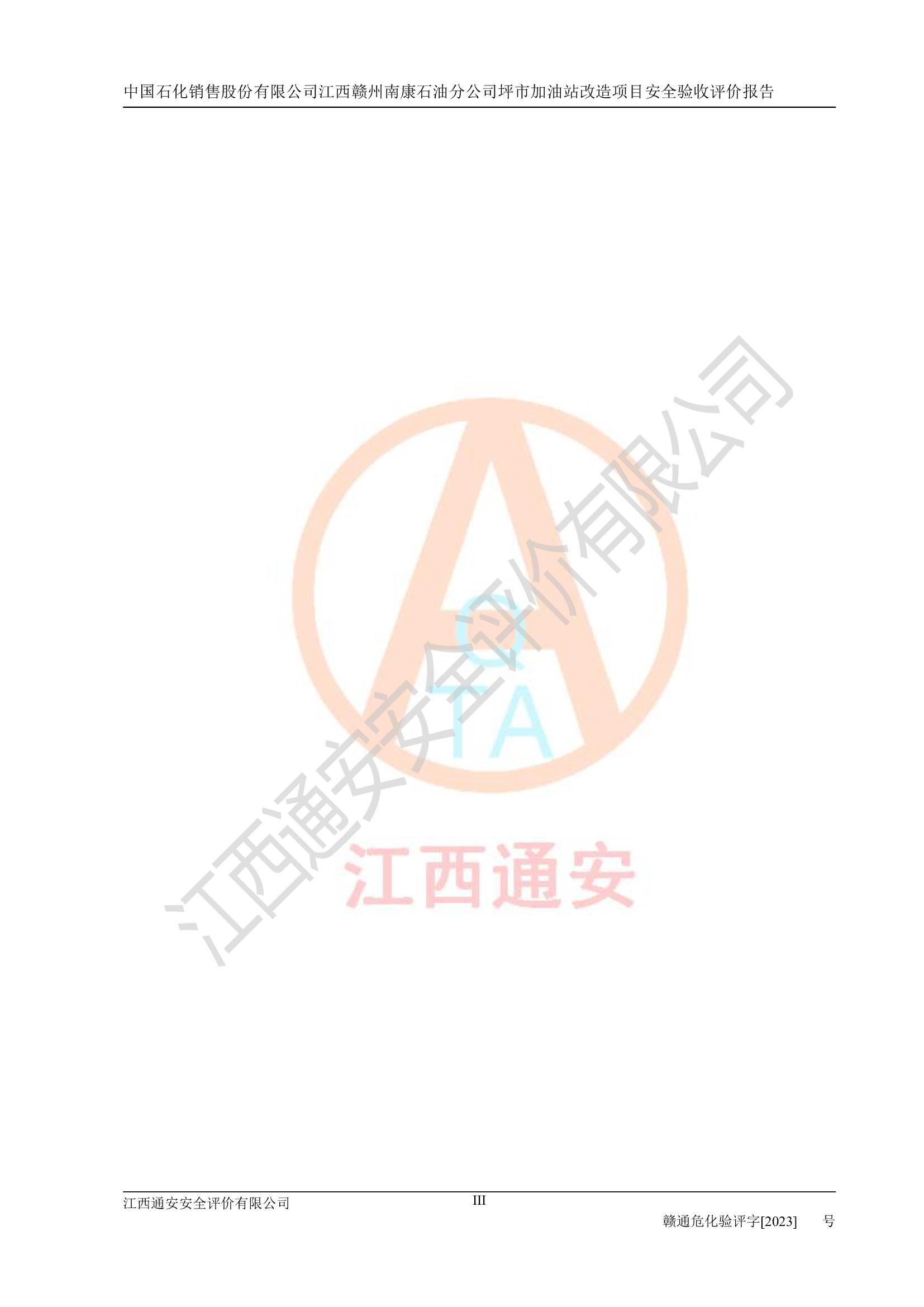 項(xiàng)目名稱: | 中國(guó)石化銷售股份有限公司江西贛州南康石油分公司坪市加油站改造項(xiàng)目安全條件評(píng)價(jià)報(bào)告 |