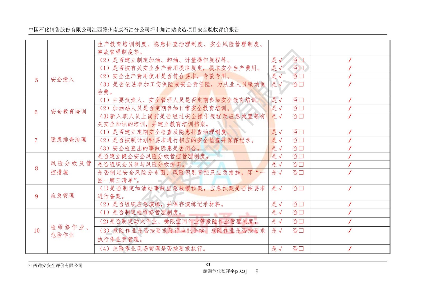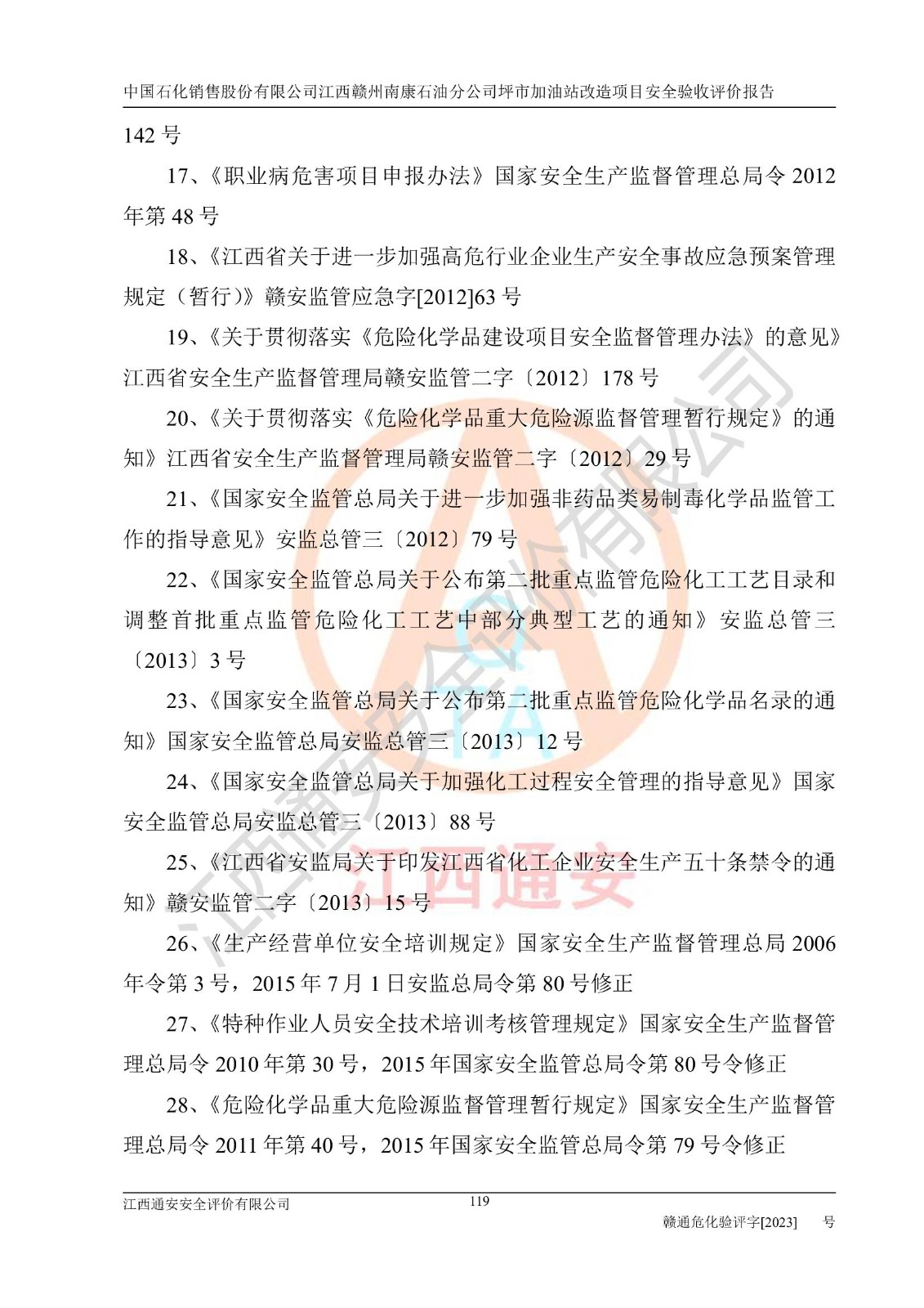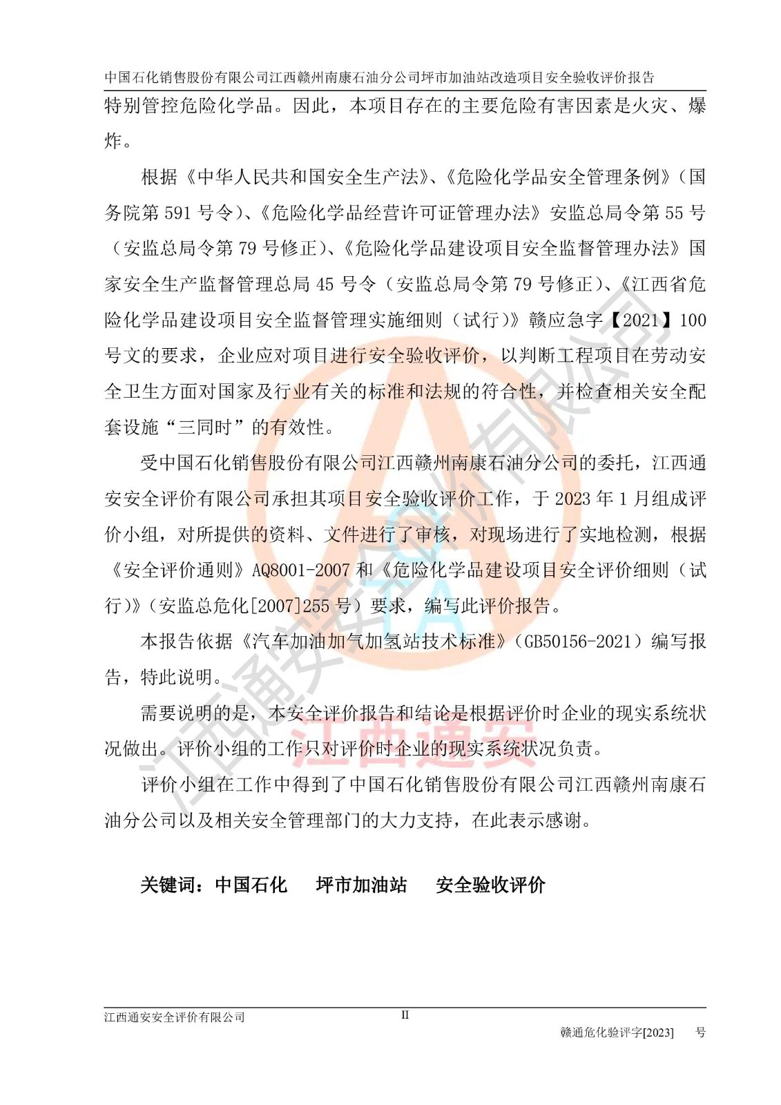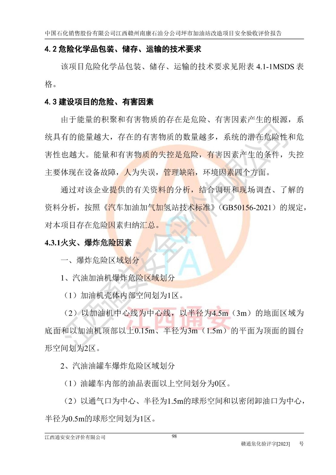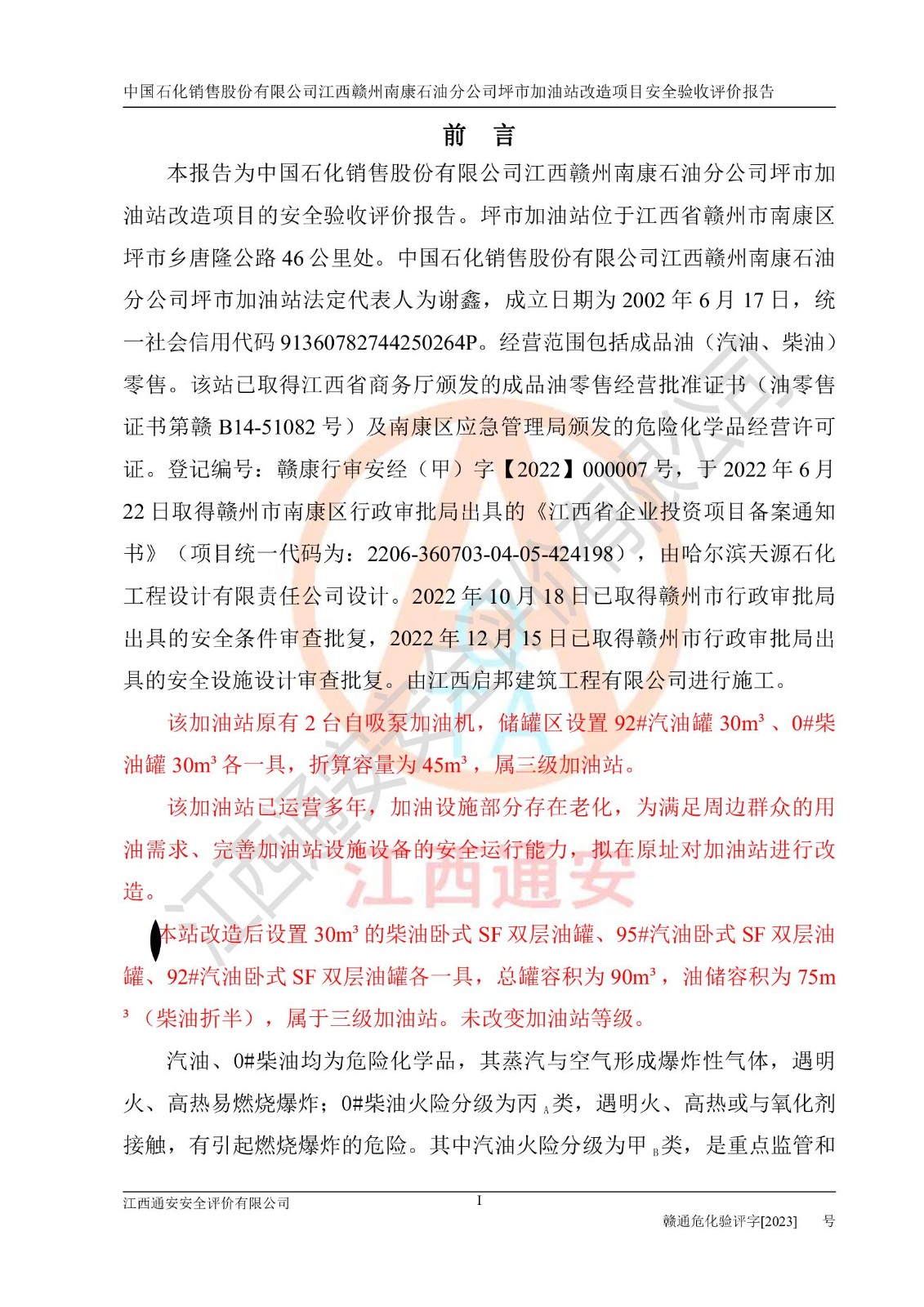 項(xiàng)目名稱: | 中國(guó)石化銷售股份有限公司江西贛州南康石油分公司坪市加油站改造項(xiàng)目安全條件評(píng)價(jià)報(bào)告 |