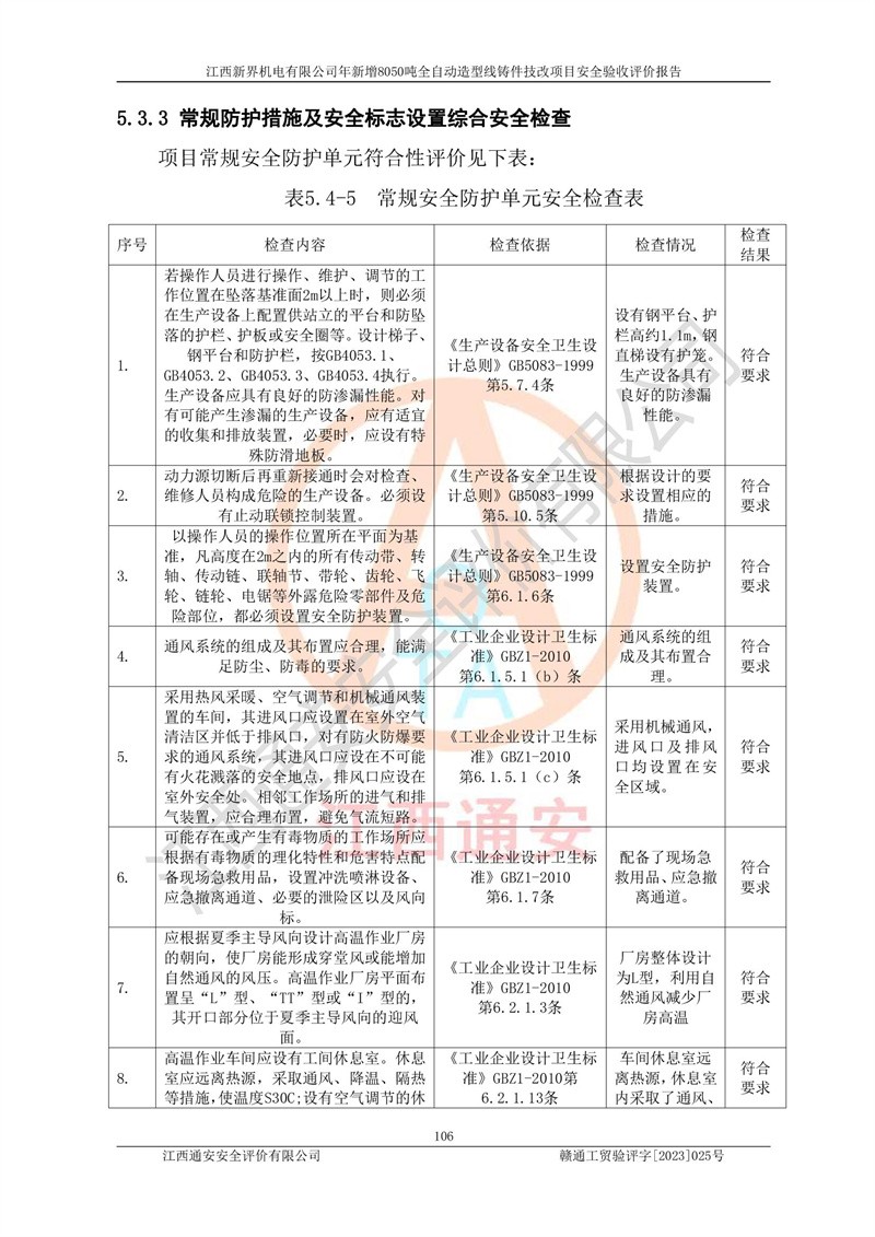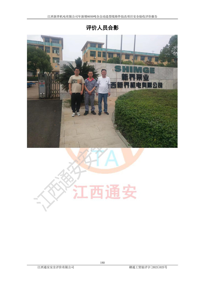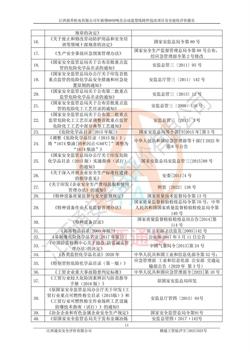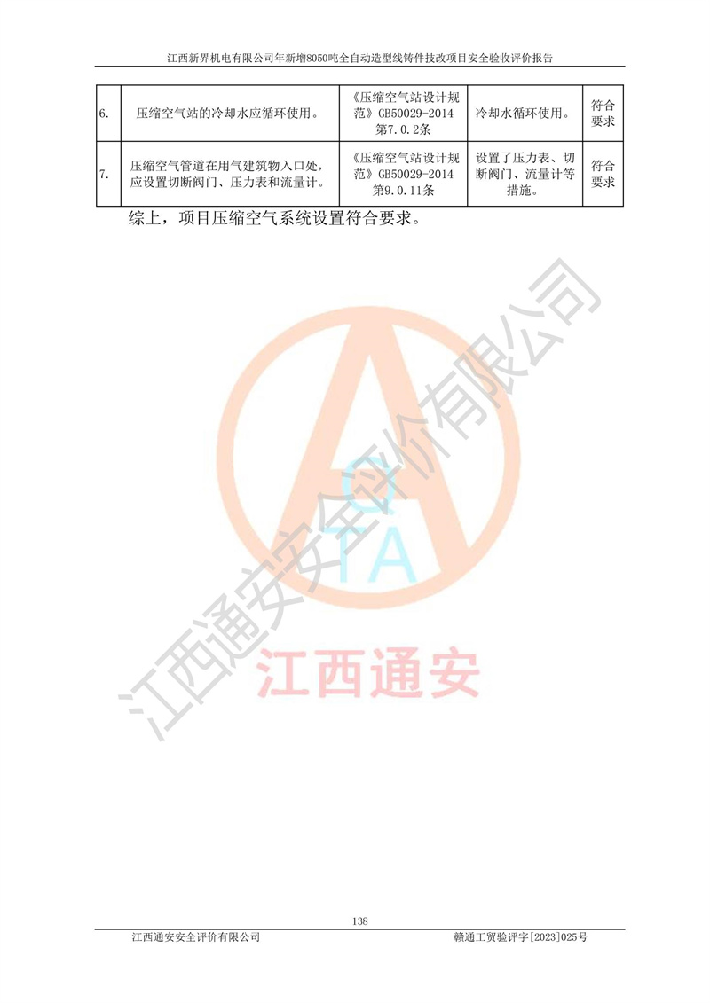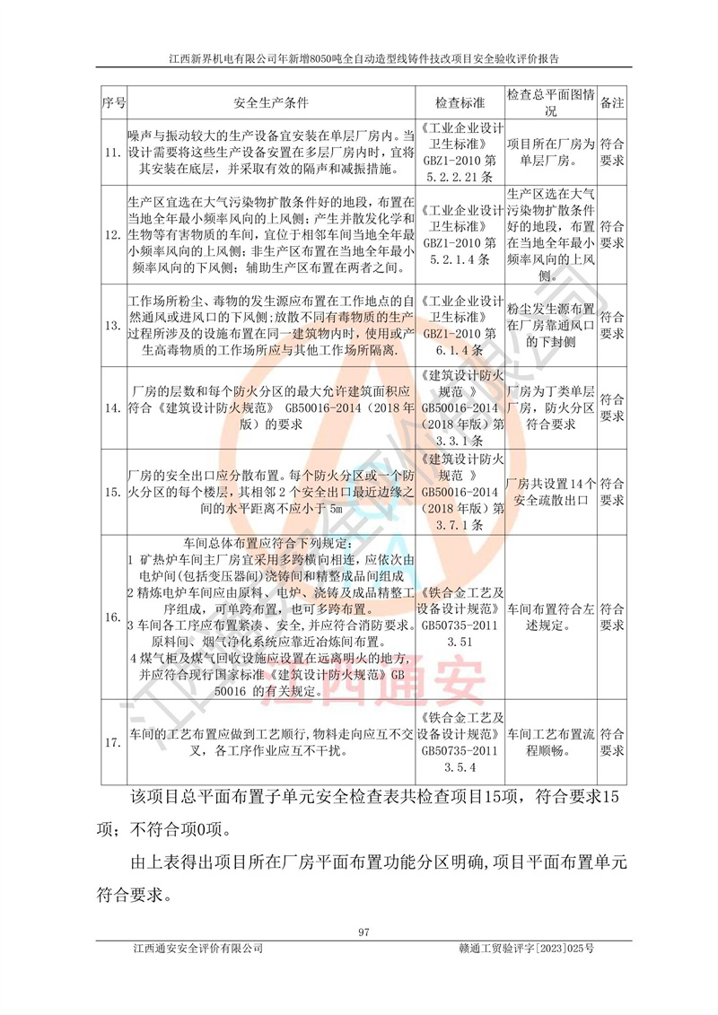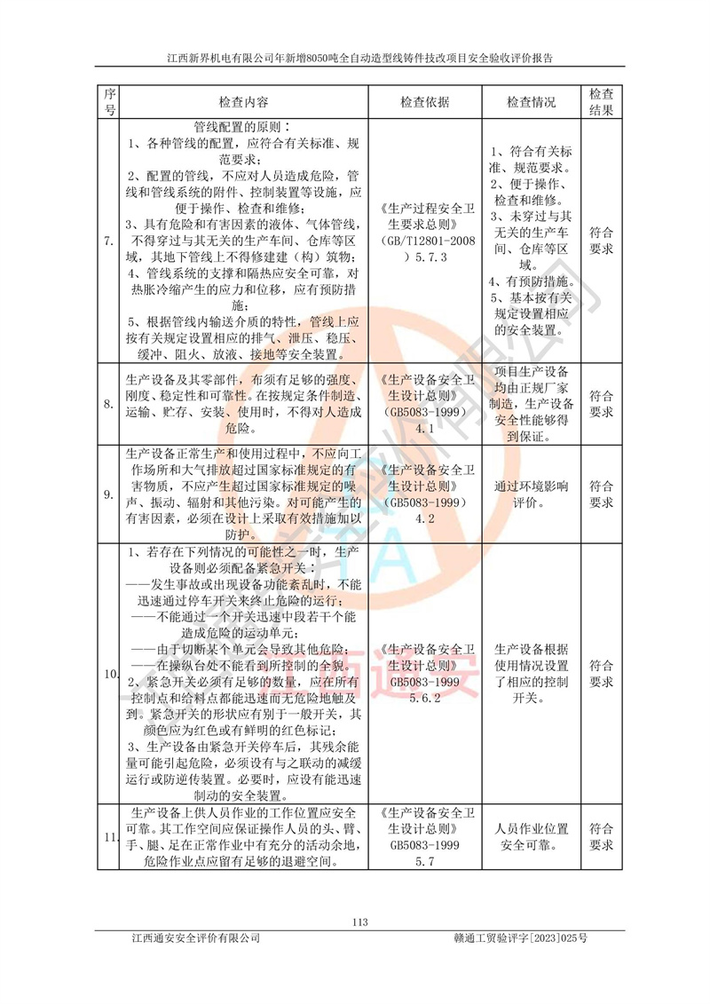評(píng)價(jià)報(bào)告名稱 | 江西新界機(jī)電有限公司新增8050噸全自動(dòng)造型線鑄件技改項(xiàng)目安全驗(yàn)收 | |||