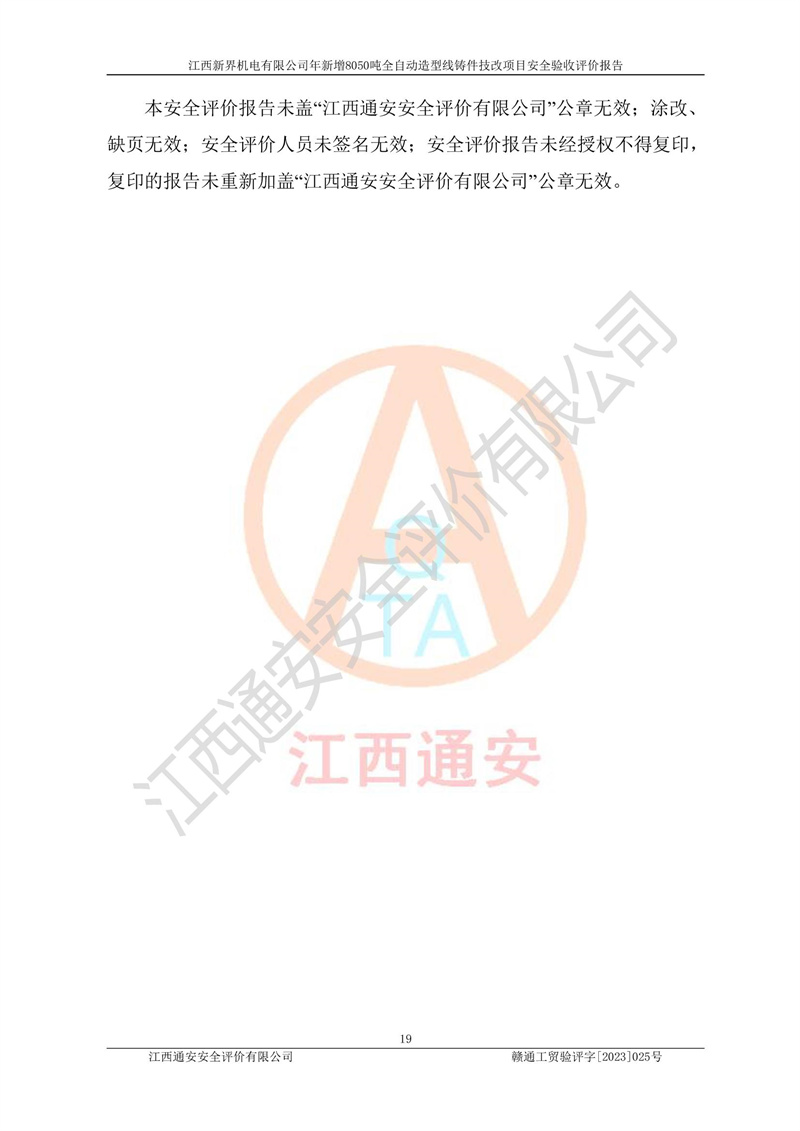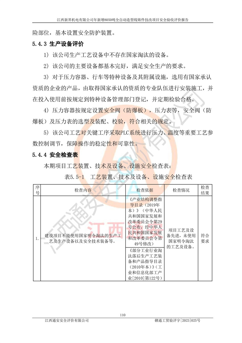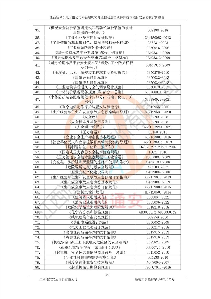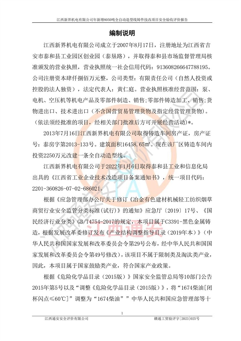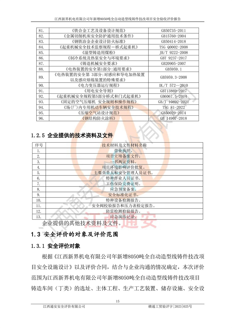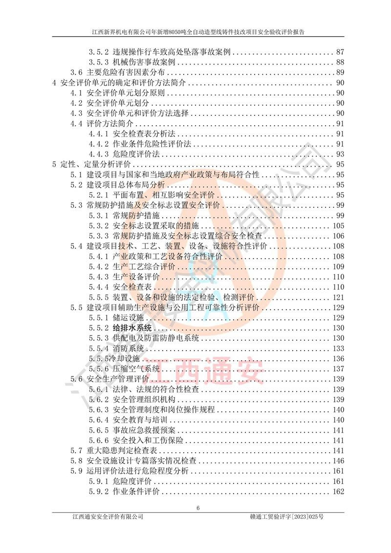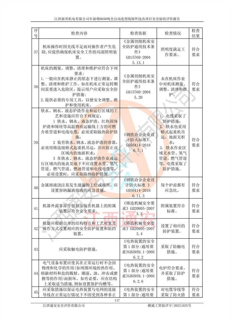 評(píng)價(jià)報(bào)告名稱 | 江西新界機(jī)電有限公司新增8050噸全自動(dòng)造型線鑄件技改項(xiàng)目安全驗(yàn)收 | |||
