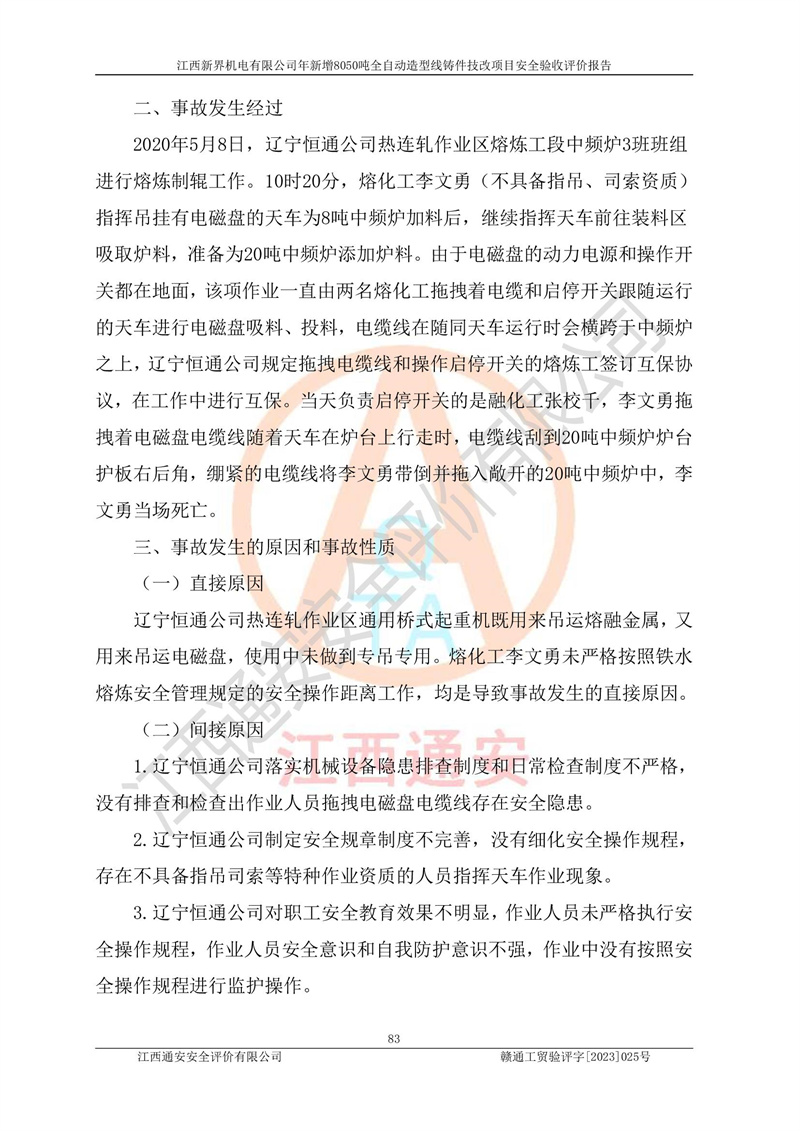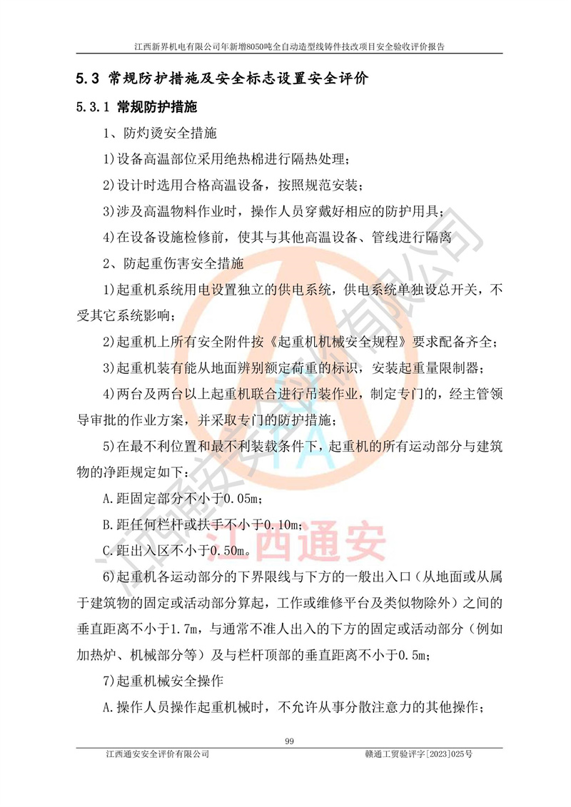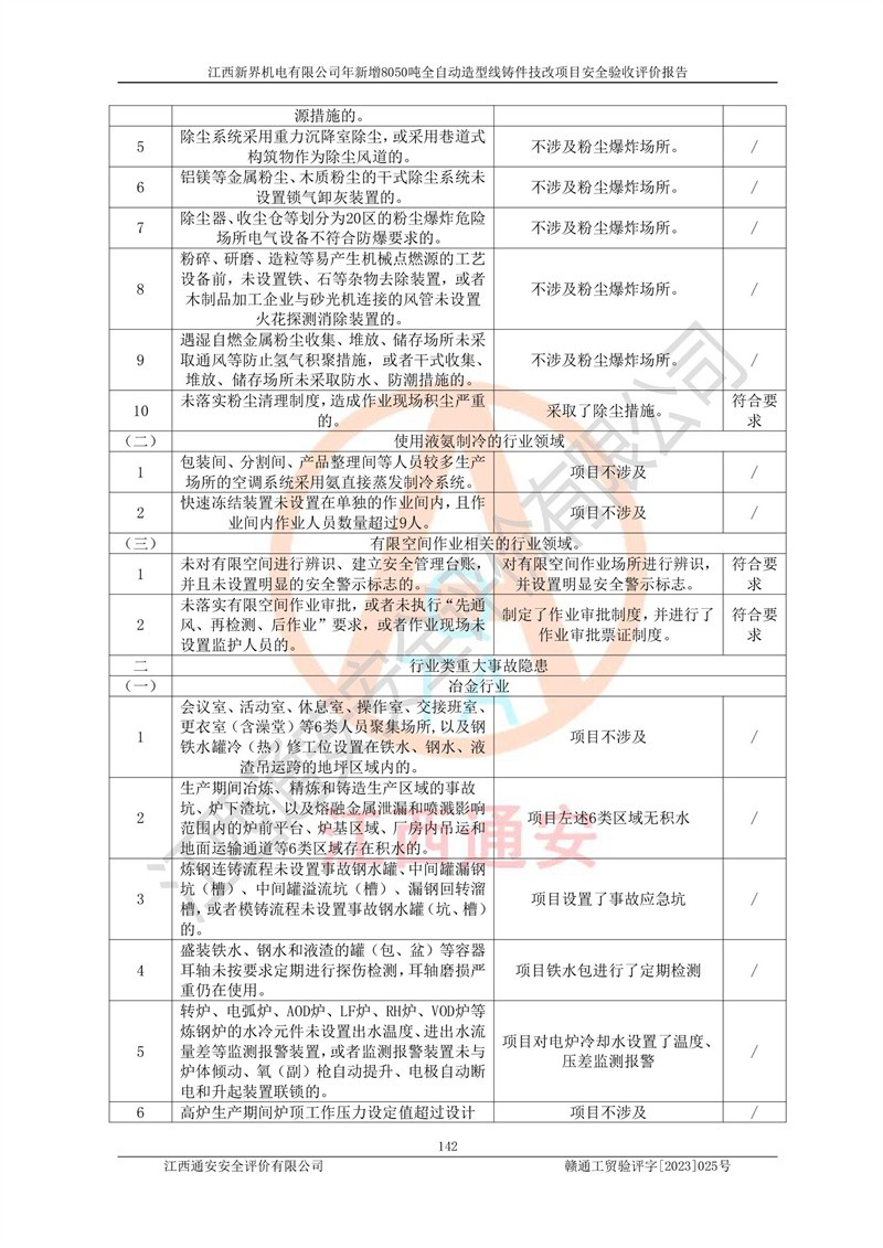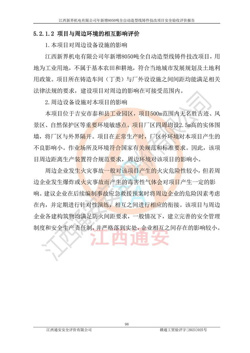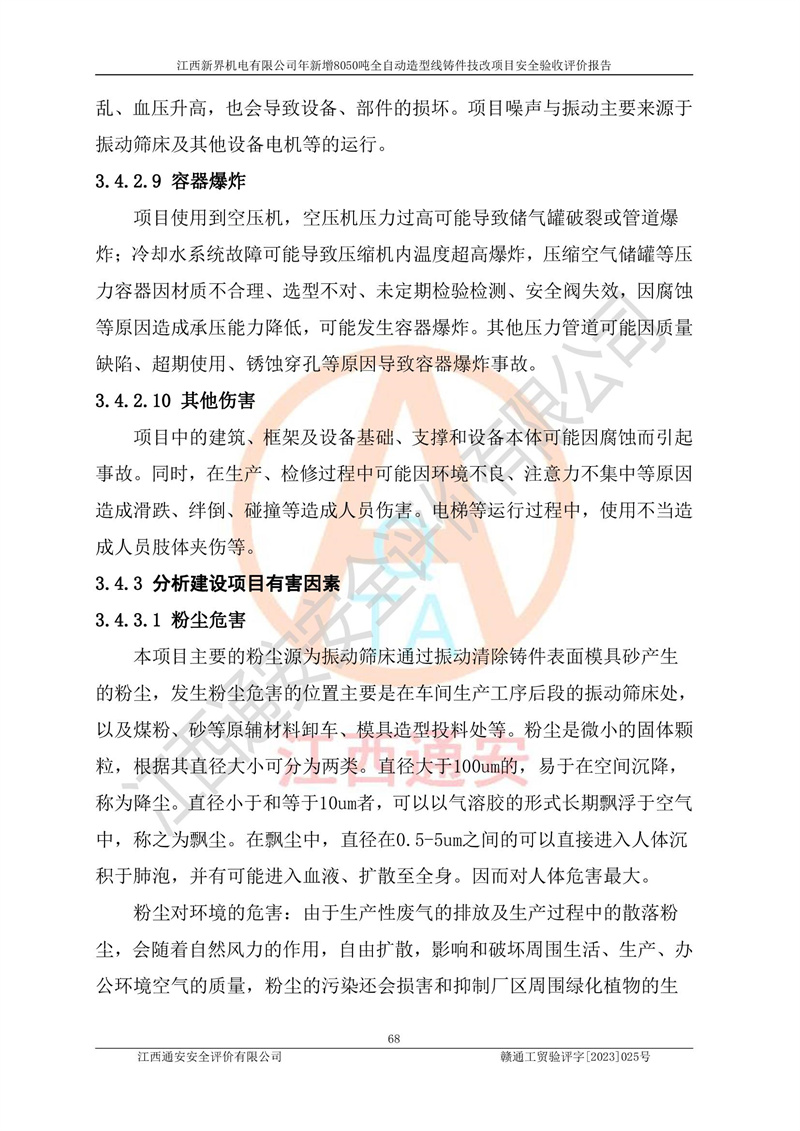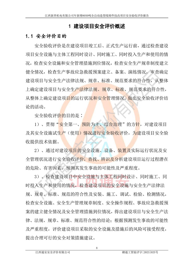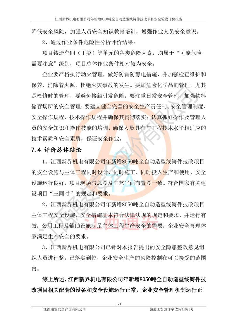 評(píng)價(jià)報(bào)告名稱 | 江西新界機(jī)電有限公司新增8050噸全自動(dòng)造型線鑄件技改項(xiàng)目安全驗(yàn)收 | |||