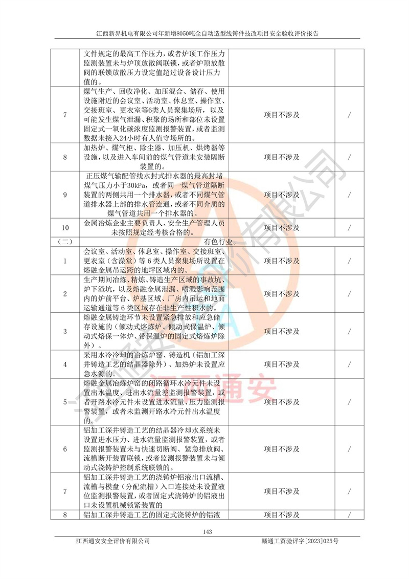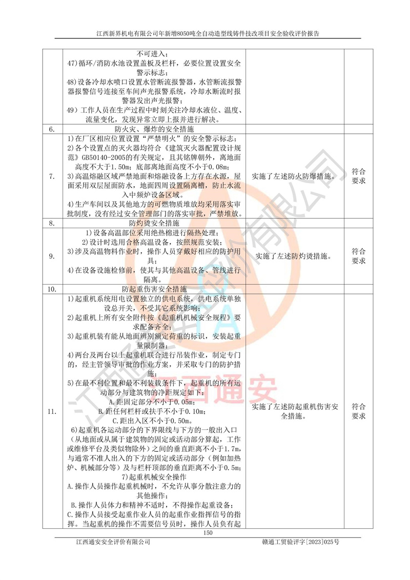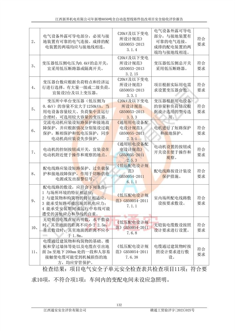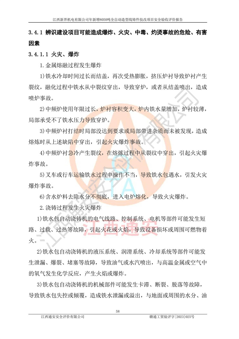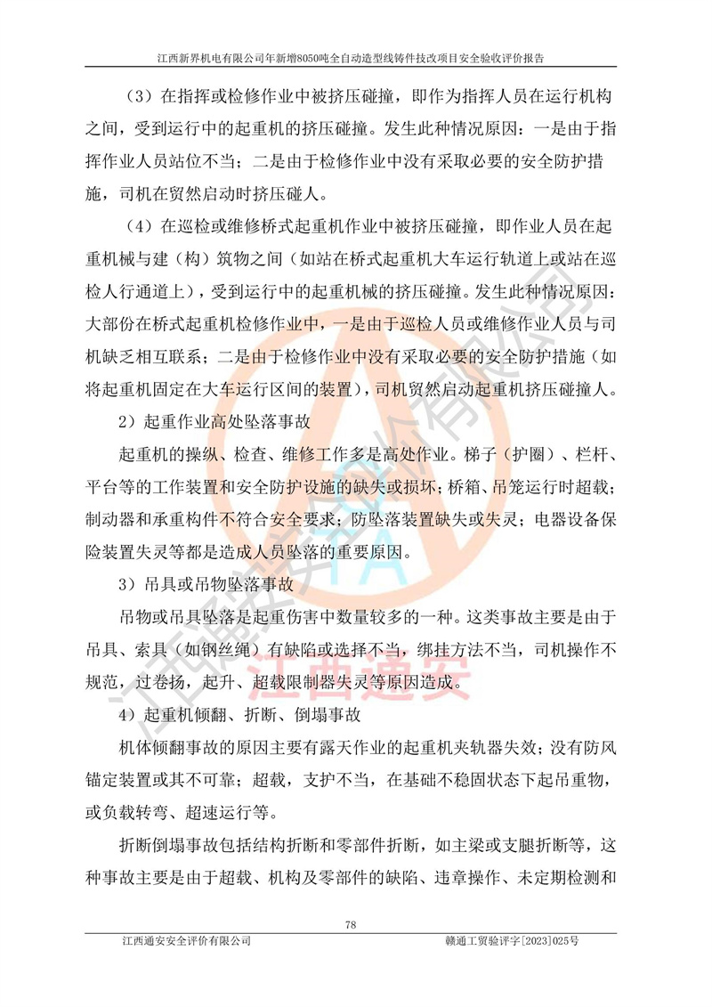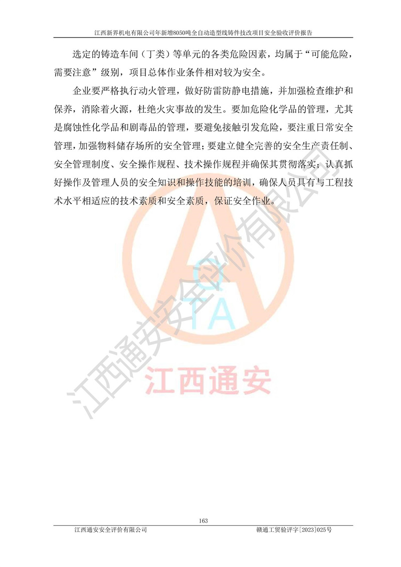 評(píng)價(jià)報(bào)告名稱 | 江西新界機(jī)電有限公司新增8050噸全自動(dòng)造型線鑄件技改項(xiàng)目安全驗(yàn)收 | |||