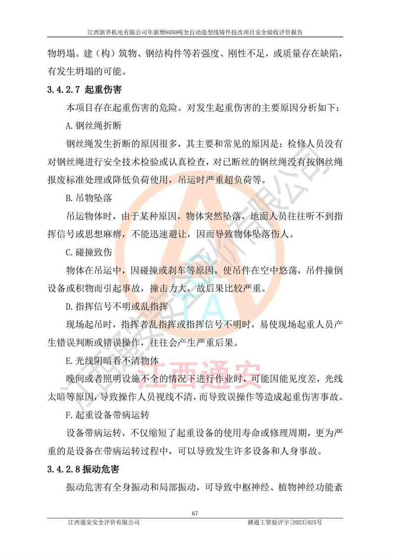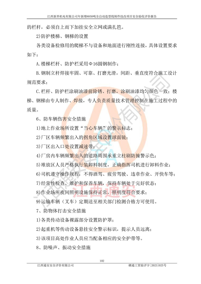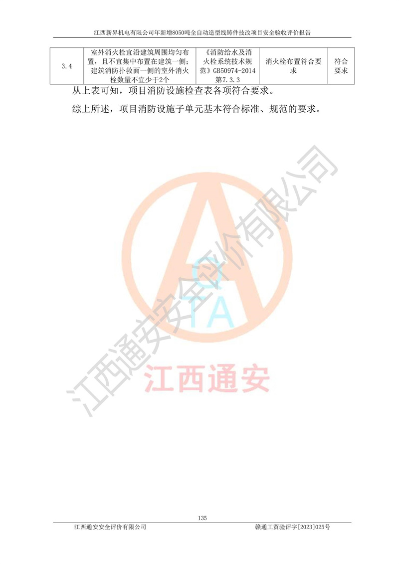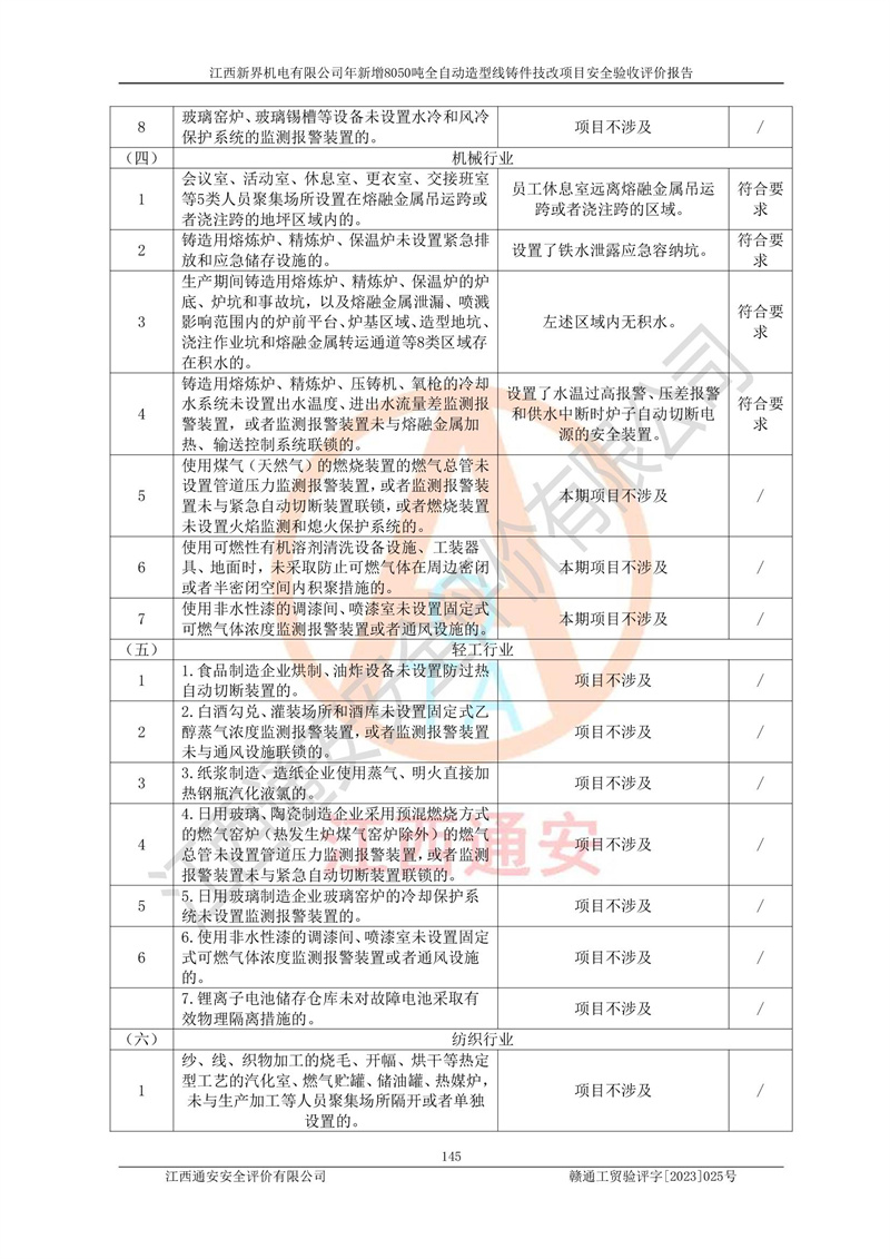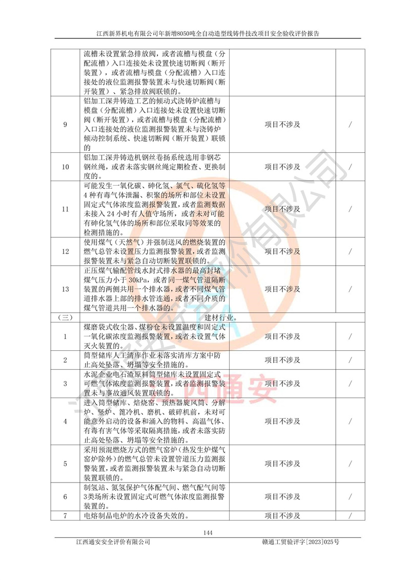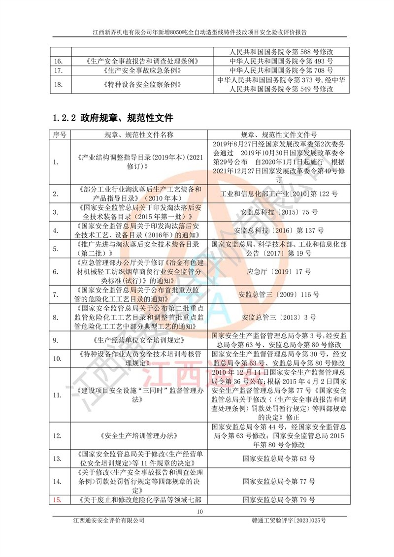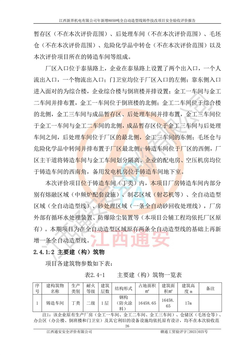 評(píng)價(jià)報(bào)告名稱 | 江西新界機(jī)電有限公司新增8050噸全自動(dòng)造型線鑄件技改項(xiàng)目安全驗(yàn)收 | |||