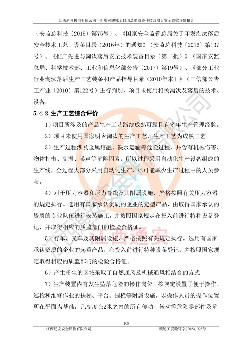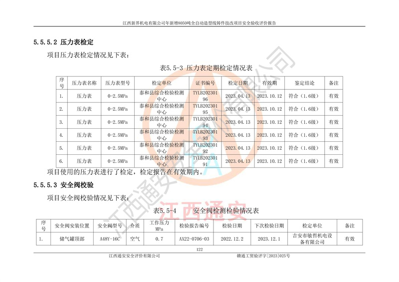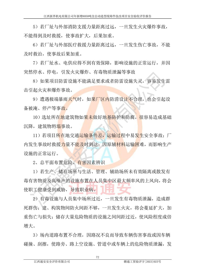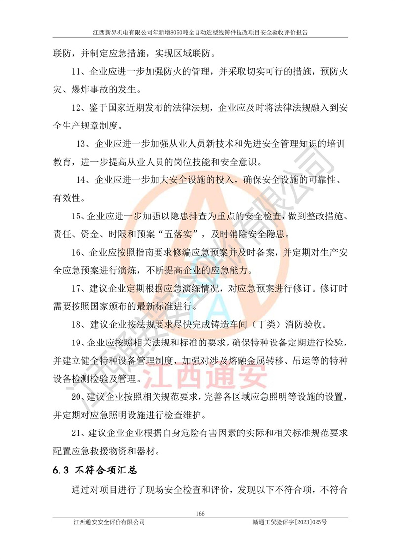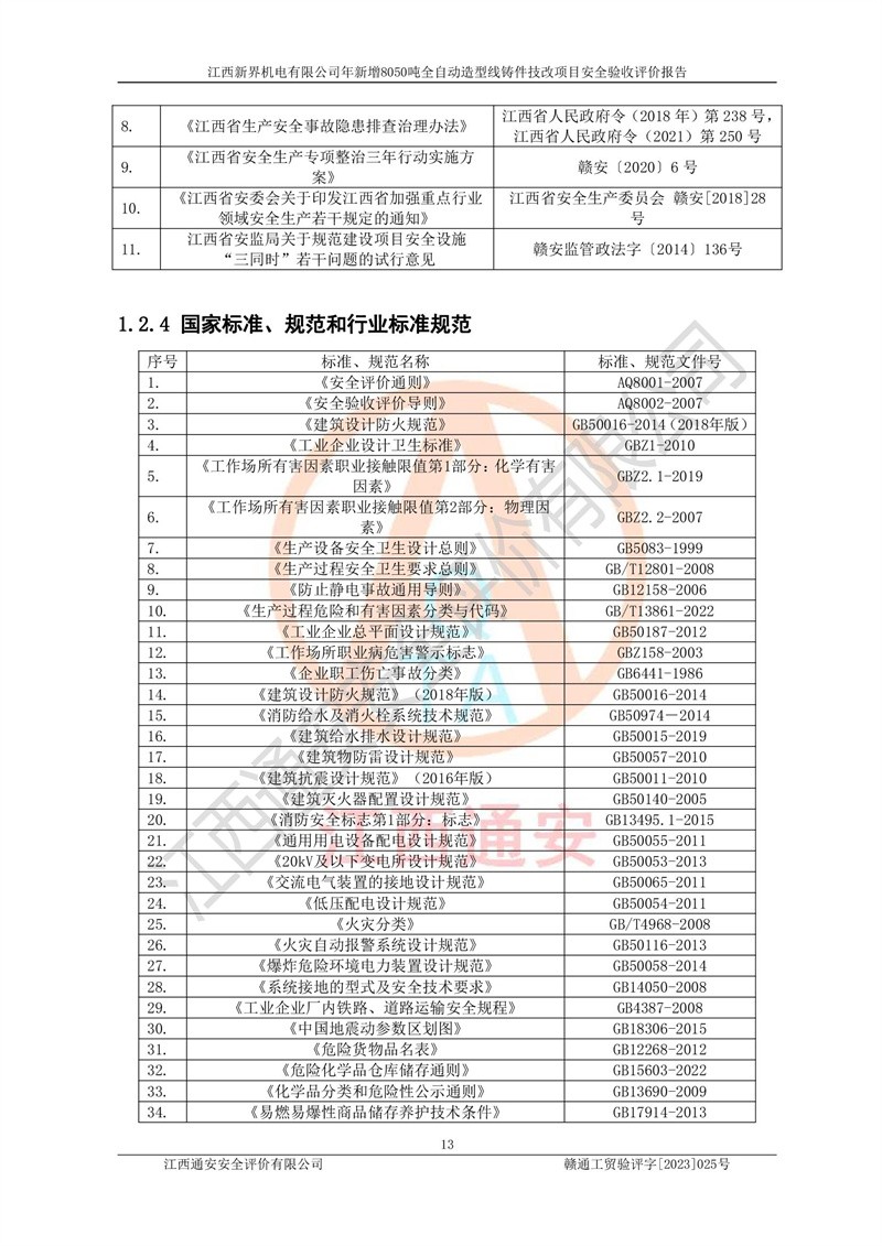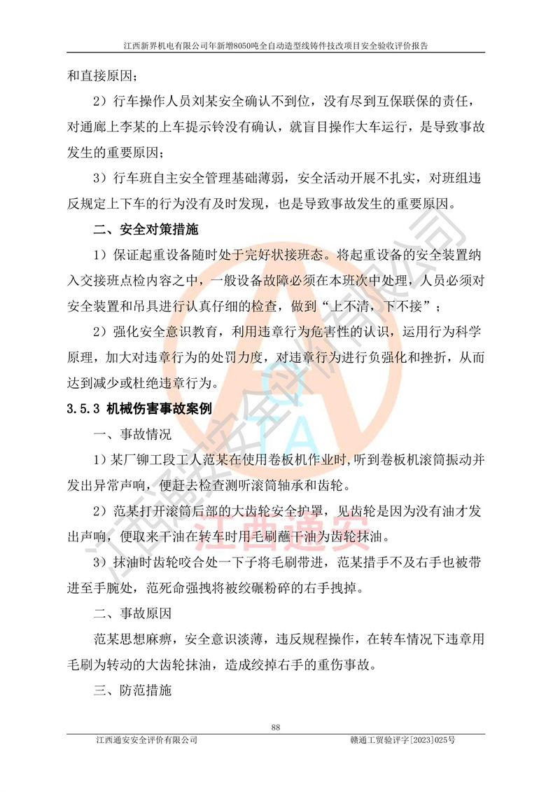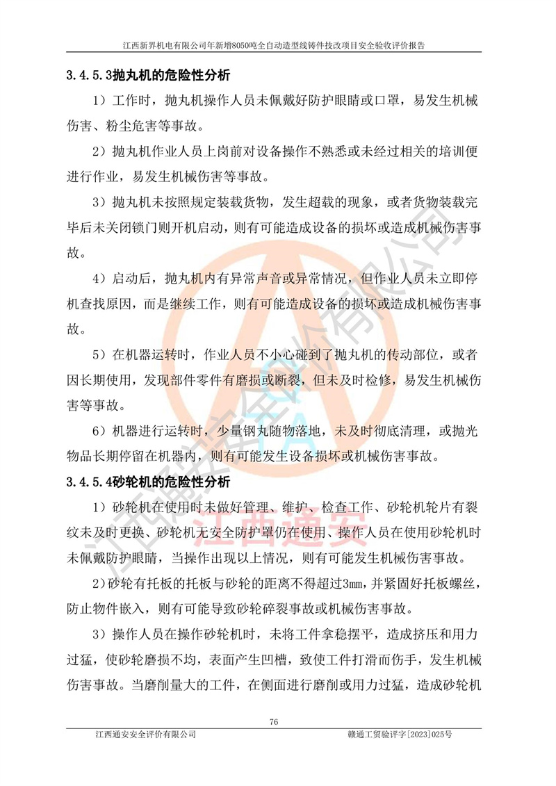 評(píng)價(jià)報(bào)告名稱 | 江西新界機(jī)電有限公司新增8050噸全自動(dòng)造型線鑄件技改項(xiàng)目安全驗(yàn)收 | |||