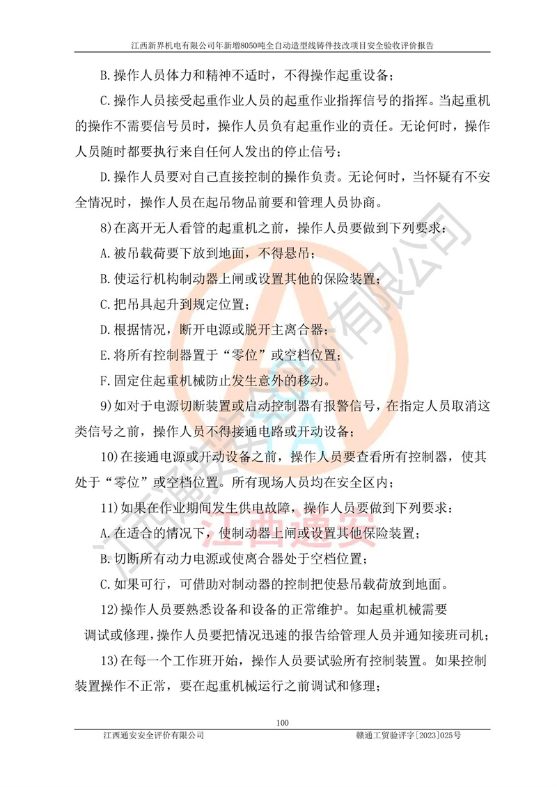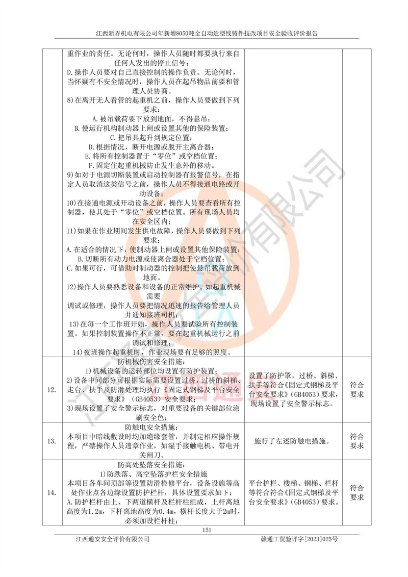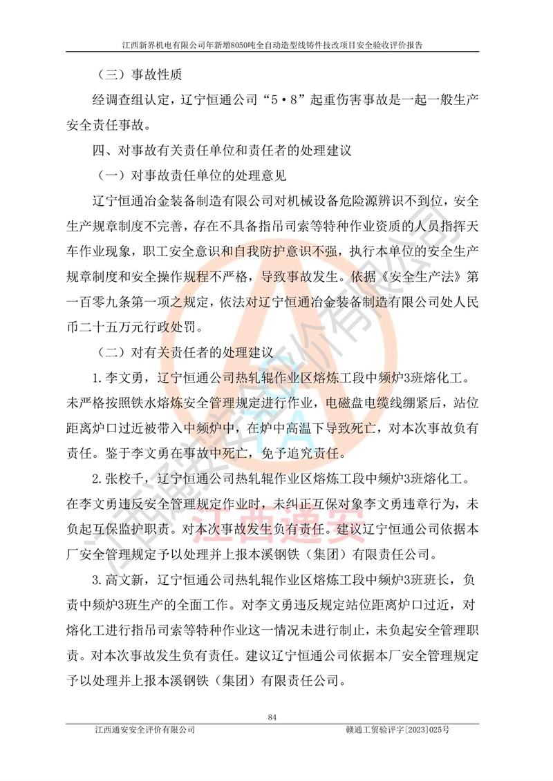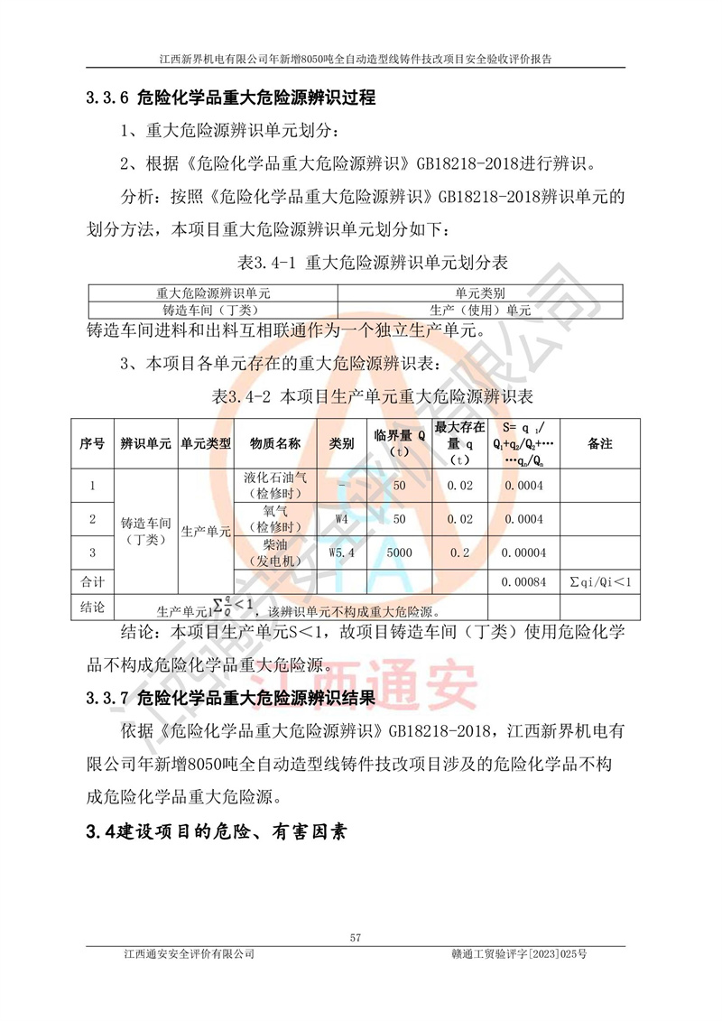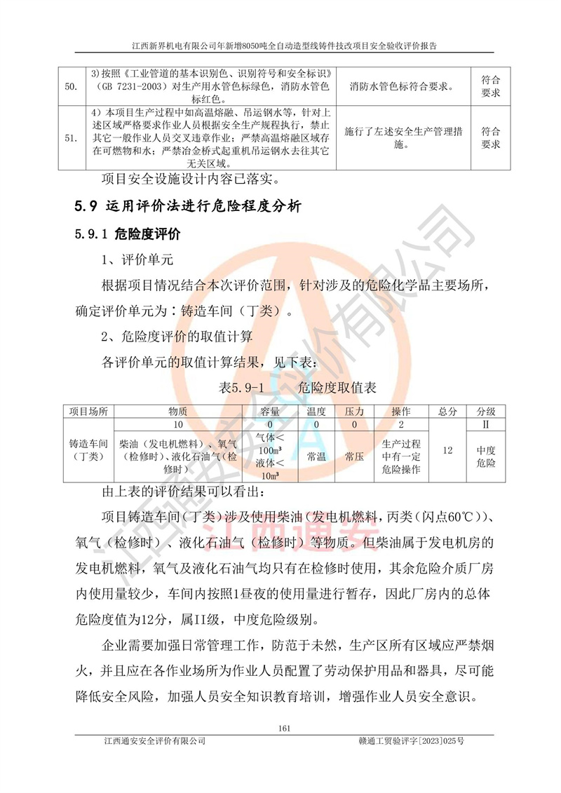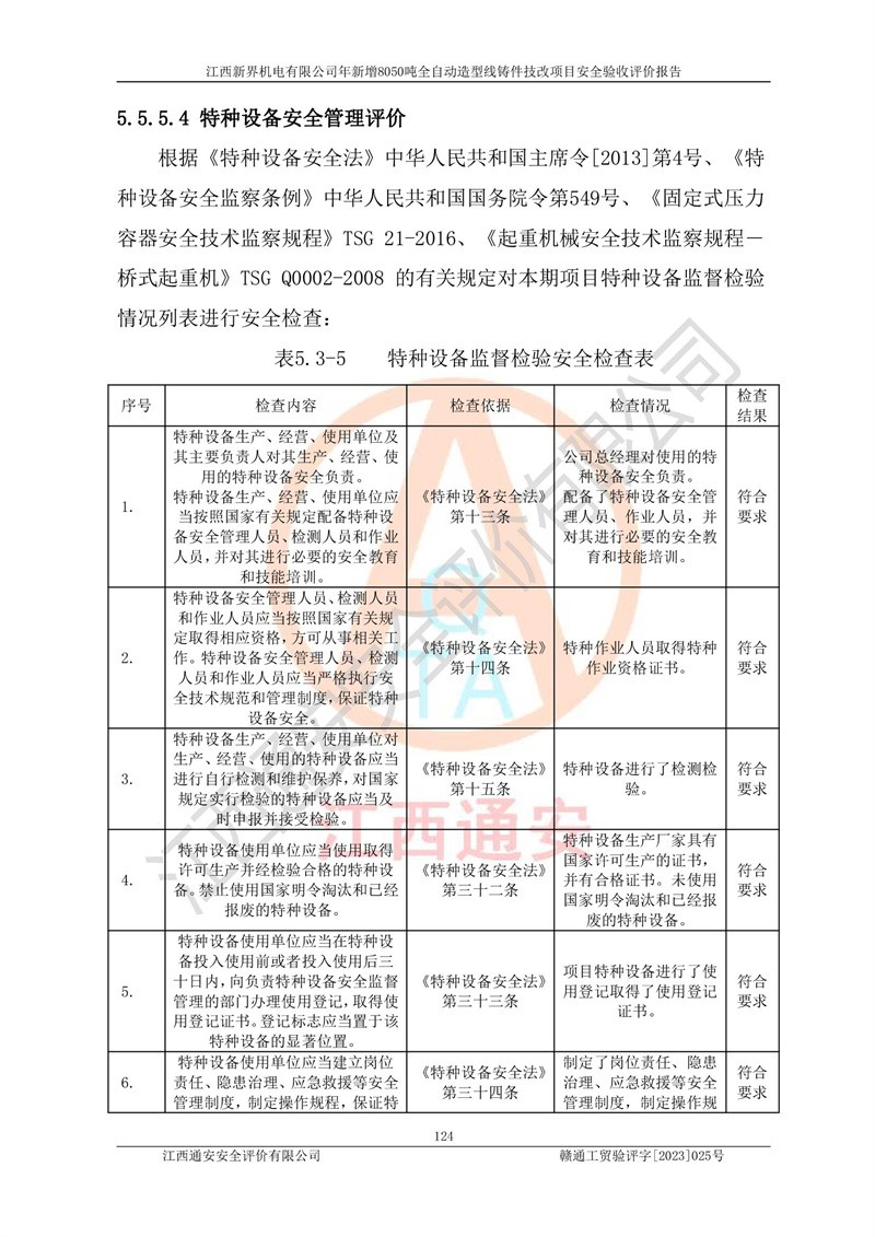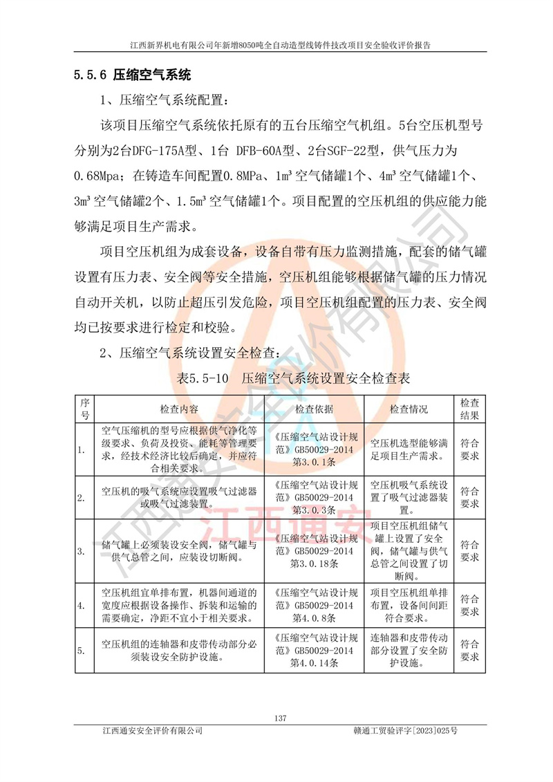 評(píng)價(jià)報(bào)告名稱 | 江西新界機(jī)電有限公司新增8050噸全自動(dòng)造型線鑄件技改項(xiàng)目安全驗(yàn)收 | |||