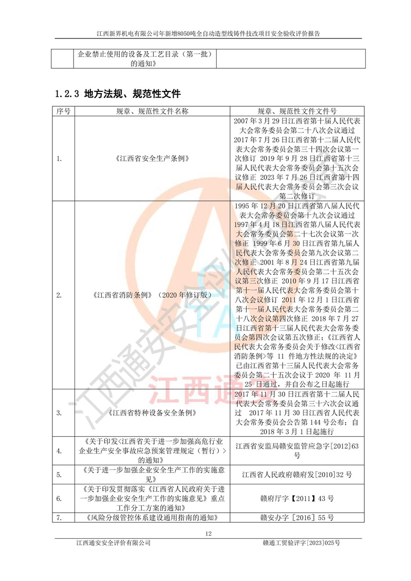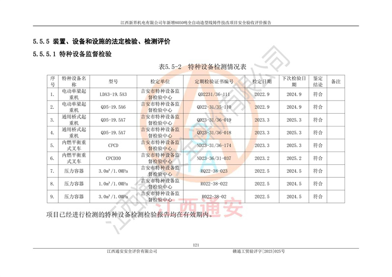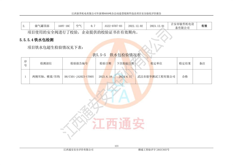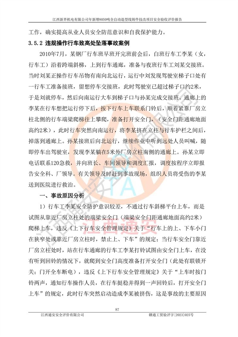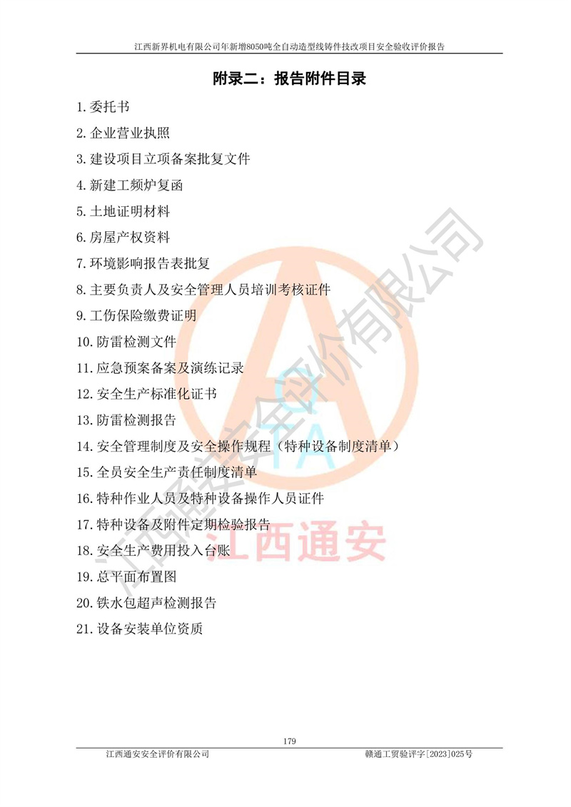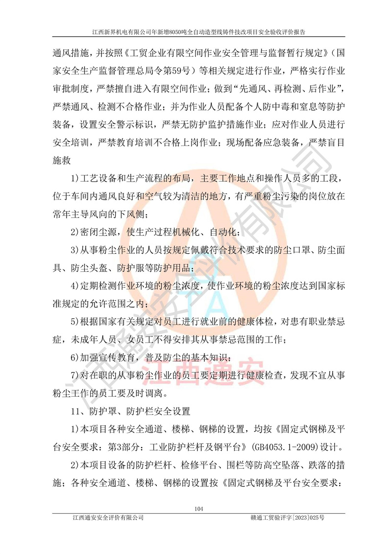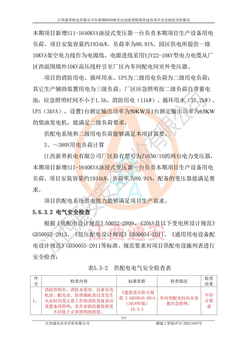 評(píng)價(jià)報(bào)告名稱 | 江西新界機(jī)電有限公司新增8050噸全自動(dòng)造型線鑄件技改項(xiàng)目安全驗(yàn)收 | |||