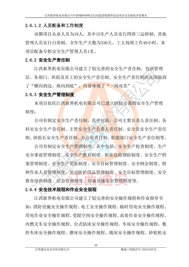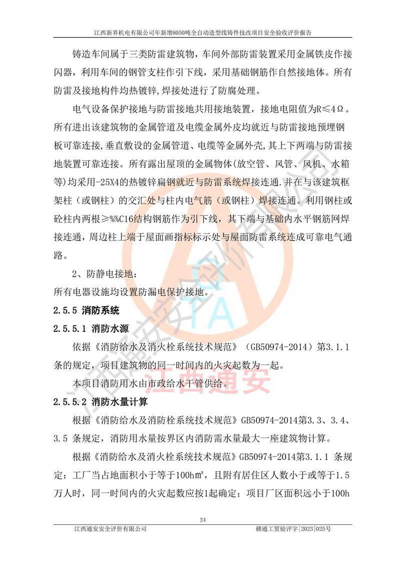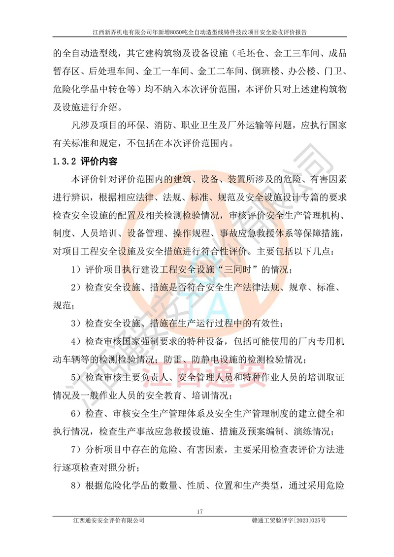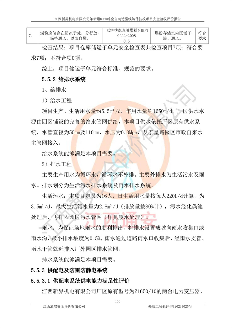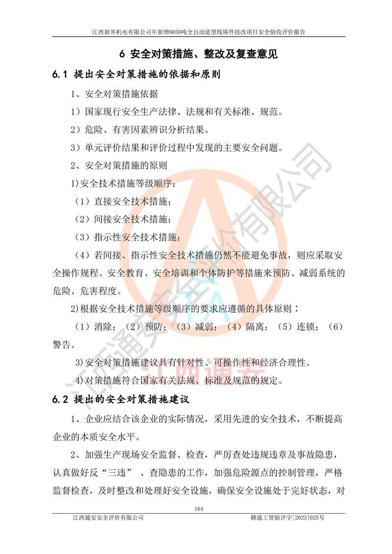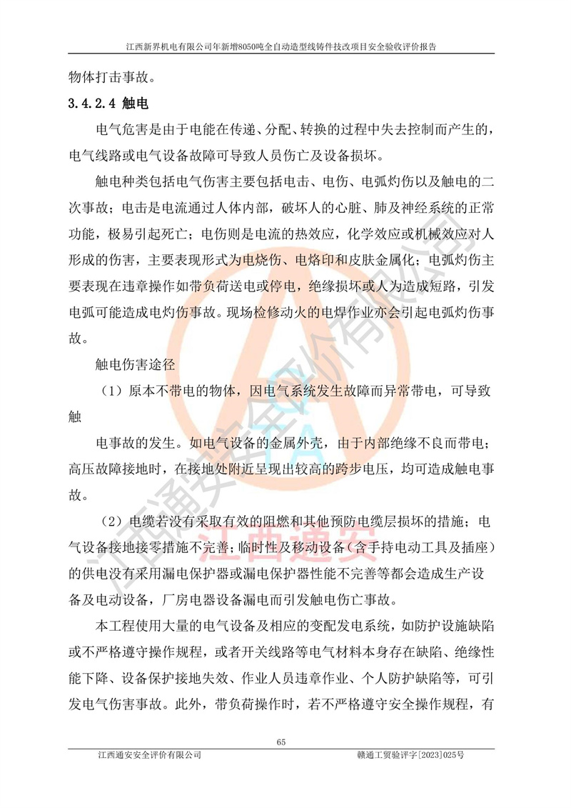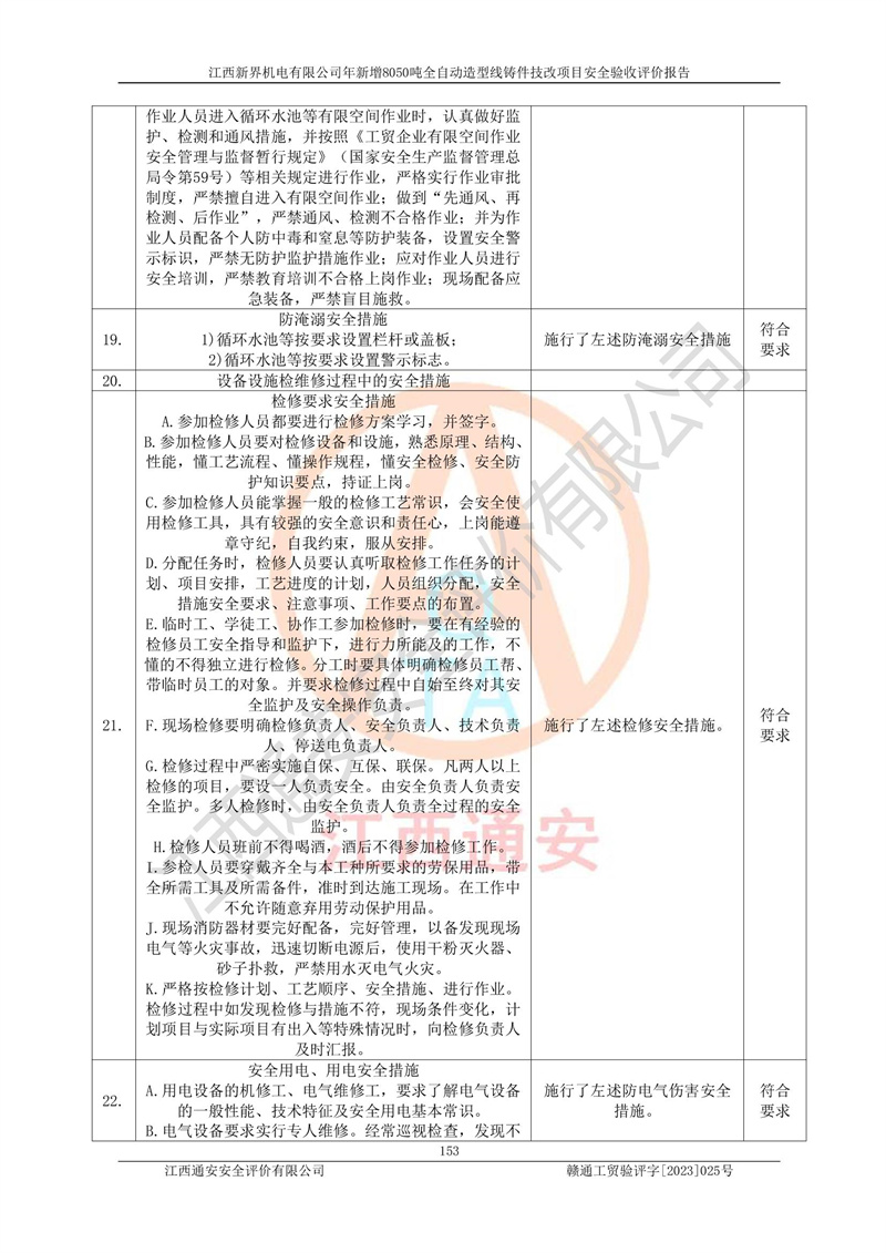評(píng)價(jià)報(bào)告名稱 | 江西新界機(jī)電有限公司新增8050噸全自動(dòng)造型線鑄件技改項(xiàng)目安全驗(yàn)收 | |||