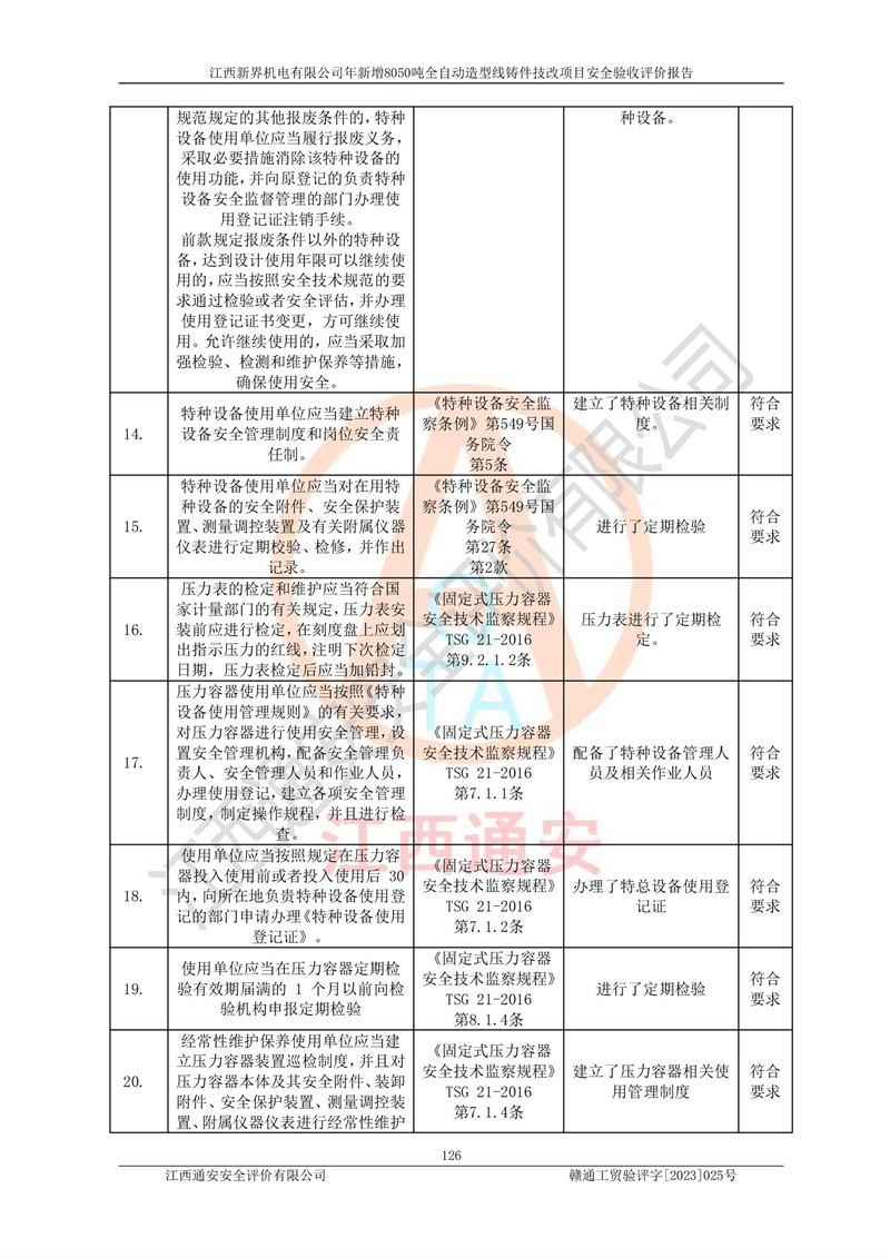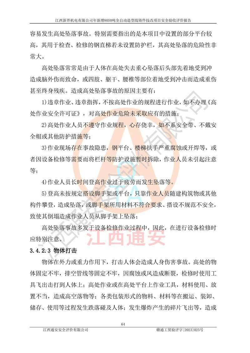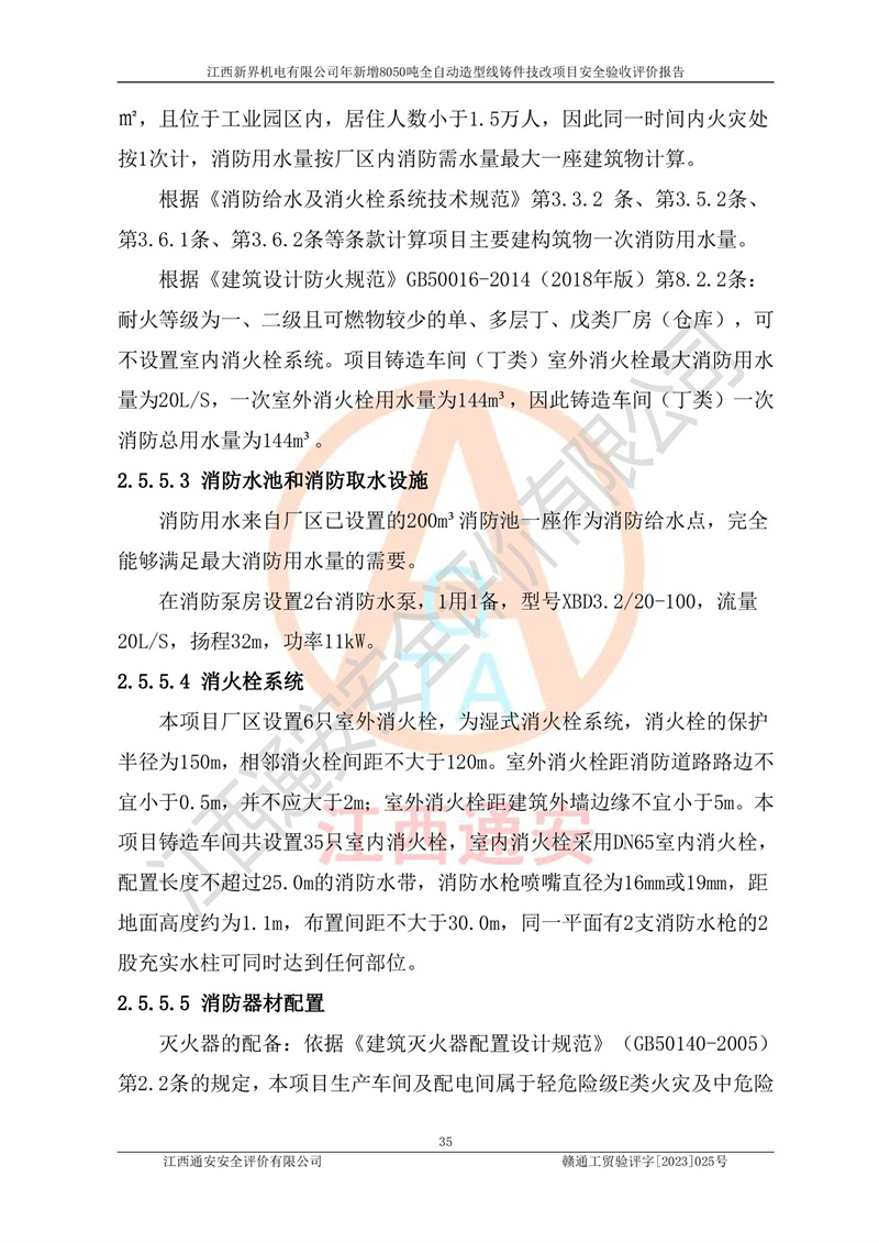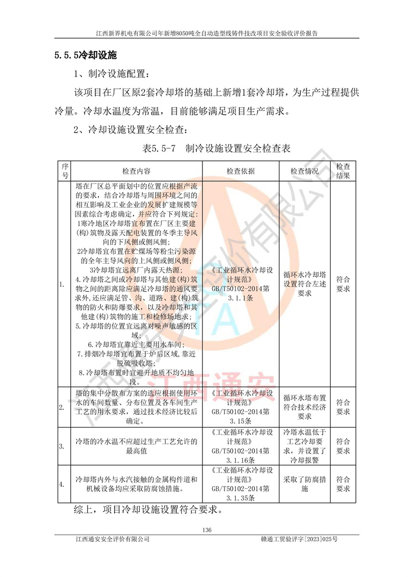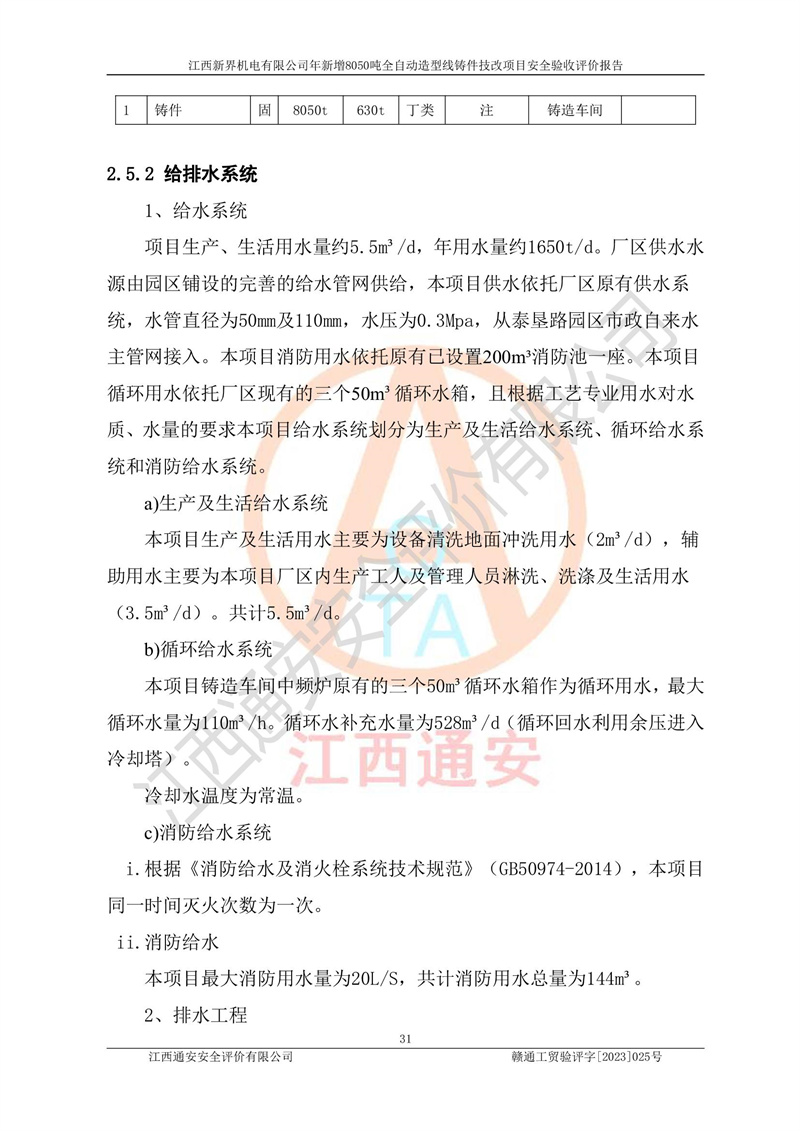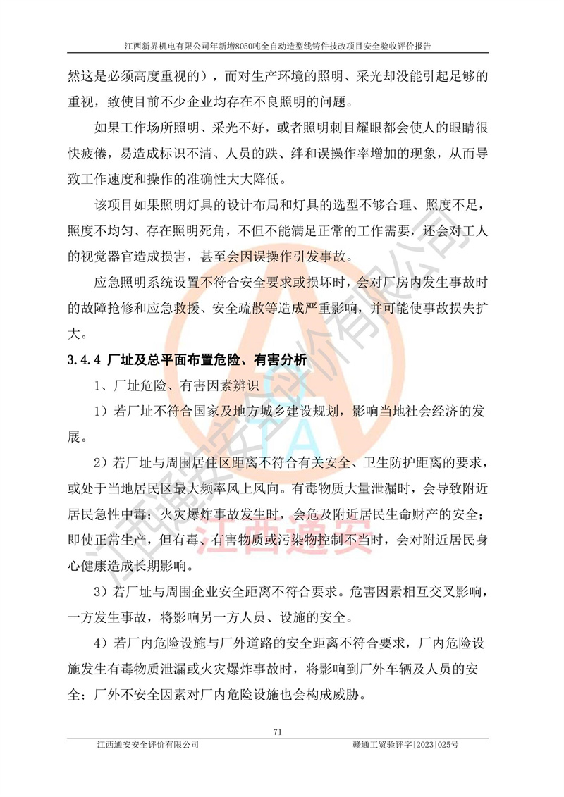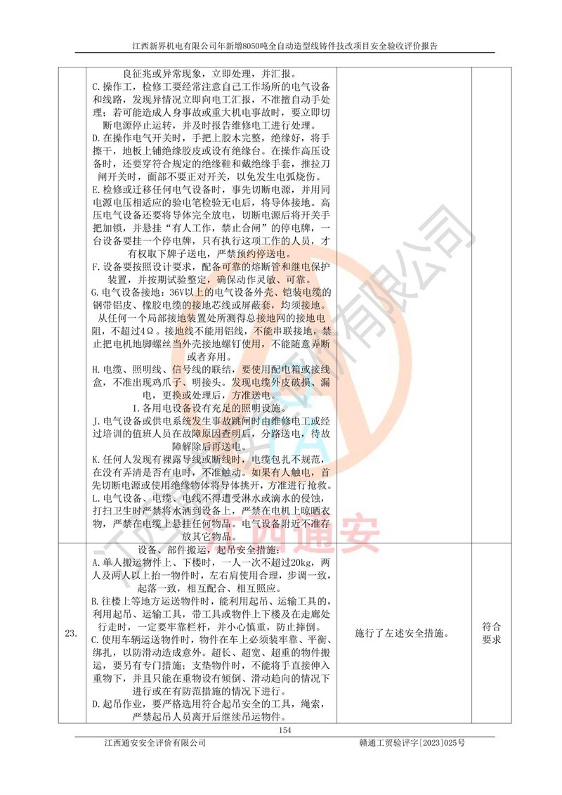 評(píng)價(jià)報(bào)告名稱 | 江西新界機(jī)電有限公司新增8050噸全自動(dòng)造型線鑄件技改項(xiàng)目安全驗(yàn)收 | |||