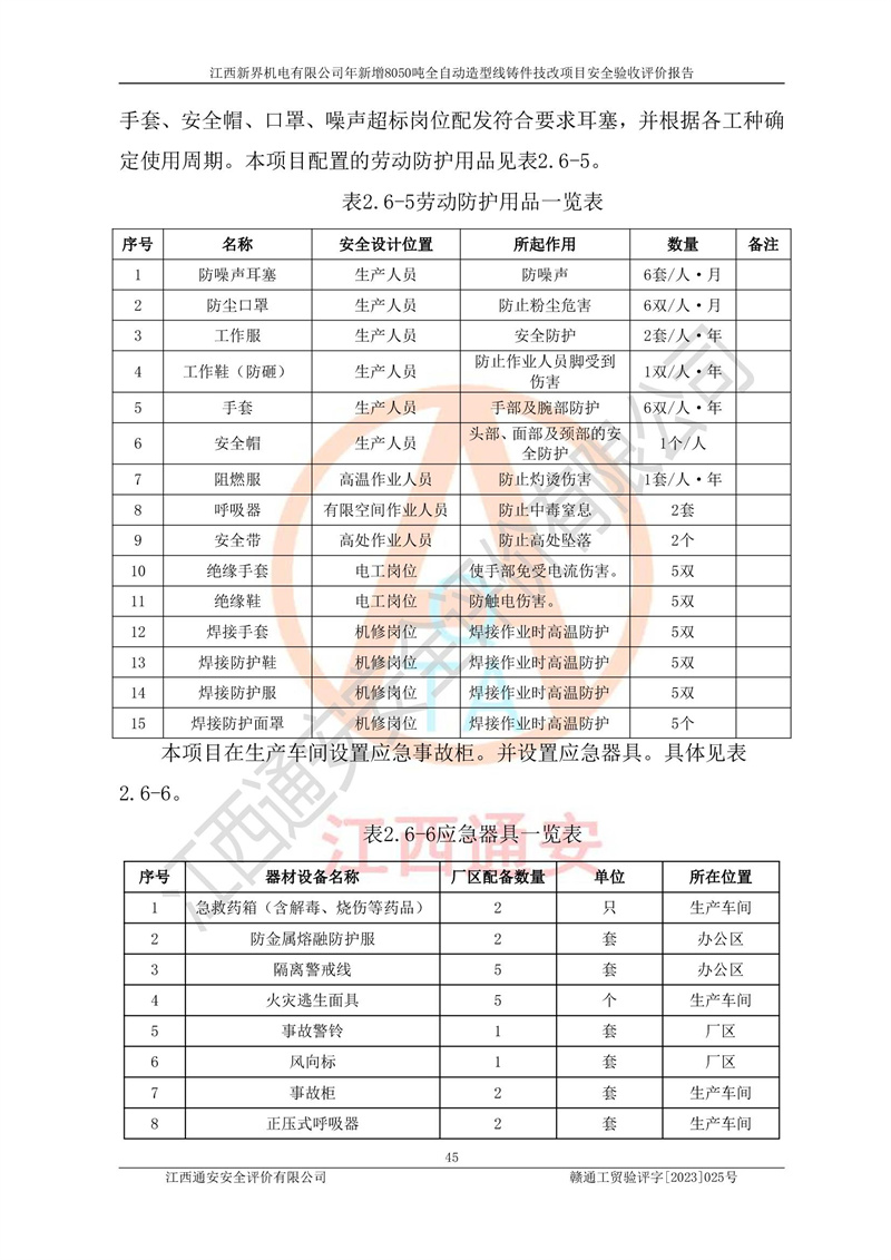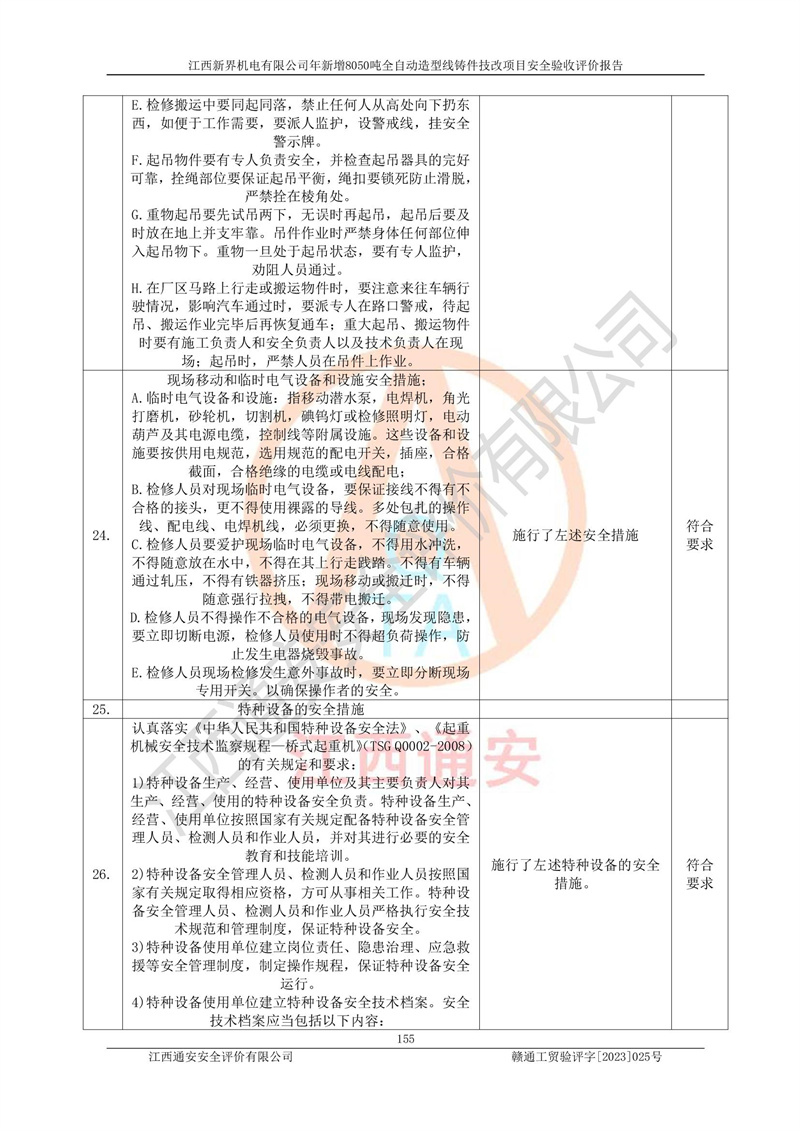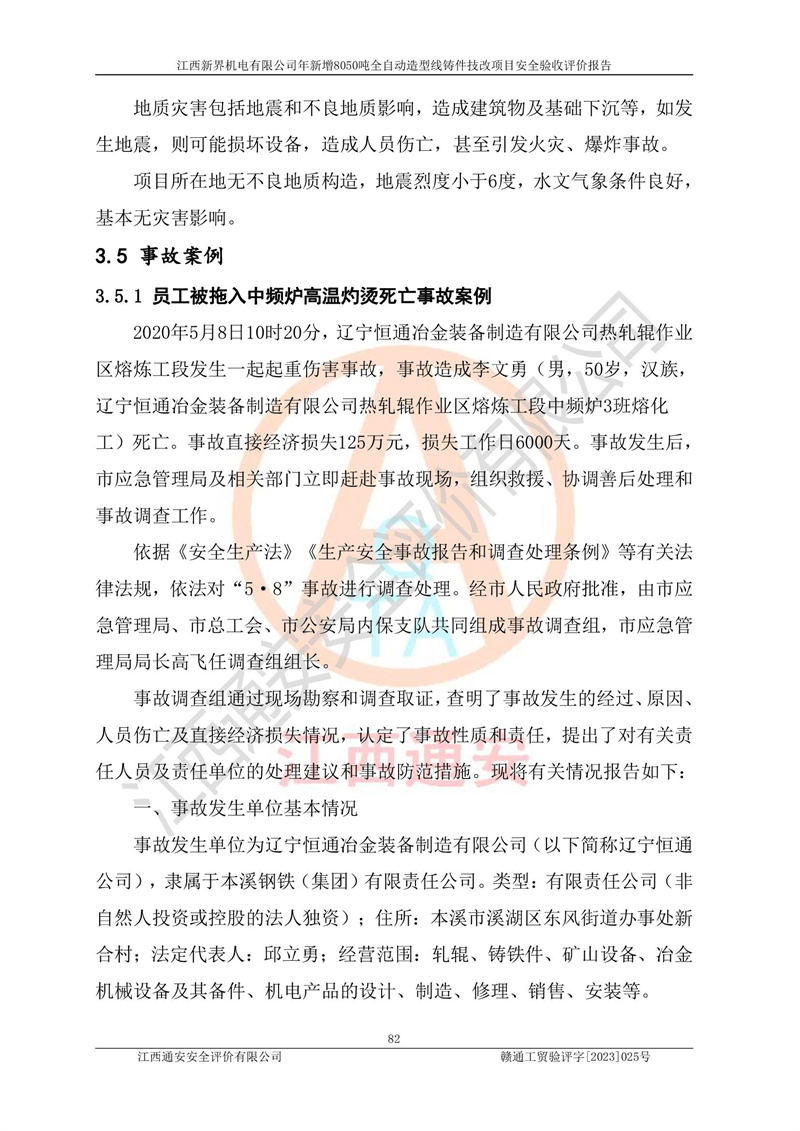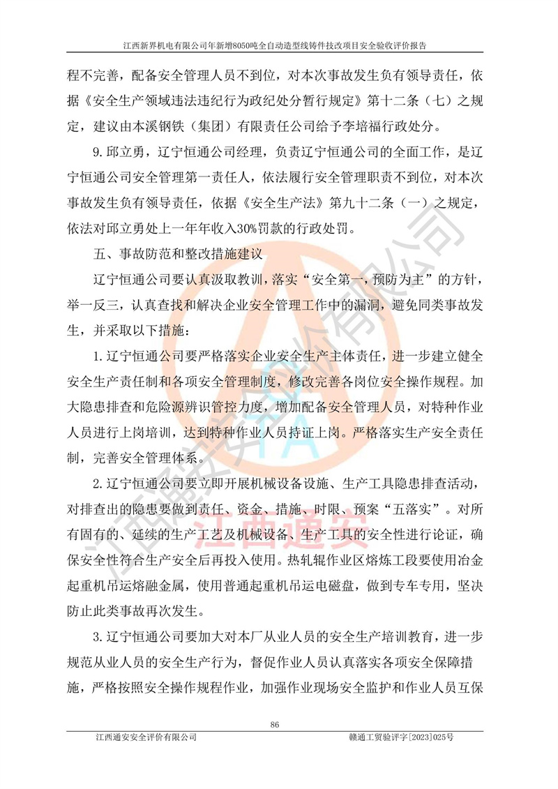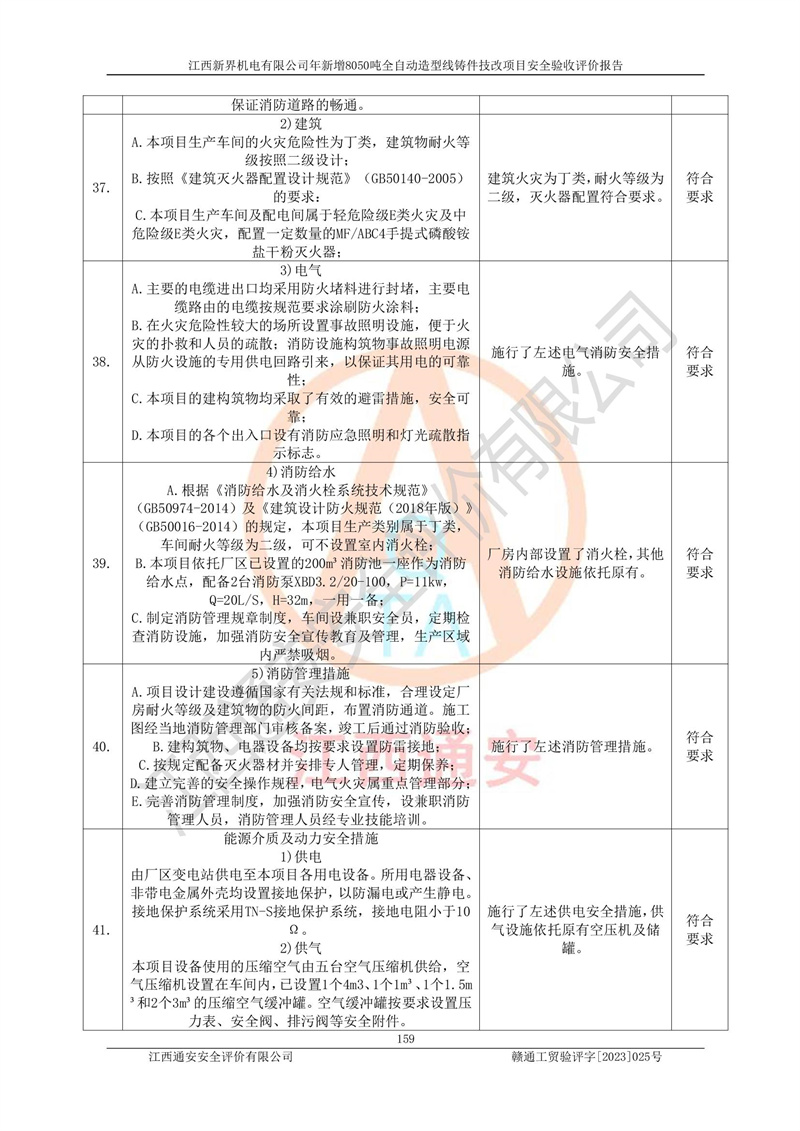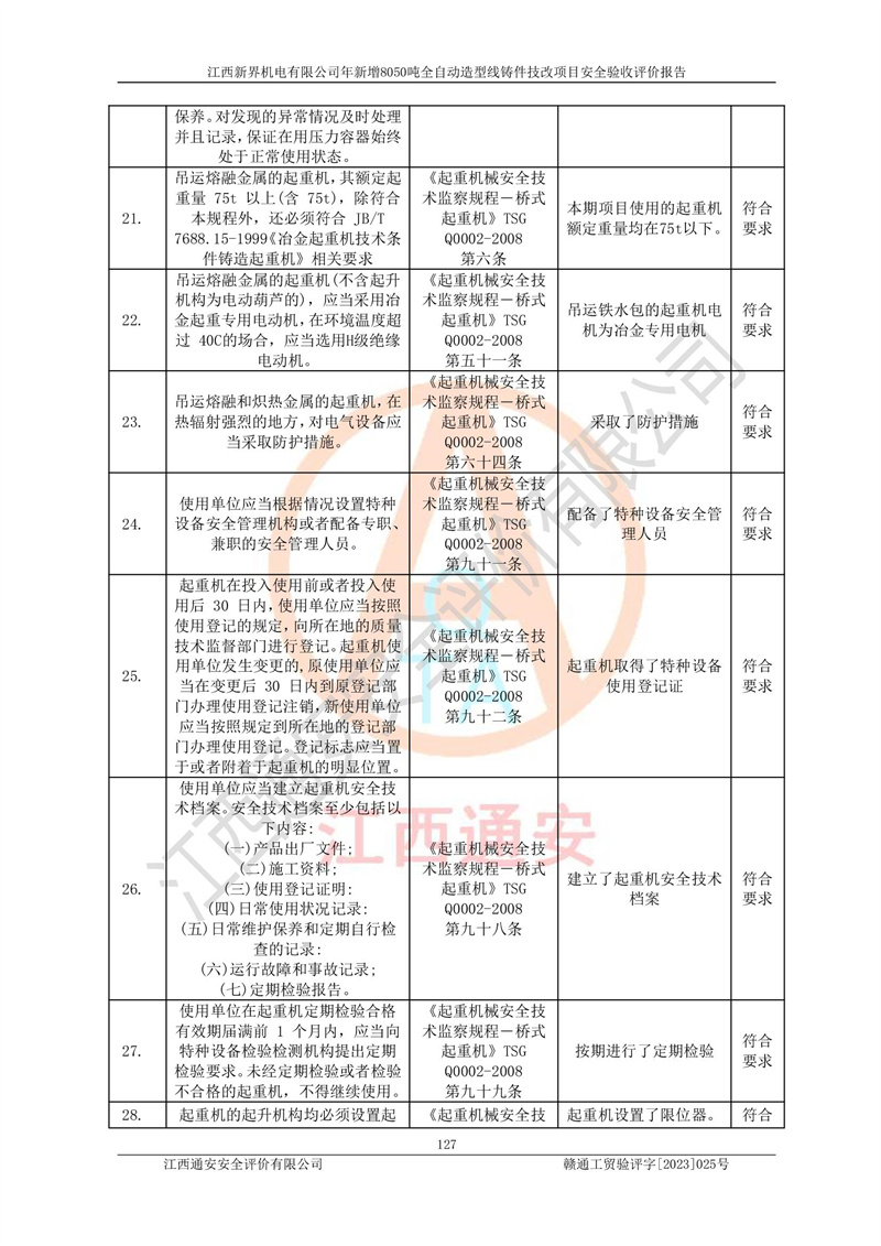 評(píng)價(jià)報(bào)告名稱 | 江西新界機(jī)電有限公司新增8050噸全自動(dòng)造型線鑄件技改項(xiàng)目安全驗(yàn)收 | |||