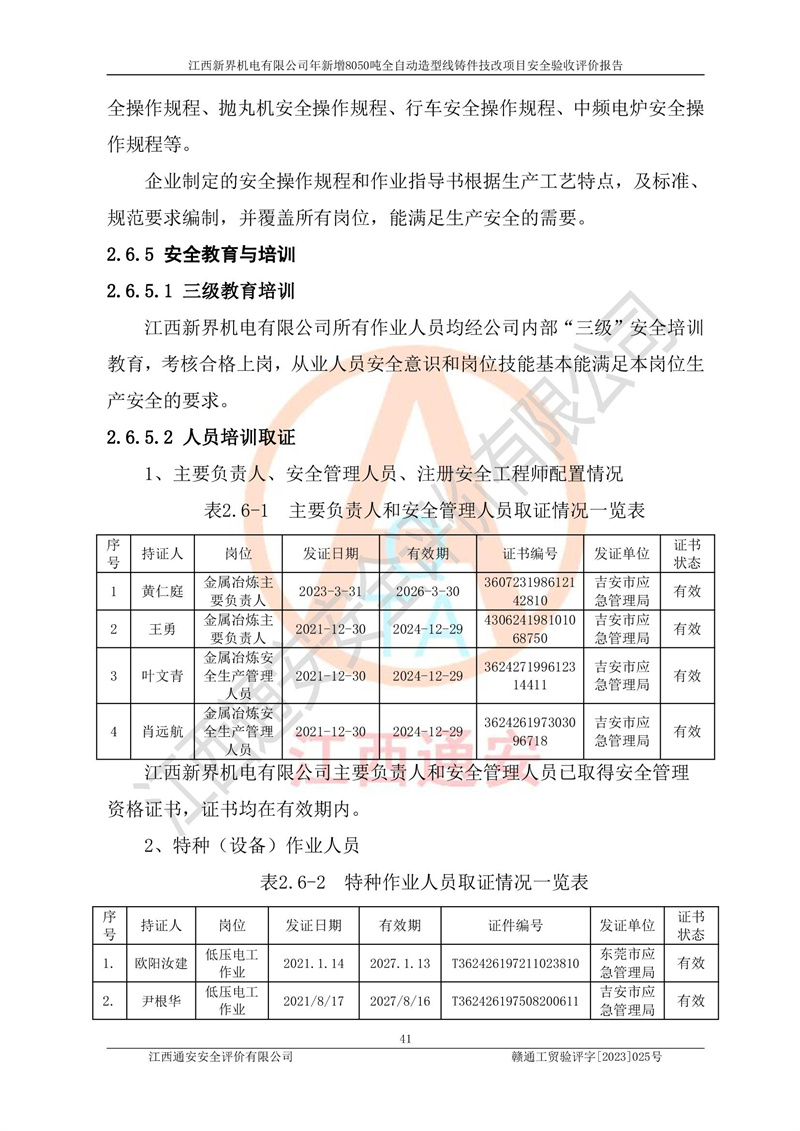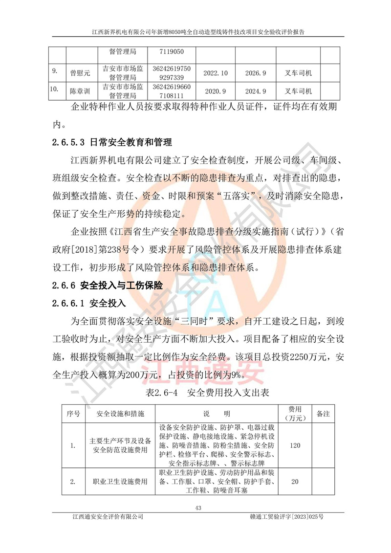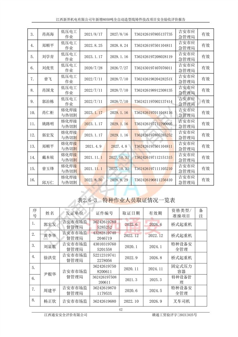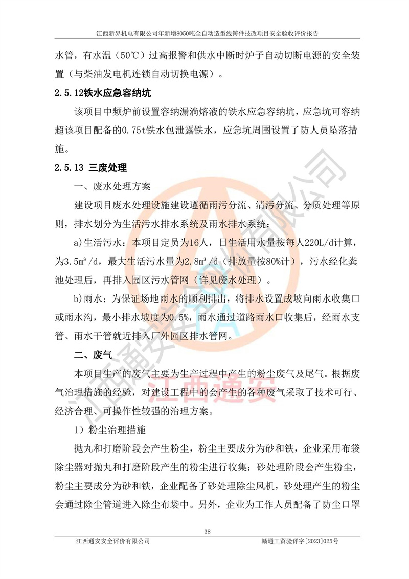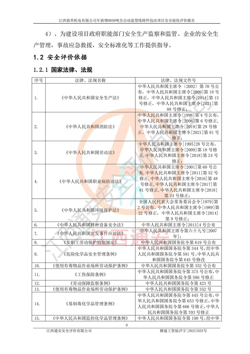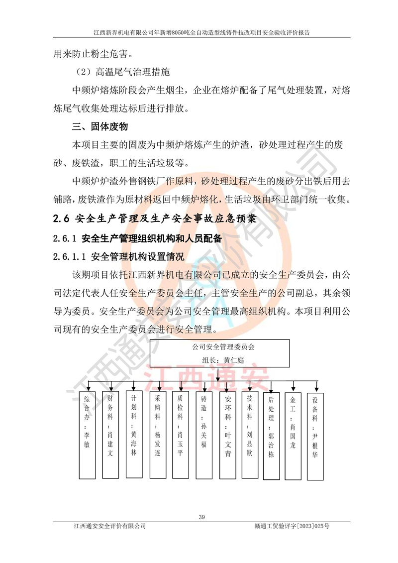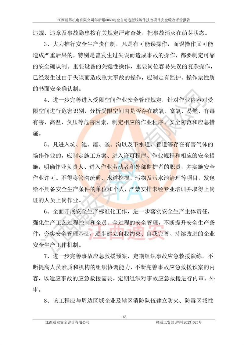 評(píng)價(jià)報(bào)告名稱 | 江西新界機(jī)電有限公司新增8050噸全自動(dòng)造型線鑄件技改項(xiàng)目安全驗(yàn)收 | |||