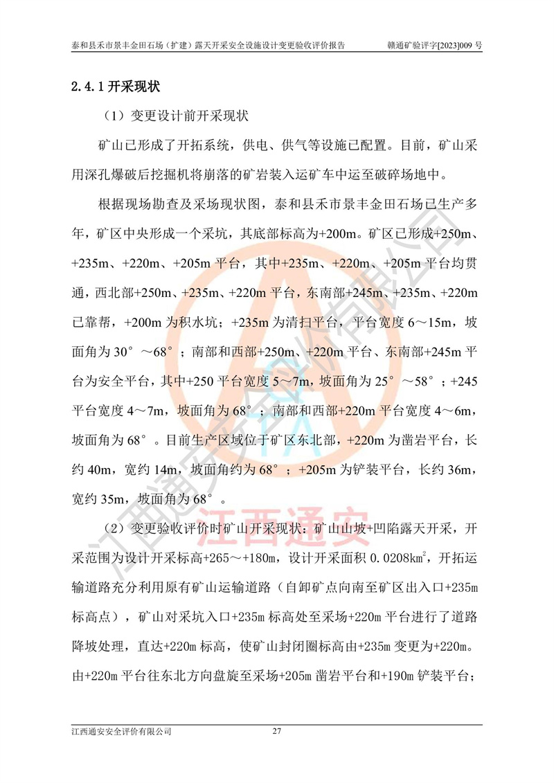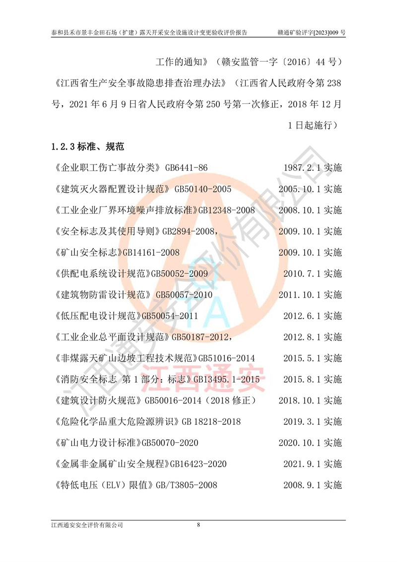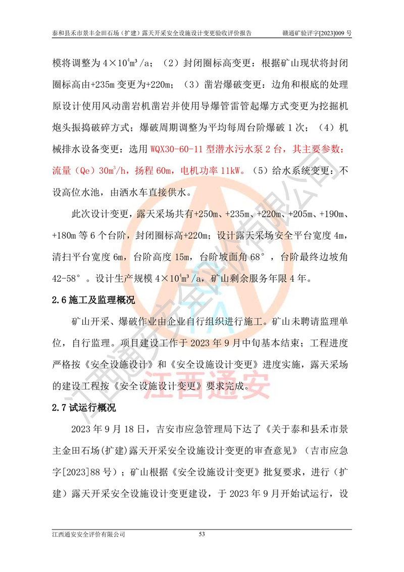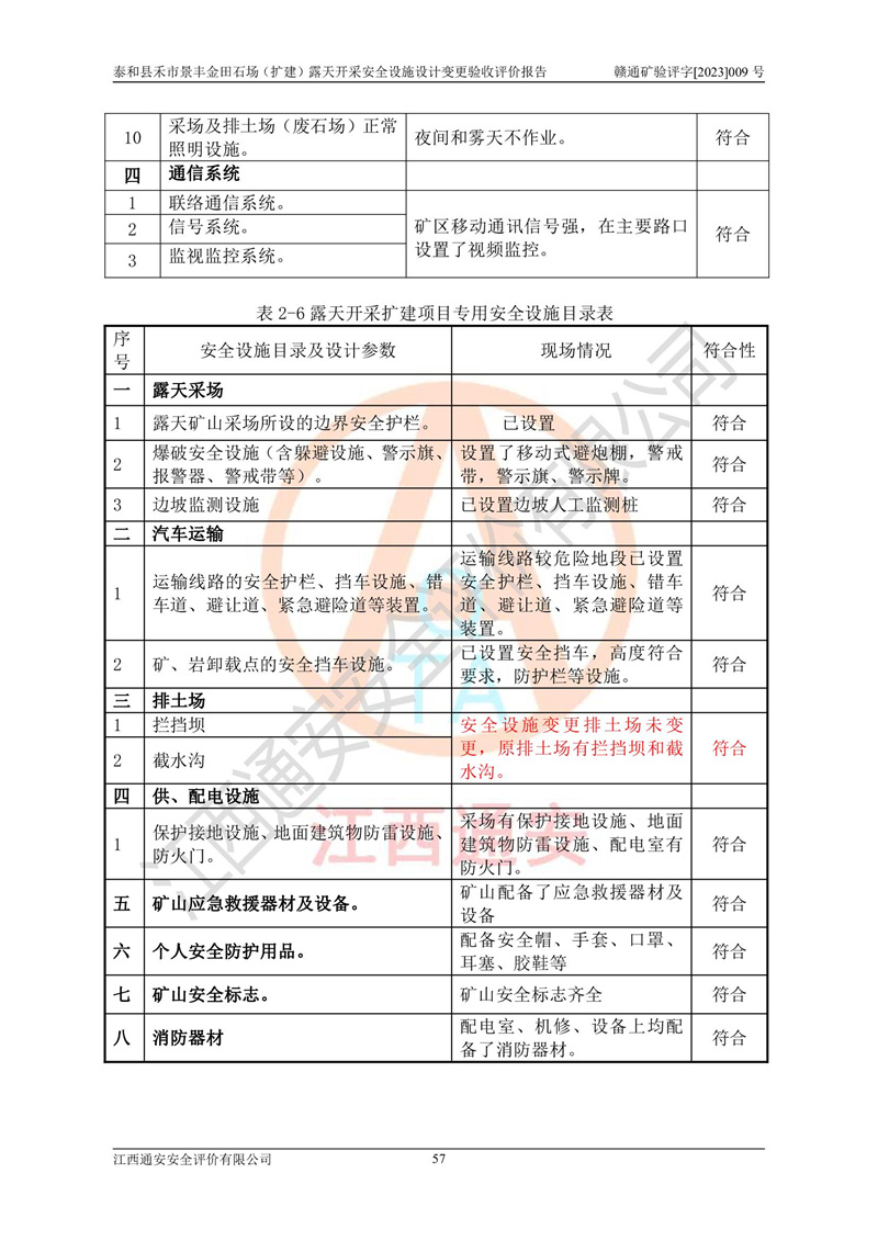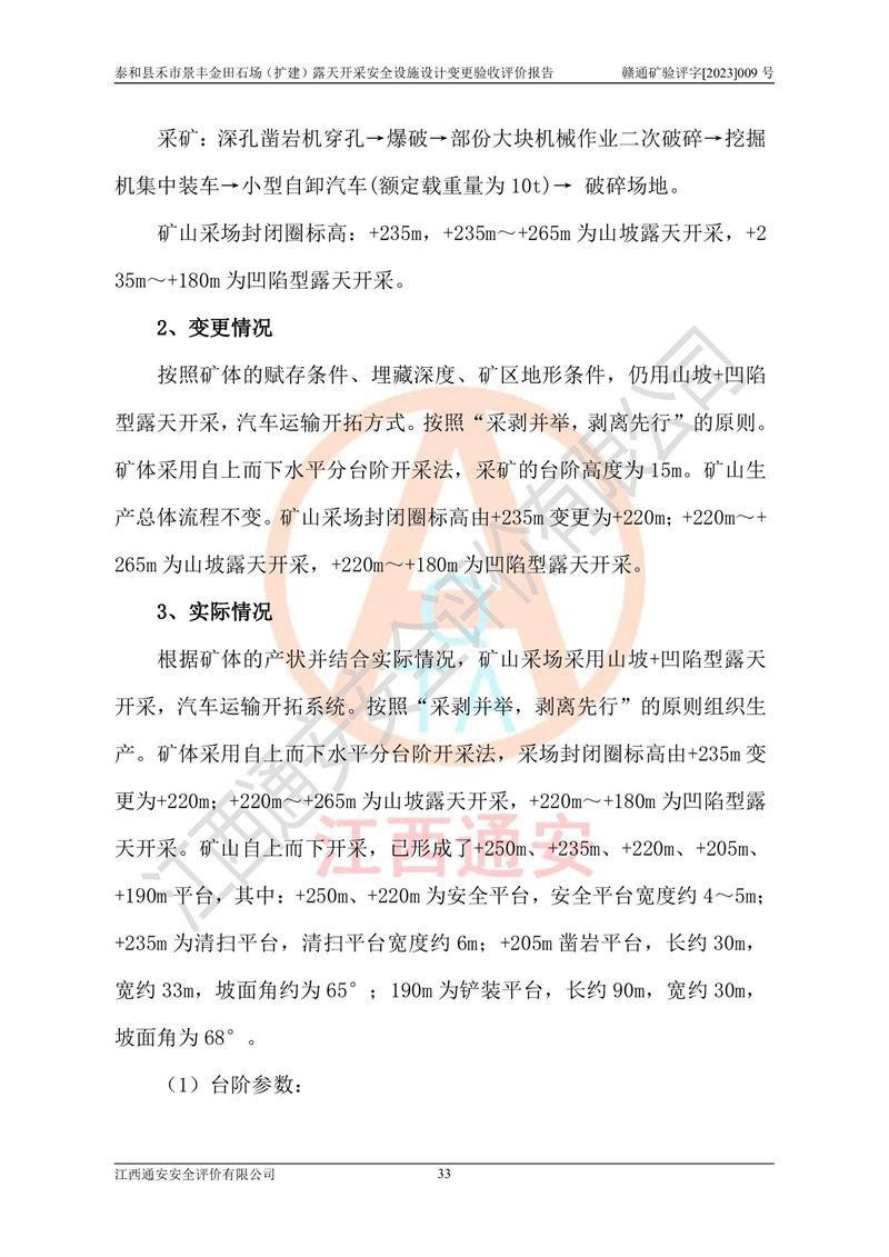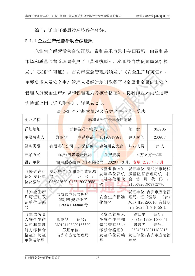 項目名稱 | 泰和縣禾市景豐金田石場(擴(kuò)建)露天開采安全設(shè)施設(shè)計變更驗收評價報告 | ||||