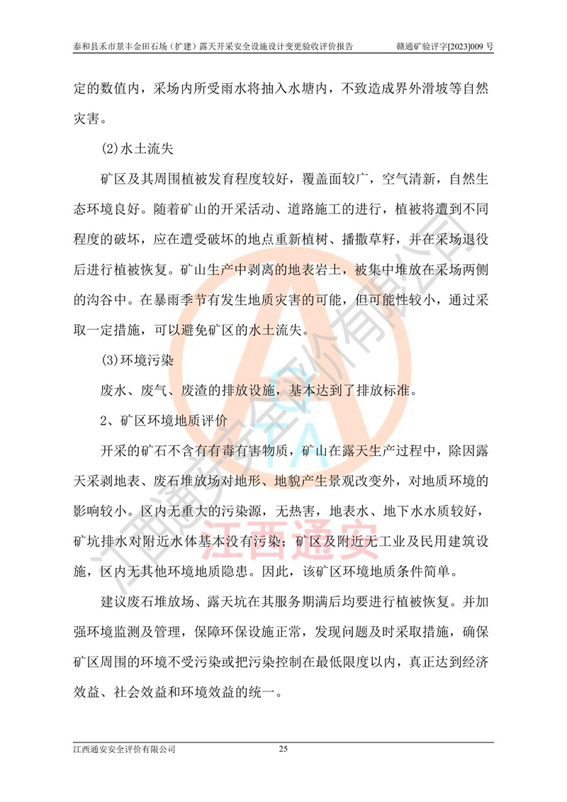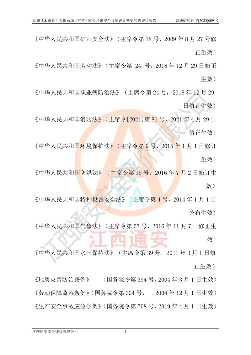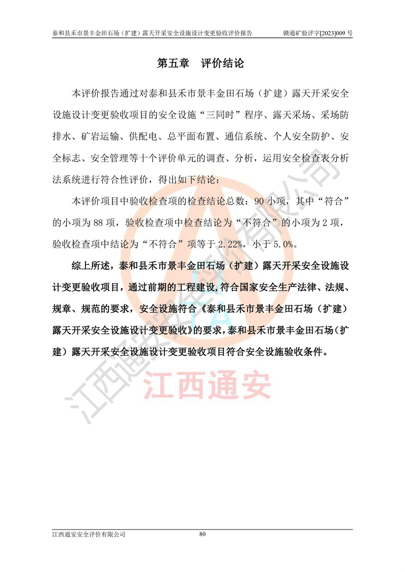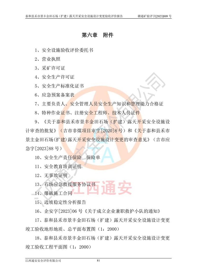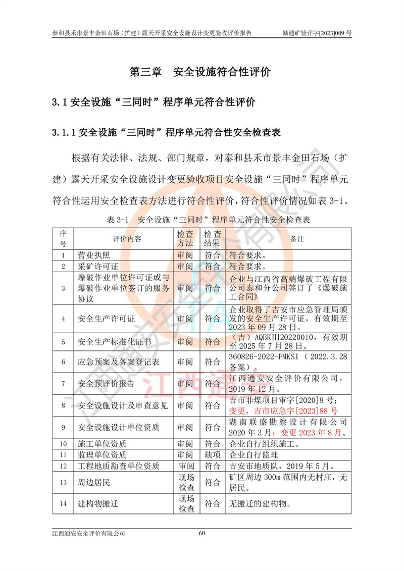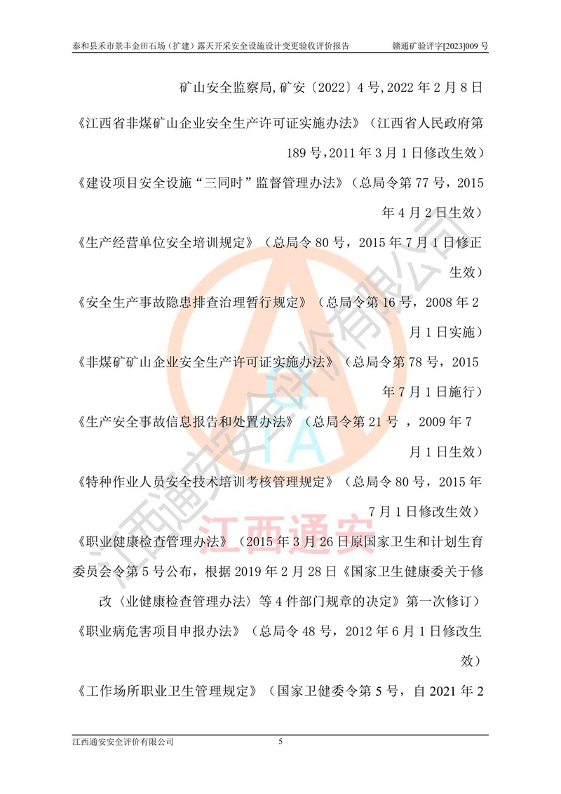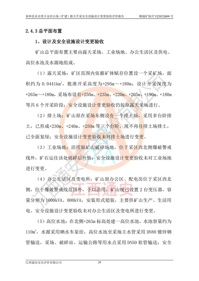 項目名稱 | 泰和縣禾市景豐金田石場(擴(kuò)建)露天開采安全設(shè)施設(shè)計變更驗收評價報告 | ||||