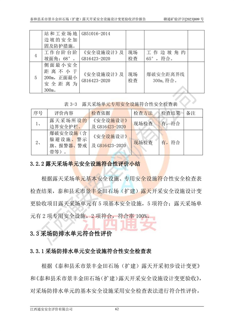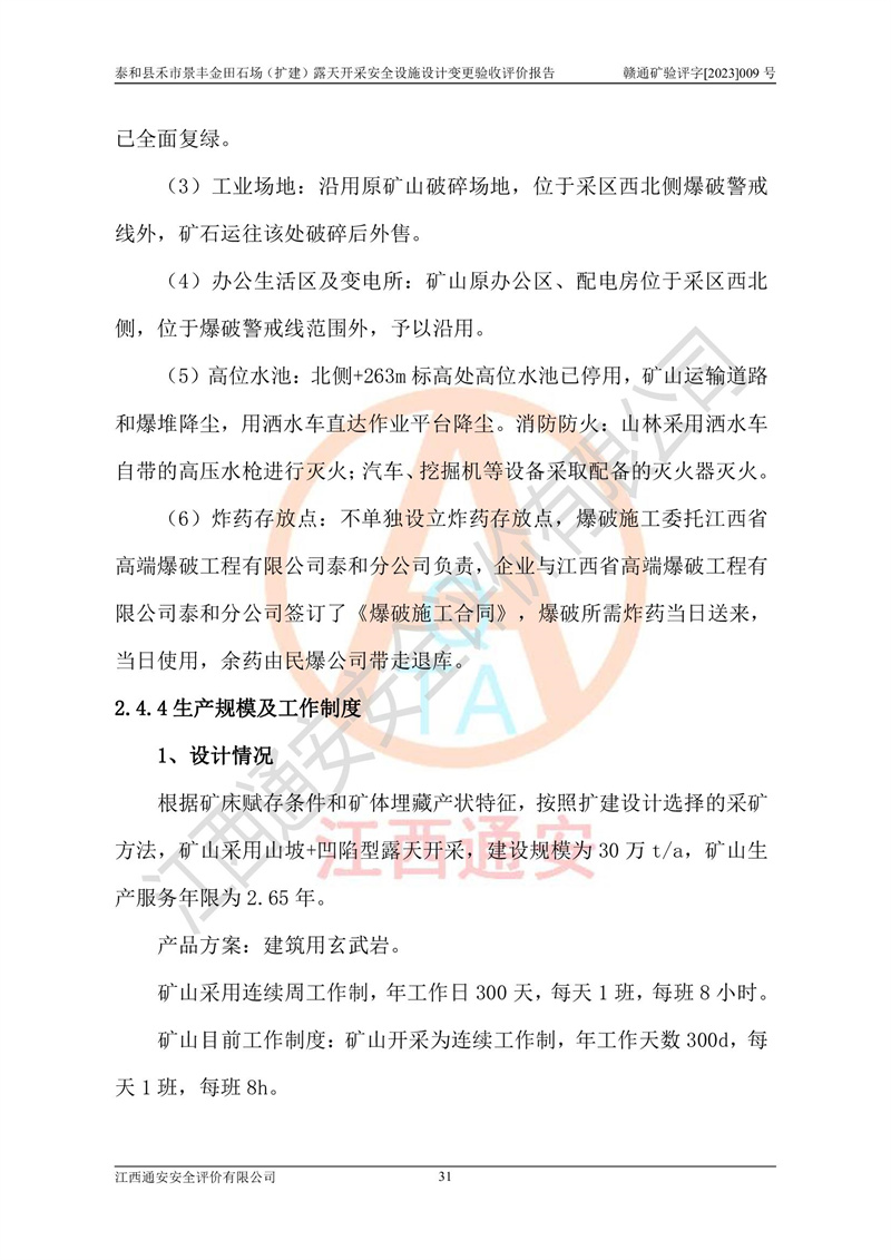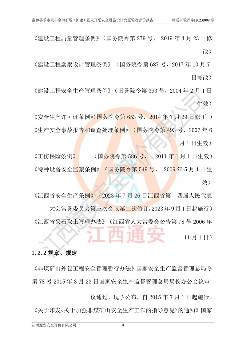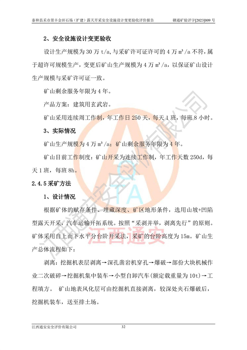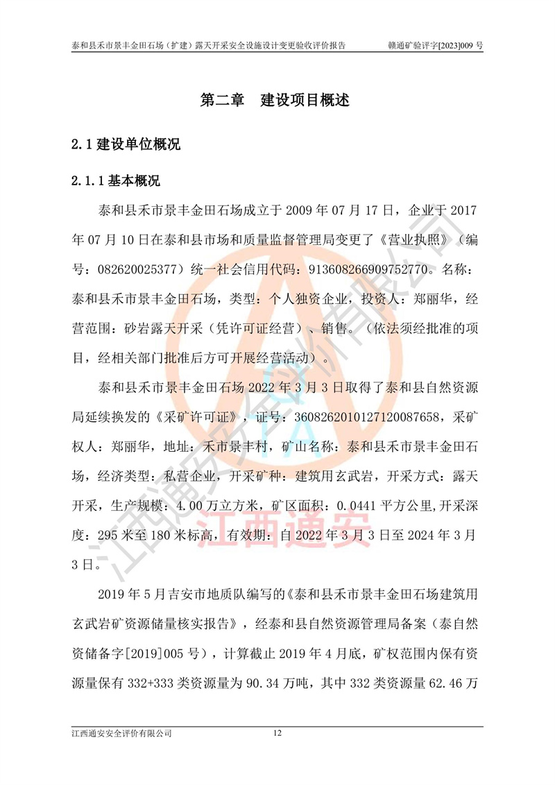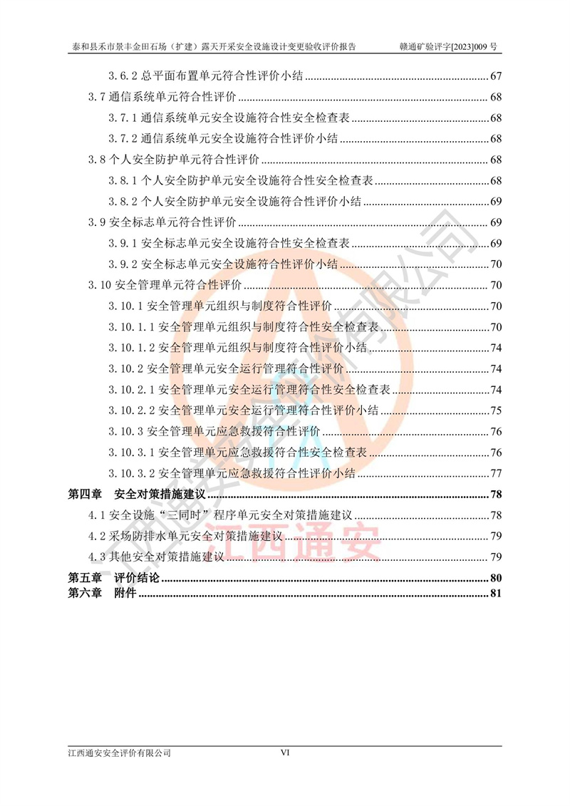 項目名稱 | 泰和縣禾市景豐金田石場(擴(kuò)建)露天開采安全設(shè)施設(shè)計變更驗收評價報告 | ||||