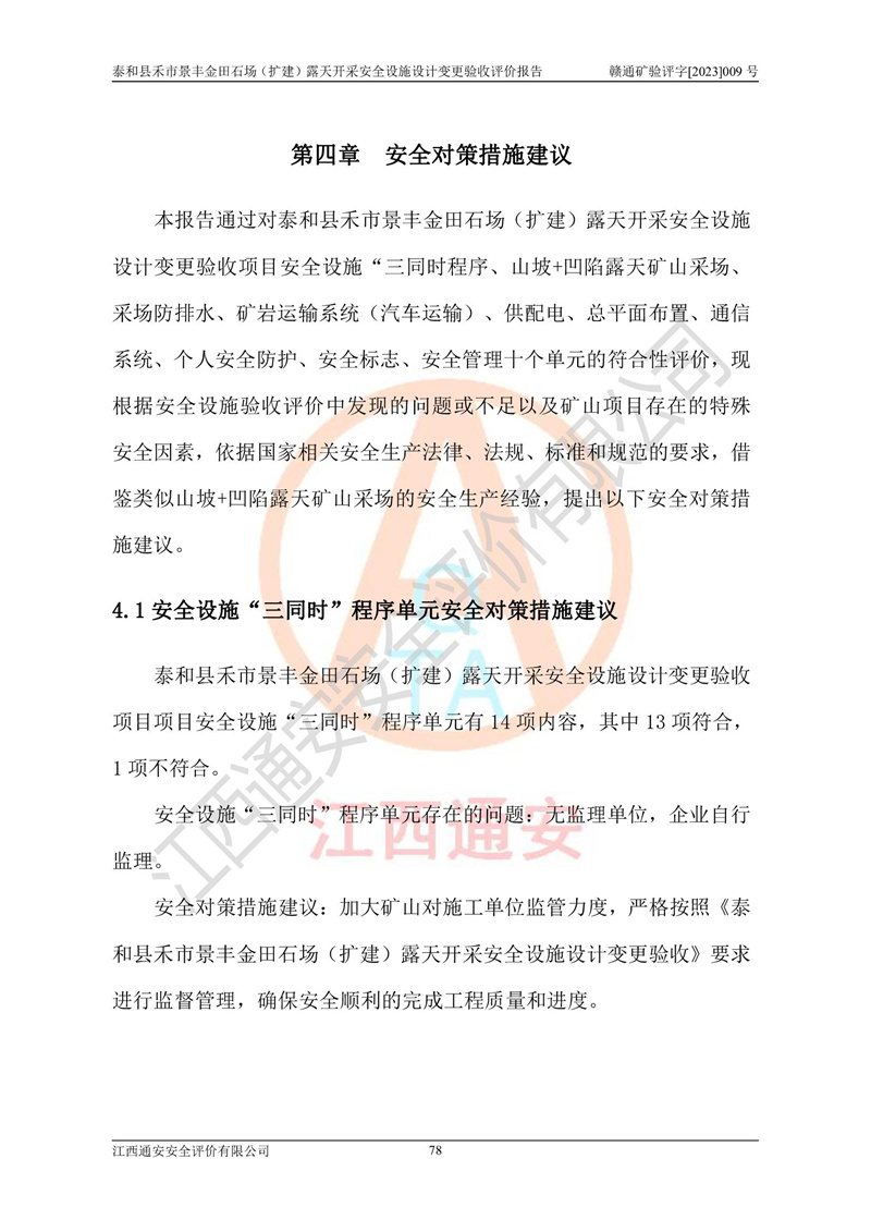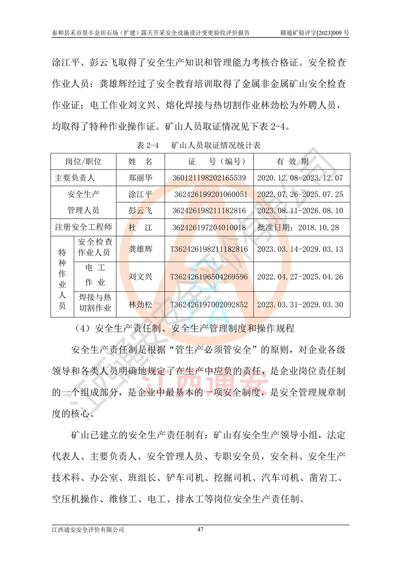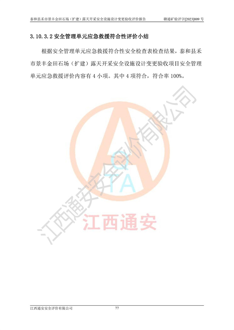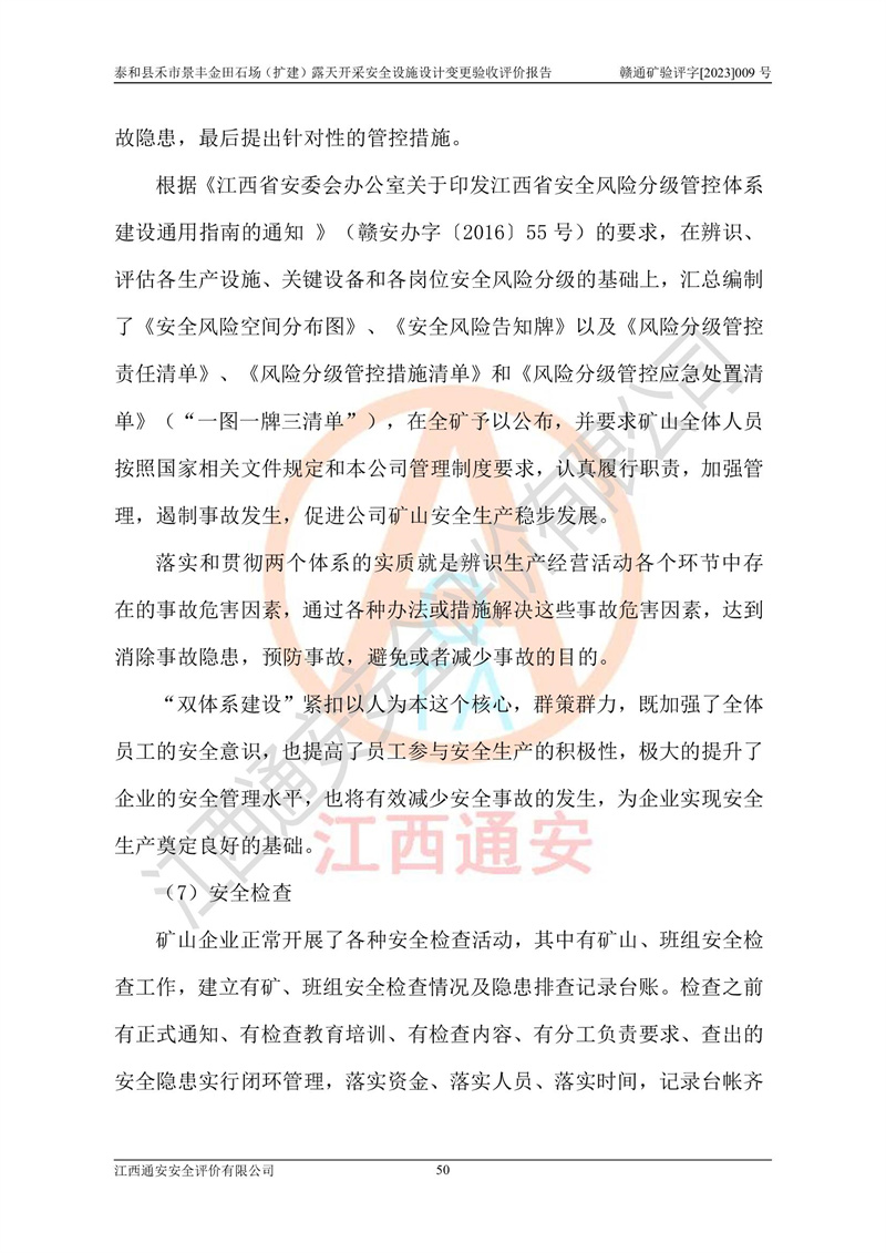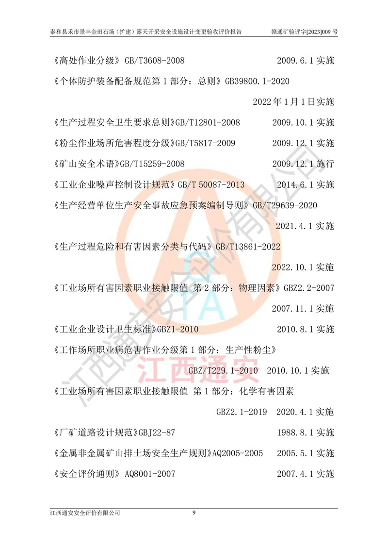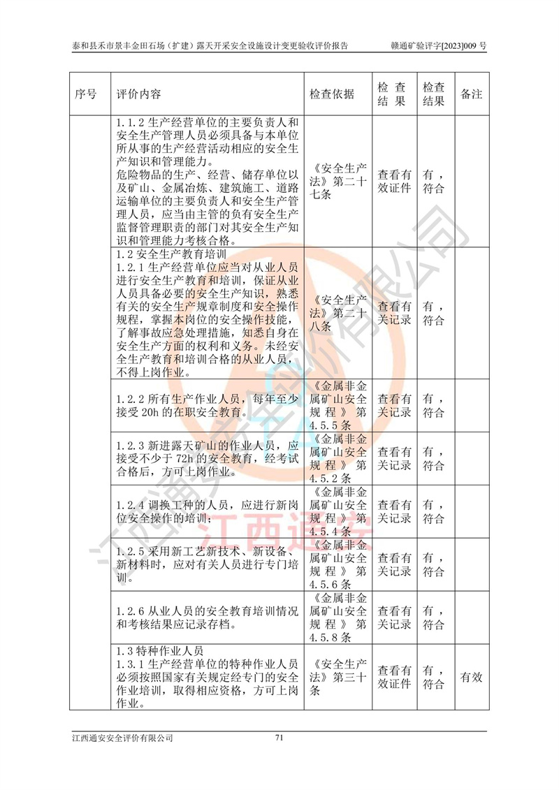 項目名稱 | 泰和縣禾市景豐金田石場(擴(kuò)建)露天開采安全設(shè)施設(shè)計變更驗收評價報告 | ||||