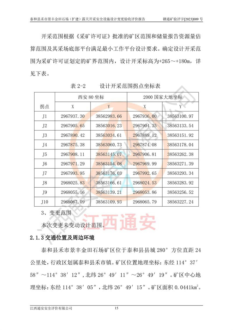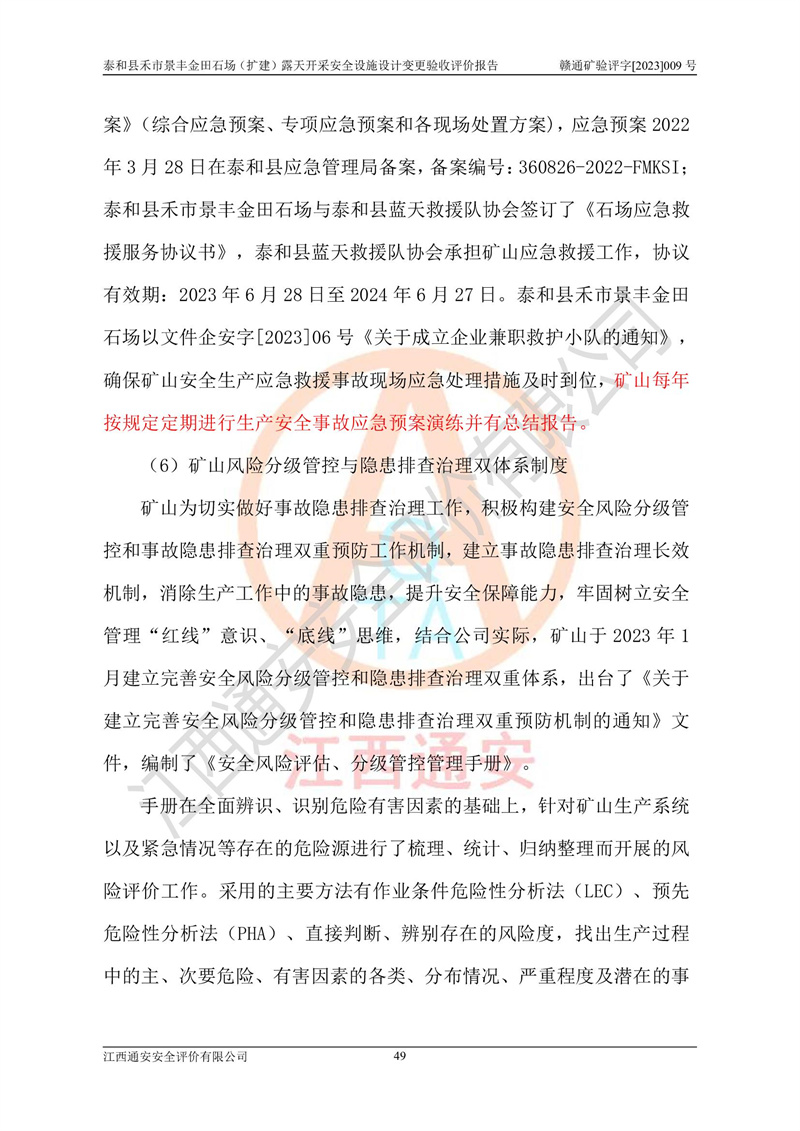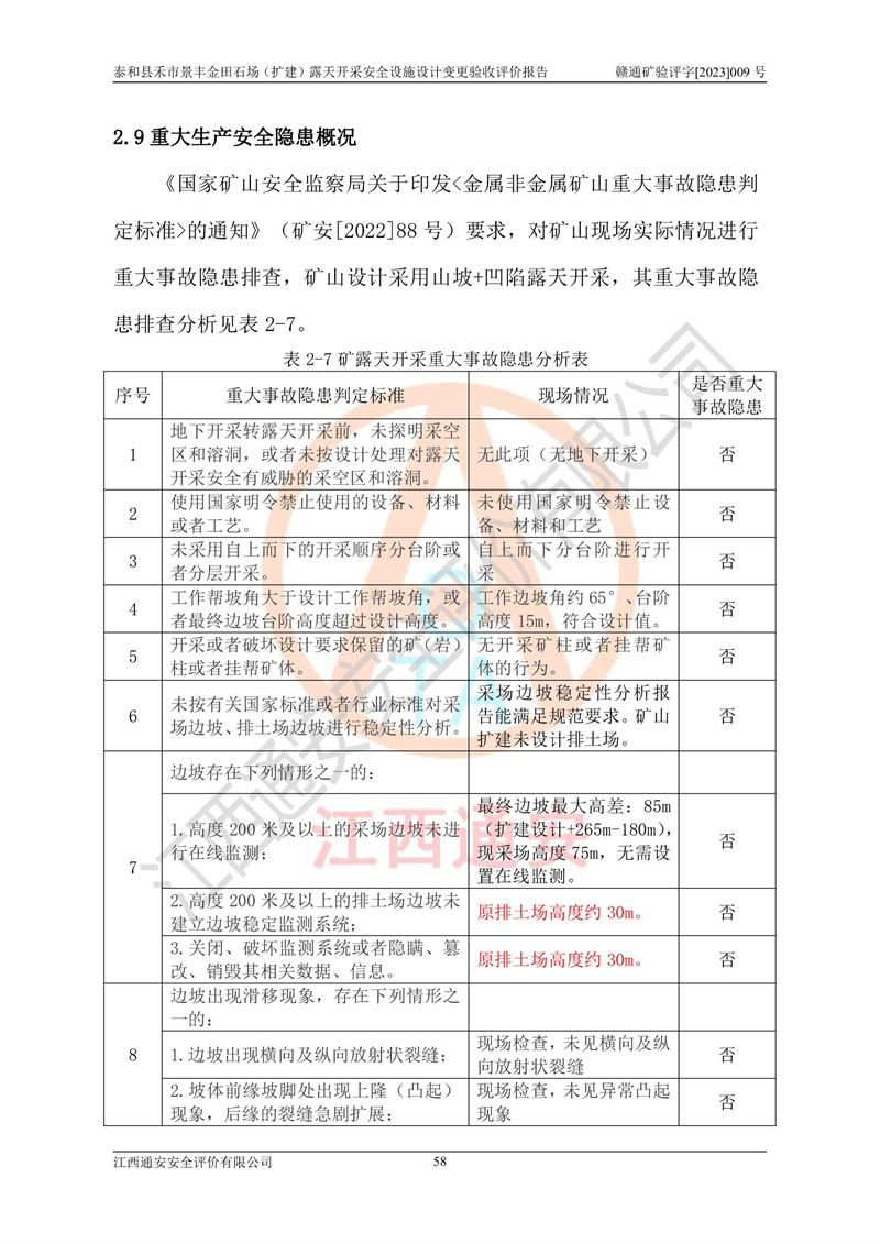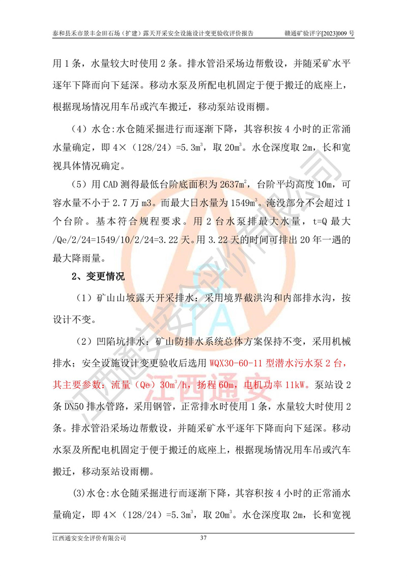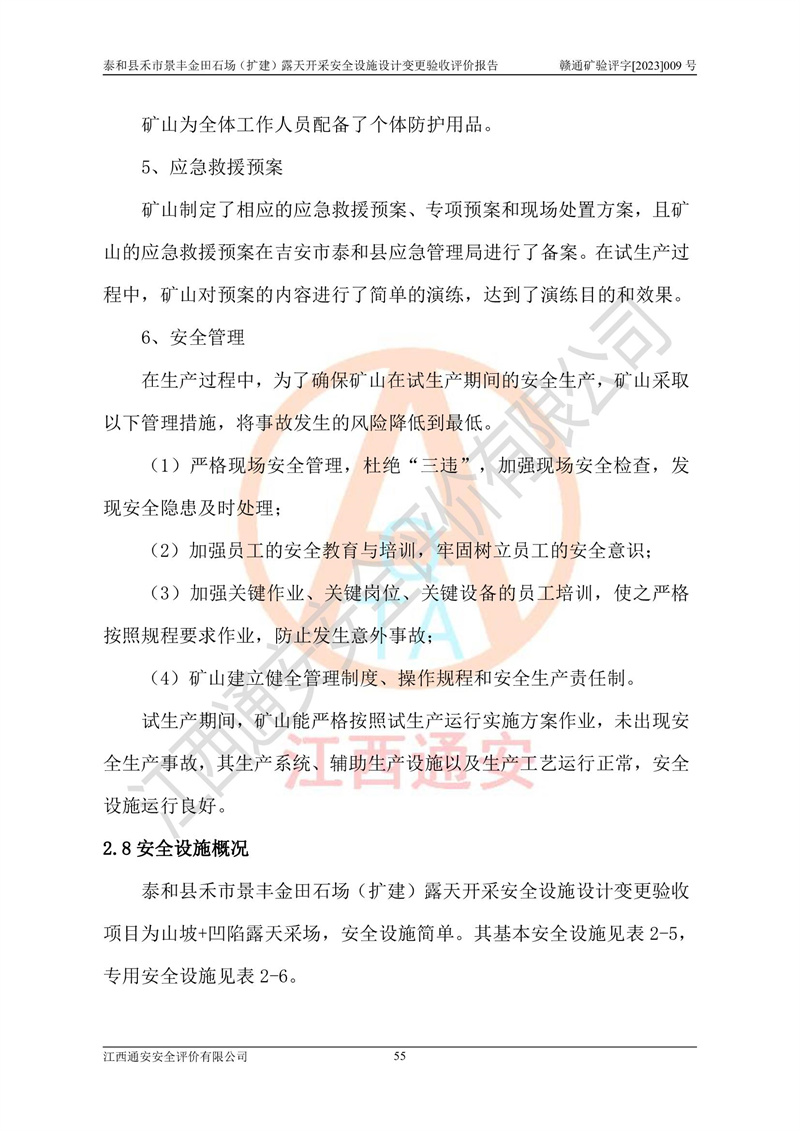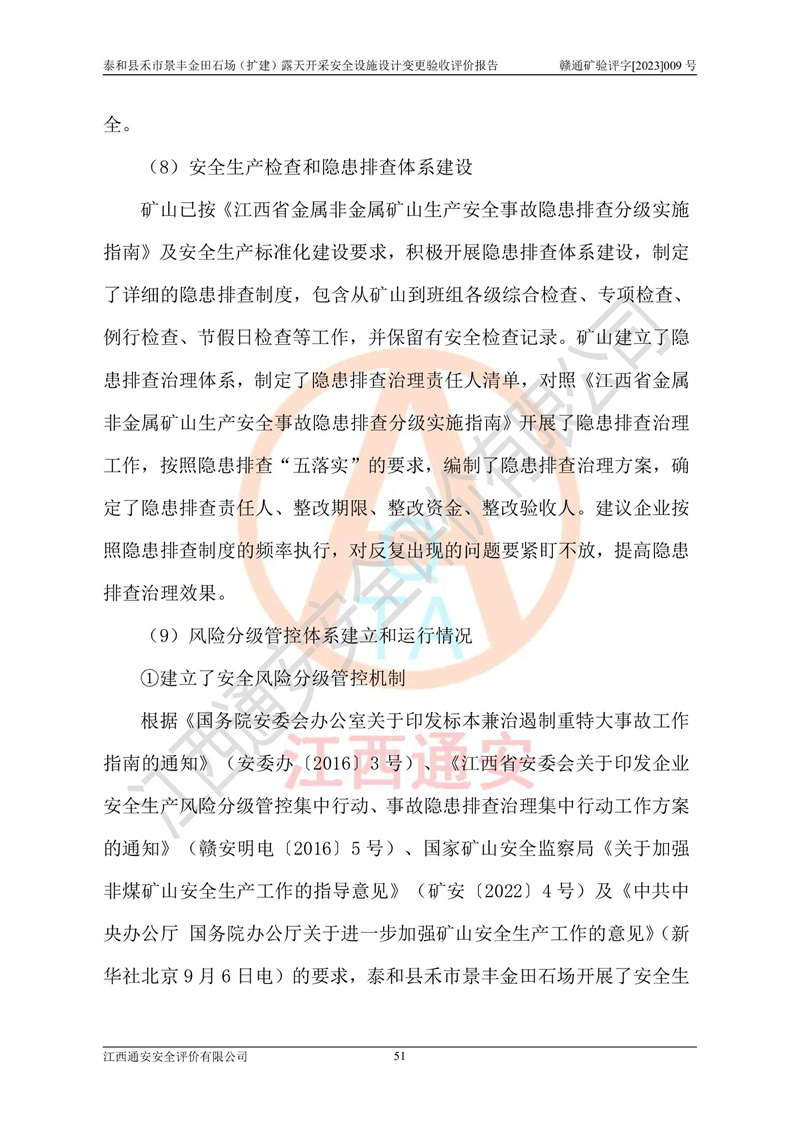 項目名稱 | 泰和縣禾市景豐金田石場(擴(kuò)建)露天開采安全設(shè)施設(shè)計變更驗收評價報告 | ||||