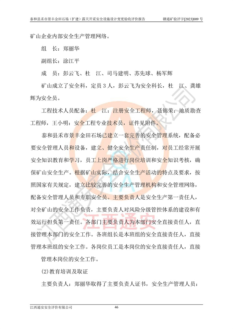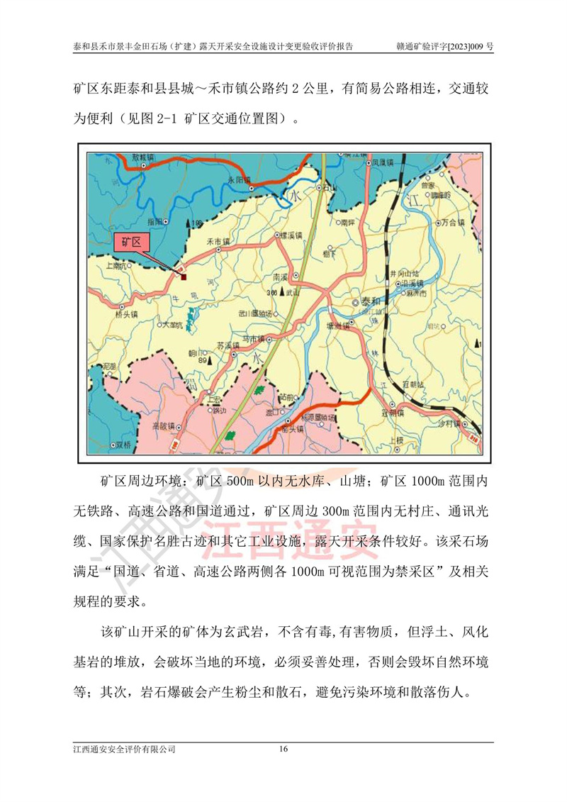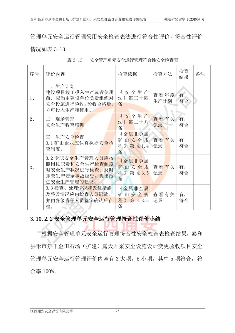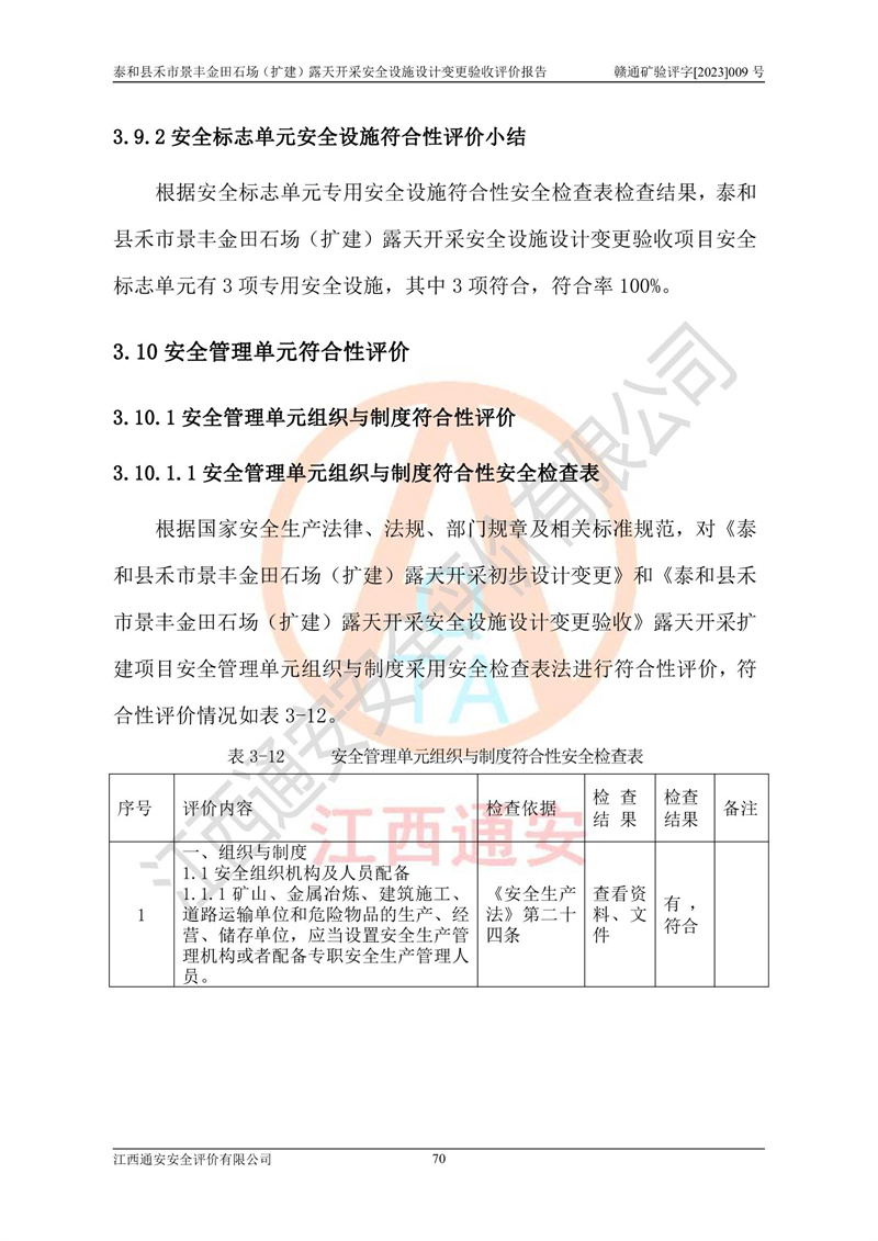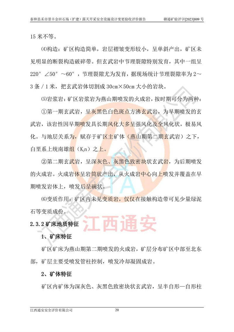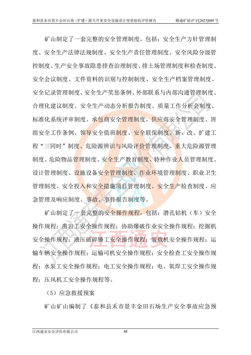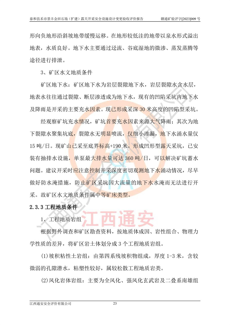 項目名稱 | 泰和縣禾市景豐金田石場(擴(kuò)建)露天開采安全設(shè)施設(shè)計變更驗收評價報告 | ||||