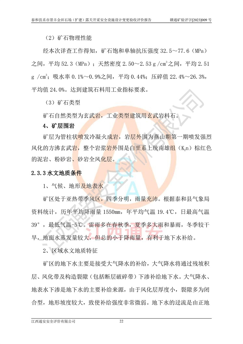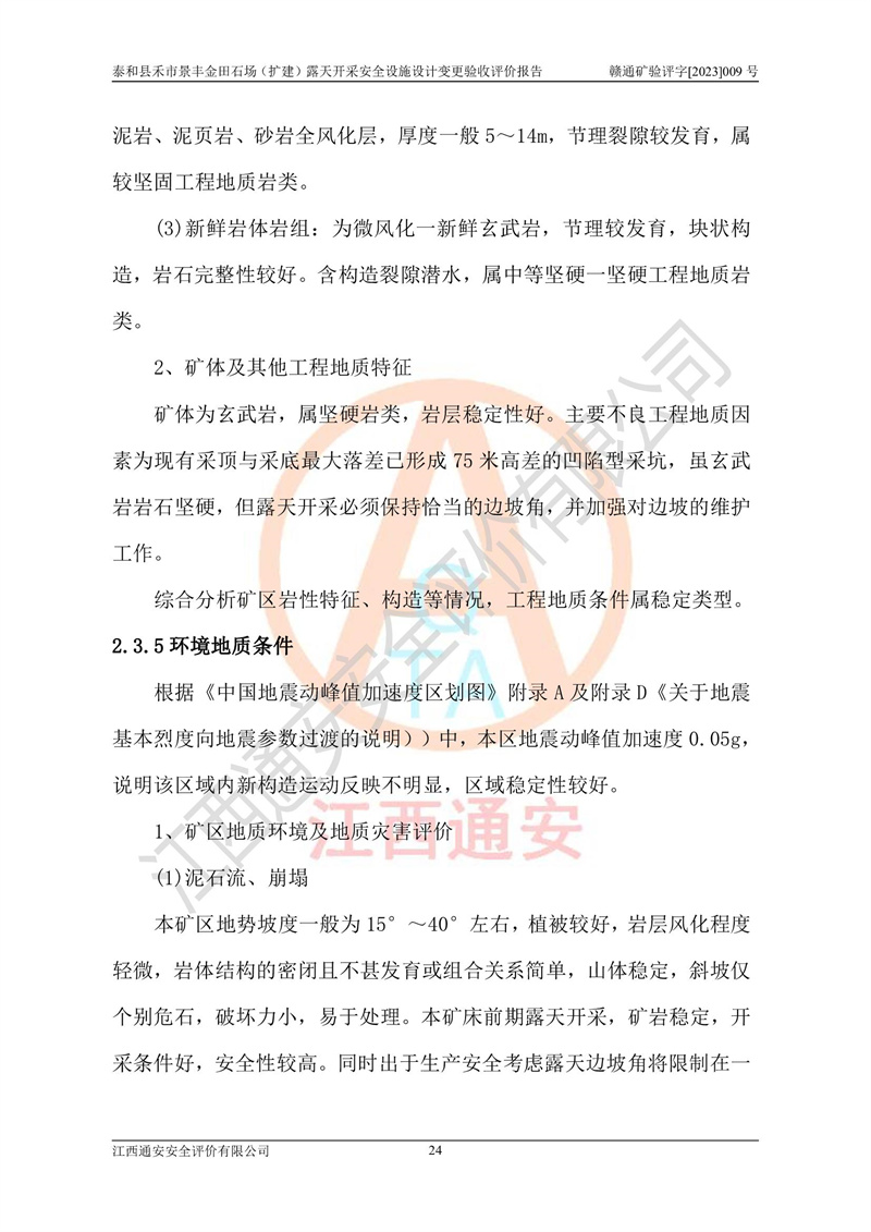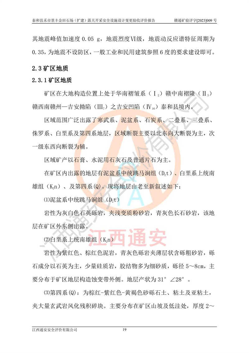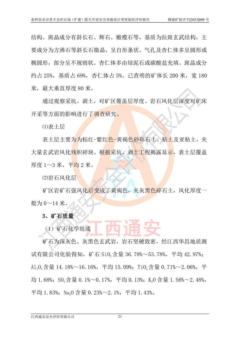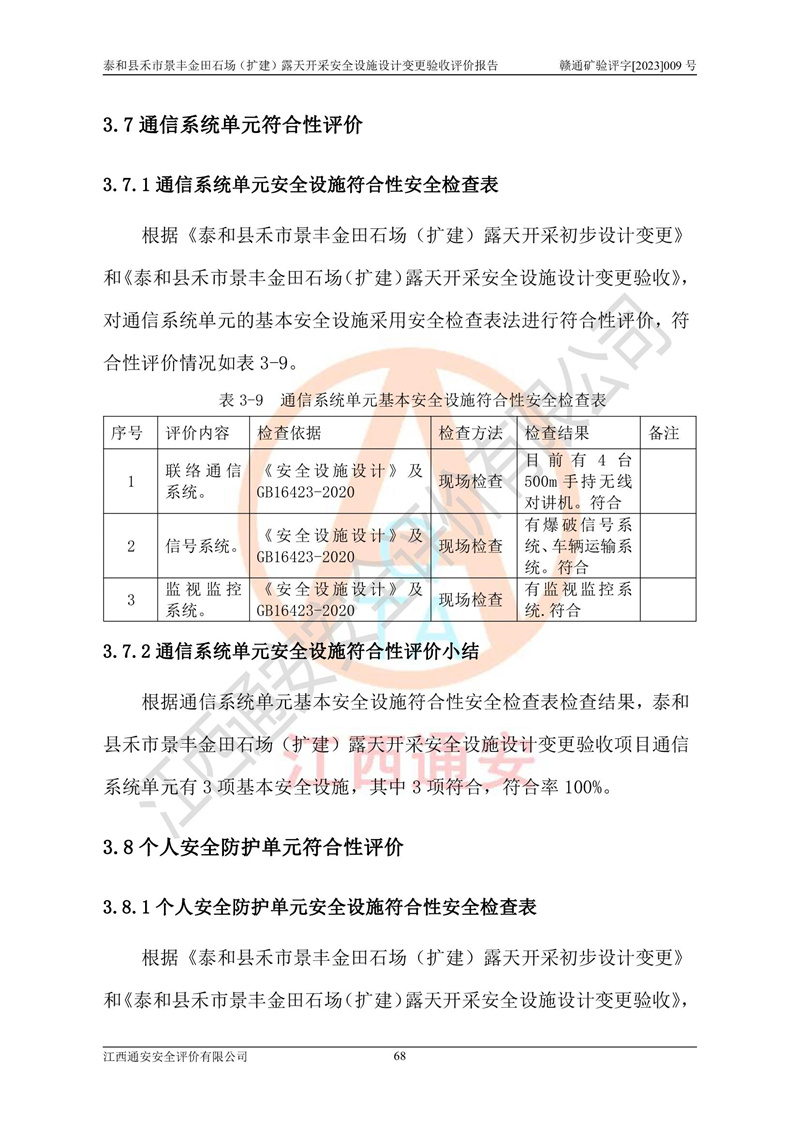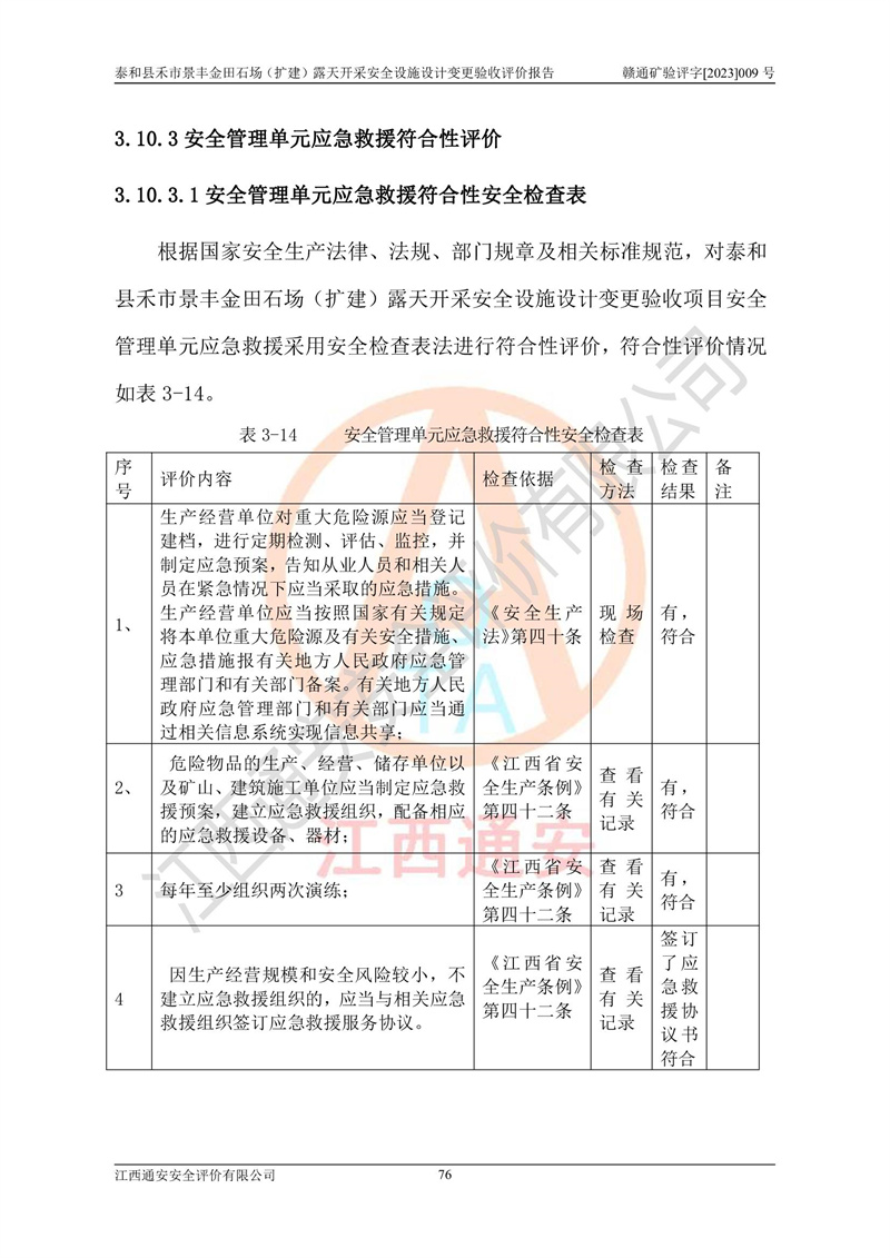 項目名稱 | 泰和縣禾市景豐金田石場(擴(kuò)建)露天開采安全設(shè)施設(shè)計變更驗收評價報告 | ||||
