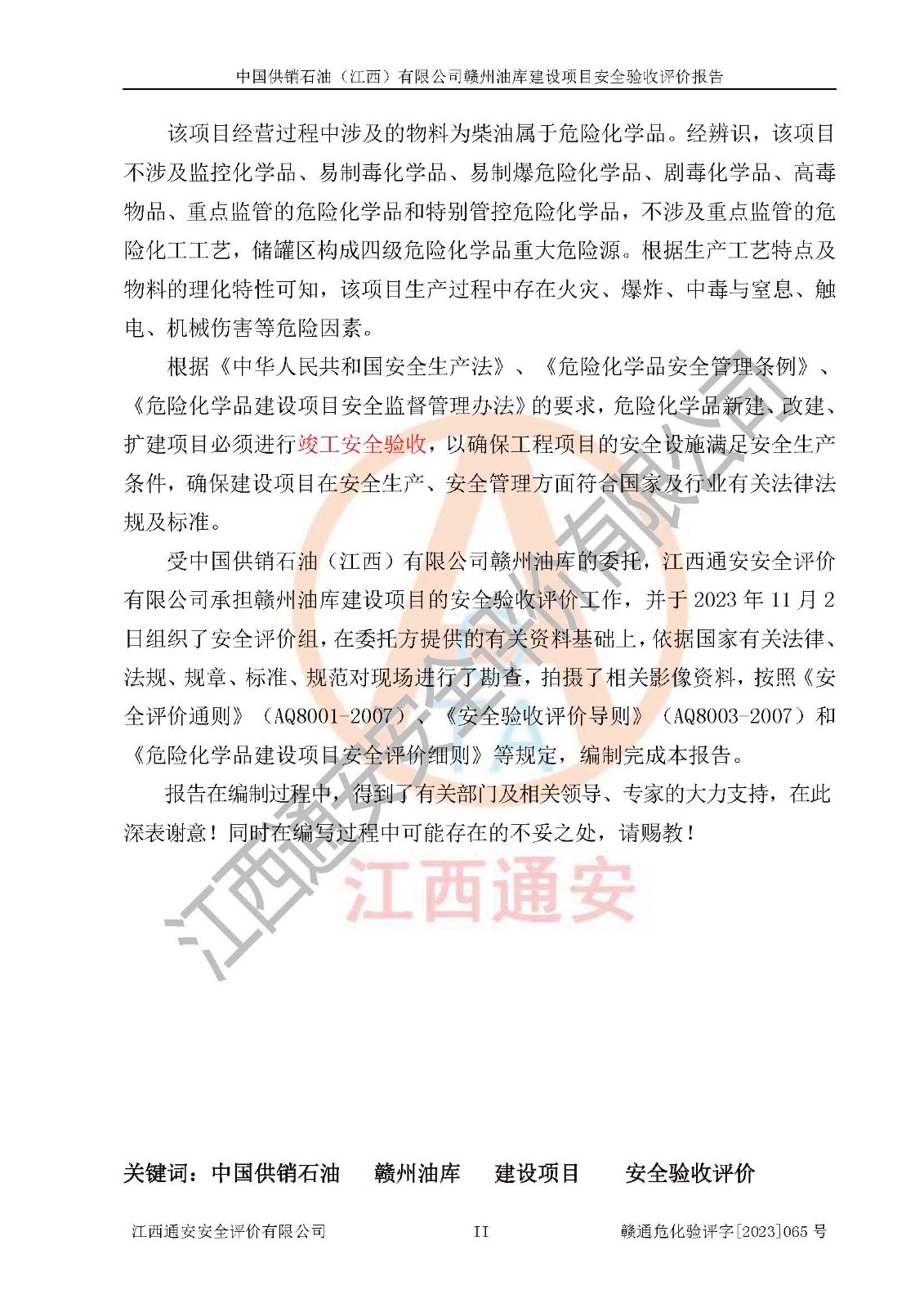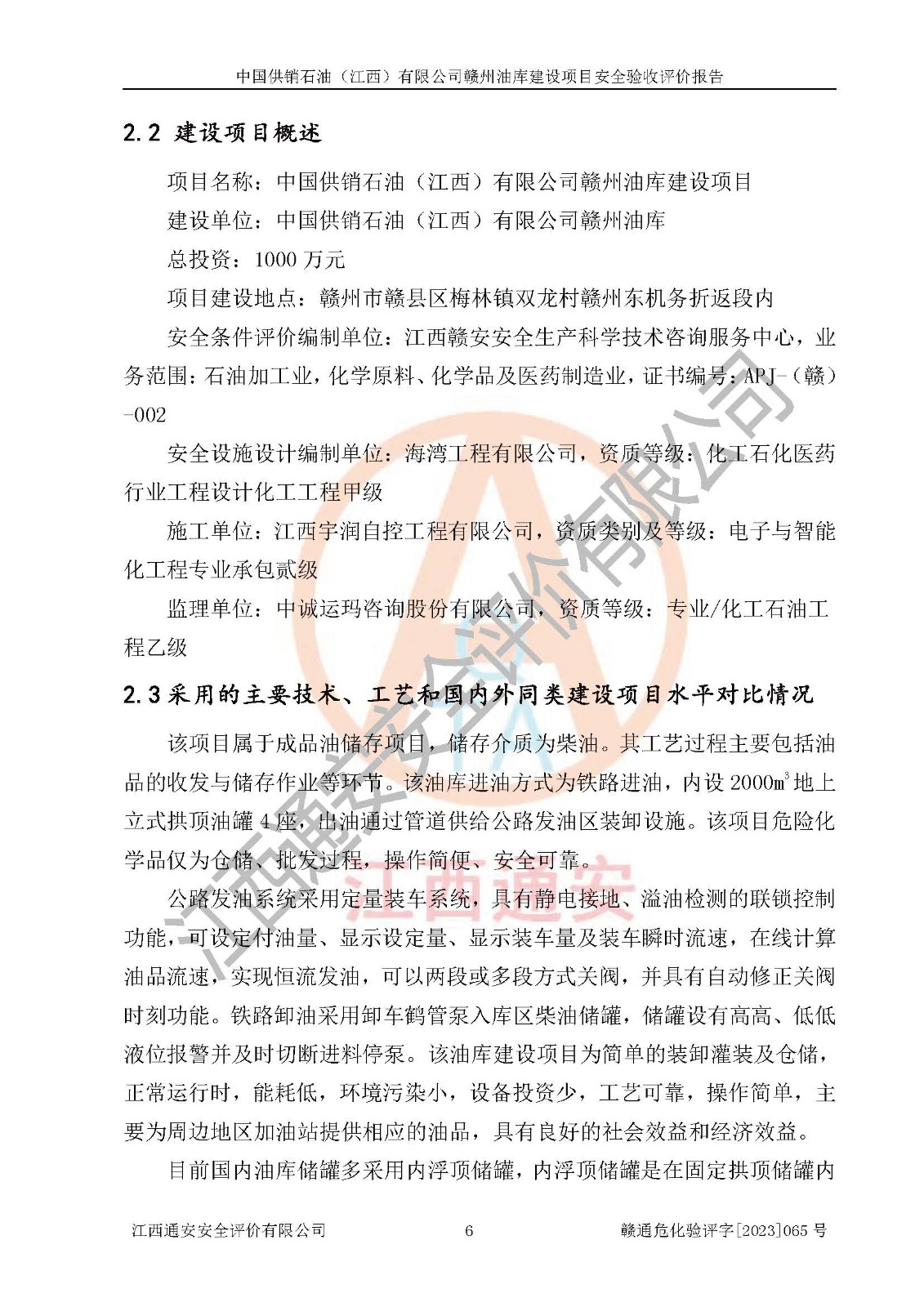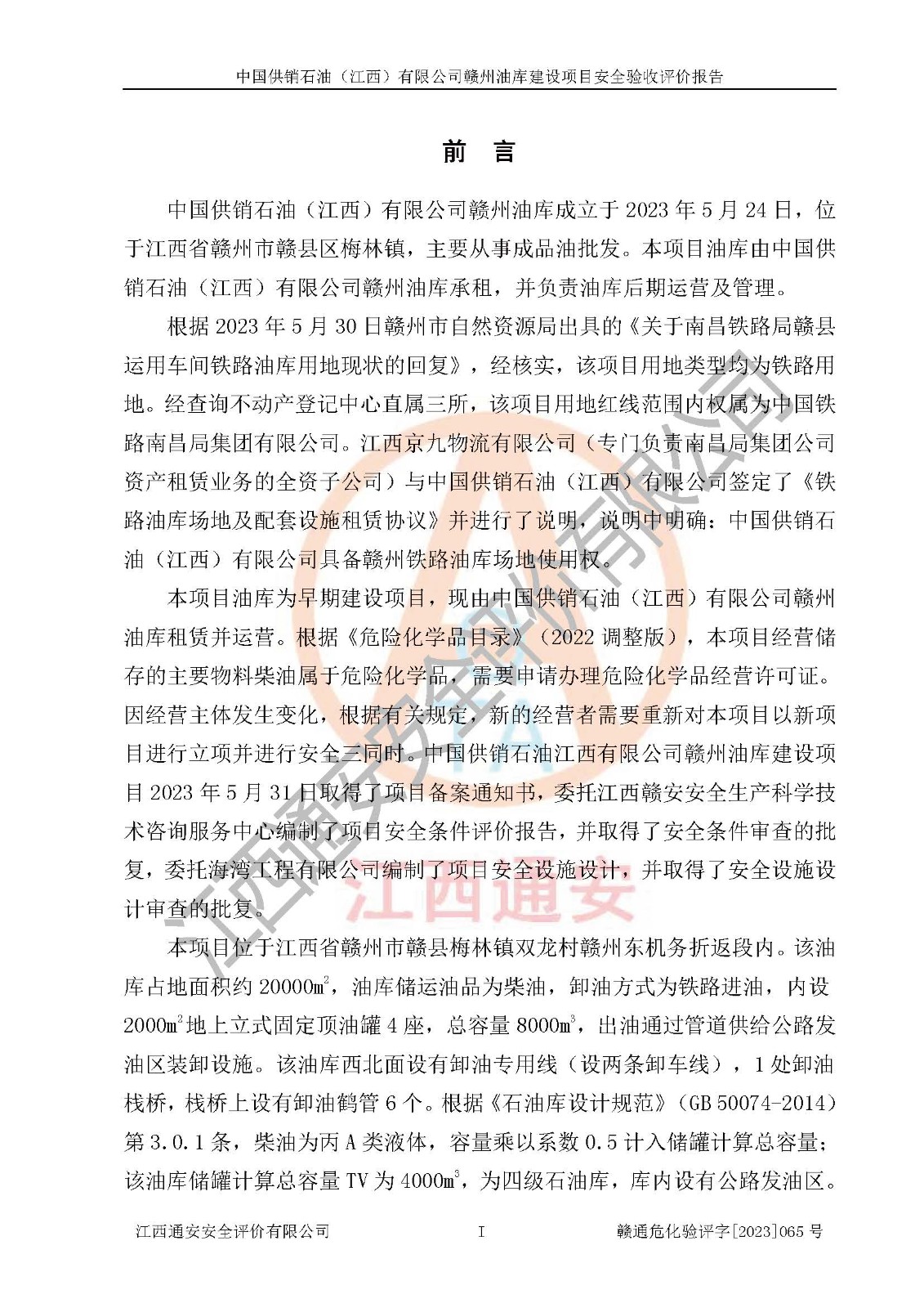 評(píng)價(jià)報(bào)告名稱 | 中國供銷石油(江西)有限公司贛州油庫建設(shè)項(xiàng)目安全驗(yàn)收評(píng)價(jià)報(bào)告 | ||||||