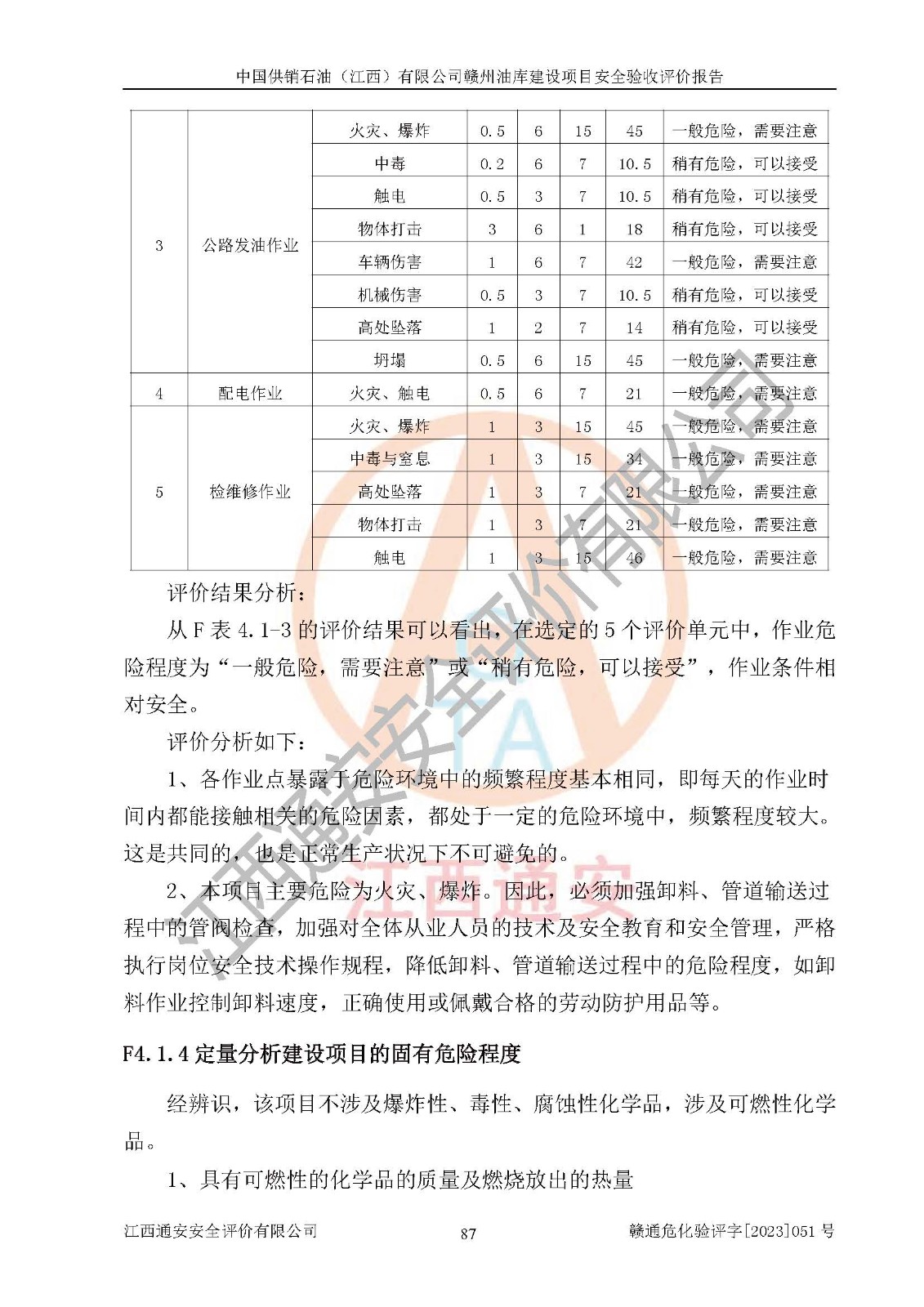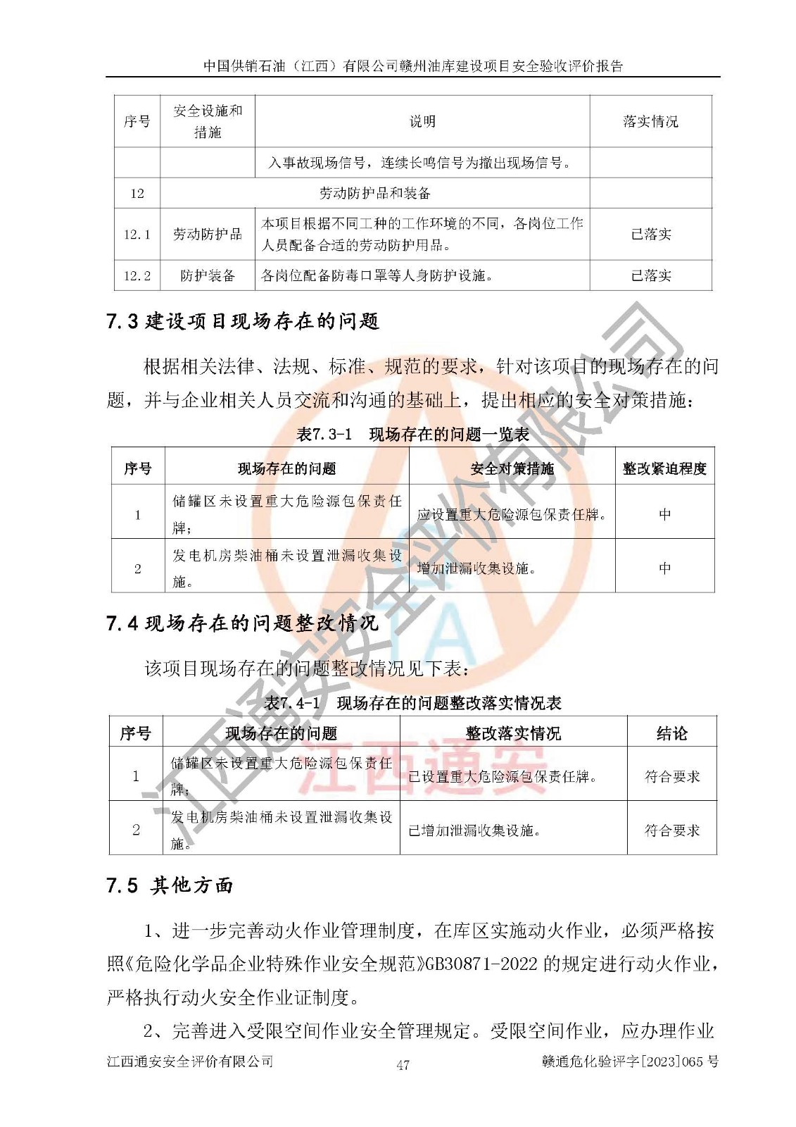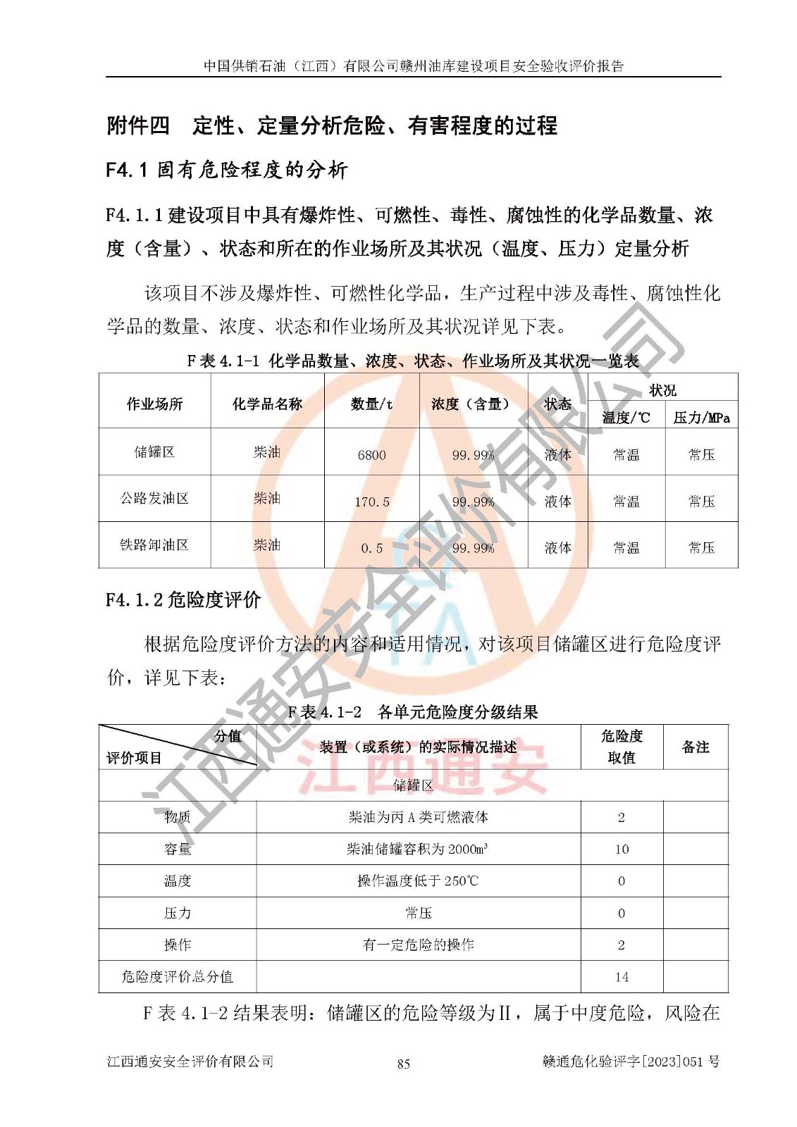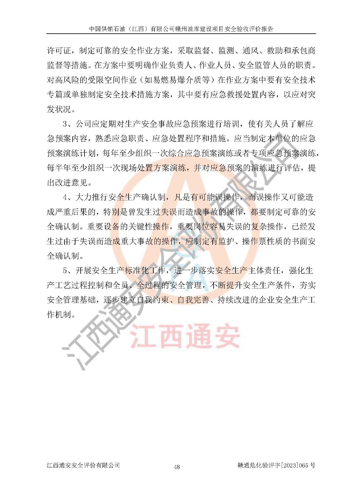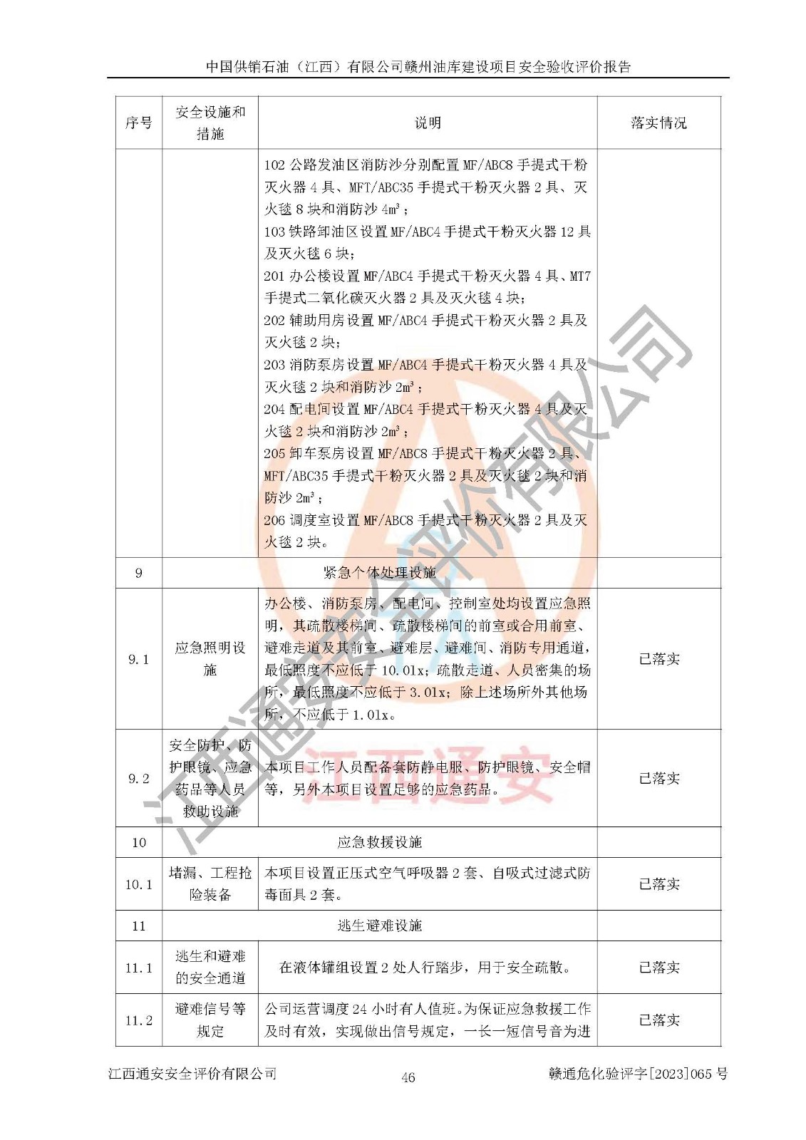 評(píng)價(jià)結(jié)論 | 中國供銷石油(江西)有限公司贛州油庫建設(shè)項(xiàng)目現(xiàn)場情況與設(shè)計(jì)圖紙一致,DCS系統(tǒng)設(shè)計(jì)符合要求、運(yùn)行正常,安全設(shè)施及安全管理符合**及有關(guān)部門關(guān)于安全生產(chǎn)法律、法規(guī)、標(biāo)準(zhǔn)的要求,該項(xiàng)目試生產(chǎn)以來,工藝設(shè)備運(yùn)行正常,安全設(shè)施和采取的安全技術(shù)措施符合設(shè)計(jì)要求并達(dá)到預(yù)期結(jié)果,可以滿足建設(shè)項(xiàng)目安全生產(chǎn)的要求,安全生產(chǎn)管理**,具備了安全設(shè)施竣工驗(yàn)收條件。 | ||||||