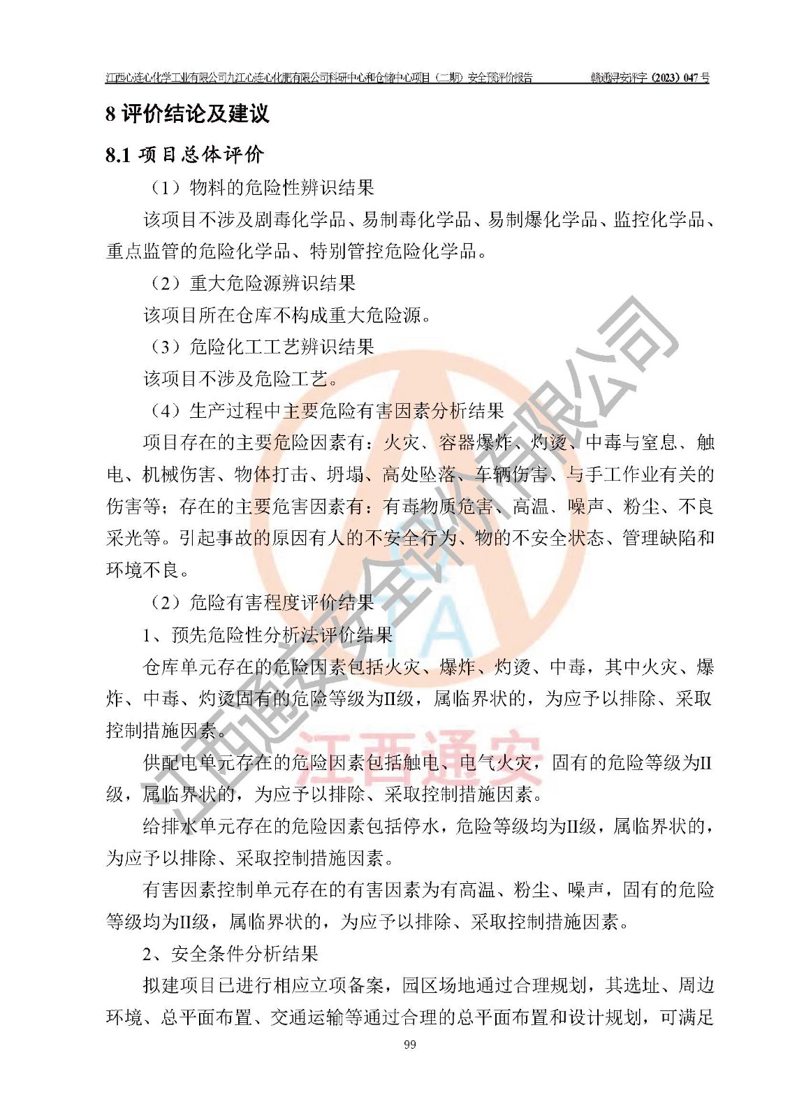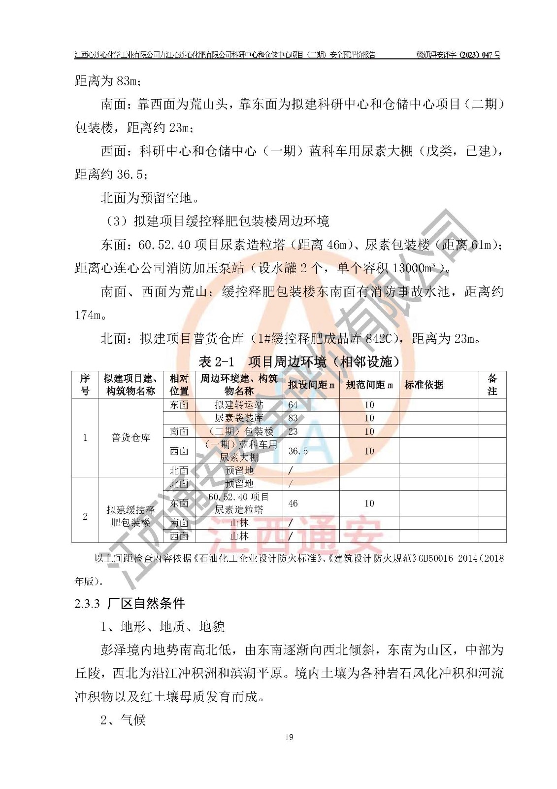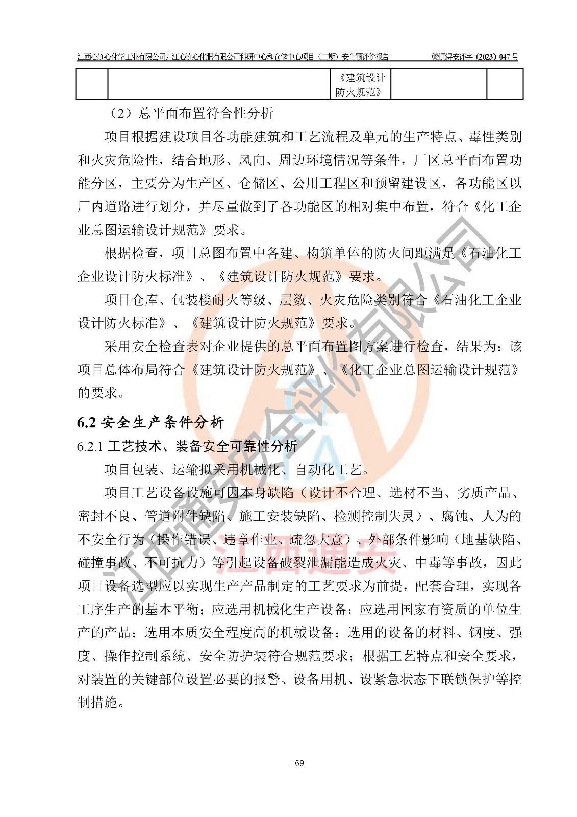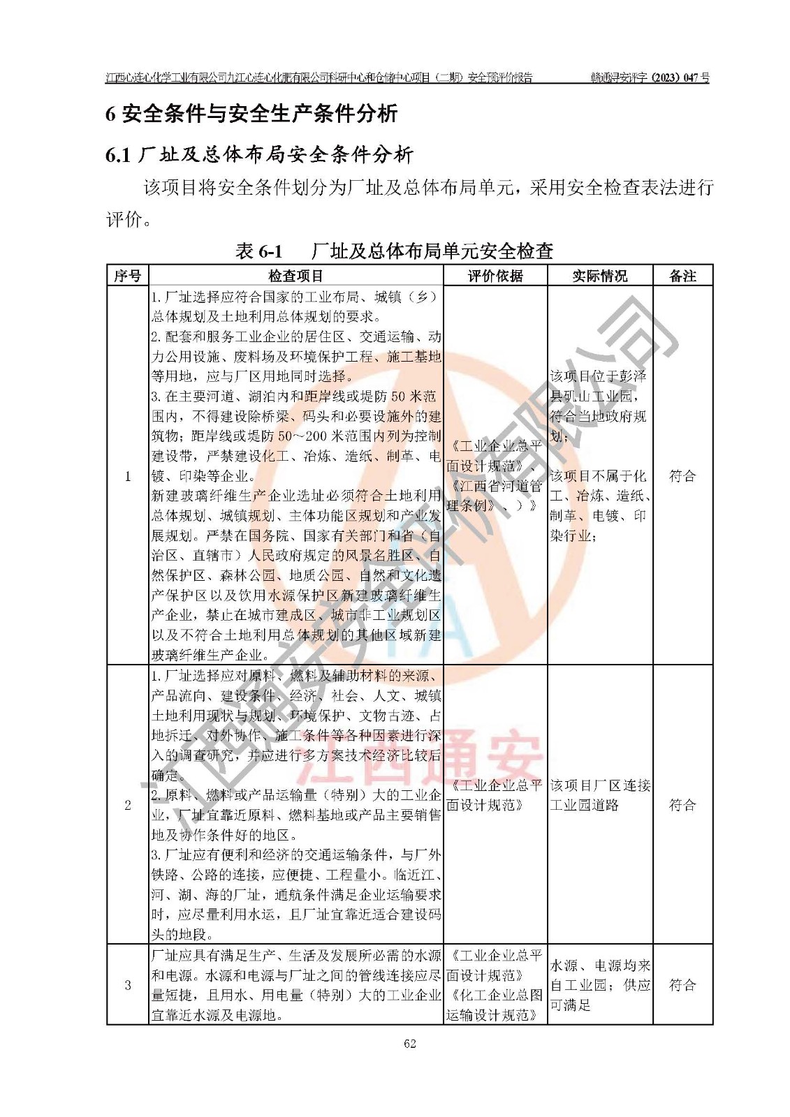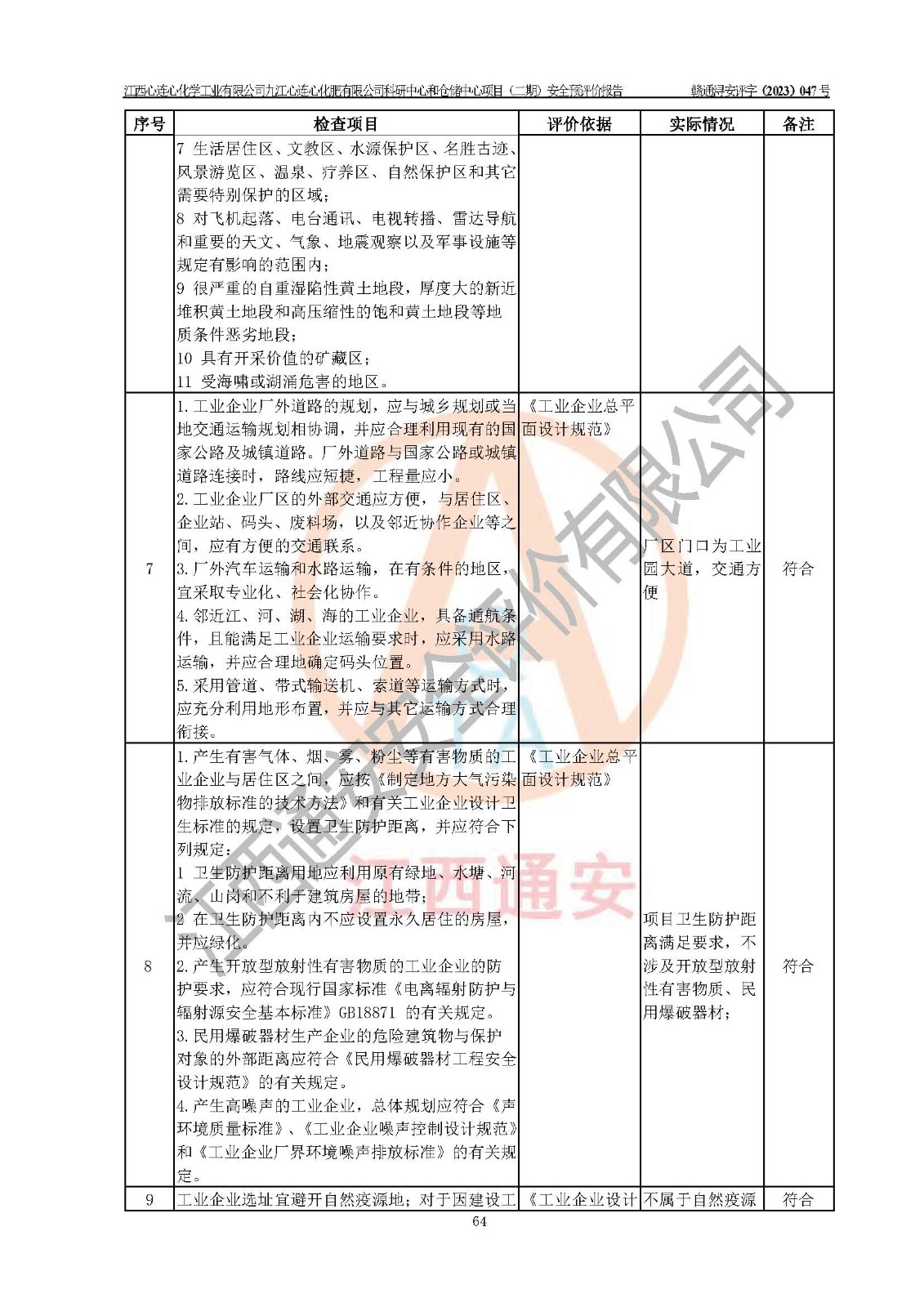 評價結(jié)論 | 江西心連心化學(xué)工業(yè)有限公司九江心連心化肥有限公司科研中心和倉儲中心項目(二期)的選址、總體布局、周邊環(huán)境、自然環(huán)境能滿足建設(shè)安全條件;項目選擇的工藝過程及設(shè)備設(shè)施的安全可靠性能達(dá)到**法規(guī)、標(biāo)準(zhǔn)規(guī)定要求;項目存在的危險有害因素可控,在落實本評價報告提出的有關(guān)安全對策措施后,其危險有害程度能達(dá)到可以接受的程度,項目建設(shè)能夠?qū)崿F(xiàn) 安全運行的目標(biāo)。 | ||||