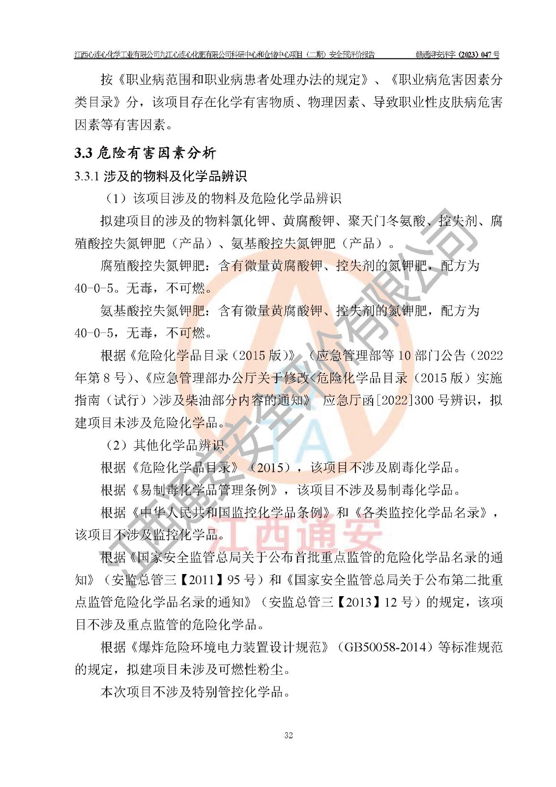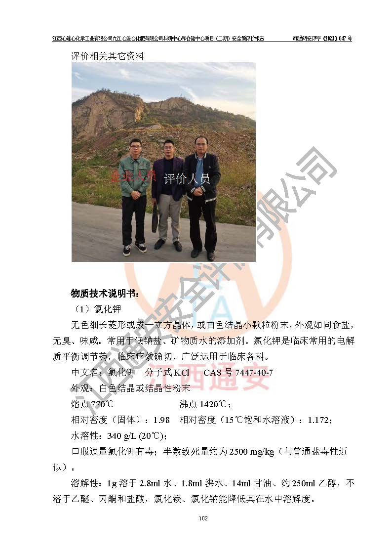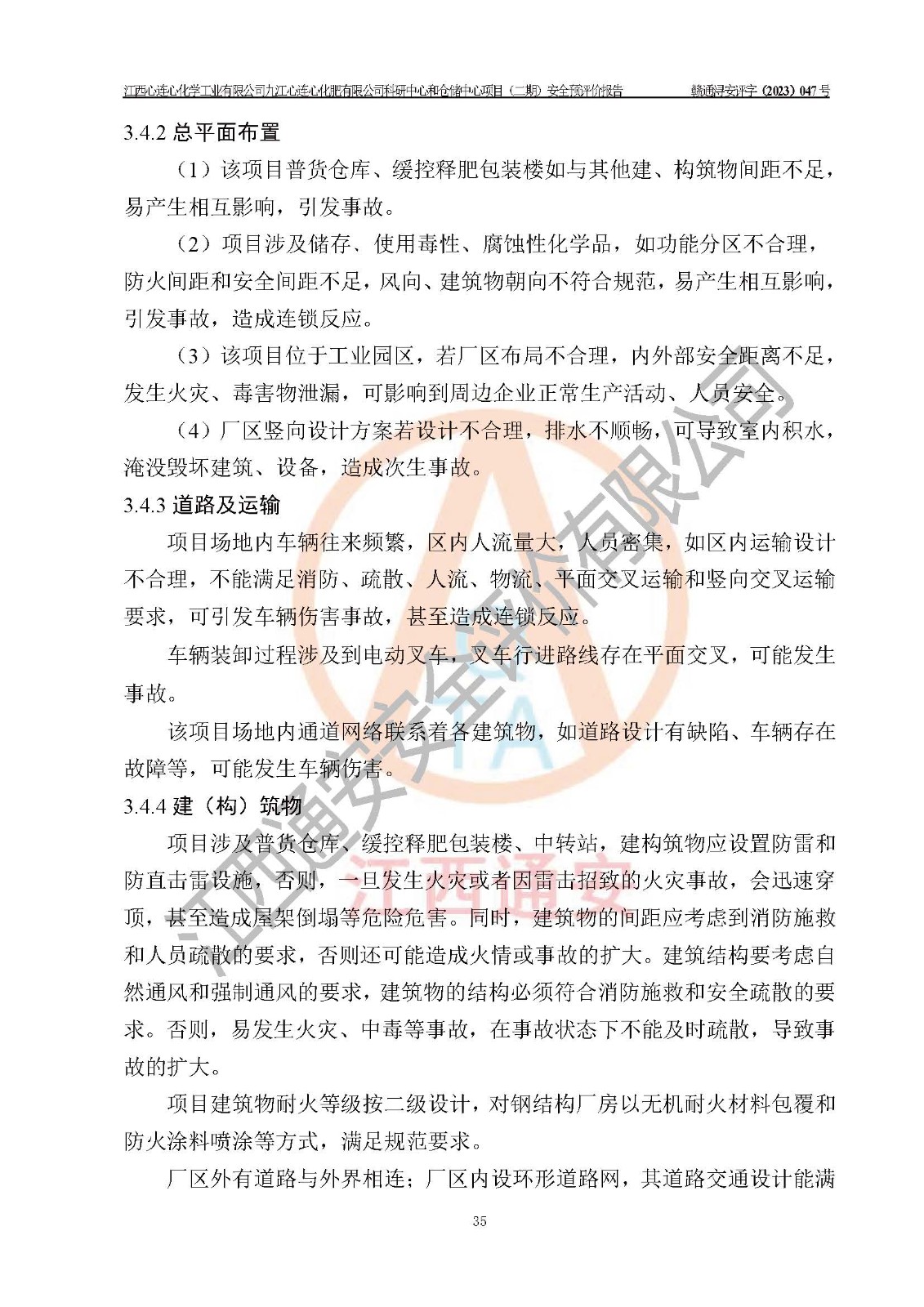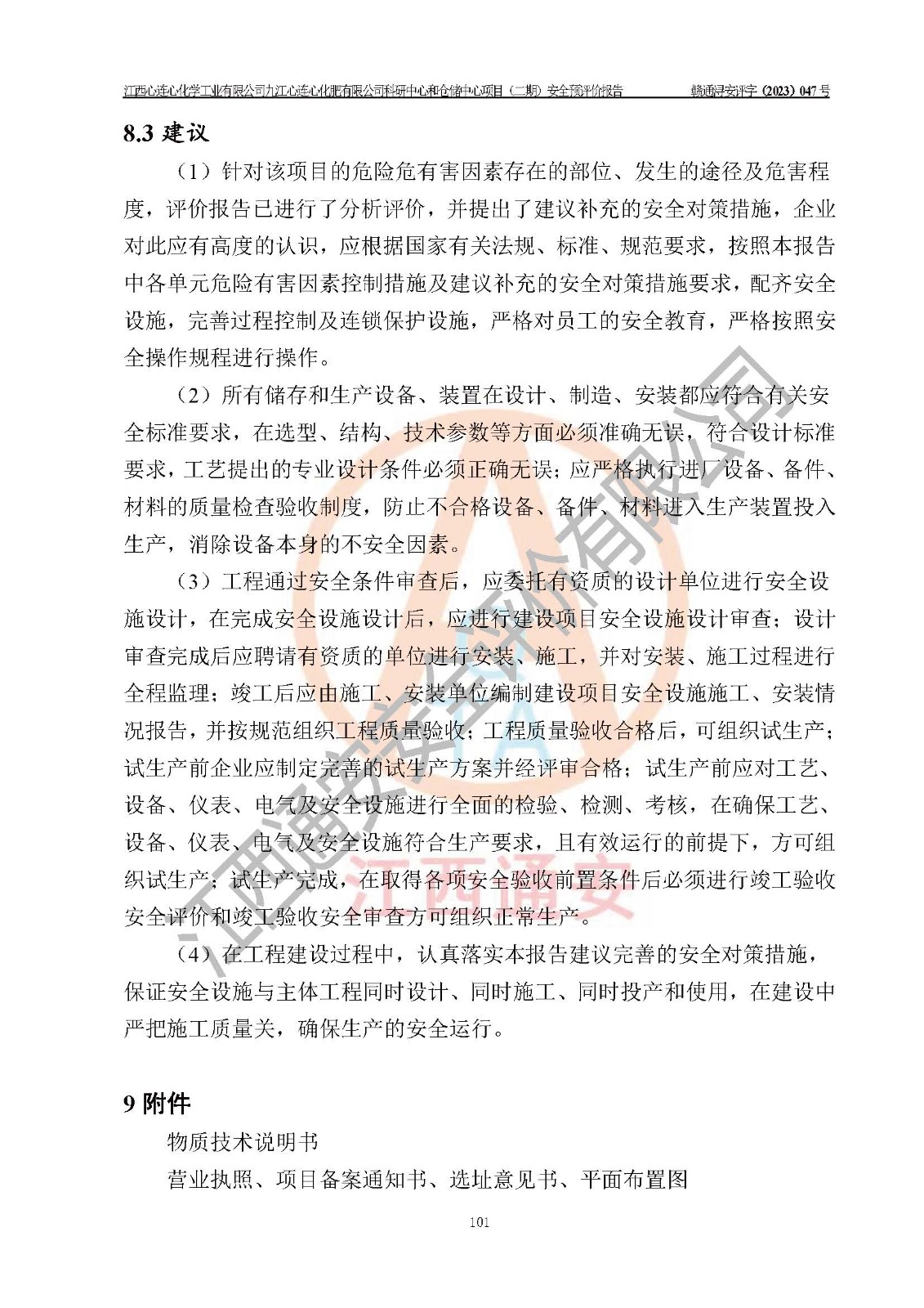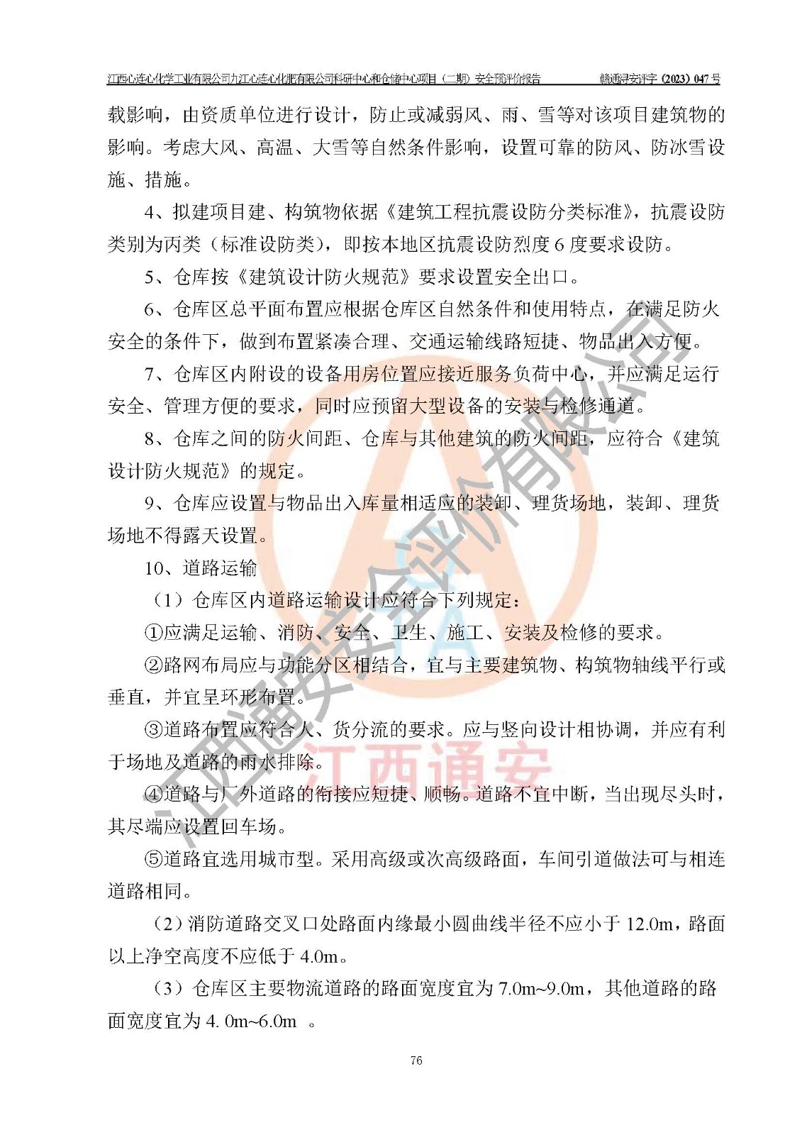 評價結(jié)論 | 江西心連心化學(xué)工業(yè)有限公司九江心連心化肥有限公司科研中心和倉儲中心項目(二期)的選址、總體布局、周邊環(huán)境、自然環(huán)境能滿足建設(shè)安全條件;項目選擇的工藝過程及設(shè)備設(shè)施的安全可靠性能達(dá)到**法規(guī)、標(biāo)準(zhǔn)規(guī)定要求;項目存在的危險有害因素可控,在落實本評價報告提出的有關(guān)安全對策措施后,其危險有害程度能達(dá)到可以接受的程度,項目建設(shè)能夠?qū)崿F(xiàn) 安全運行的目標(biāo)。 | ||||