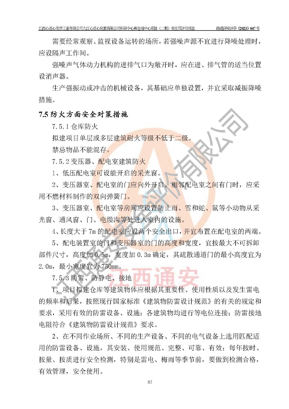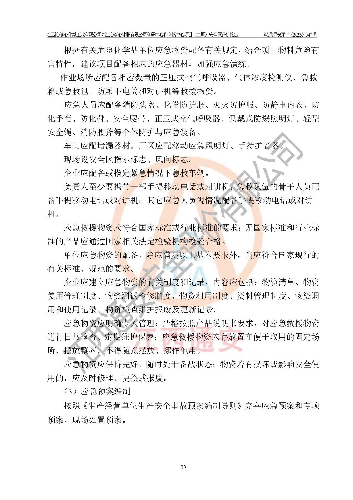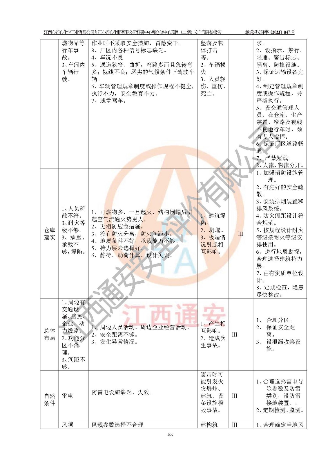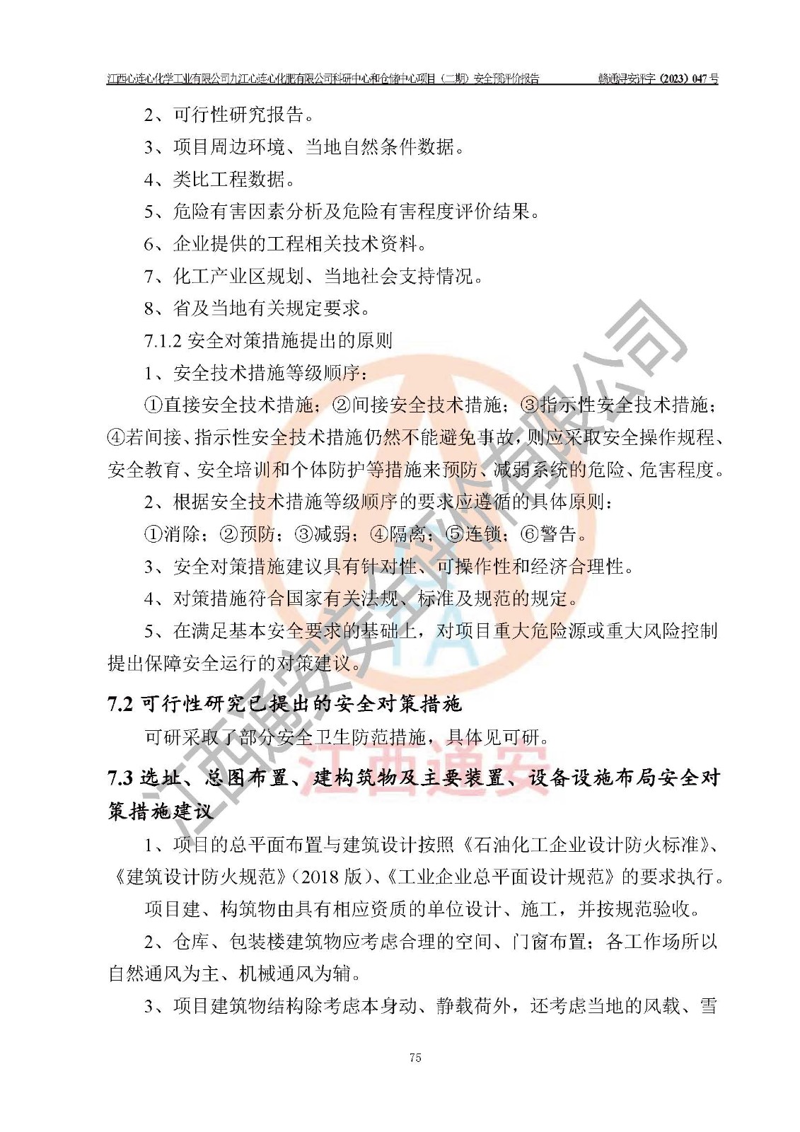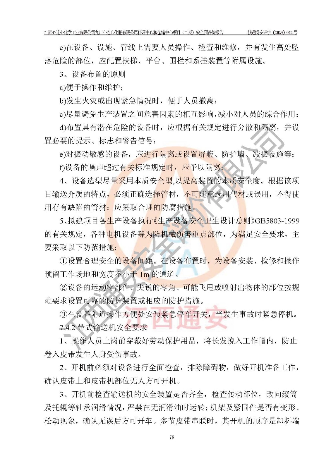 評價結(jié)論 | 江西心連心化學(xué)工業(yè)有限公司九江心連心化肥有限公司科研中心和倉儲中心項目(二期)的選址、總體布局、周邊環(huán)境、自然環(huán)境能滿足建設(shè)安全條件;項目選擇的工藝過程及設(shè)備設(shè)施的安全可靠性能達(dá)到**法規(guī)、標(biāo)準(zhǔn)規(guī)定要求;項目存在的危險有害因素可控,在落實本評價報告提出的有關(guān)安全對策措施后,其危險有害程度能達(dá)到可以接受的程度,項目建設(shè)能夠?qū)崿F(xiàn) 安全運行的目標(biāo)。 | ||||