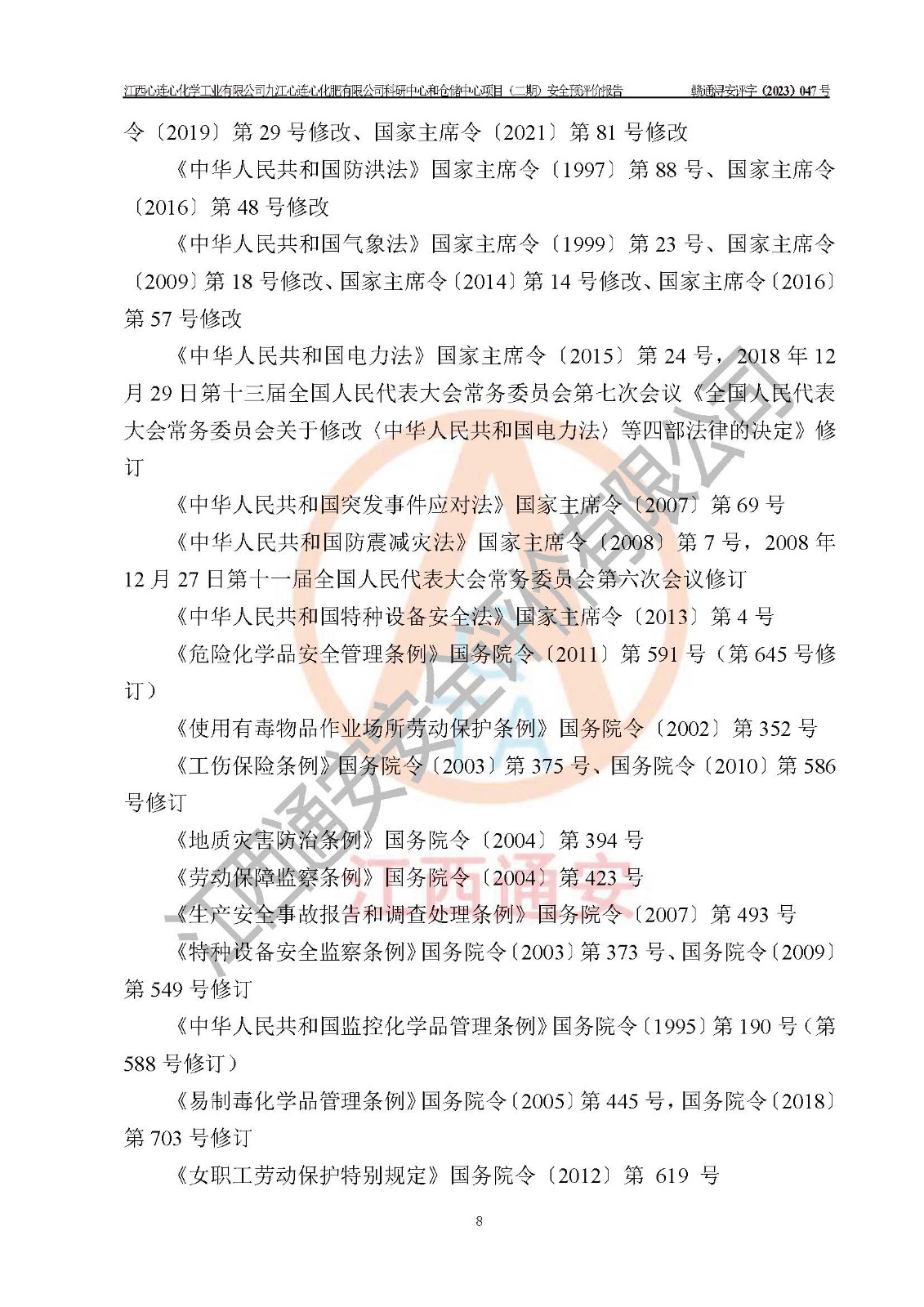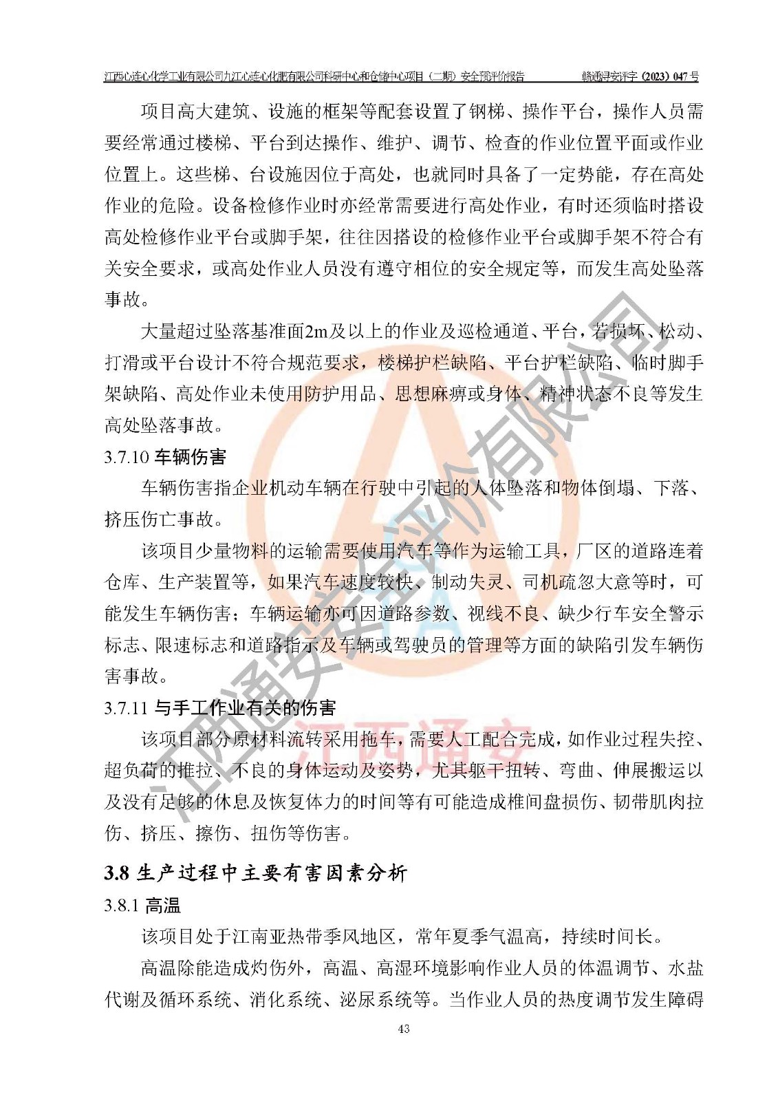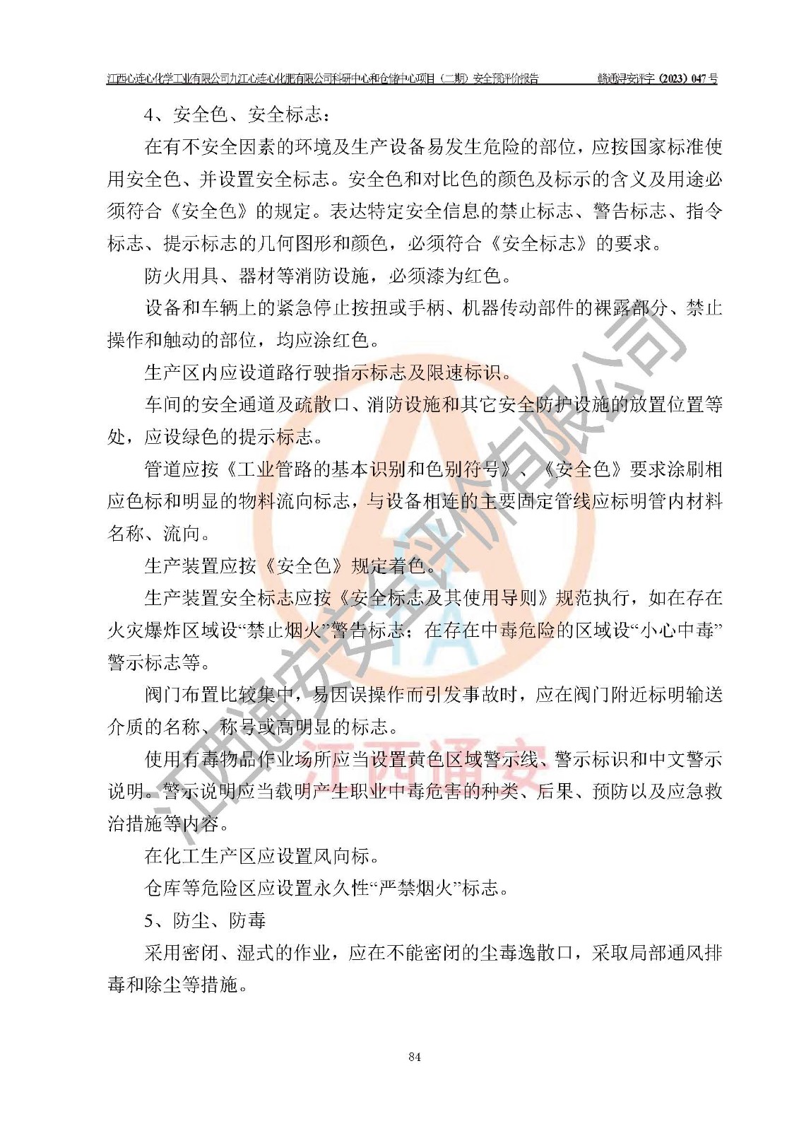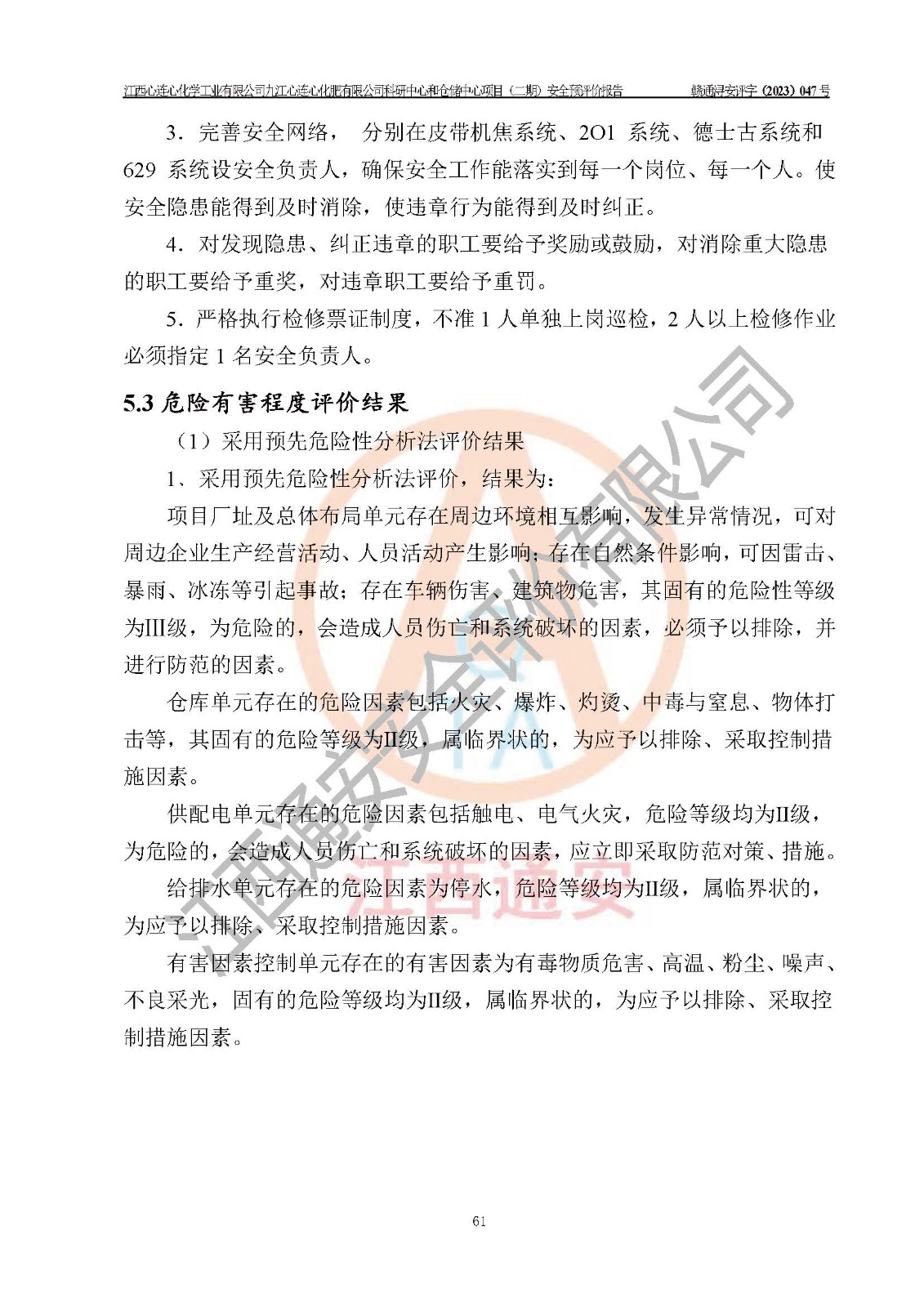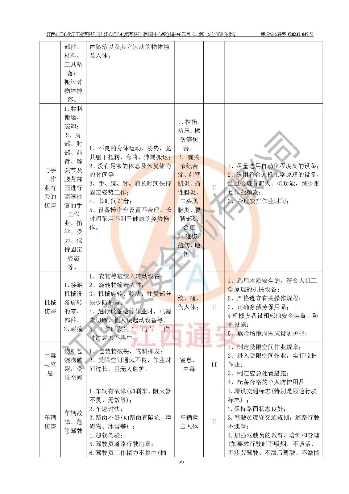 評價結(jié)論 | 江西心連心化學(xué)工業(yè)有限公司九江心連心化肥有限公司科研中心和倉儲中心項目(二期)的選址、總體布局、周邊環(huán)境、自然環(huán)境能滿足建設(shè)安全條件;項目選擇的工藝過程及設(shè)備設(shè)施的安全可靠性能達(dá)到**法規(guī)、標(biāo)準(zhǔn)規(guī)定要求;項目存在的危險有害因素可控,在落實本評價報告提出的有關(guān)安全對策措施后,其危險有害程度能達(dá)到可以接受的程度,項目建設(shè)能夠?qū)崿F(xiàn) 安全運行的目標(biāo)。 | ||||