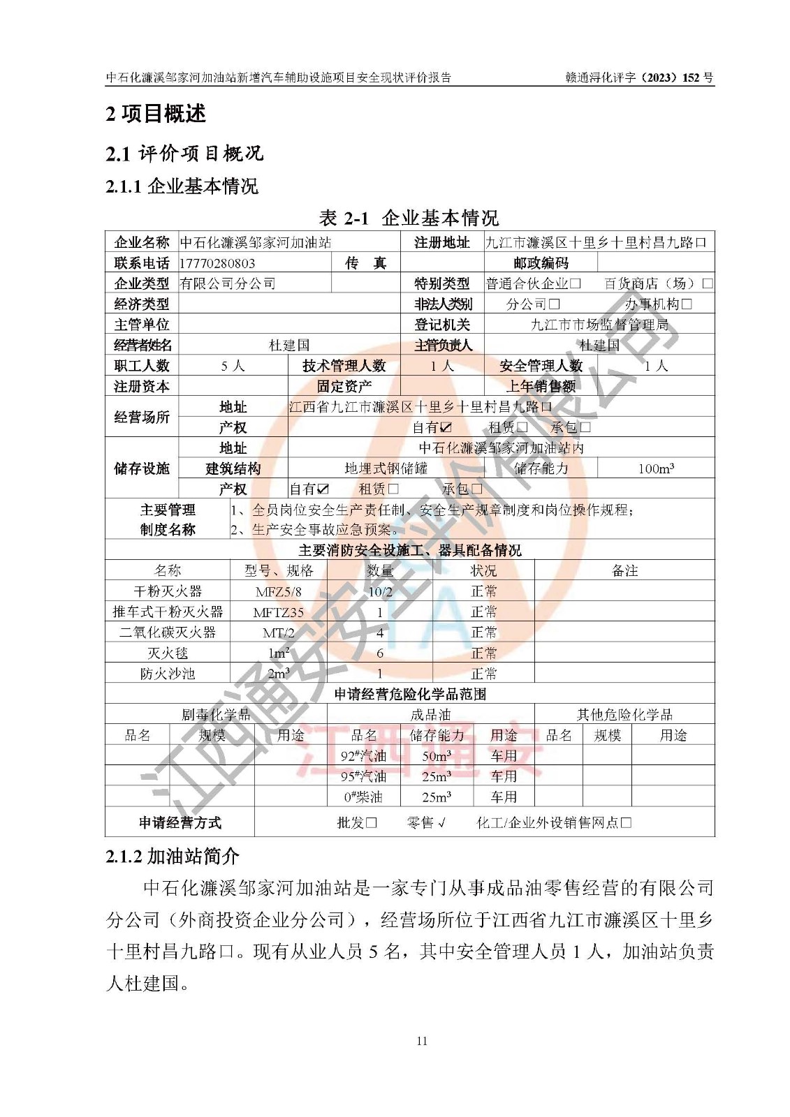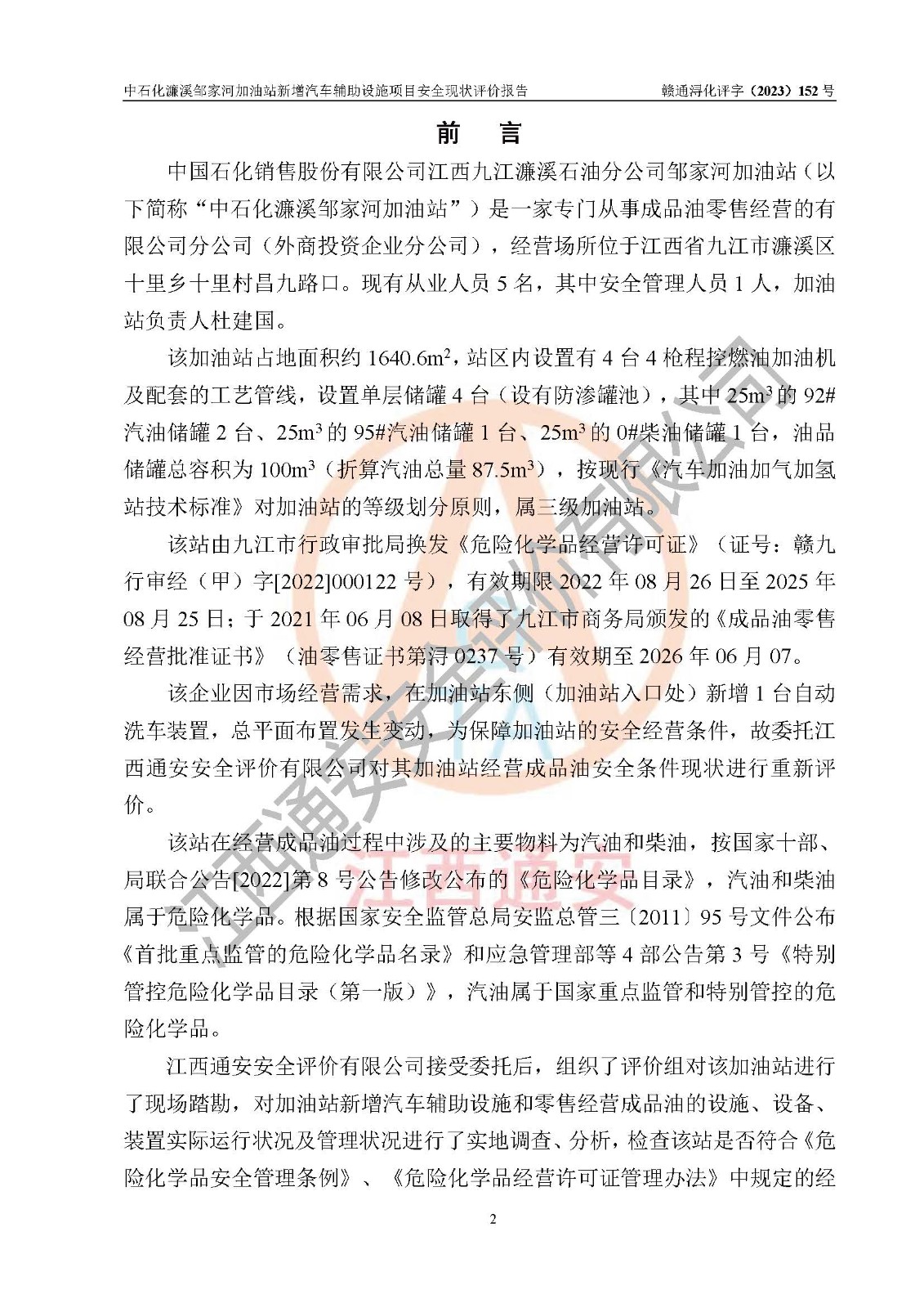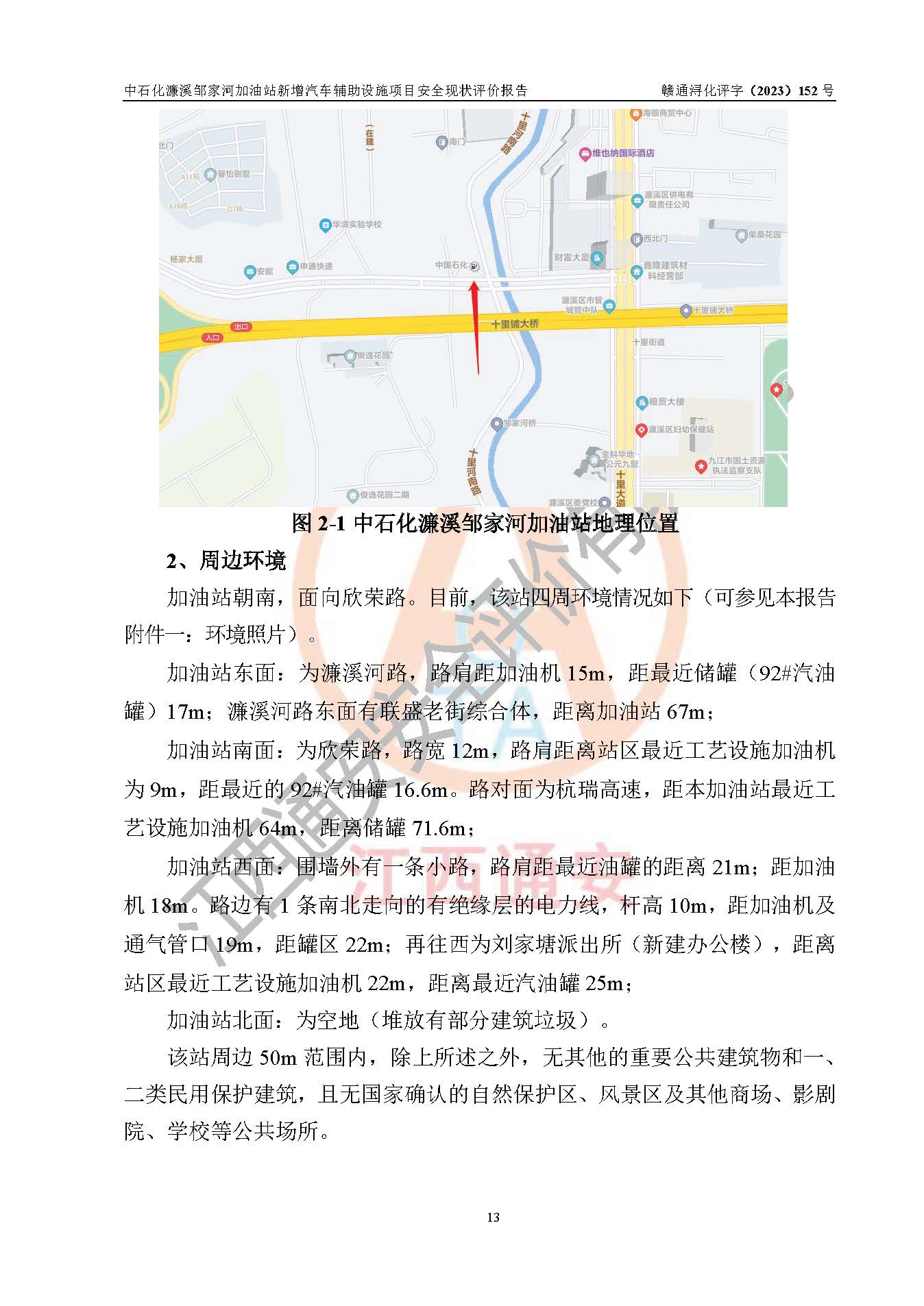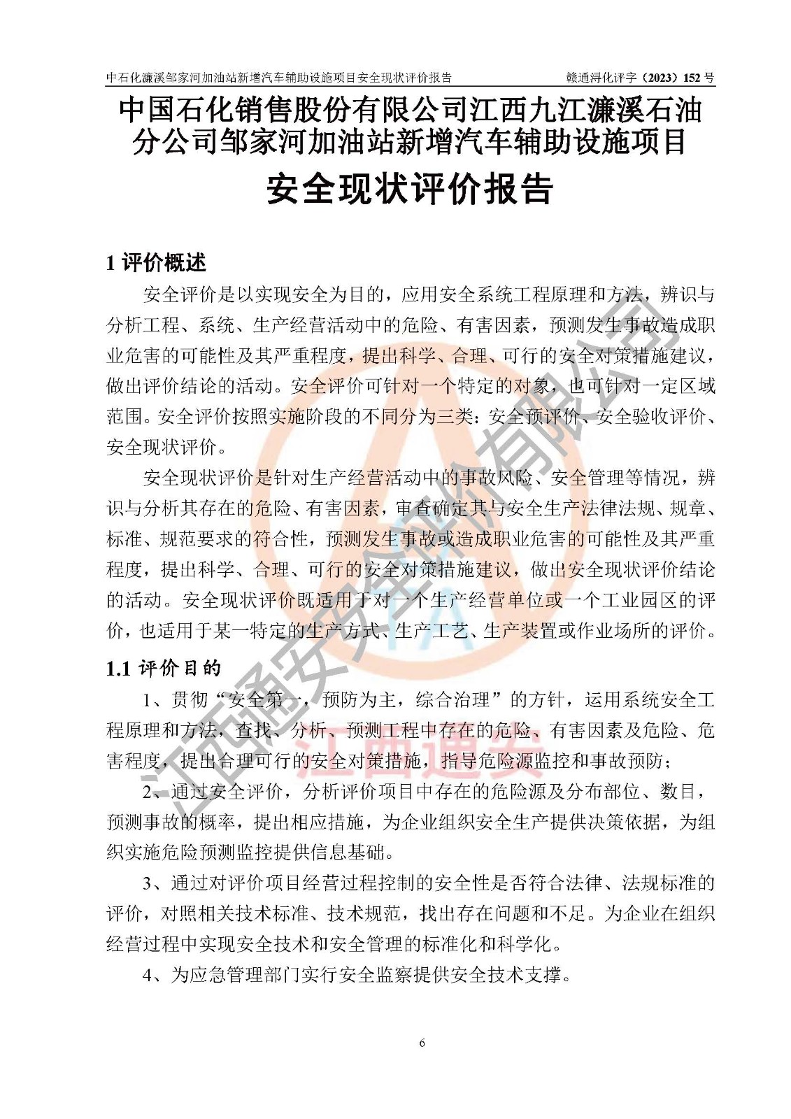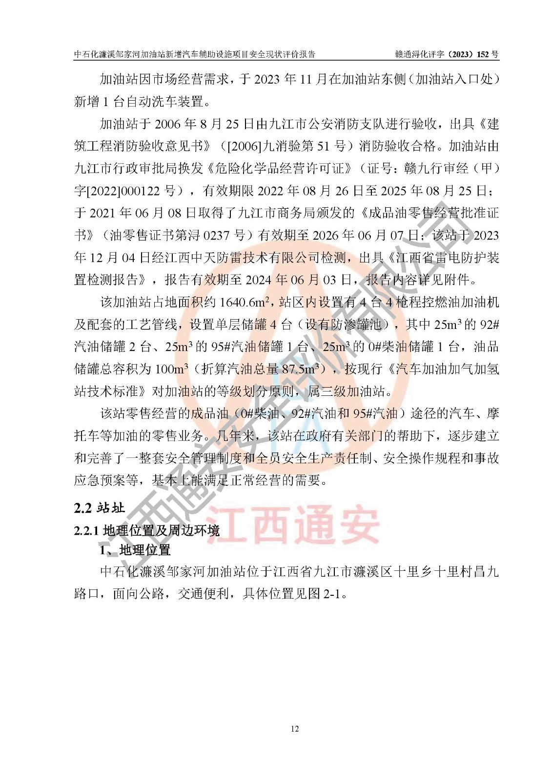 評價報告名稱 | 中國石化銷售股份有限公司江西九江濂溪石油分公司鄒家河加油站新增汽車輔助設(shè)施項目安全現(xiàn)狀評價報告 | |||