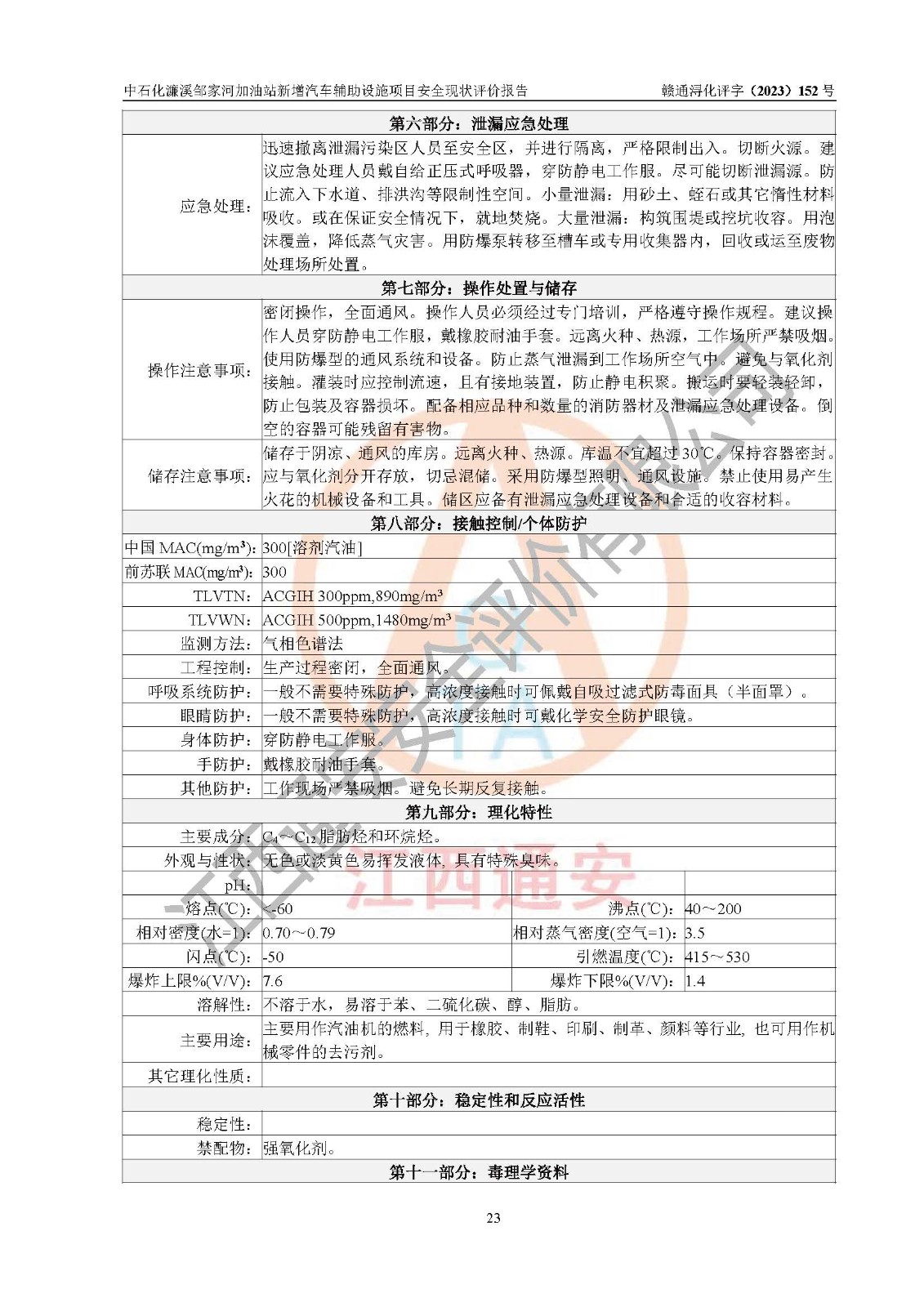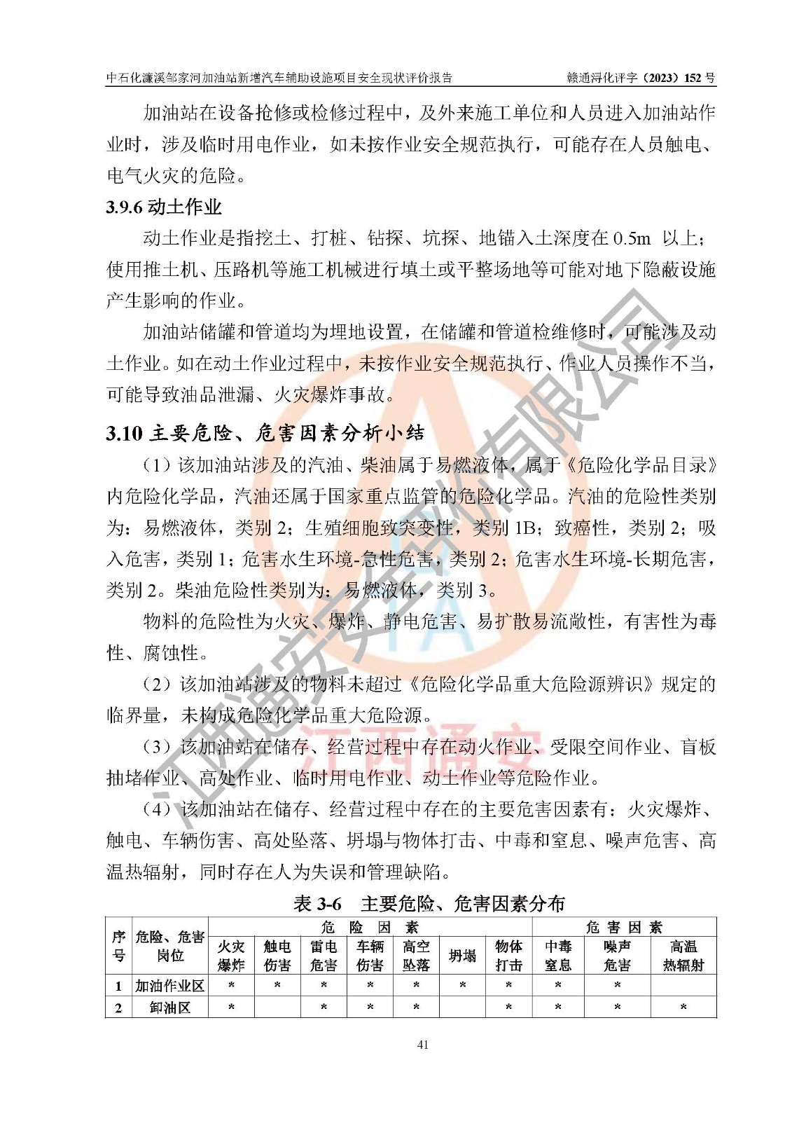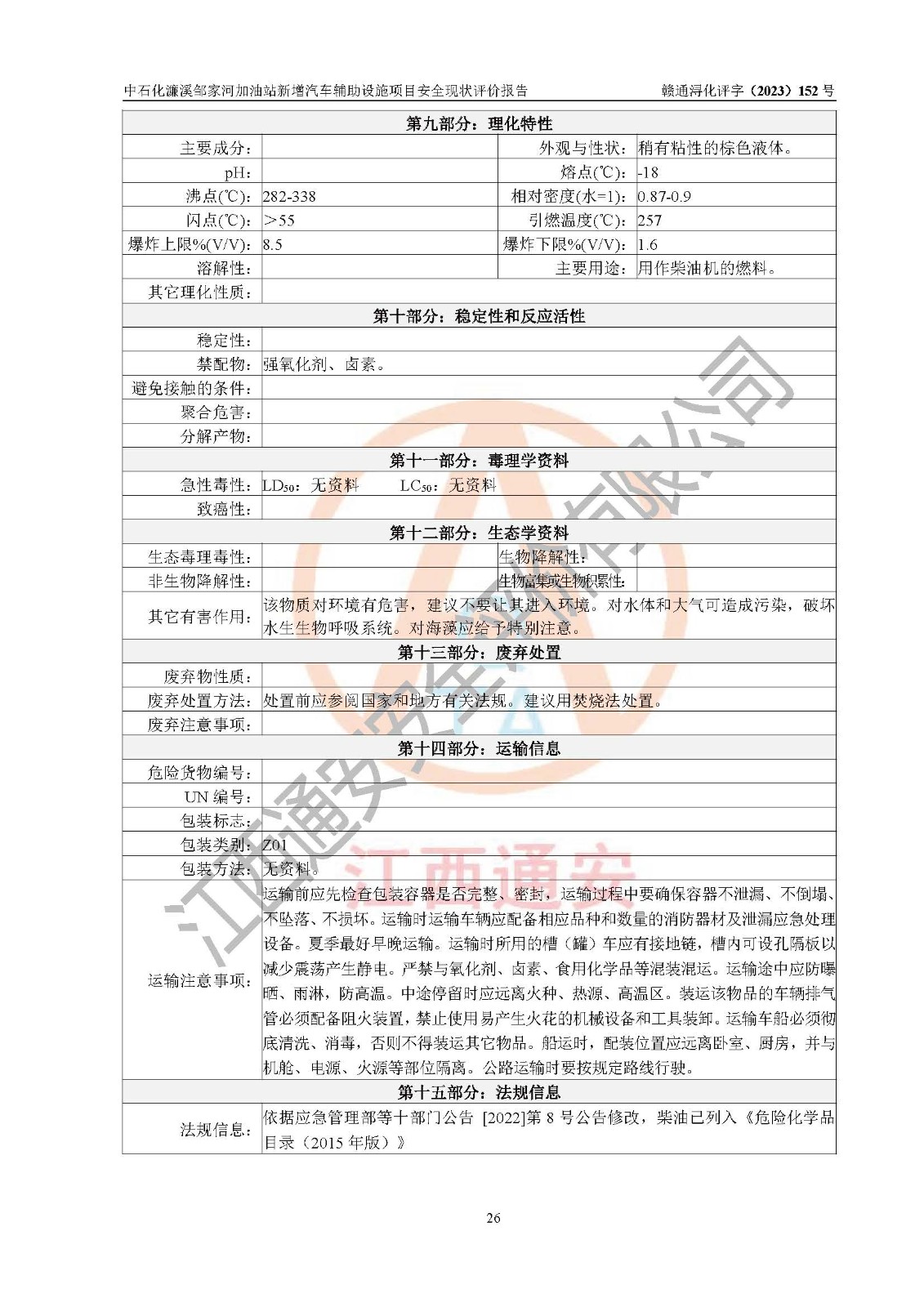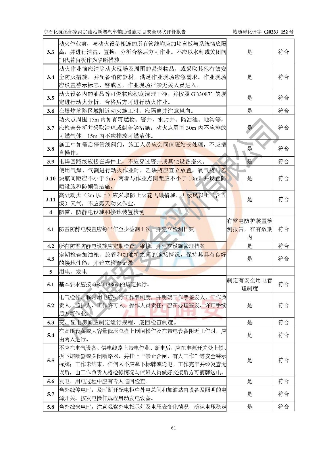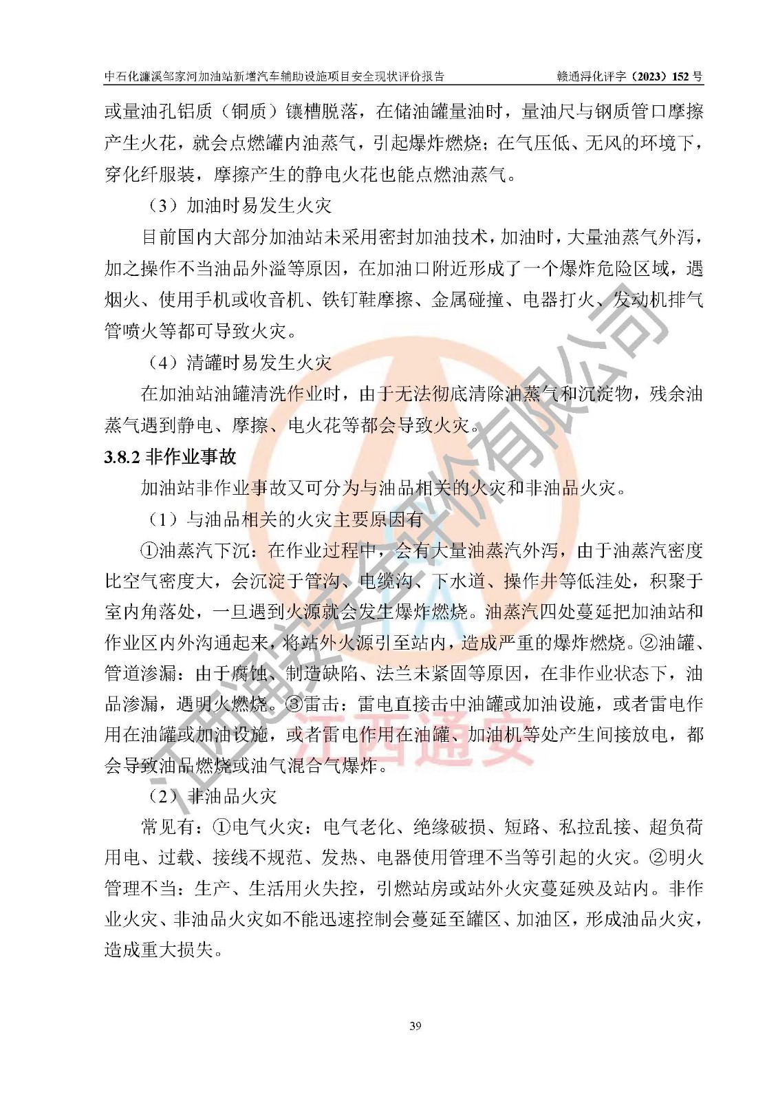 評價結(jié)論 | 中國石化銷售股份有限公司江西九江濂溪石油分公司鄒家河加油站新增汽車輔助設(shè)施項目涉及的安全條件、安全經(jīng)營條件、安全生產(chǎn)管理符合《危險化學(xué)品經(jīng)營許可證管理辦法》、《汽車加油加氣加氫站技術(shù)標(biāo)準(zhǔn)》等**有關(guān)法規(guī)、標(biāo)準(zhǔn)、規(guī)范要求,能滿足危險化學(xué)品經(jīng)營安全條件。 | |||