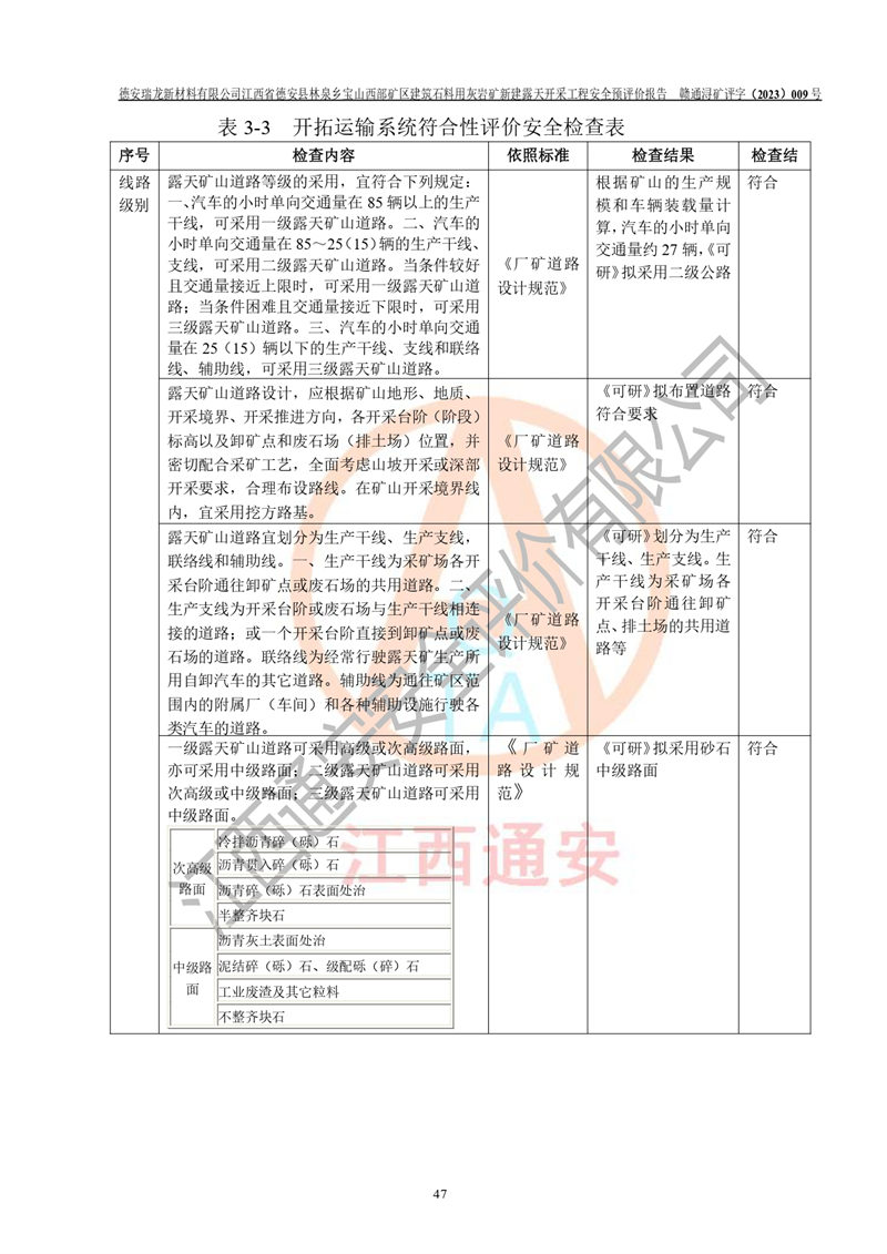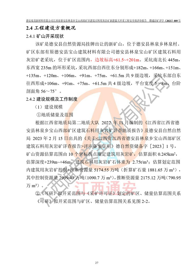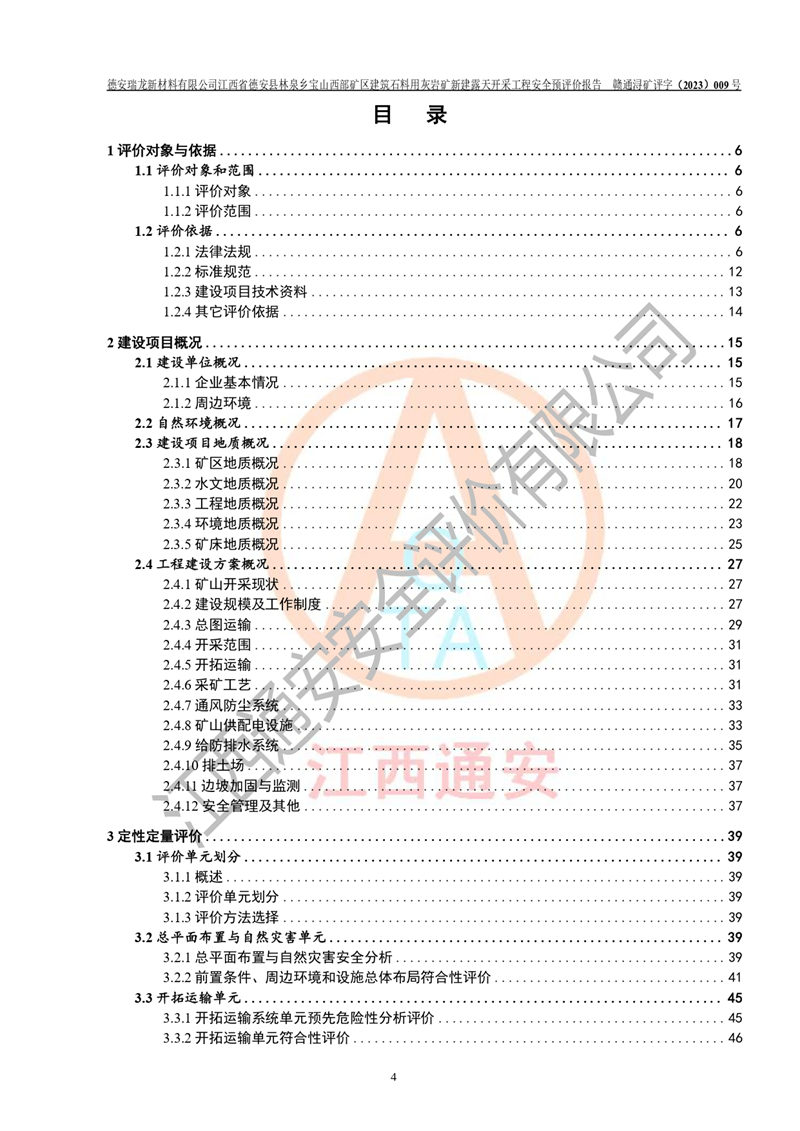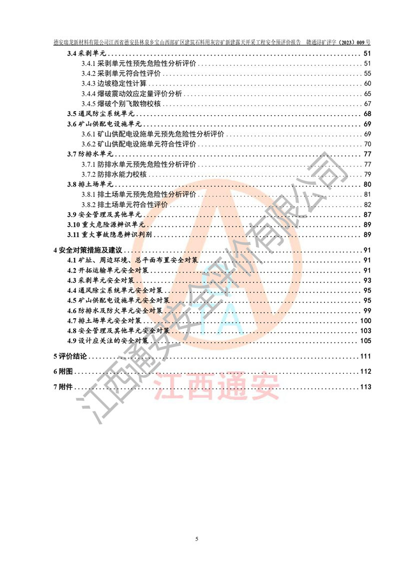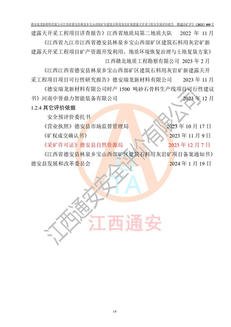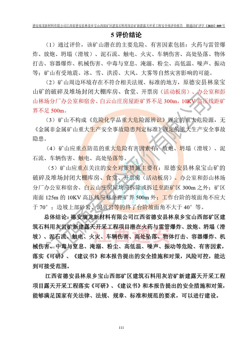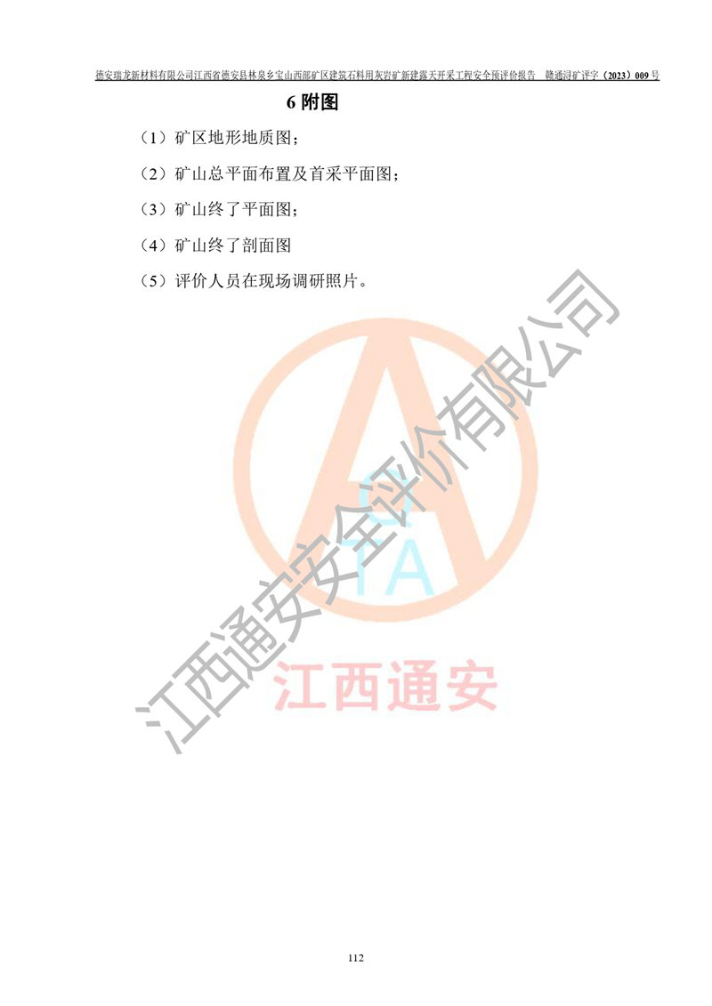 評價報告名稱 | 德安瑞龍新材料有限公司江西省德安縣林泉鄉(xiāng)寶山西部礦區(qū)建筑石料用灰?guī)r礦新建露天開采工程安全預評價報告 | |||||