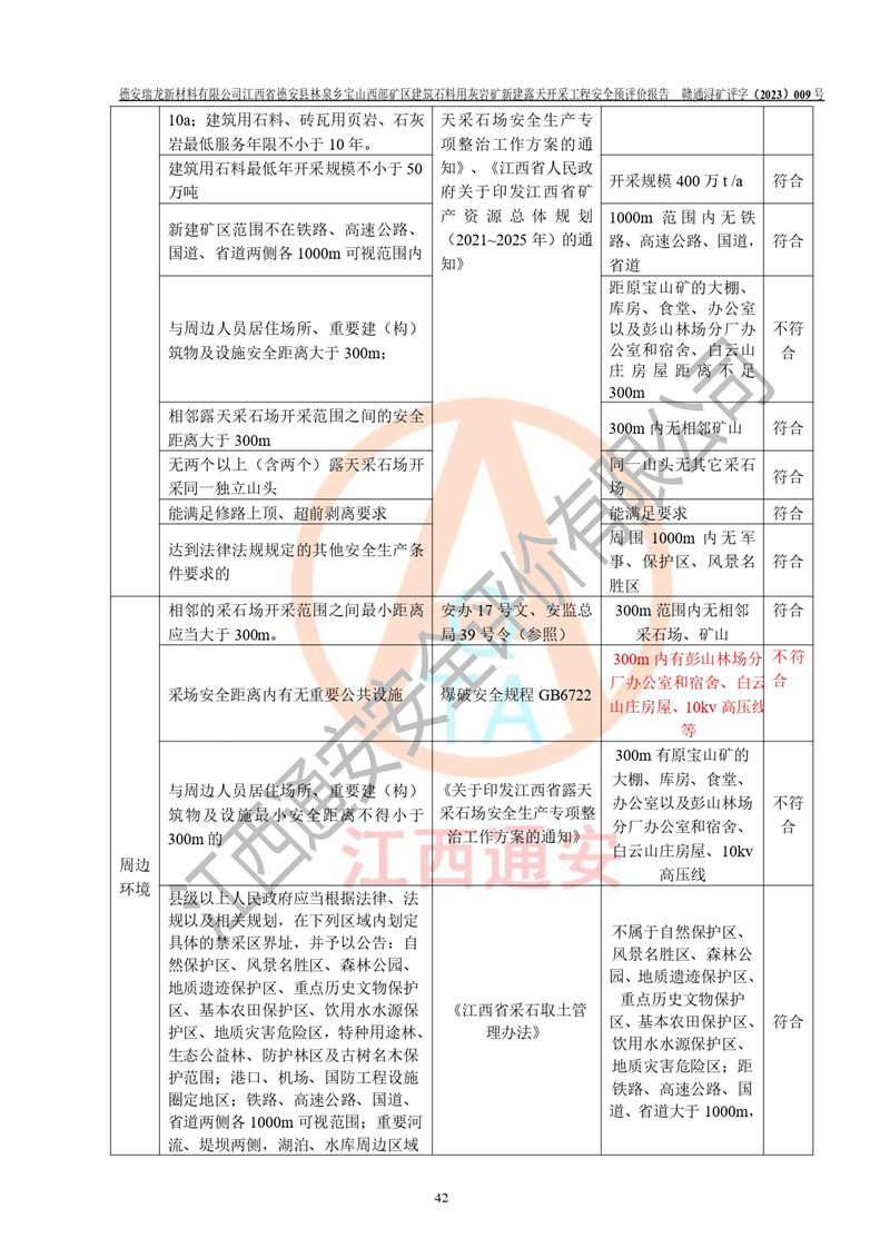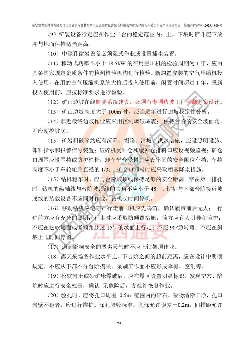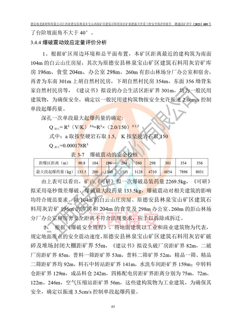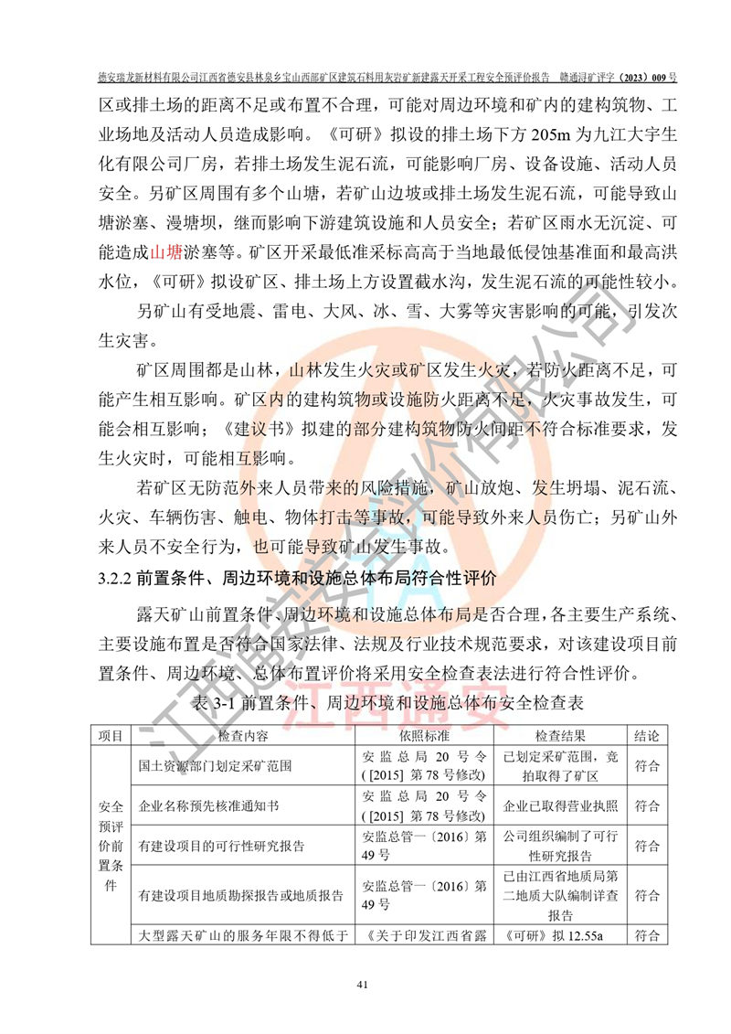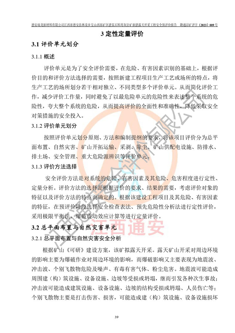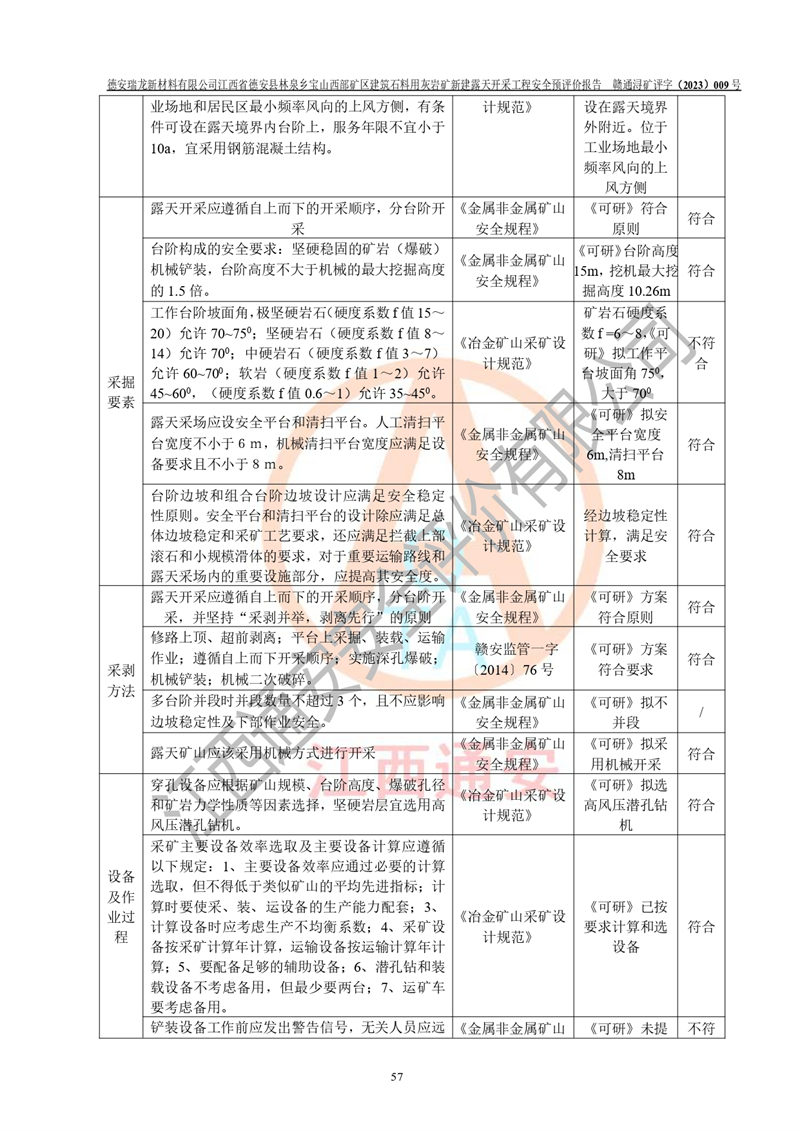 評價報告名稱 | 德安瑞龍新材料有限公司江西省德安縣林泉鄉(xiāng)寶山西部礦區(qū)建筑石料用灰?guī)r礦新建露天開采工程安全預評價報告 | |||||