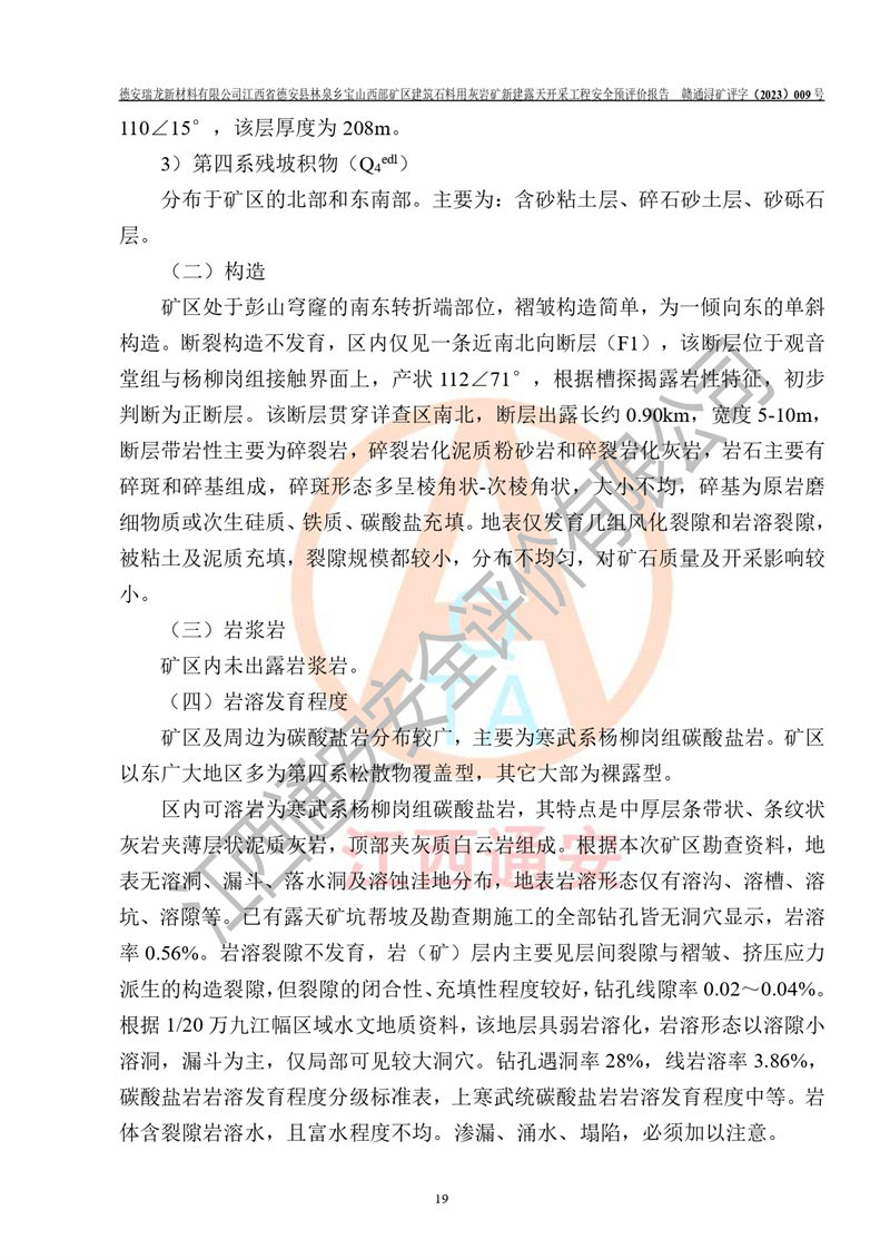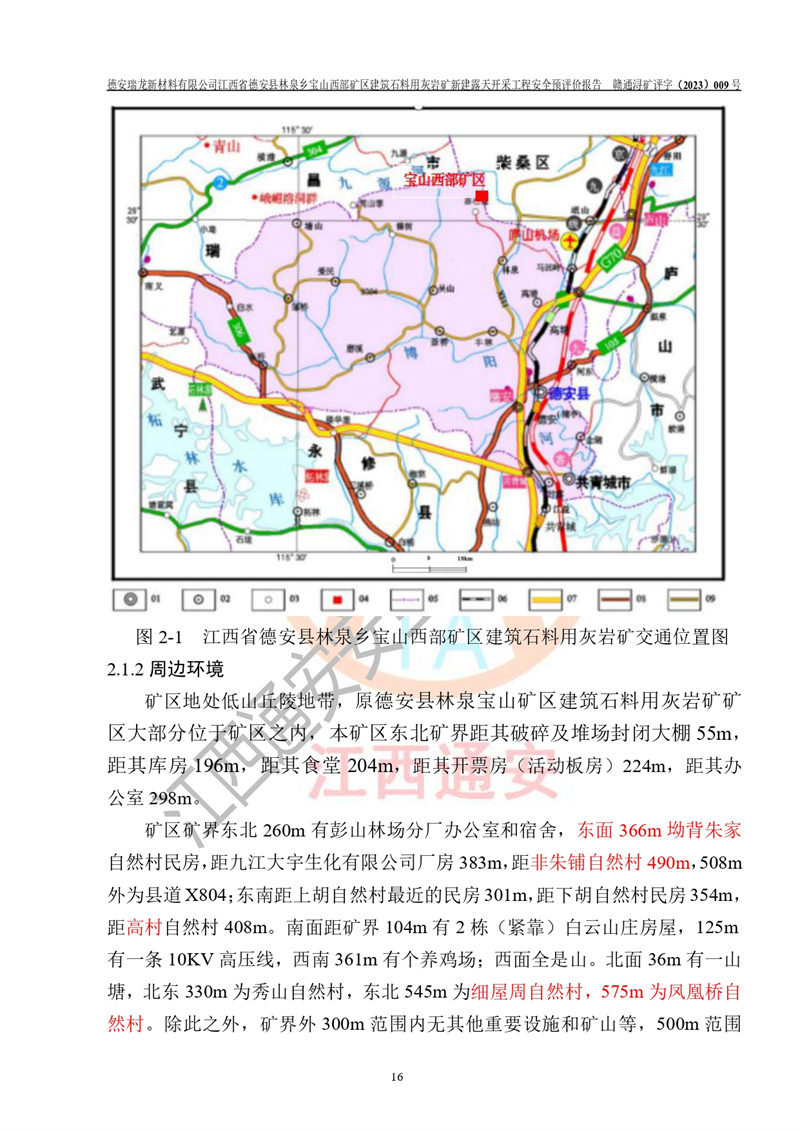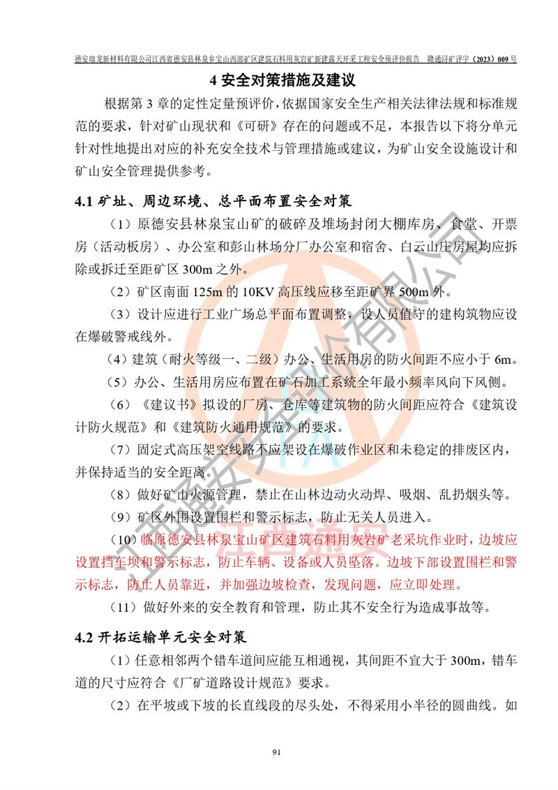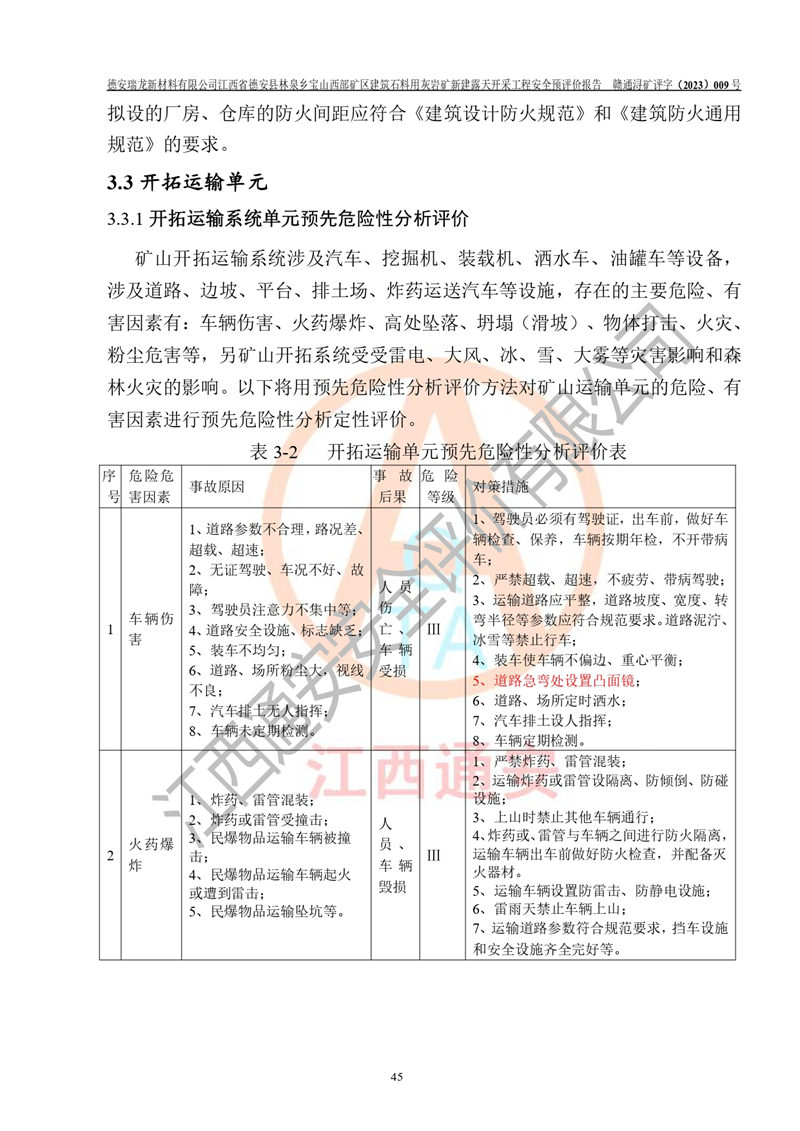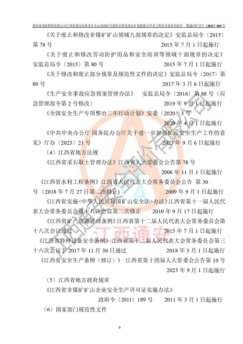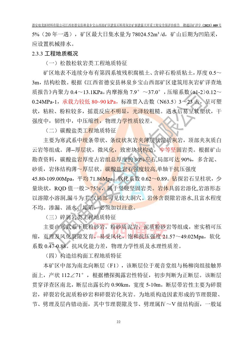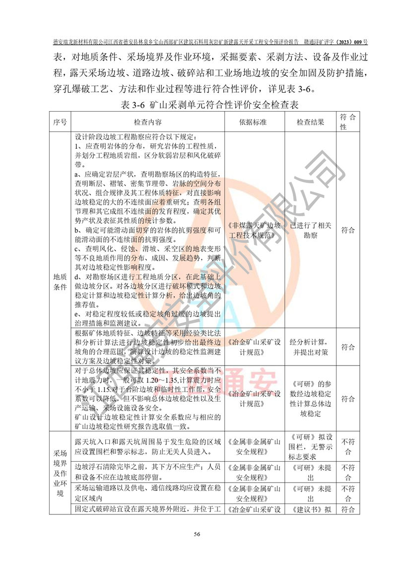 評價報告名稱 | 德安瑞龍新材料有限公司江西省德安縣林泉鄉(xiāng)寶山西部礦區(qū)建筑石料用灰?guī)r礦新建露天開采工程安全預評價報告 | |||||