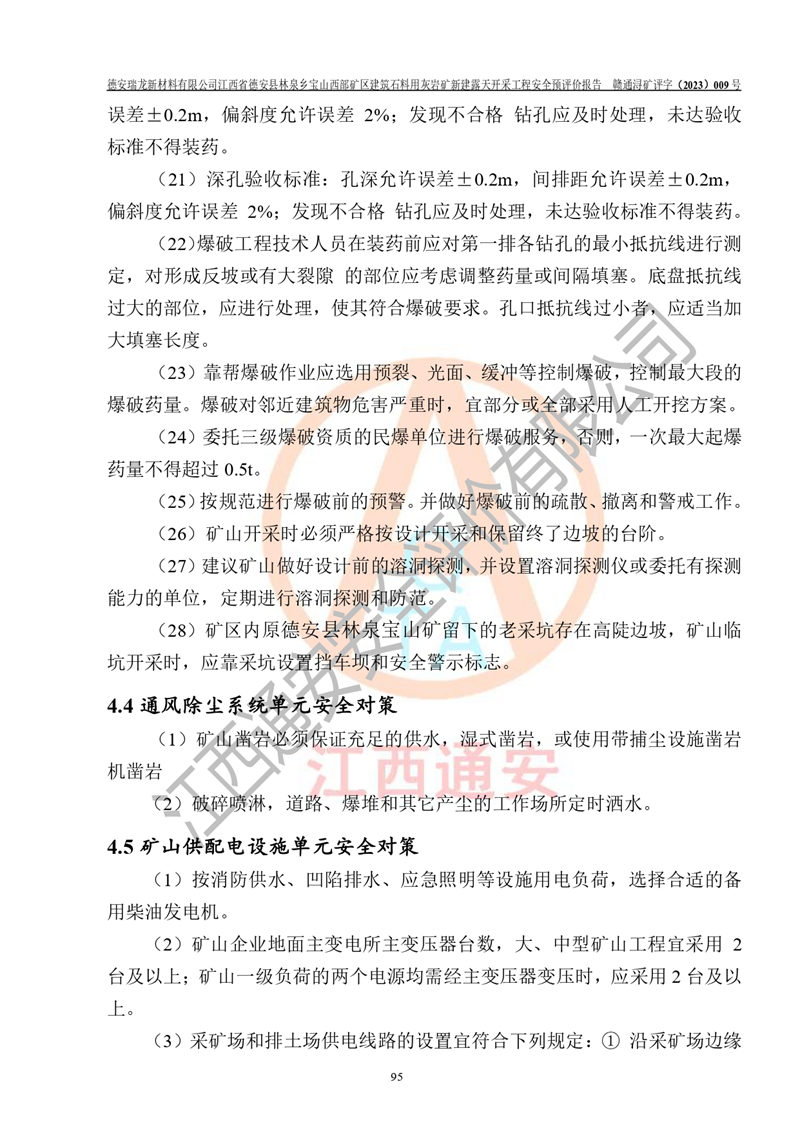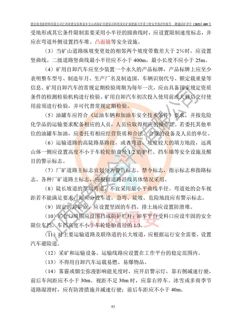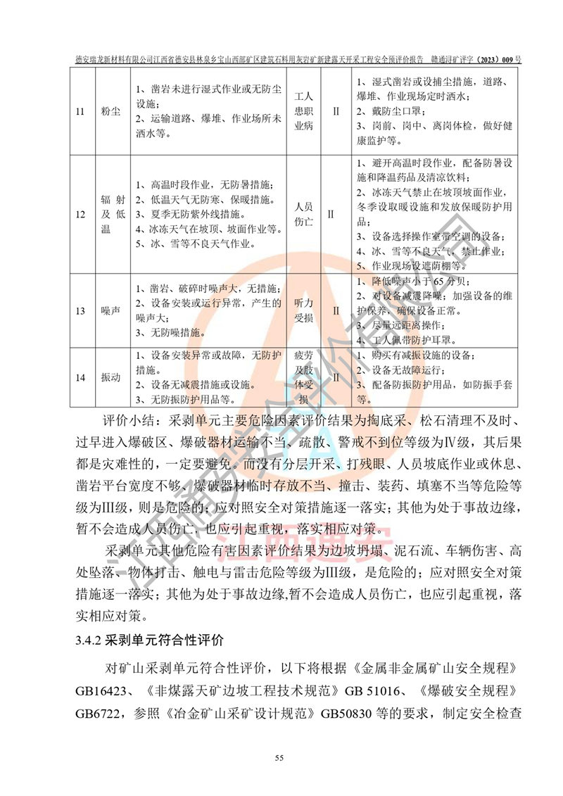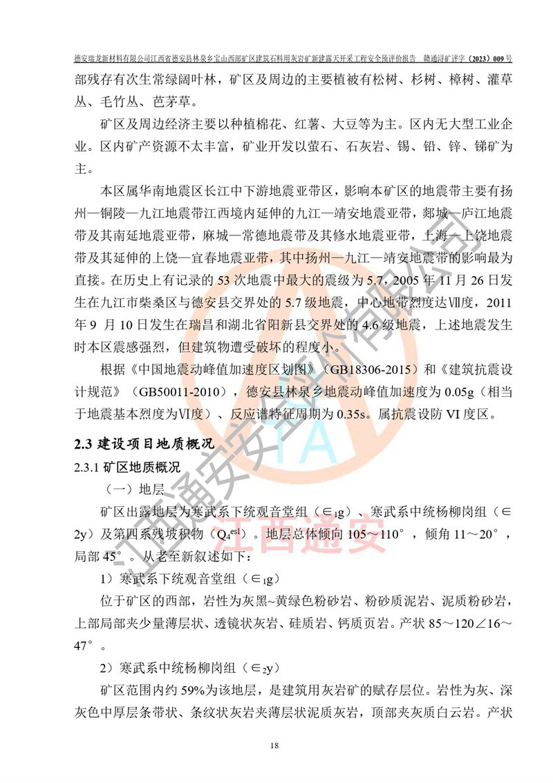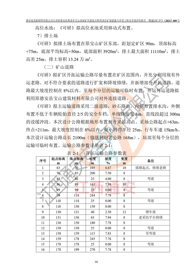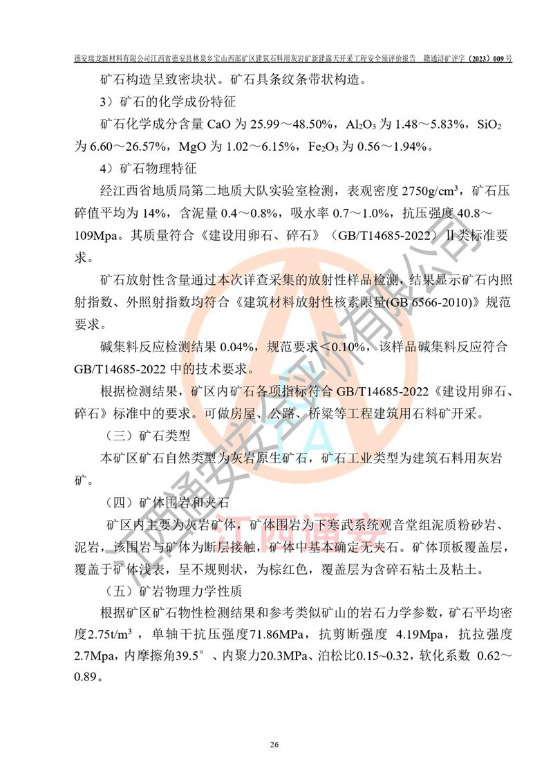 評價報告名稱 | 德安瑞龍新材料有限公司江西省德安縣林泉鄉(xiāng)寶山西部礦區(qū)建筑石料用灰?guī)r礦新建露天開采工程安全預評價報告 | |||||