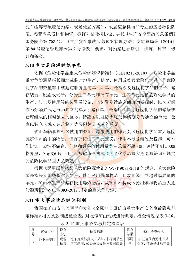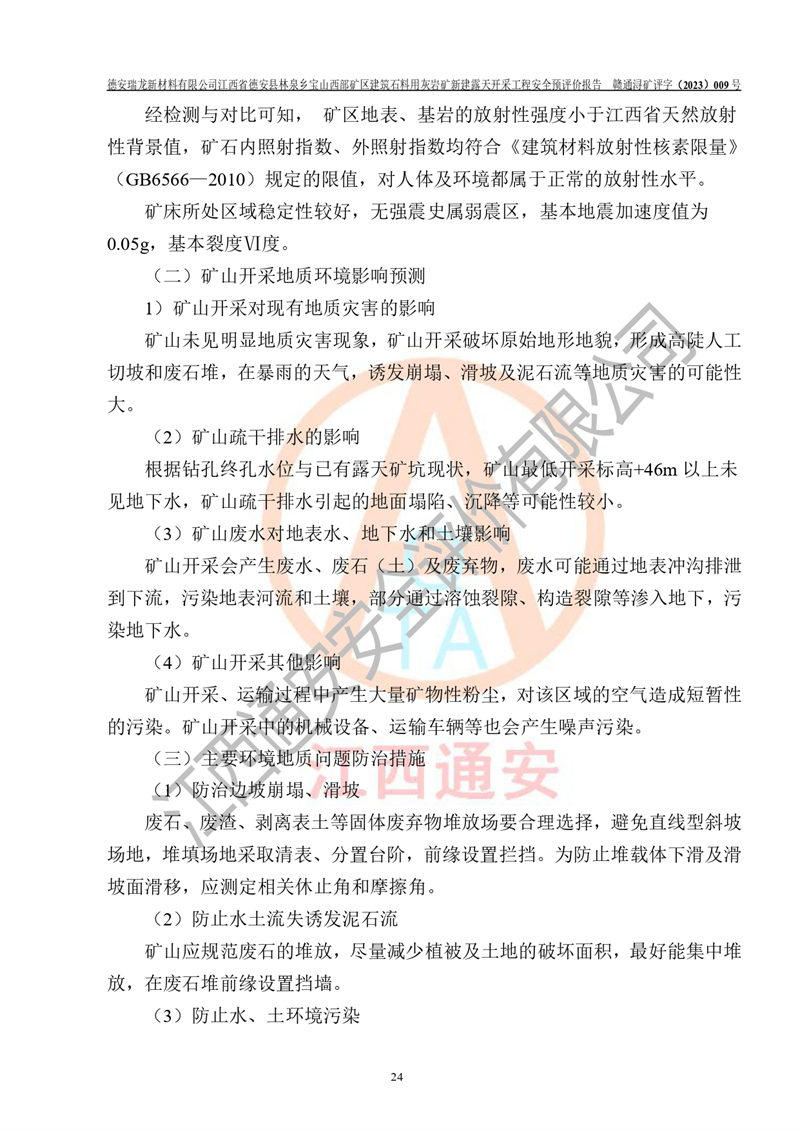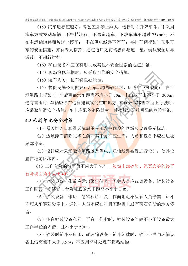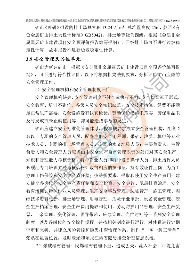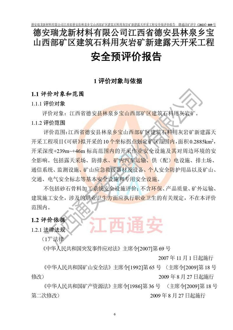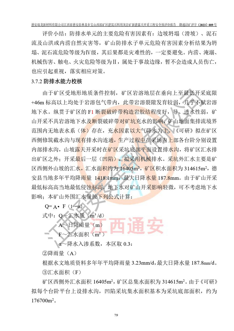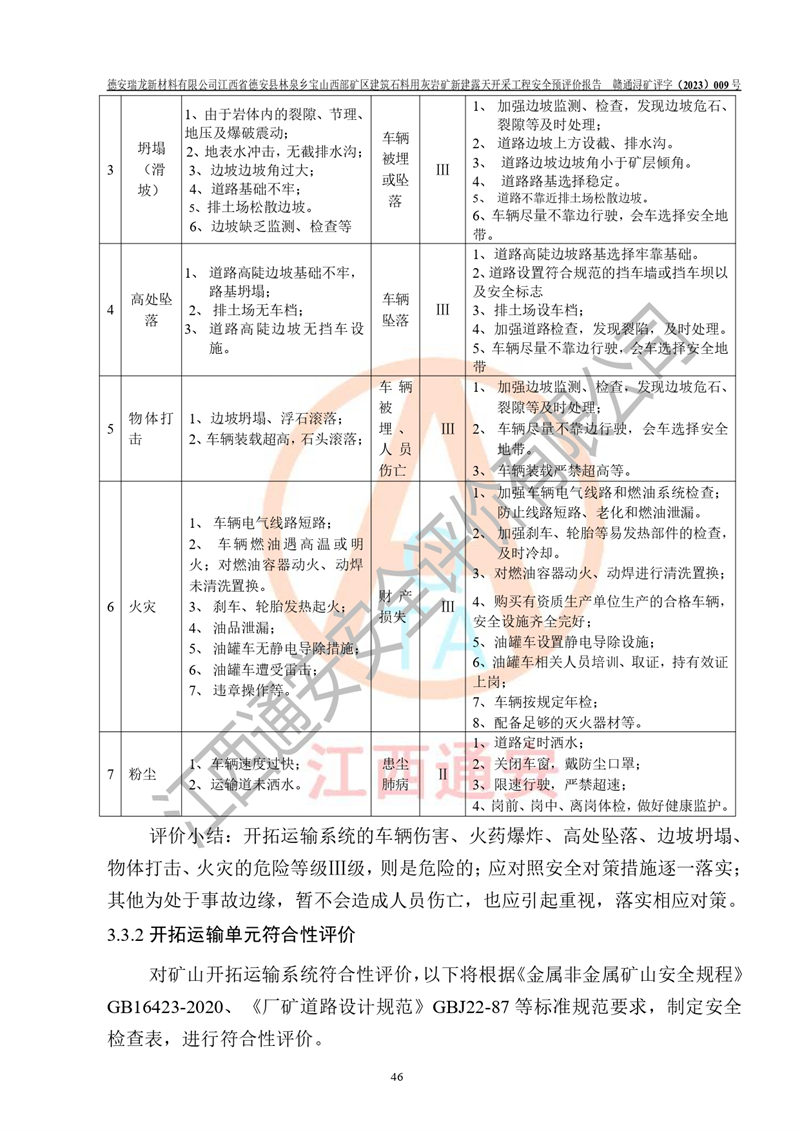 評價報告名稱 | 德安瑞龍新材料有限公司江西省德安縣林泉鄉(xiāng)寶山西部礦區(qū)建筑石料用灰?guī)r礦新建露天開采工程安全預評價報告 | |||||