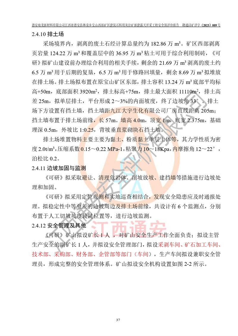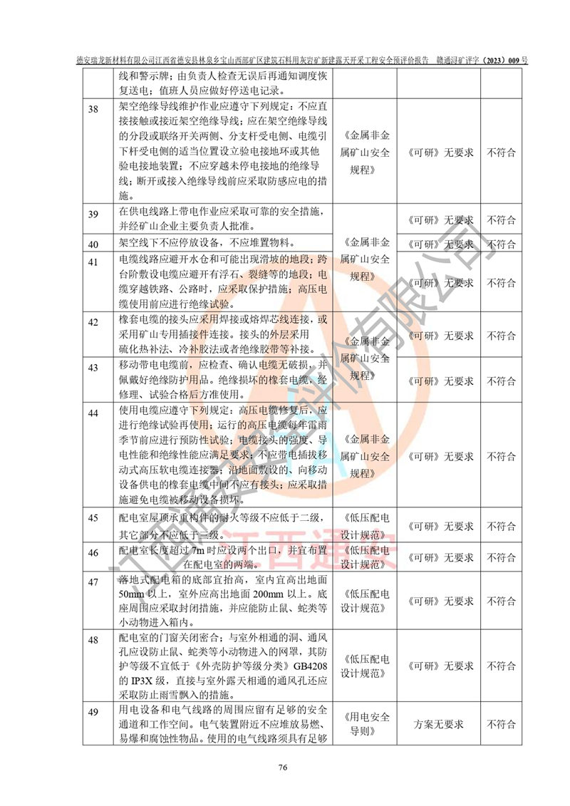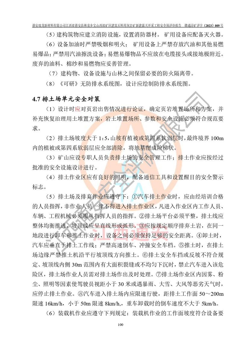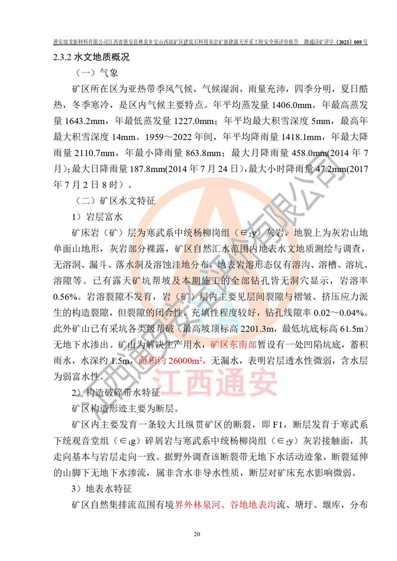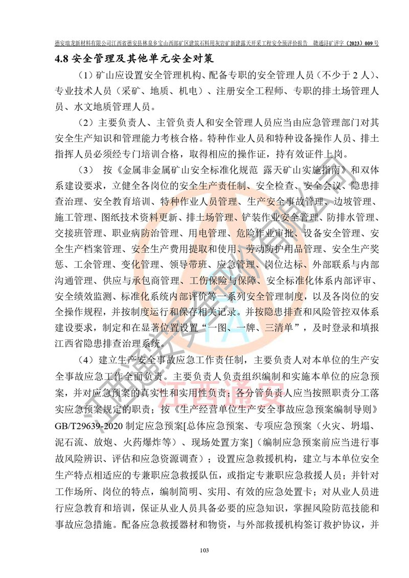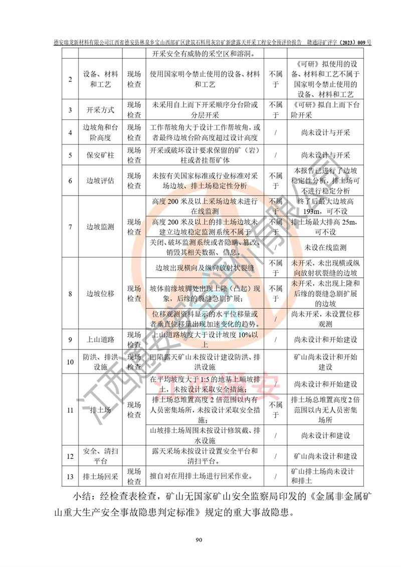 評價報告名稱 | 德安瑞龍新材料有限公司江西省德安縣林泉鄉(xiāng)寶山西部礦區(qū)建筑石料用灰?guī)r礦新建露天開采工程安全預評價報告 | |||||