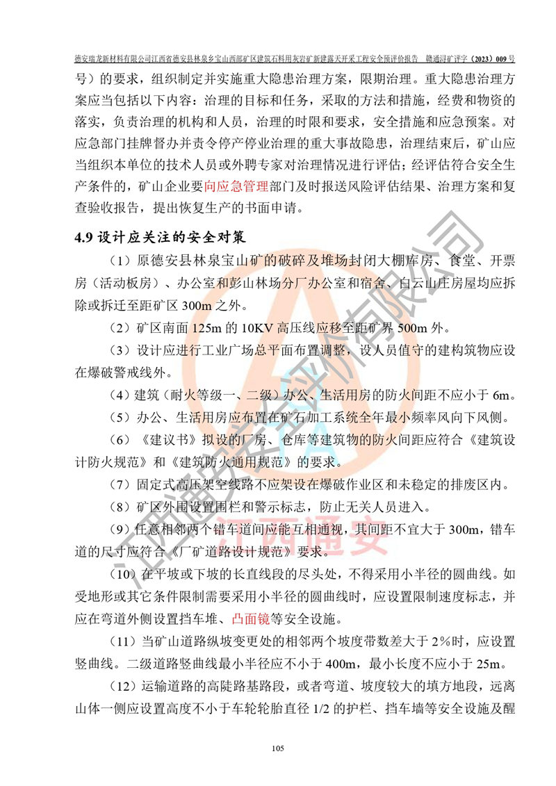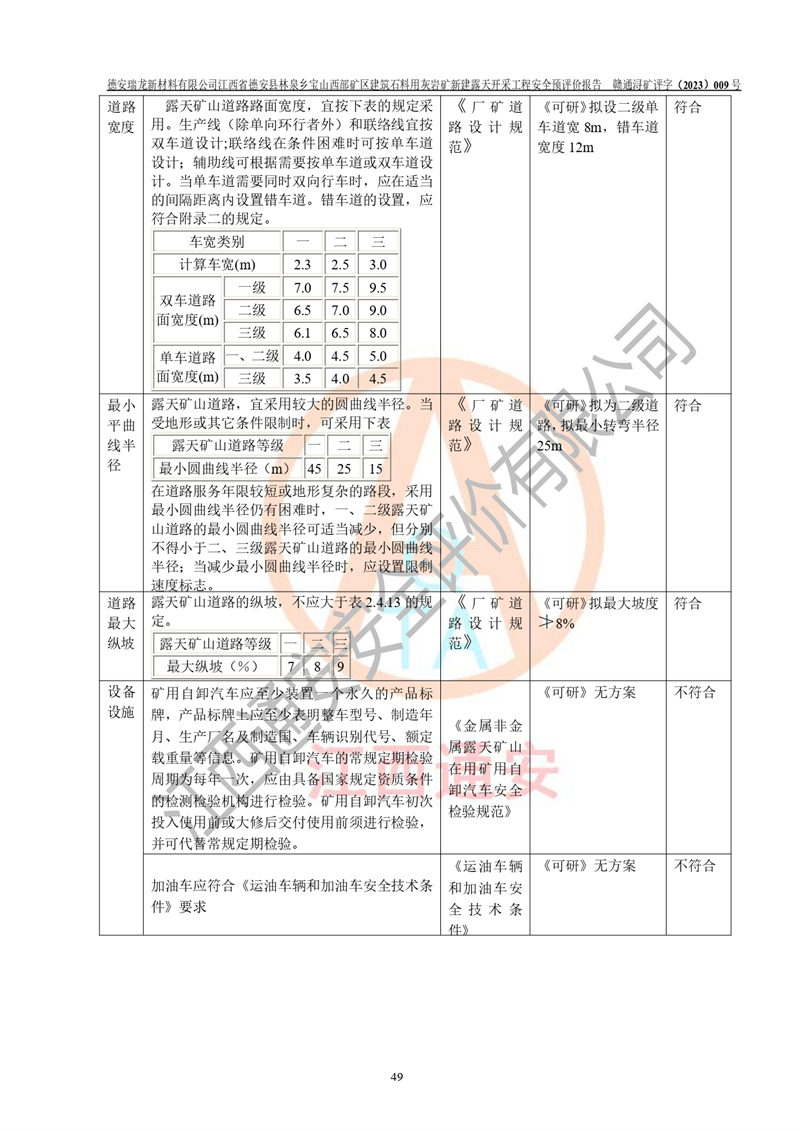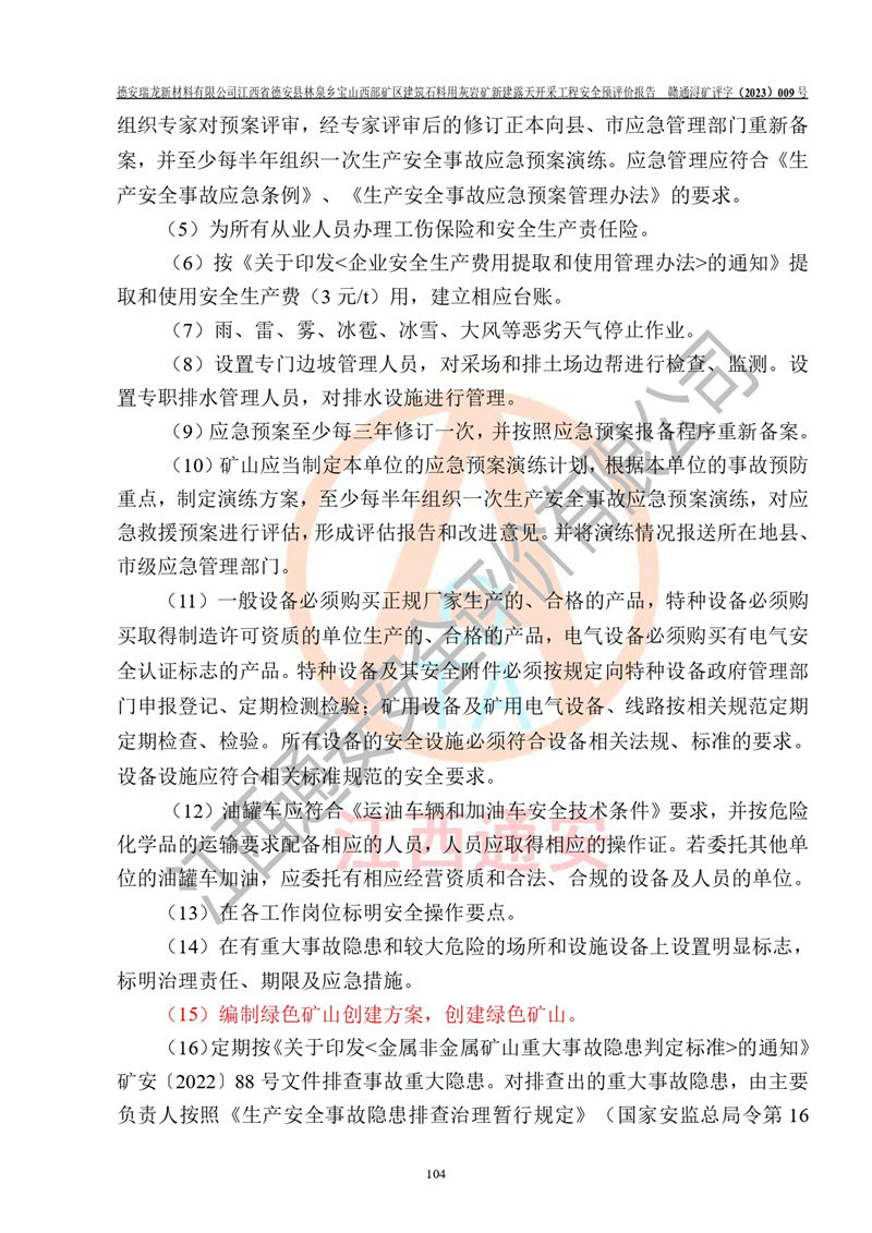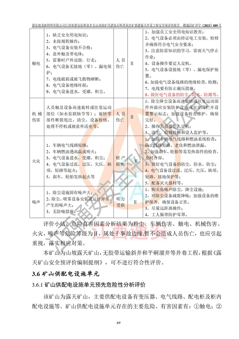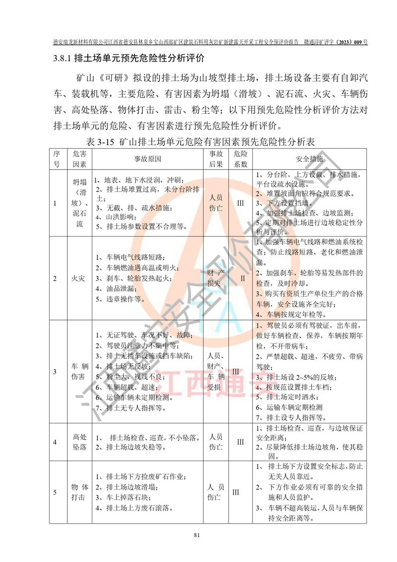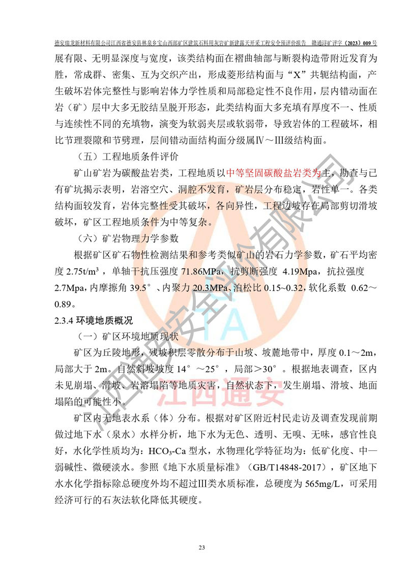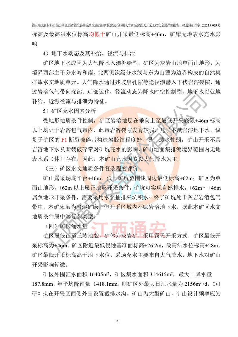 評價報告名稱 | 德安瑞龍新材料有限公司江西省德安縣林泉鄉(xiāng)寶山西部礦區(qū)建筑石料用灰?guī)r礦新建露天開采工程安全預評價報告 | |||||