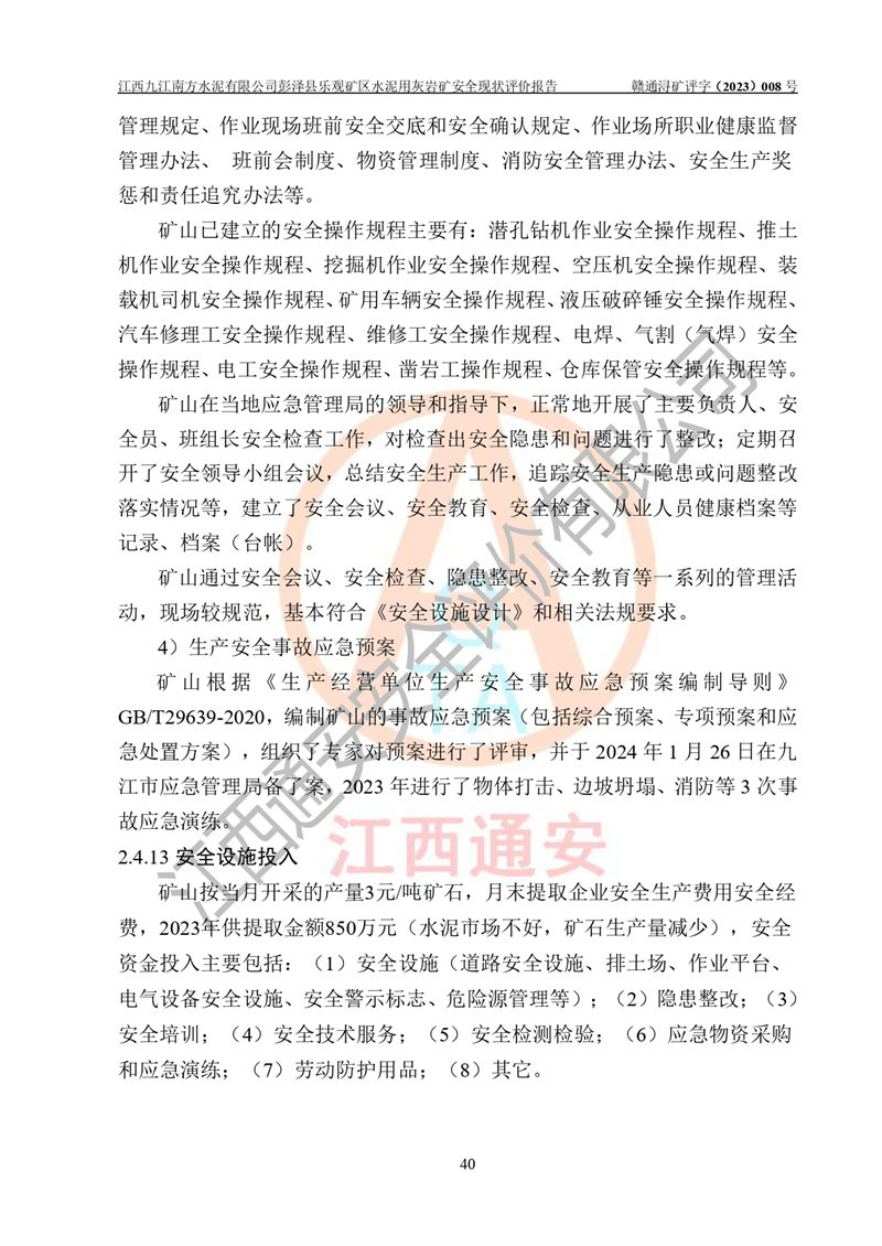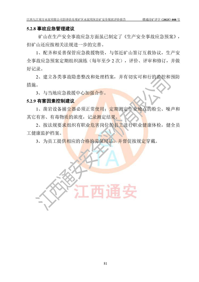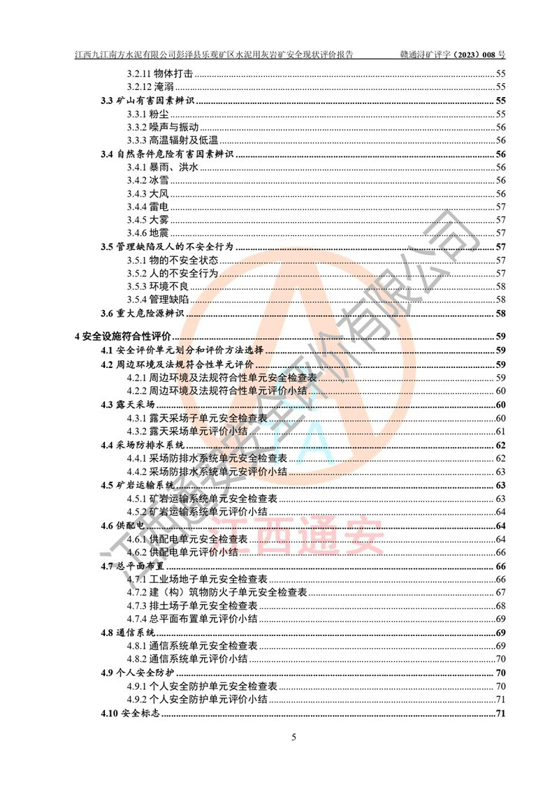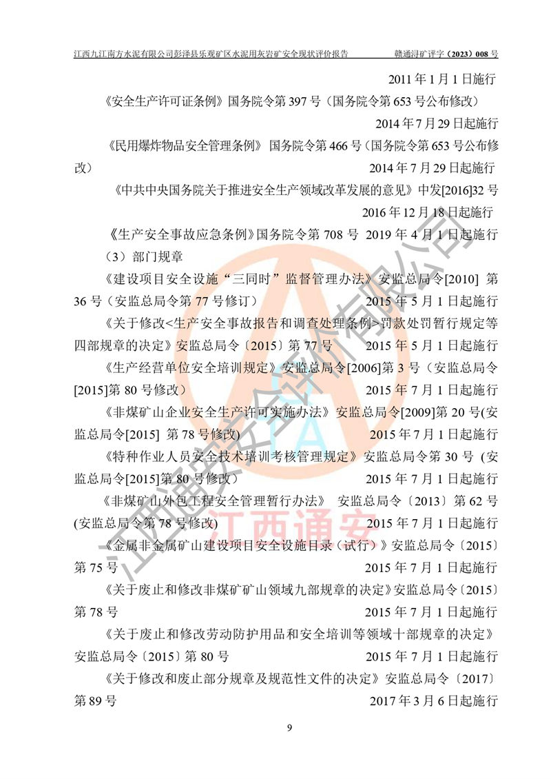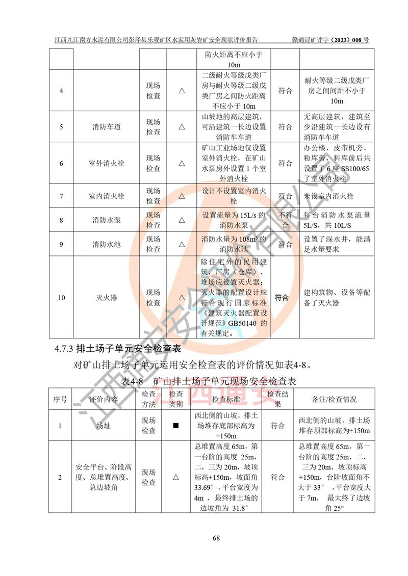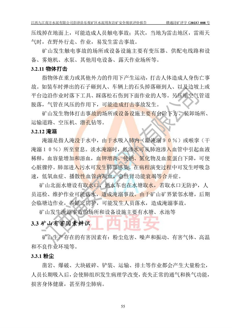 報(bào)告名稱 | 江西九江南方水泥有限公司彭澤縣樂觀礦區(qū)水泥用灰?guī)r礦安全現(xiàn)狀評價(jià)報(bào)告 | |||||