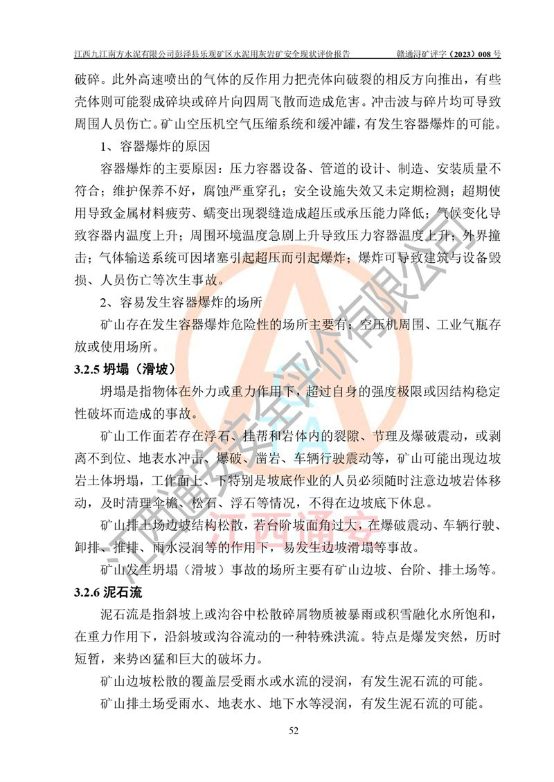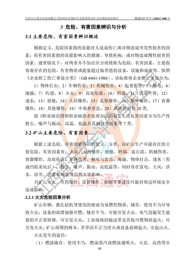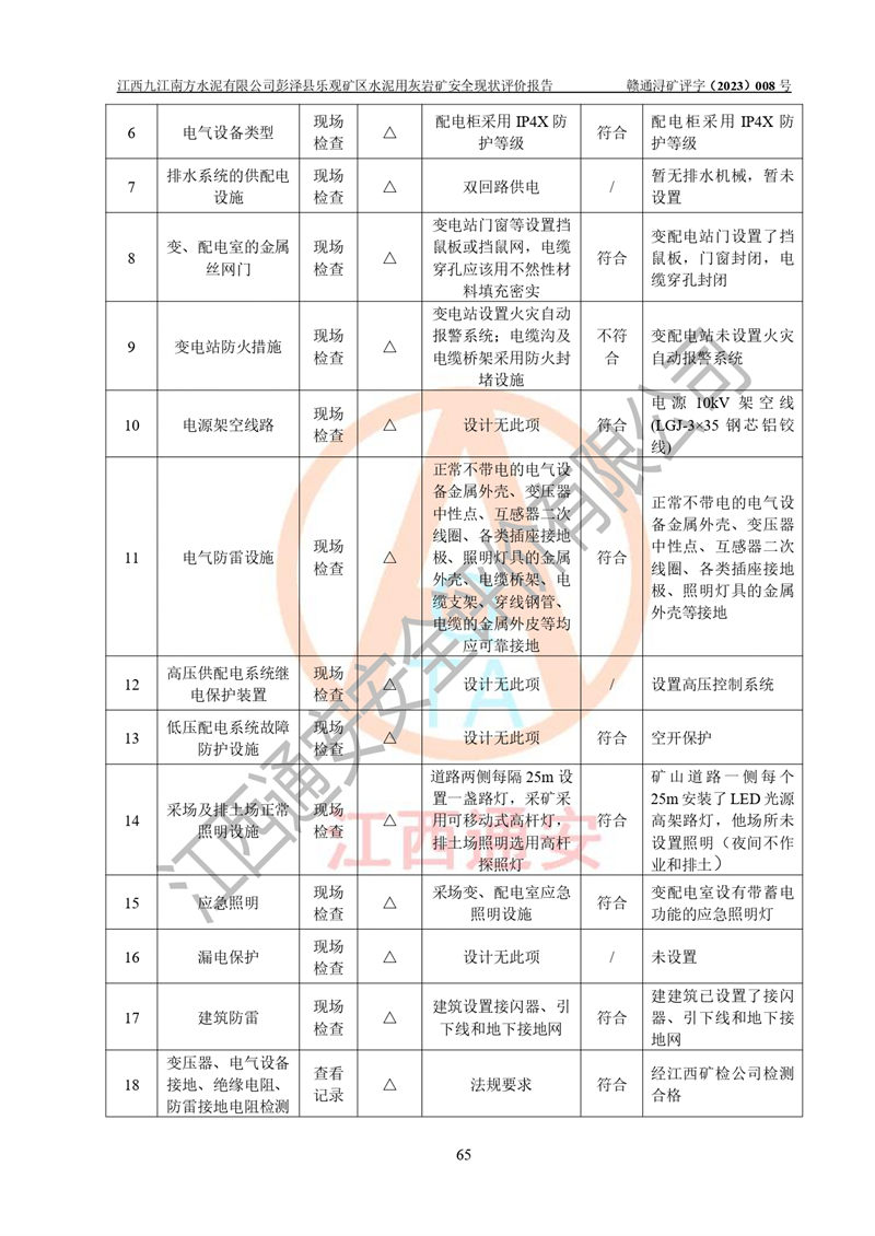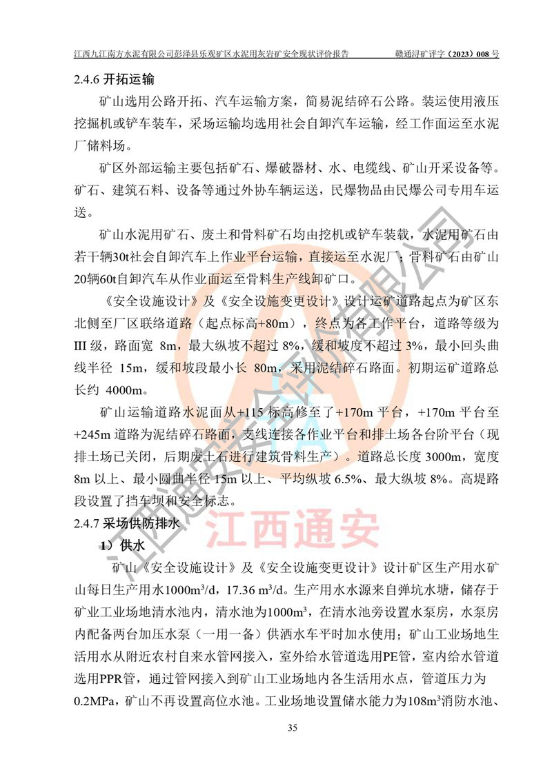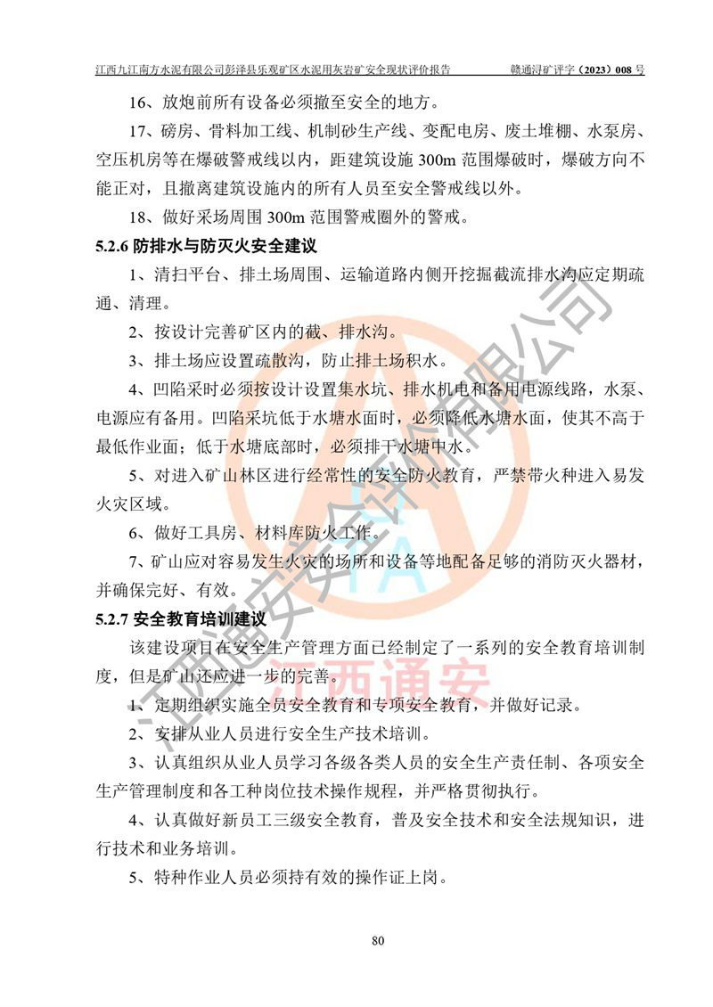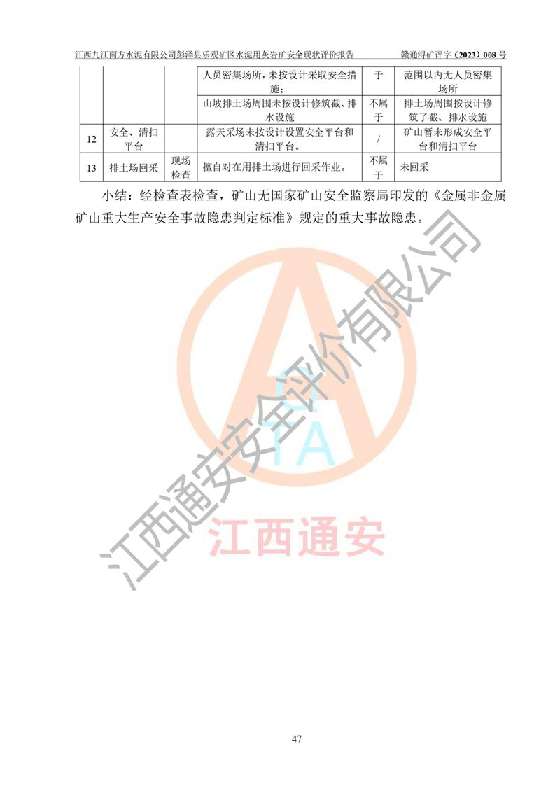 報(bào)告名稱 | 江西九江南方水泥有限公司彭澤縣樂觀礦區(qū)水泥用灰?guī)r礦安全現(xiàn)狀評價(jià)報(bào)告 | |||||