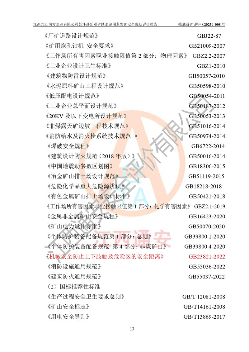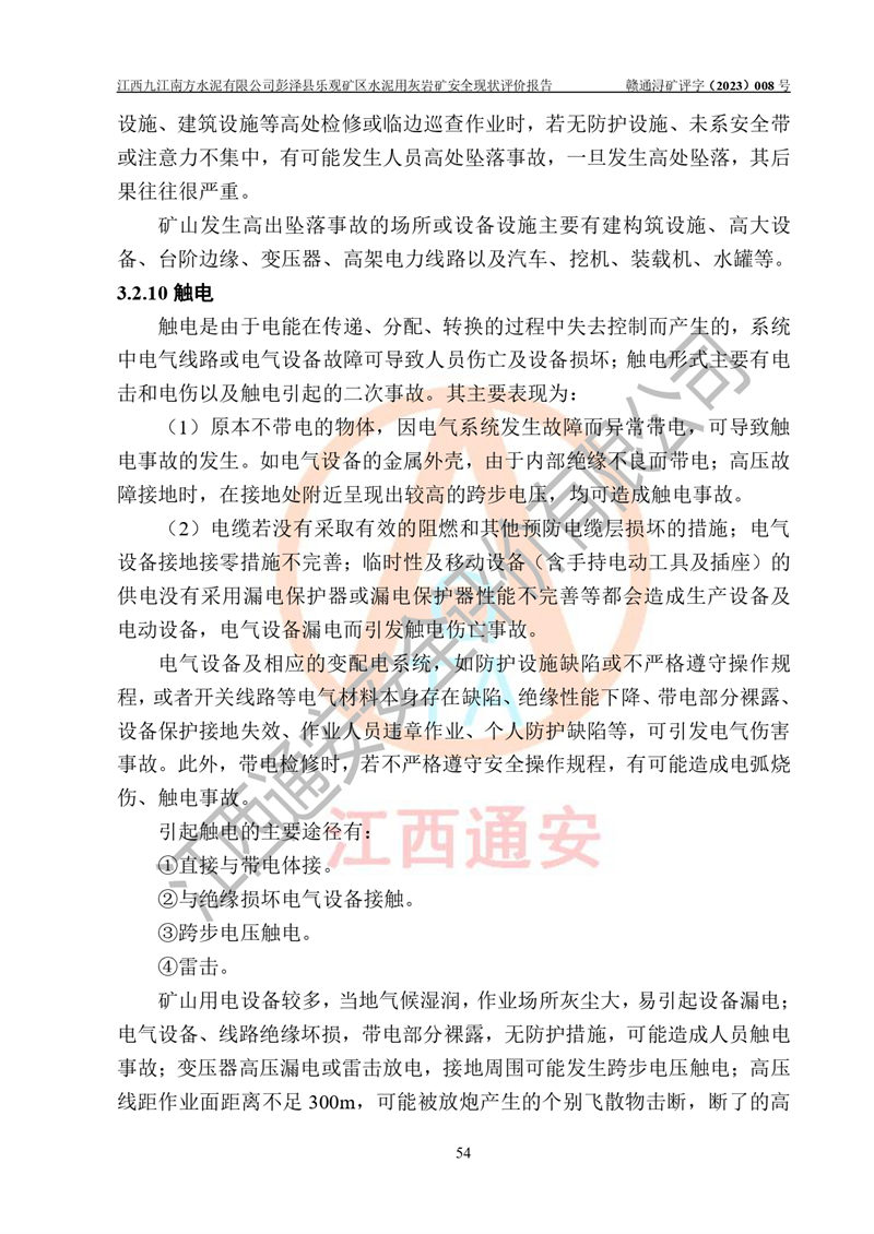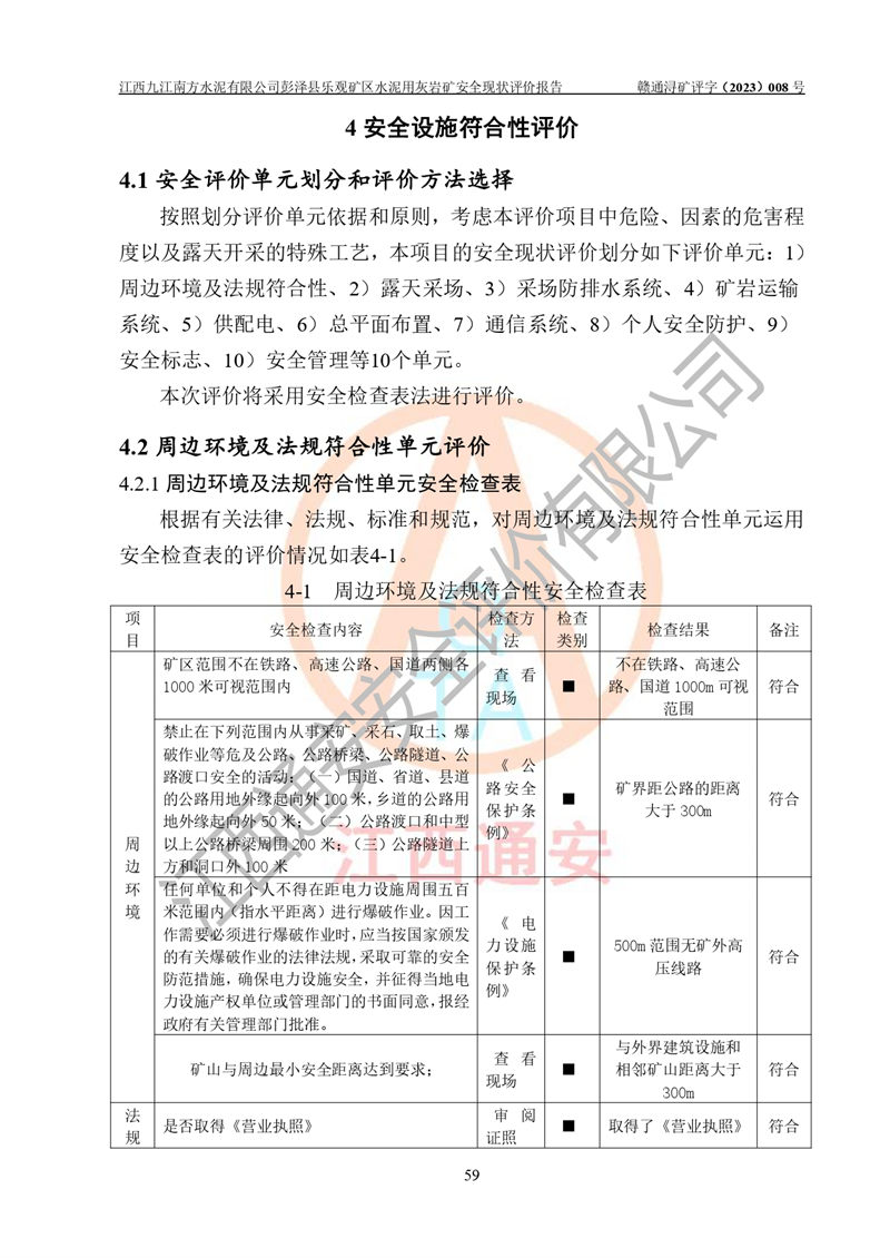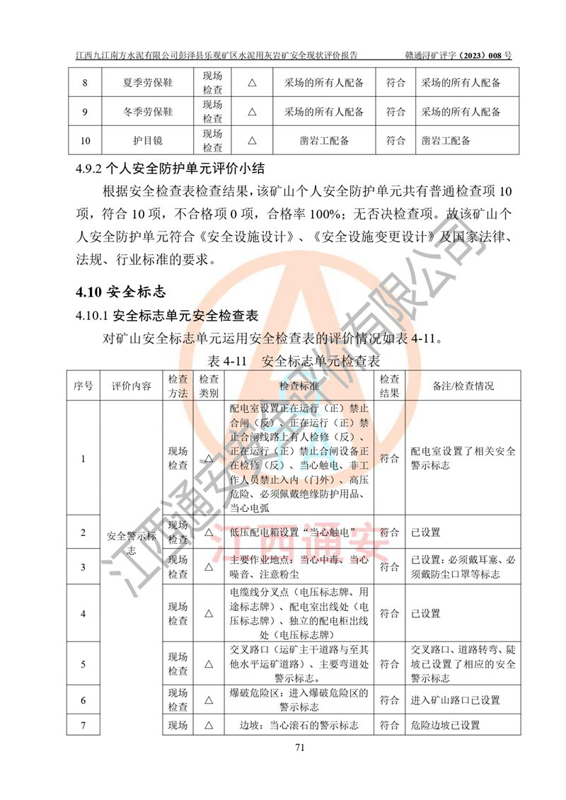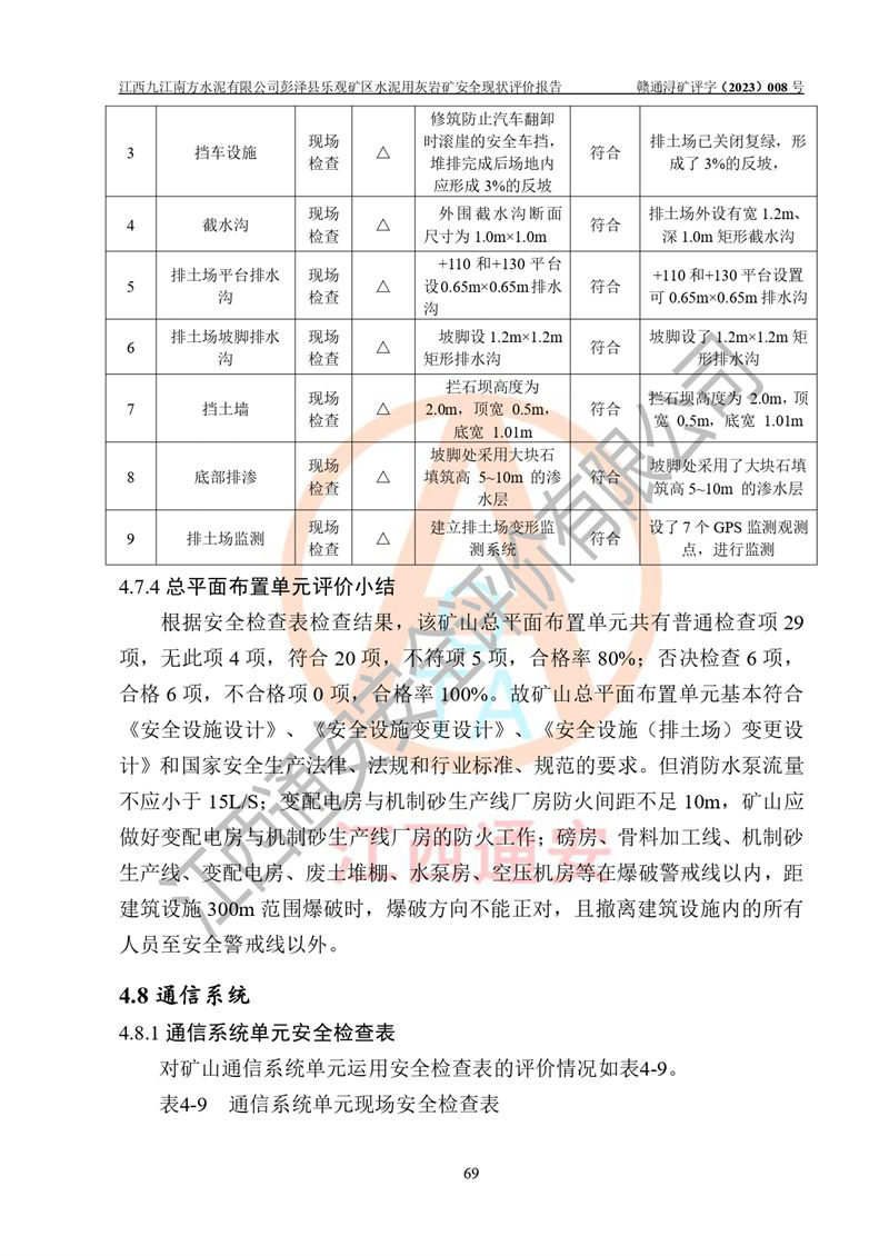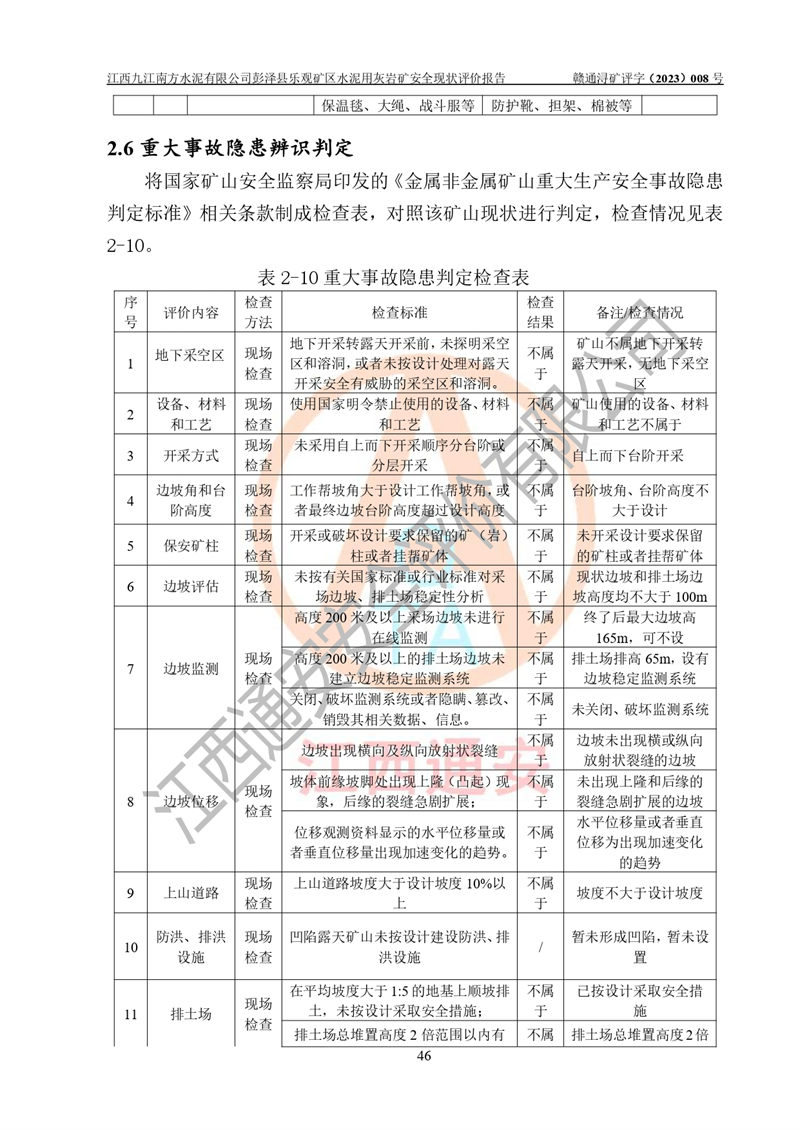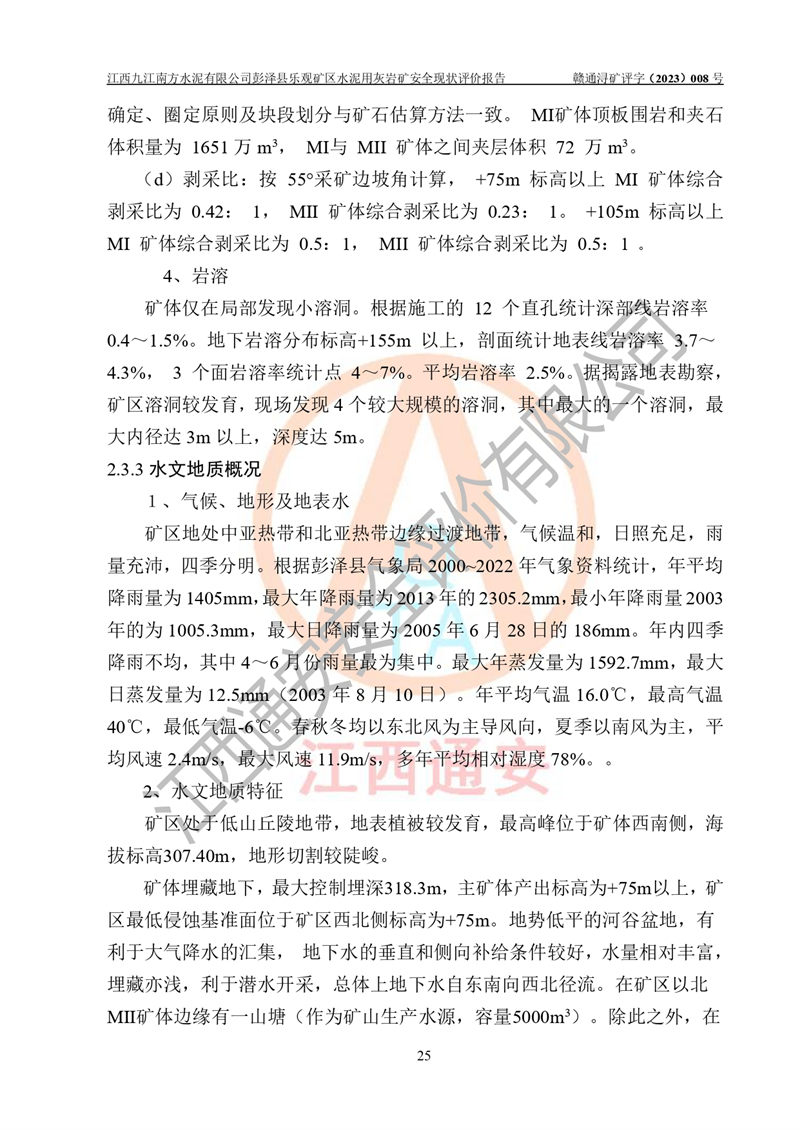 報(bào)告名稱 | 江西九江南方水泥有限公司彭澤縣樂觀礦區(qū)水泥用灰?guī)r礦安全現(xiàn)狀評價(jià)報(bào)告 | |||||