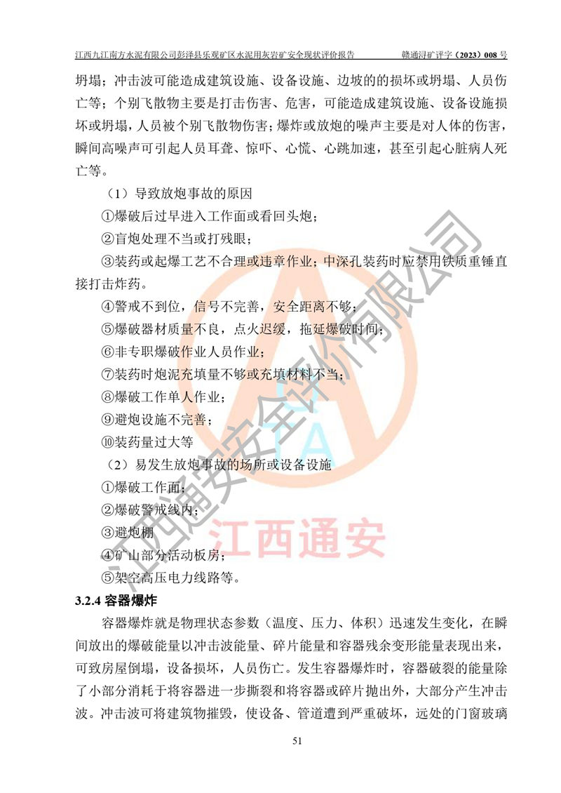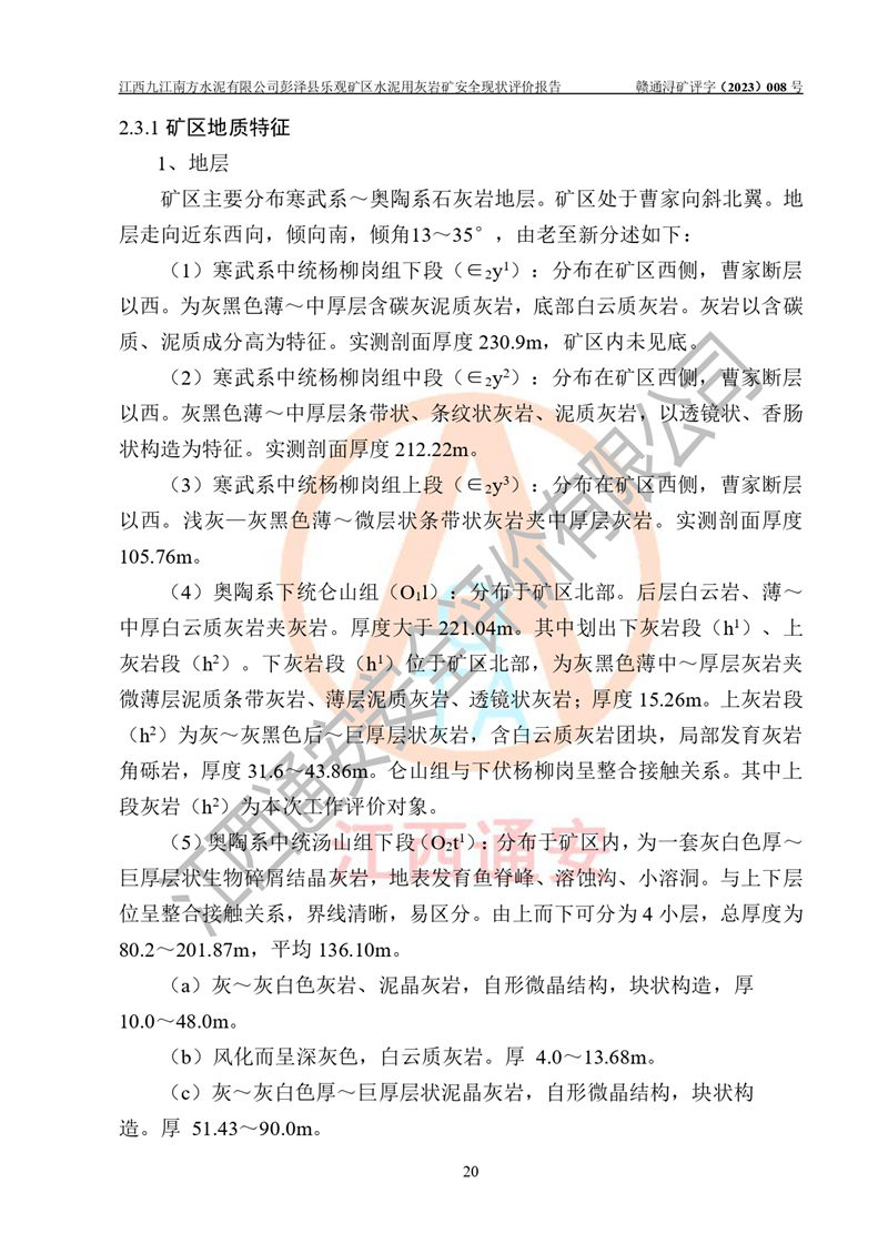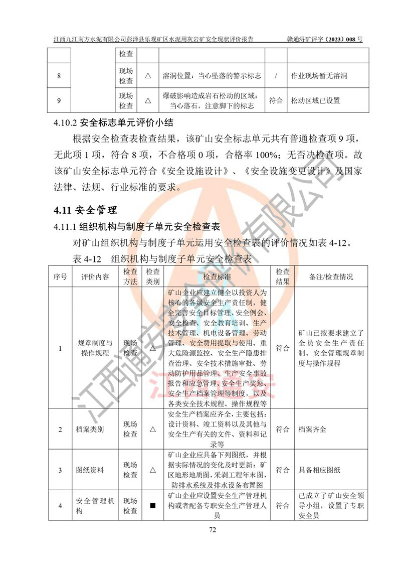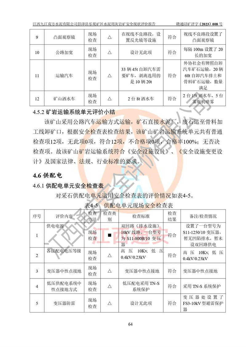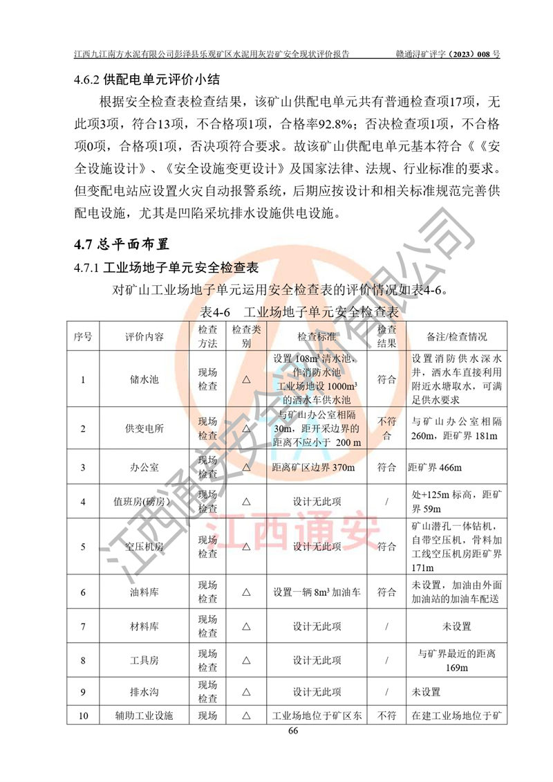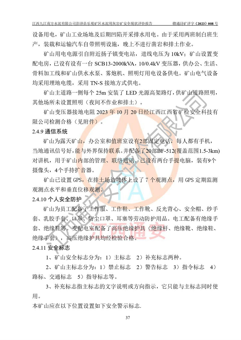 報(bào)告名稱 | 江西九江南方水泥有限公司彭澤縣樂觀礦區(qū)水泥用灰?guī)r礦安全現(xiàn)狀評價(jià)報(bào)告 | |||||