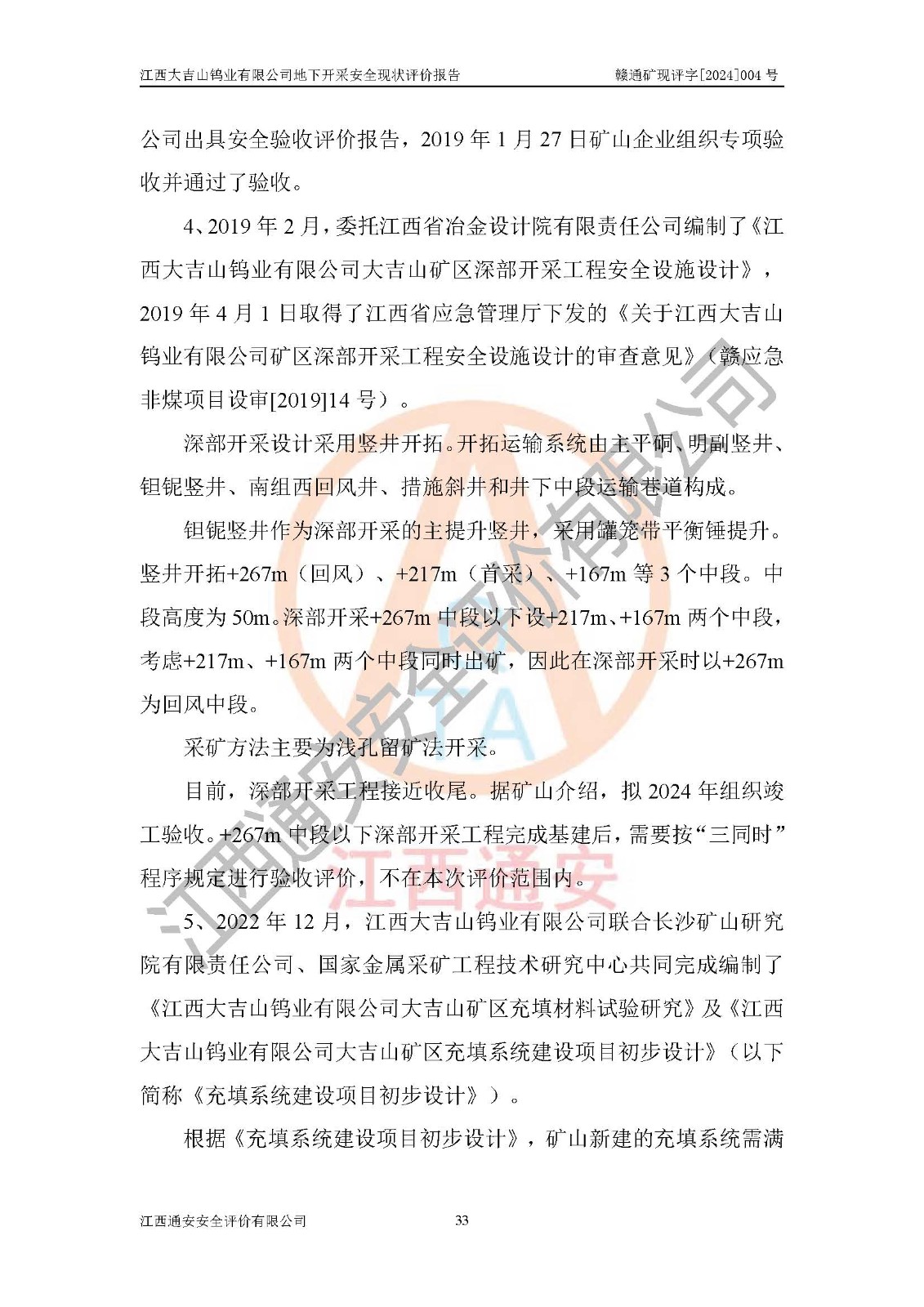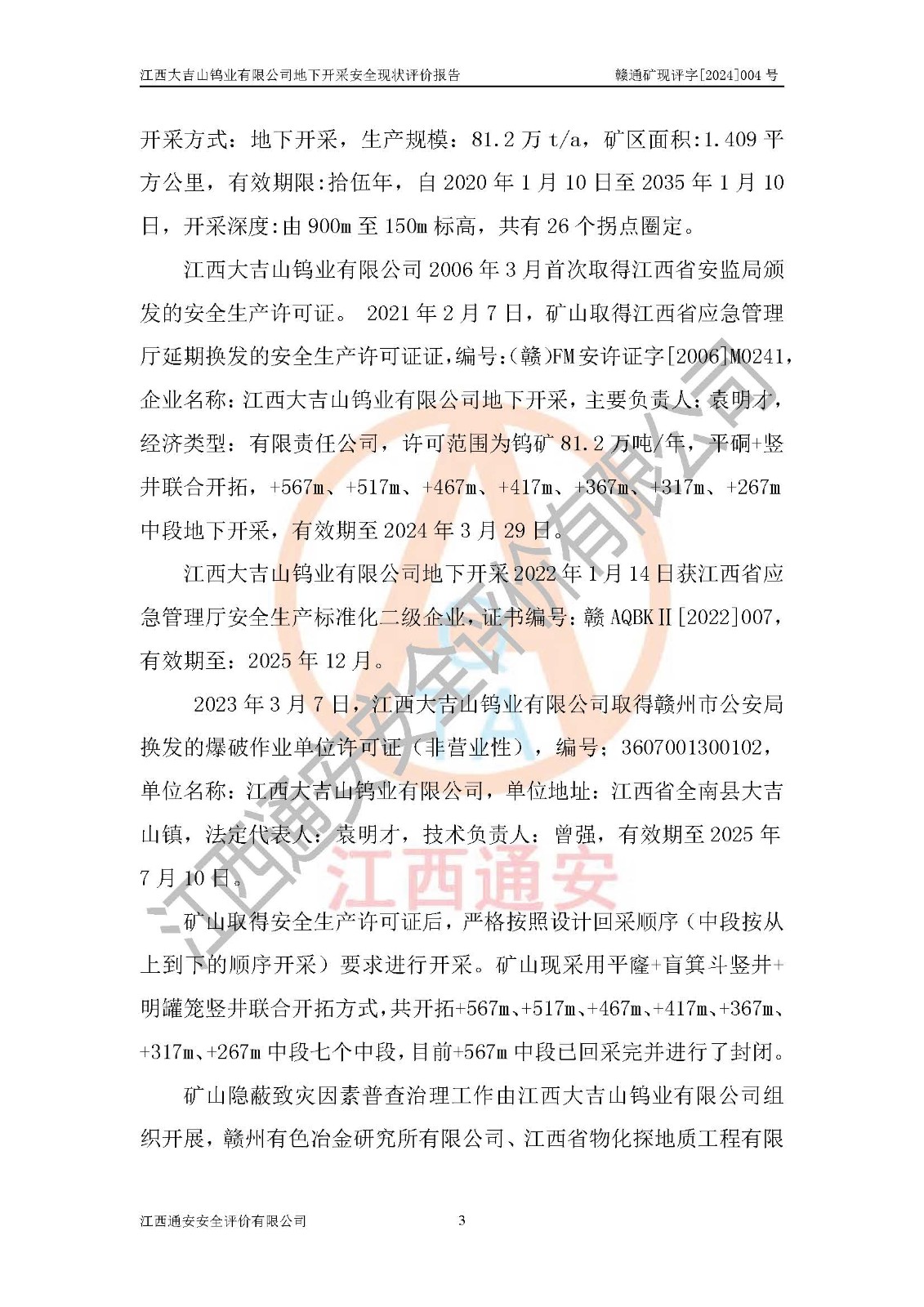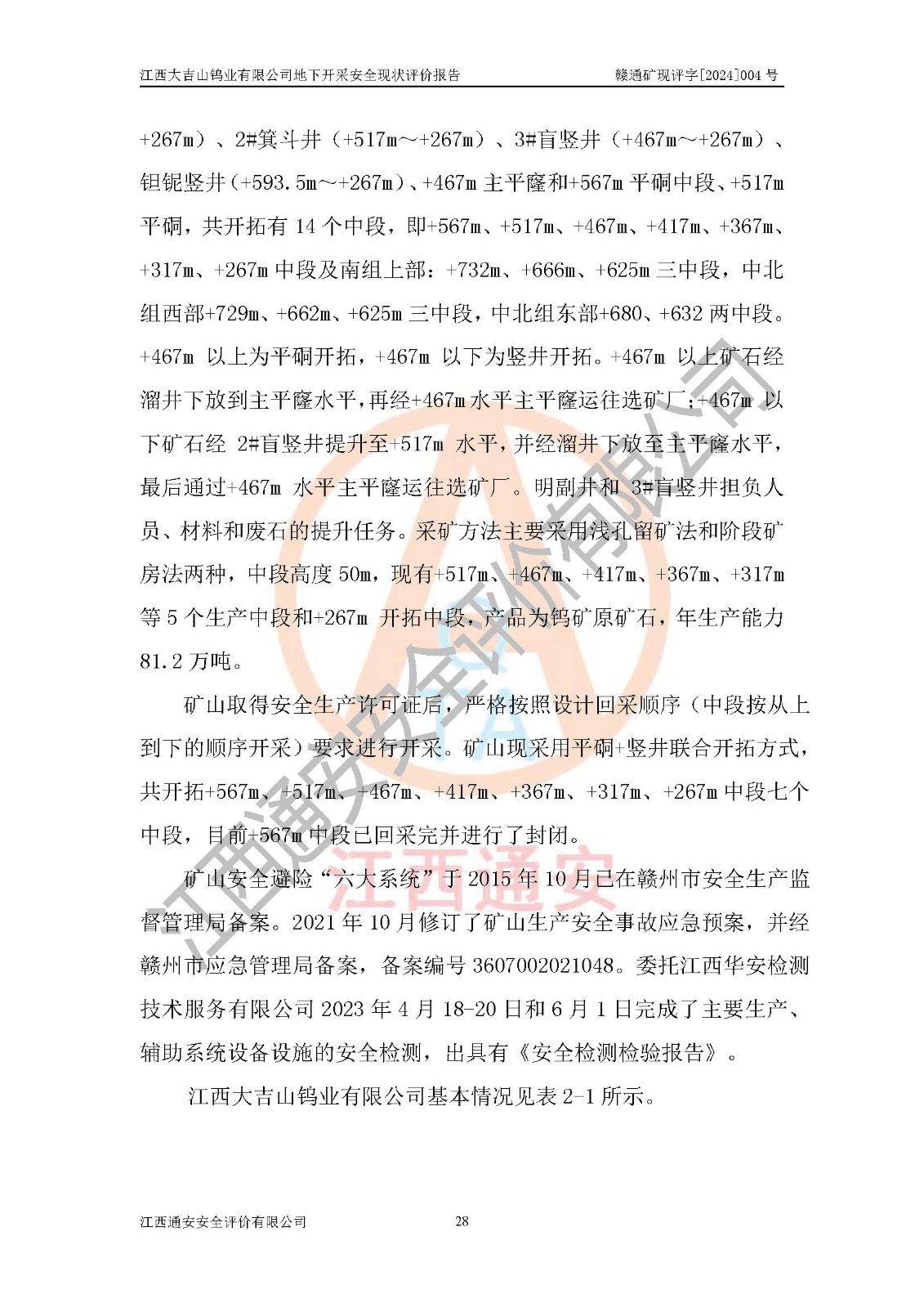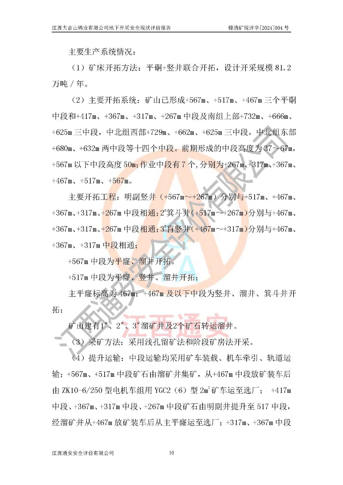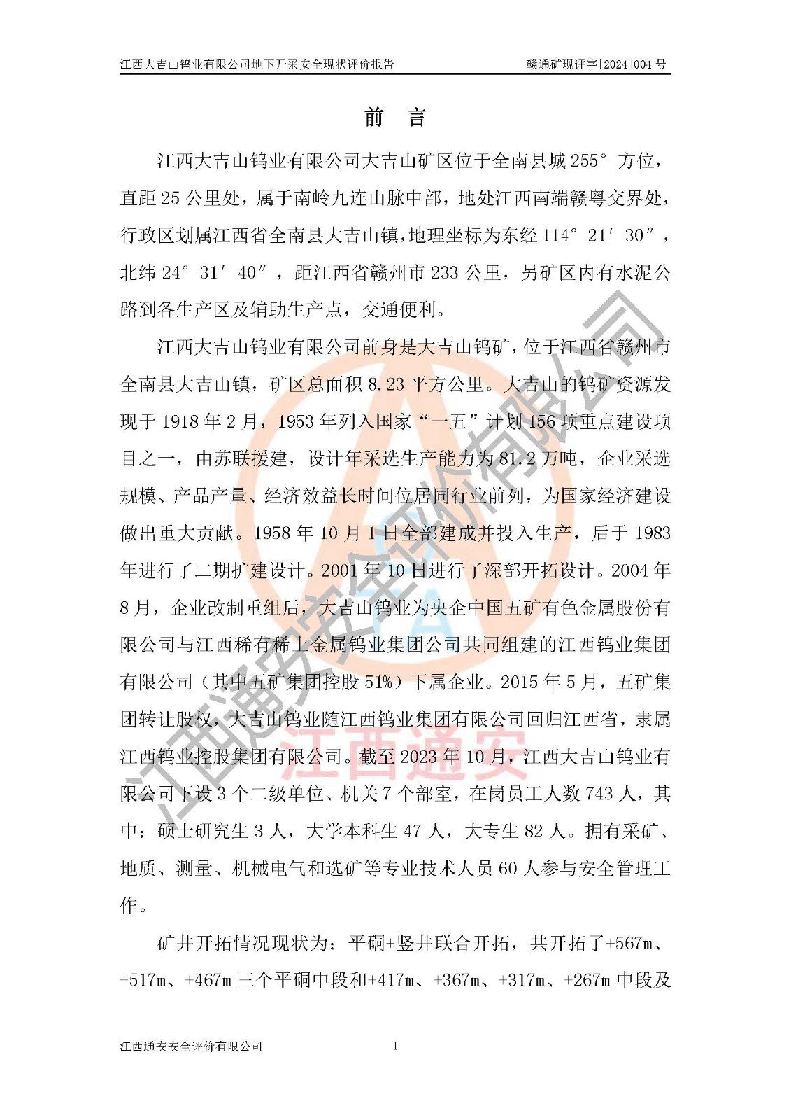 項(xiàng)目名稱 | 江西大吉山鎢業(yè)有限公司地下開采現(xiàn)狀評(píng)價(jià)報(bào)告 | ||||