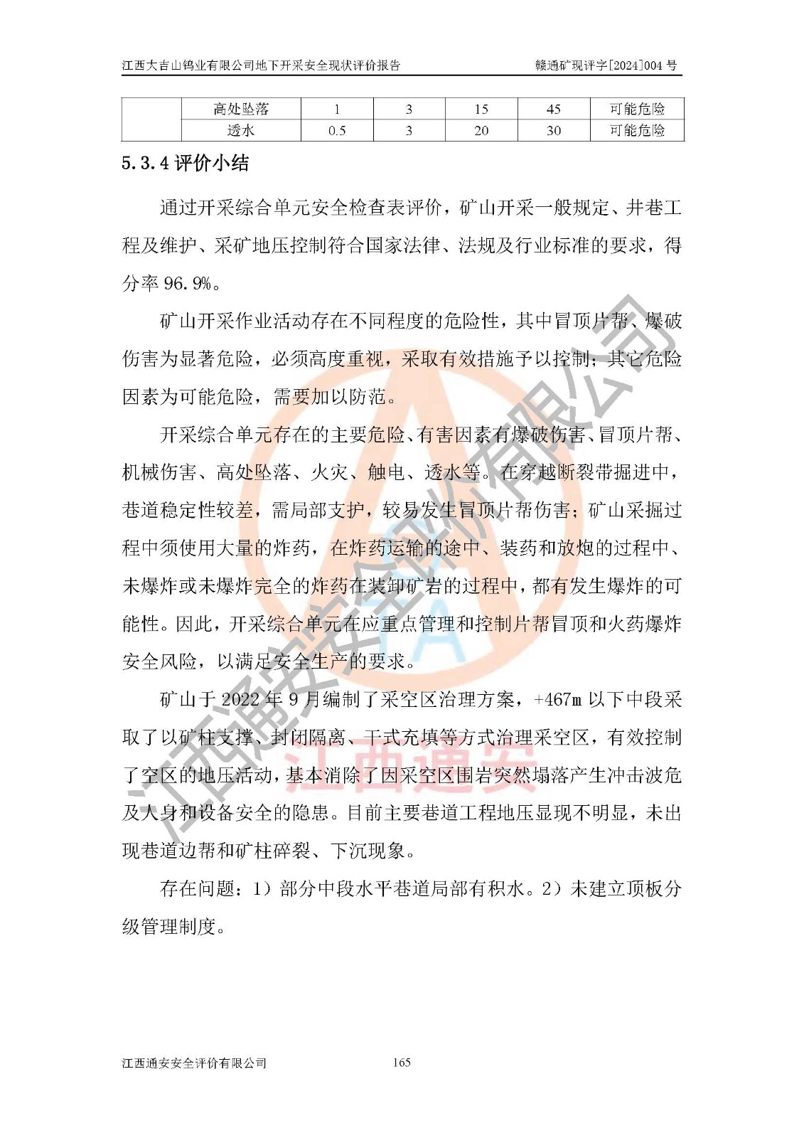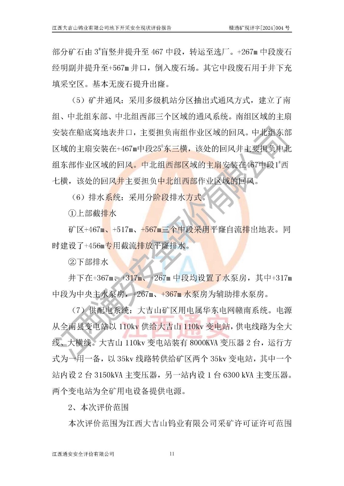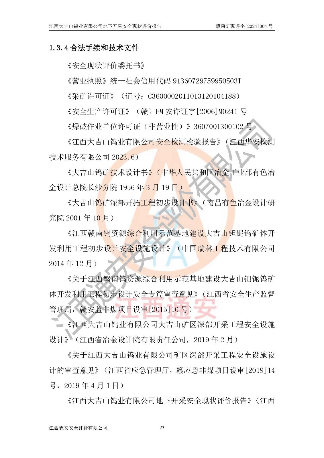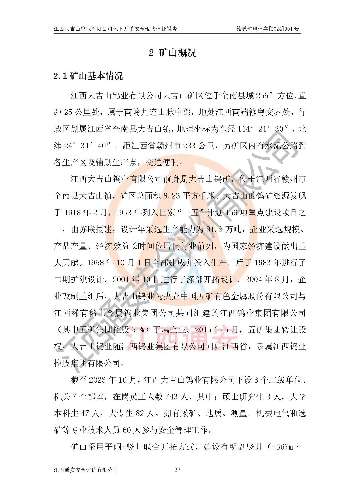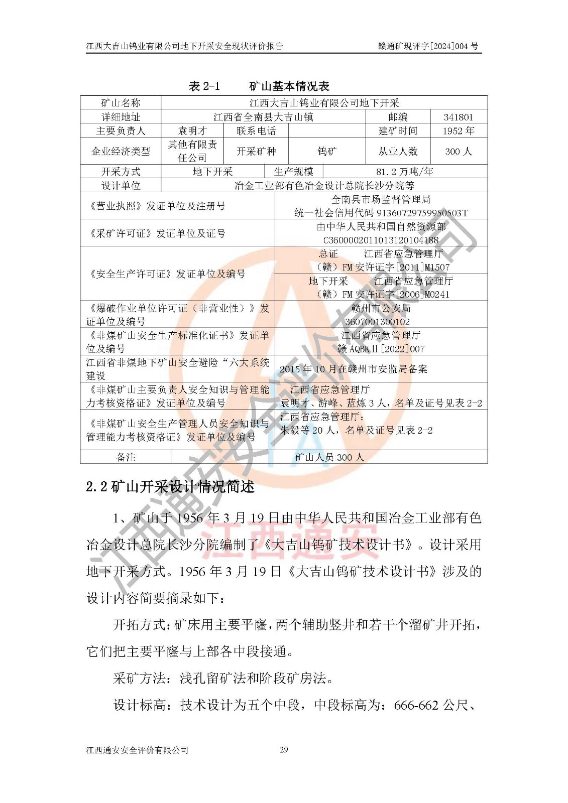 項(xiàng)目名稱 | 江西大吉山鎢業(yè)有限公司地下開采現(xiàn)狀評(píng)價(jià)報(bào)告 | ||||