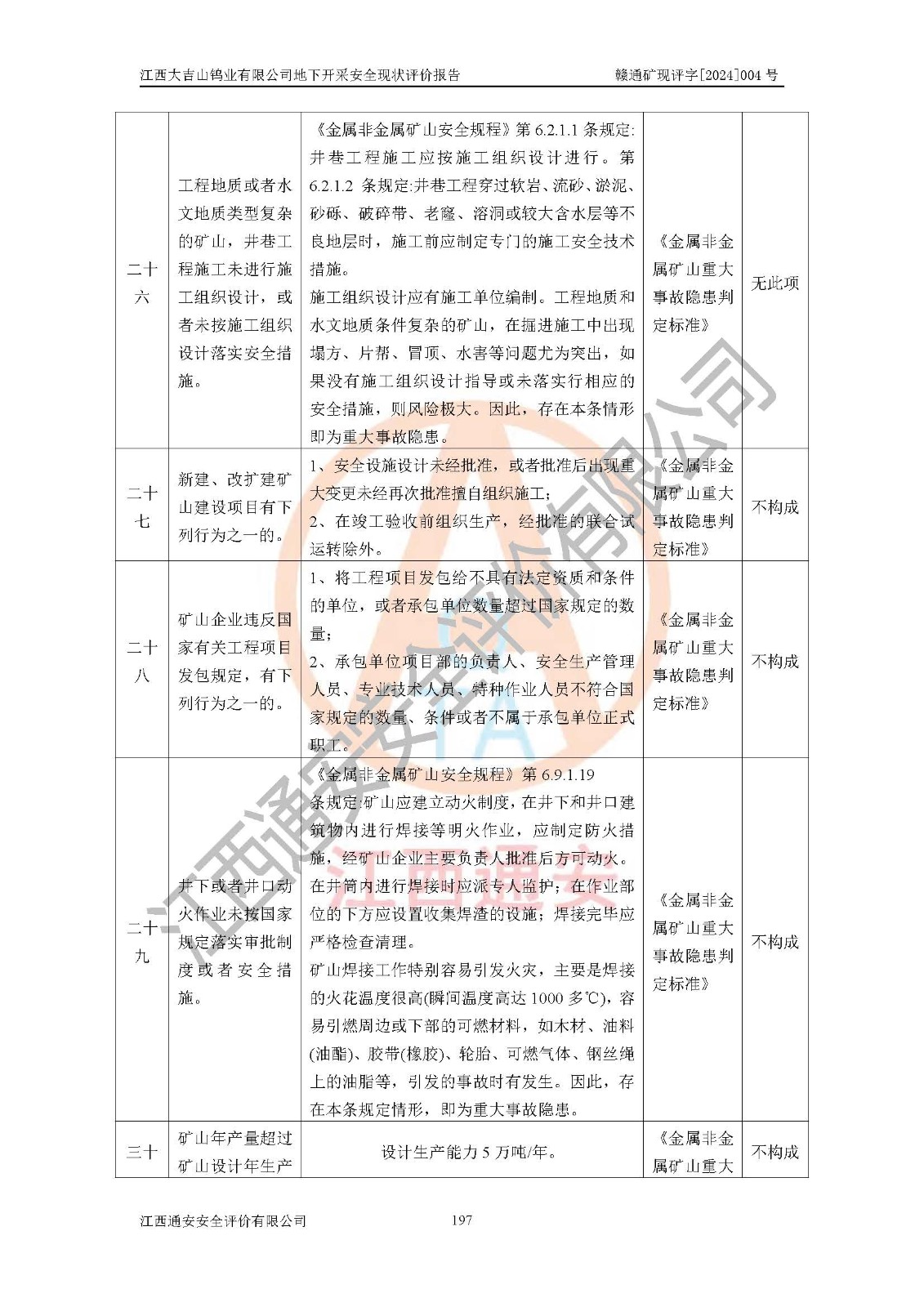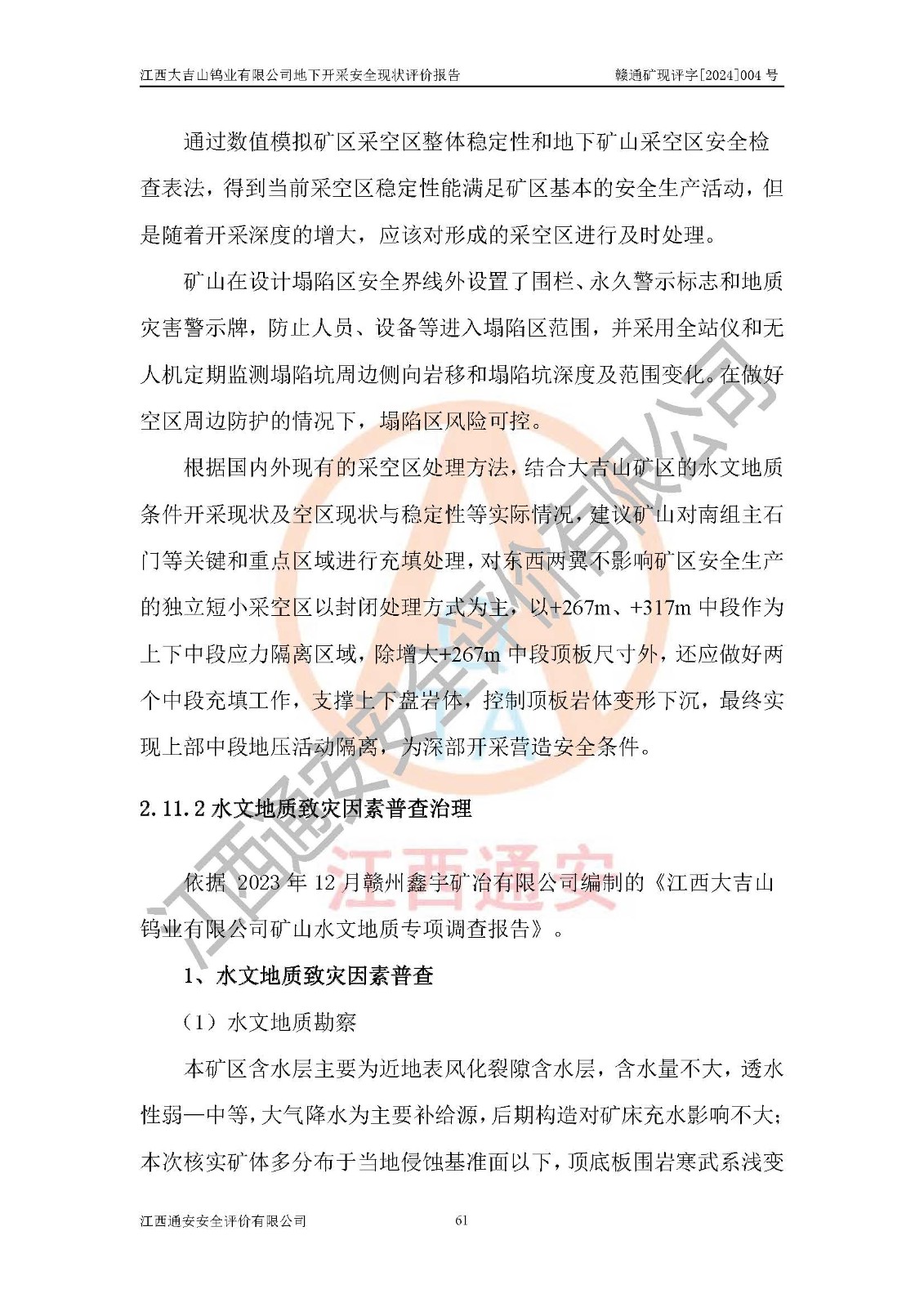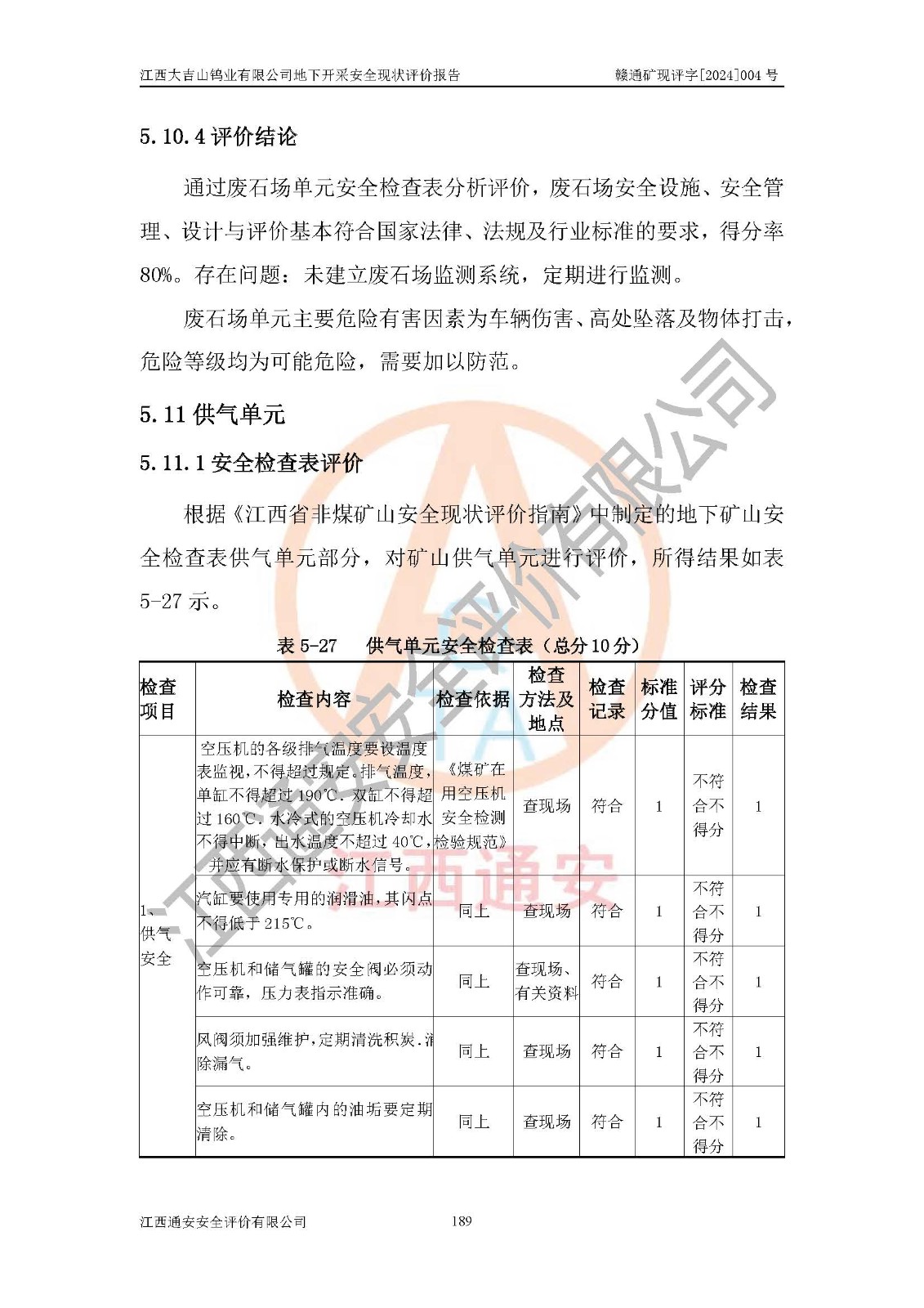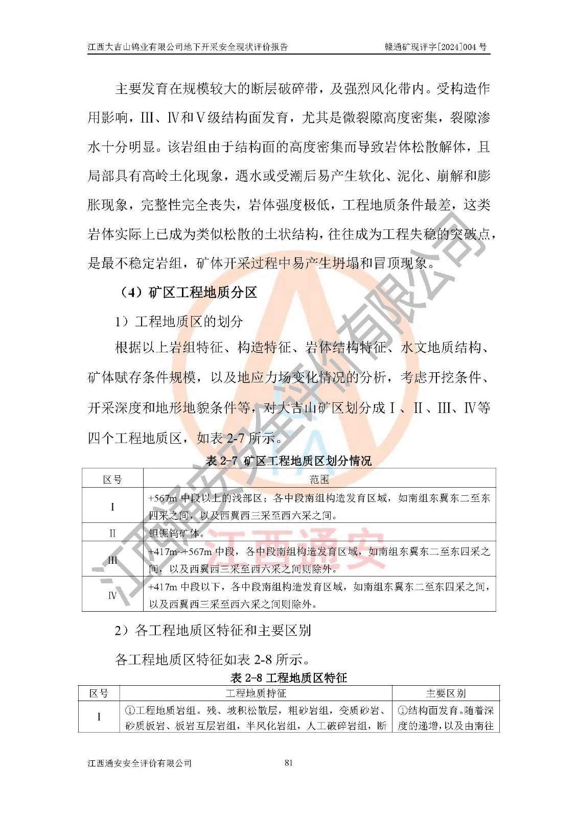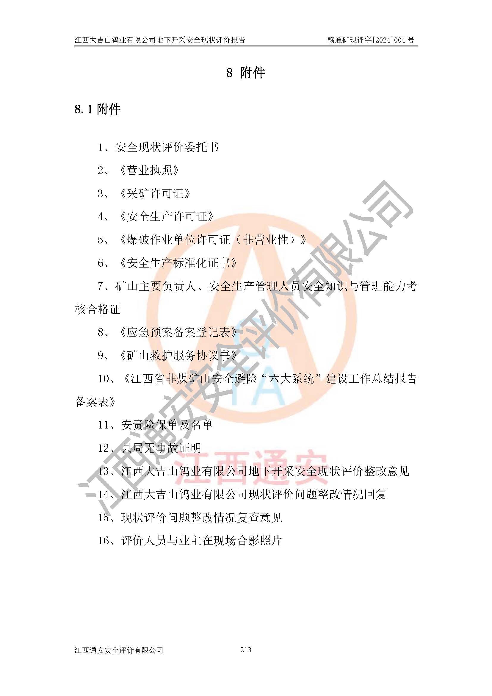 項(xiàng)目名稱 | 江西大吉山鎢業(yè)有限公司地下開采現(xiàn)狀評(píng)價(jià)報(bào)告 | ||||