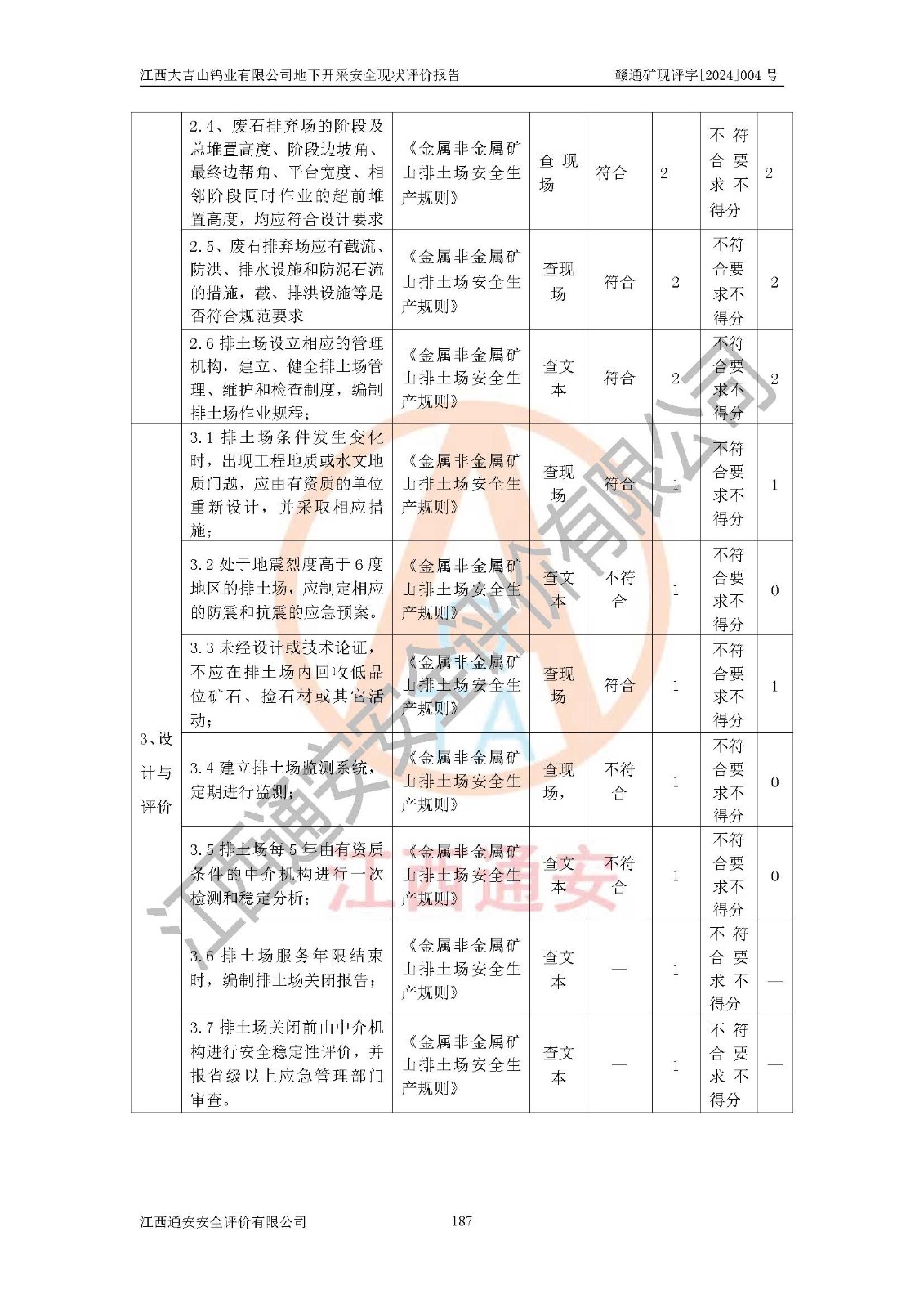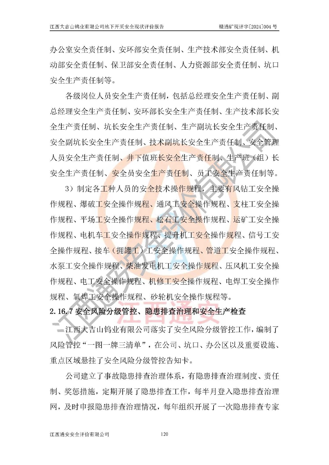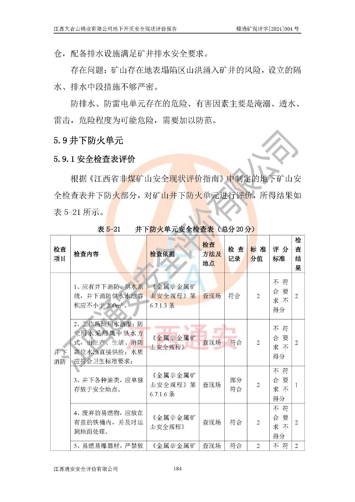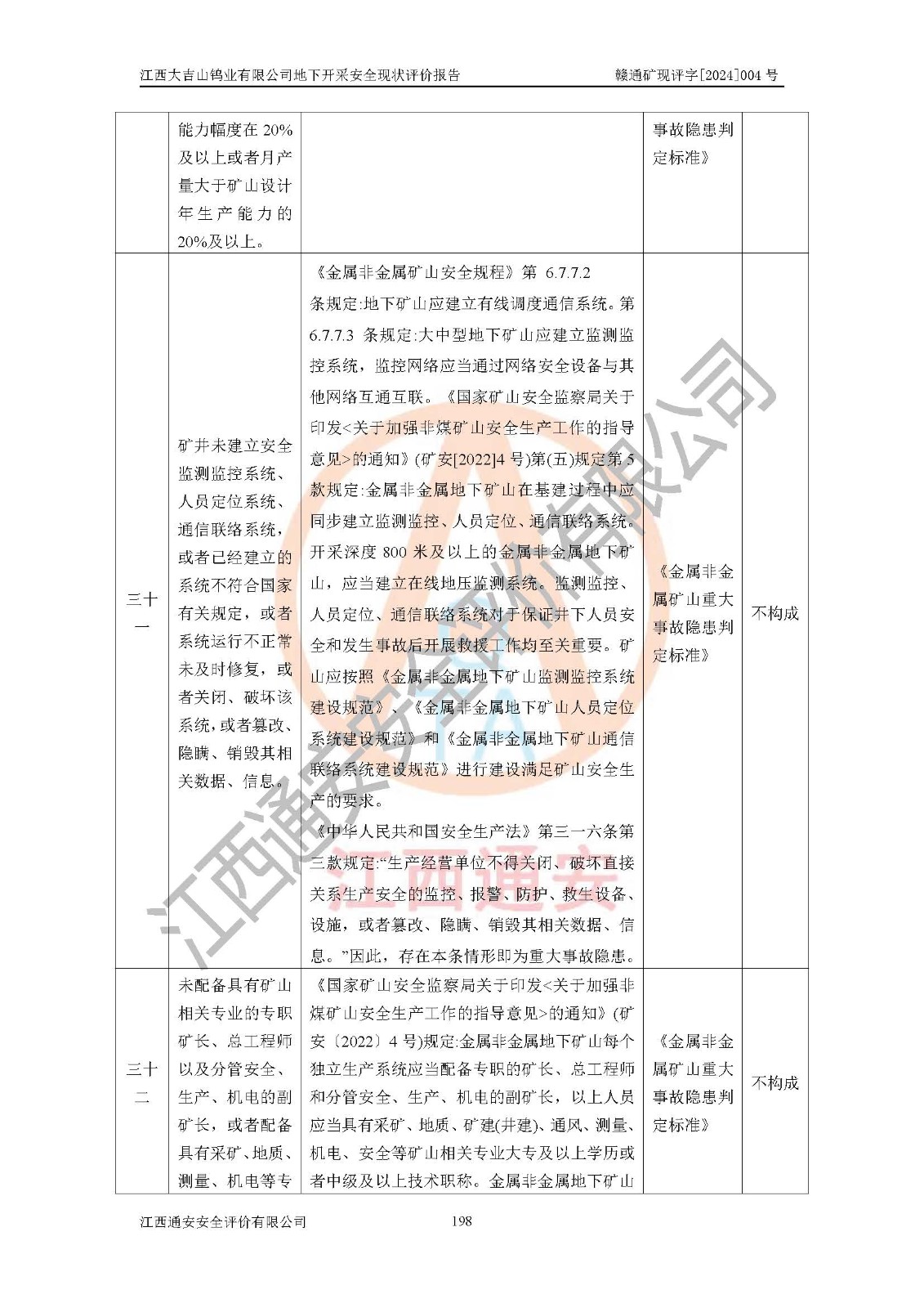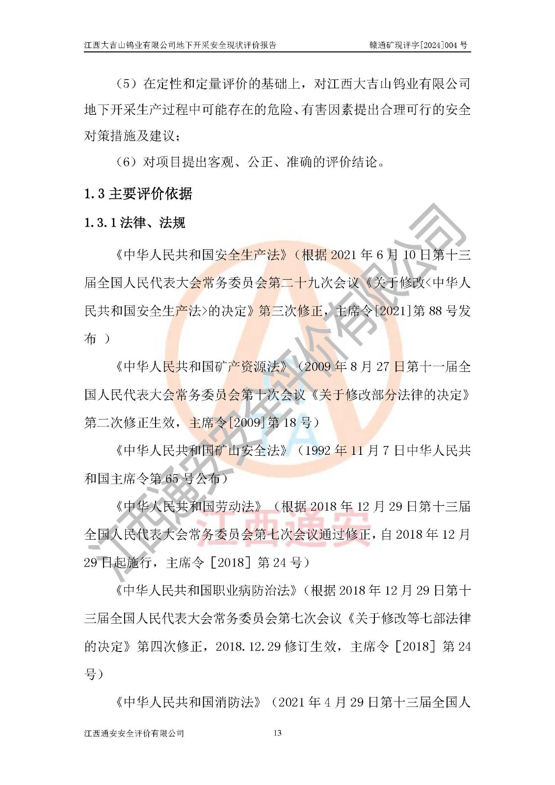 項(xiàng)目名稱 | 江西大吉山鎢業(yè)有限公司地下開采現(xiàn)狀評(píng)價(jià)報(bào)告 | ||||