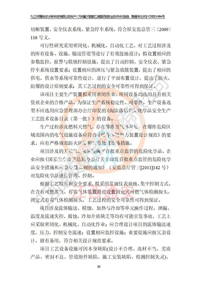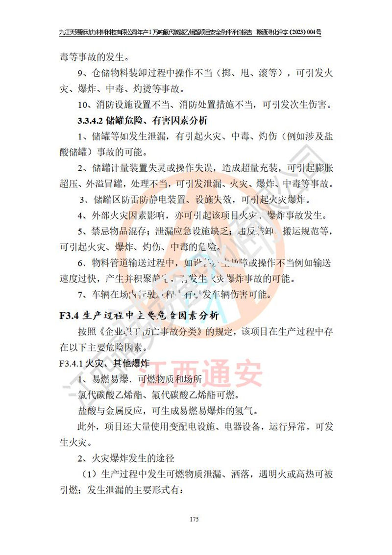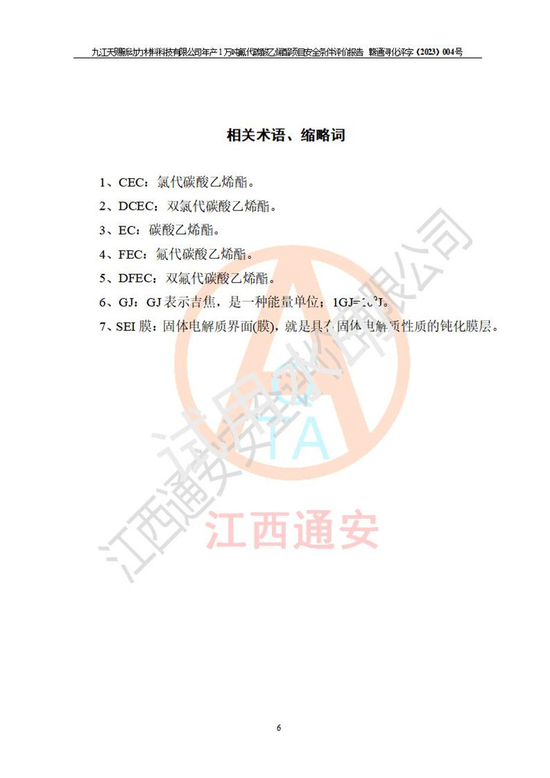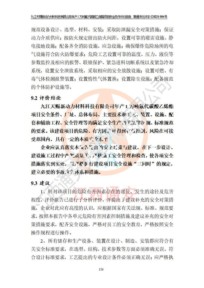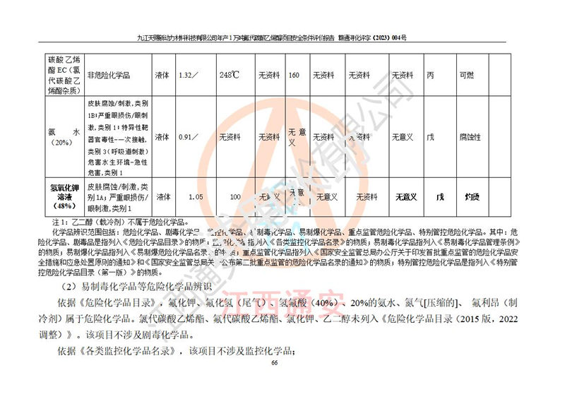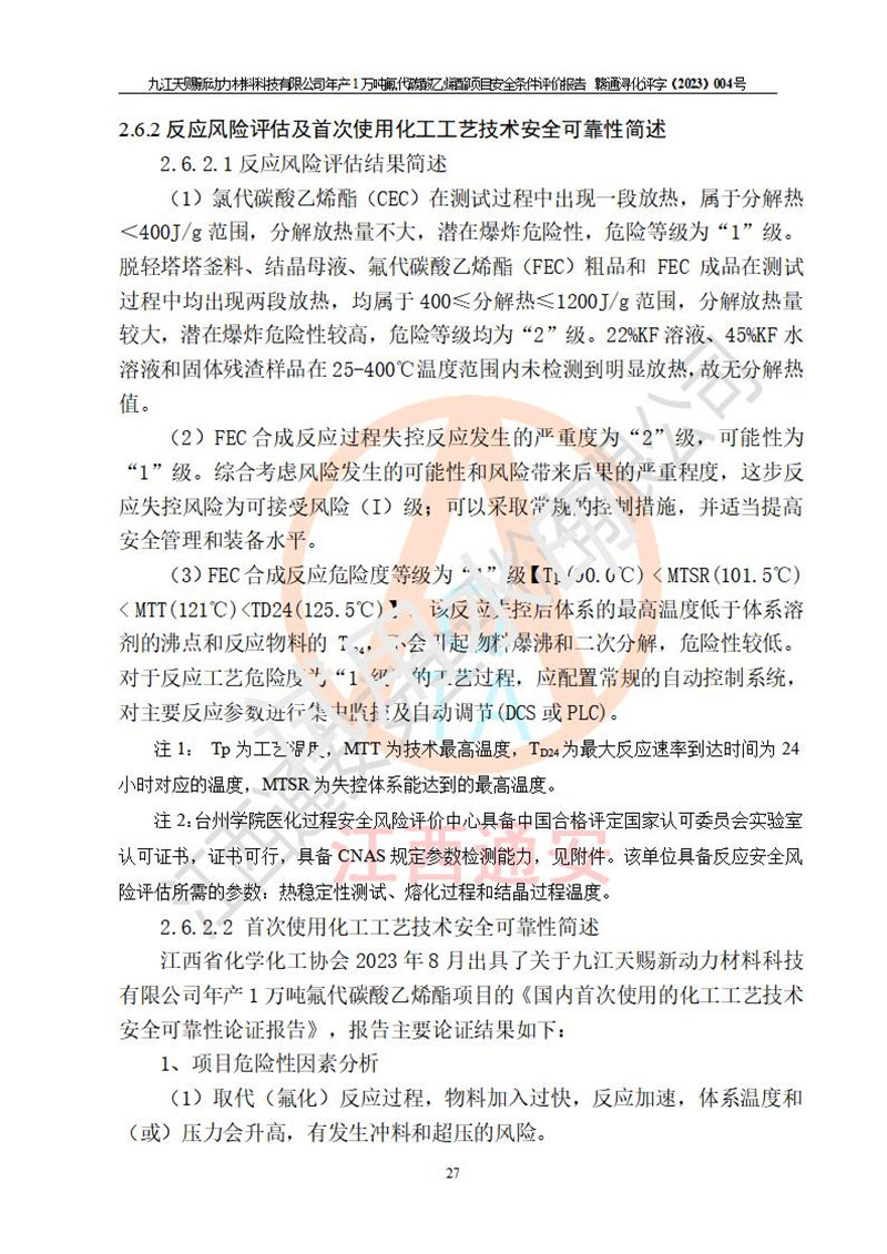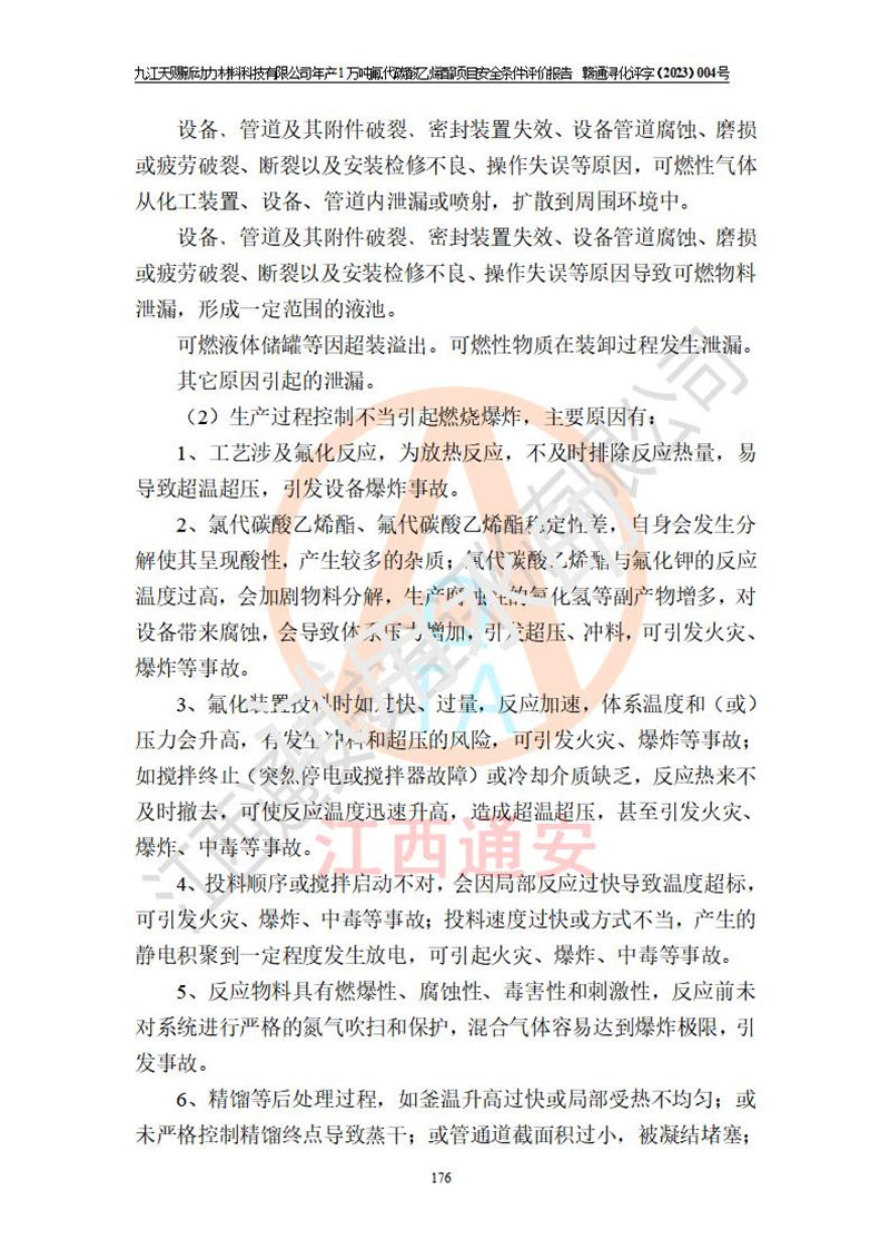 評價報告名稱 | 九江天賜新動力材料科技有限公司年產(chǎn)1萬噸氟代碳酸乙烯酯項目安全條件評價報告 | ||||